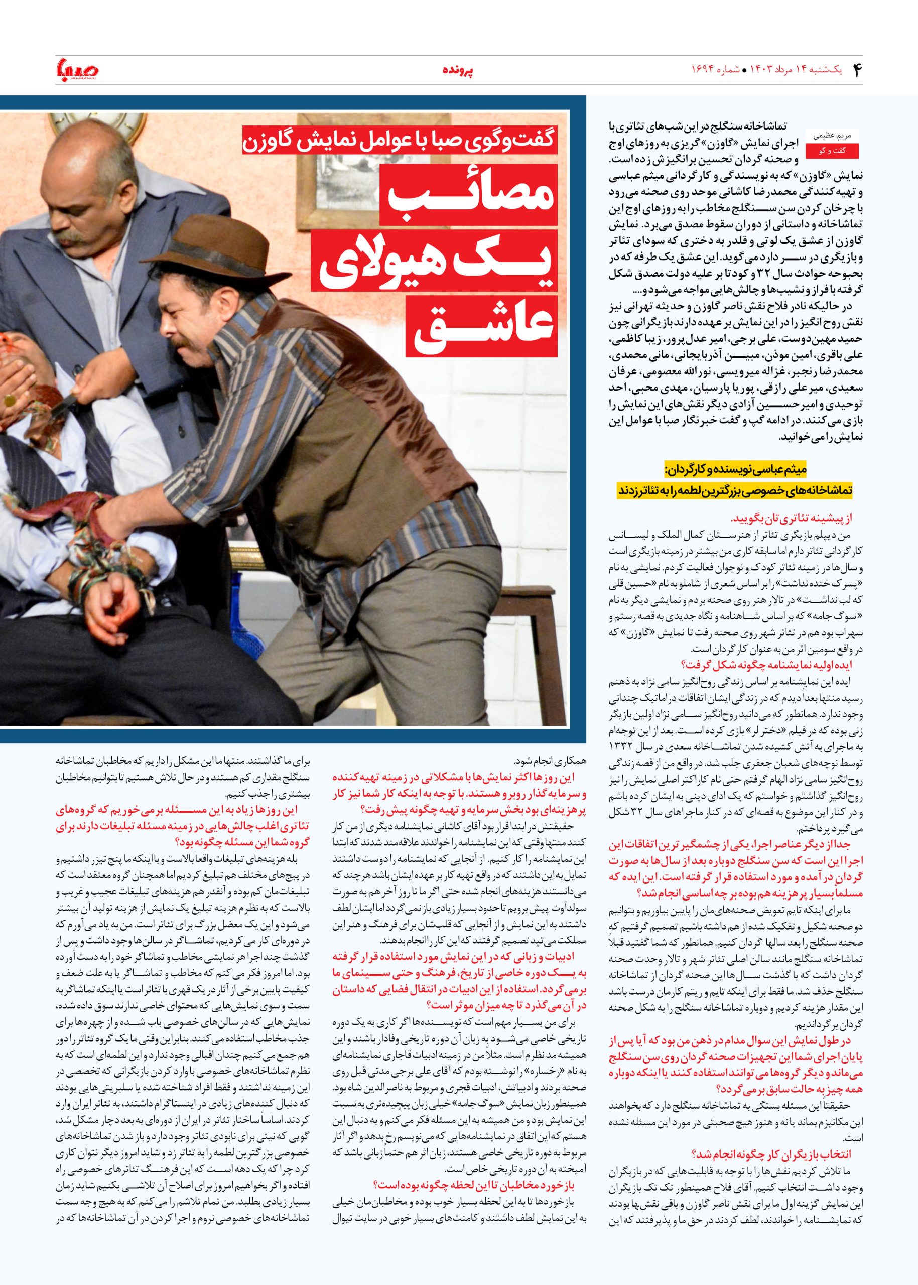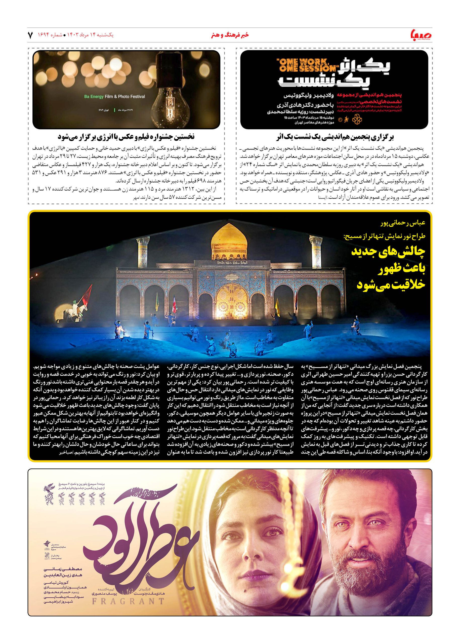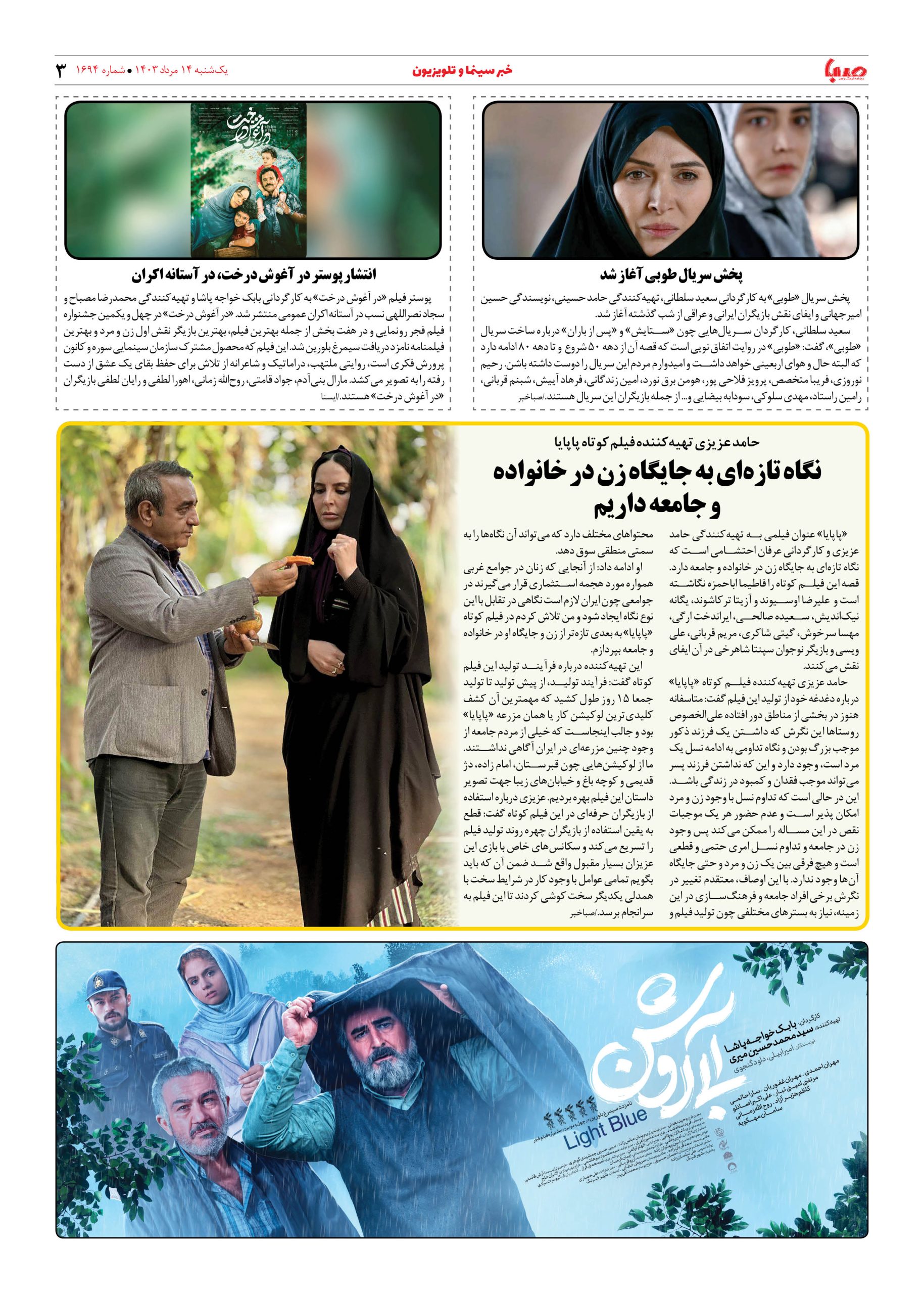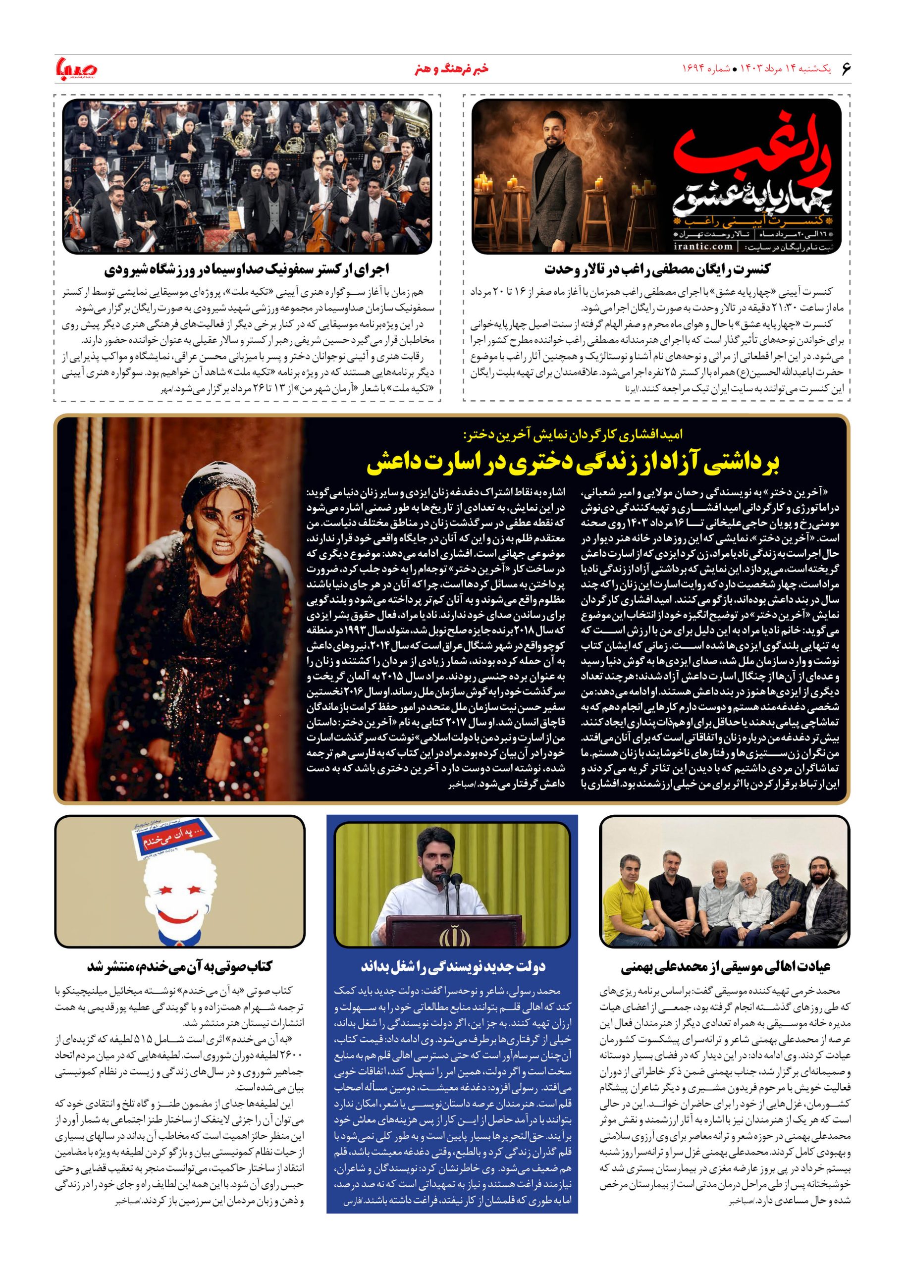شماره ۱۶۹۴| روزنامه صبا یکشنبه ۱۴ مرداد ۱۴۰۳