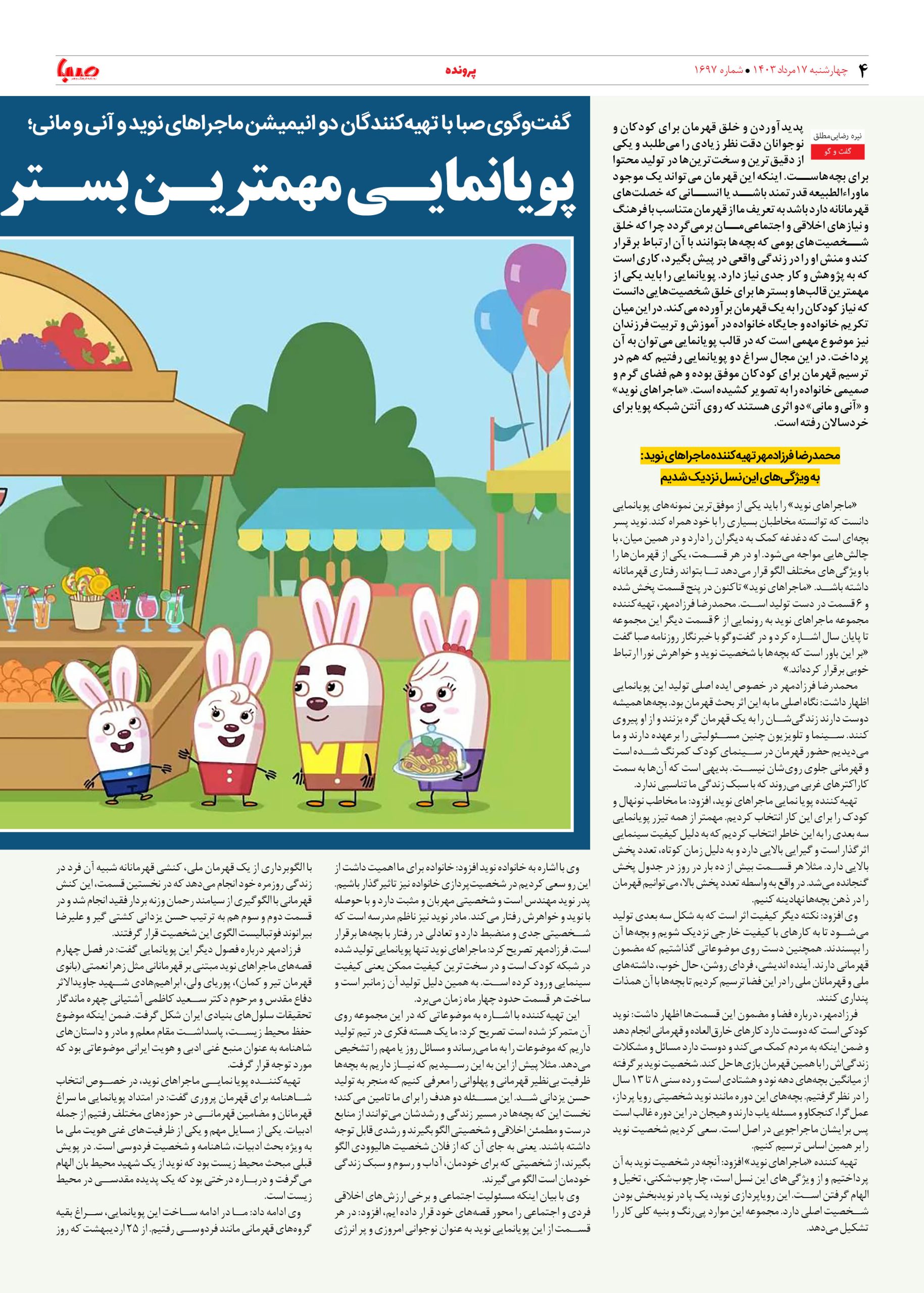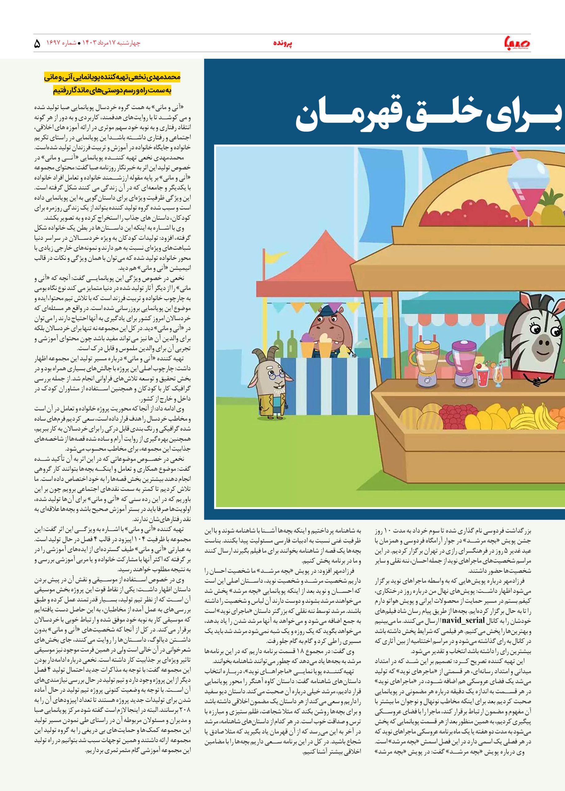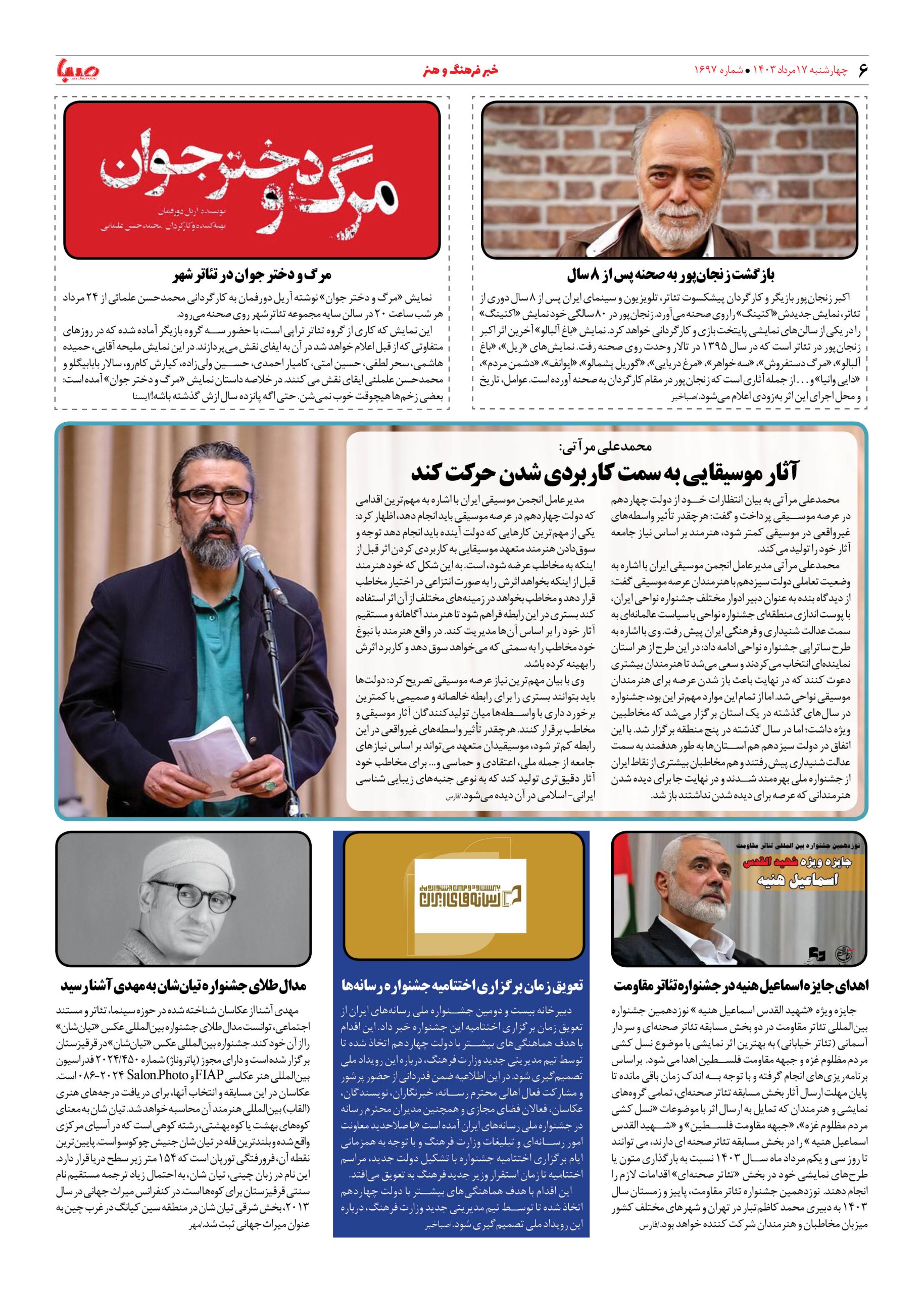 شماره ۱۶۹۷| روزنامه صبا چهارشنبه ۱۷ مرداد ۱۴۰۳