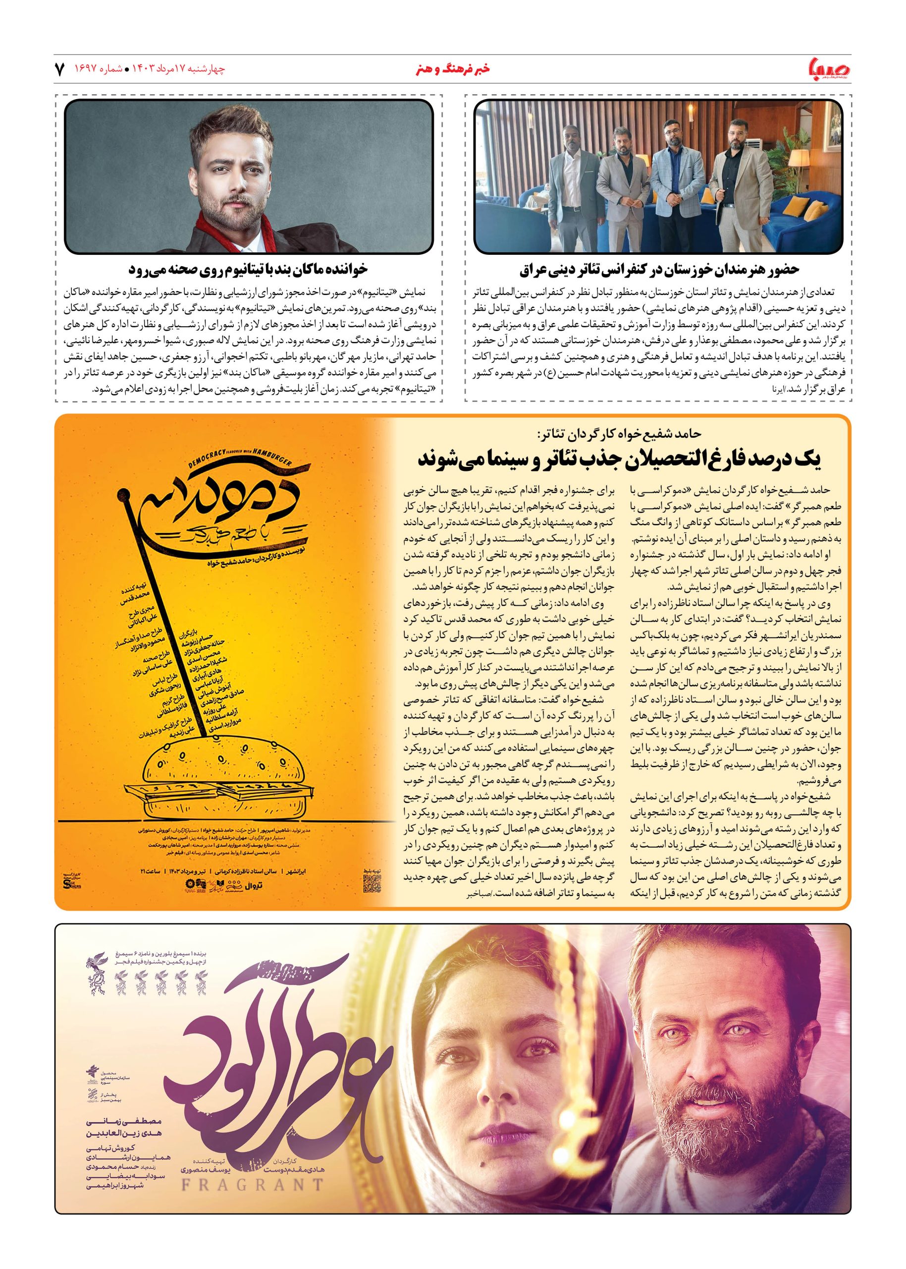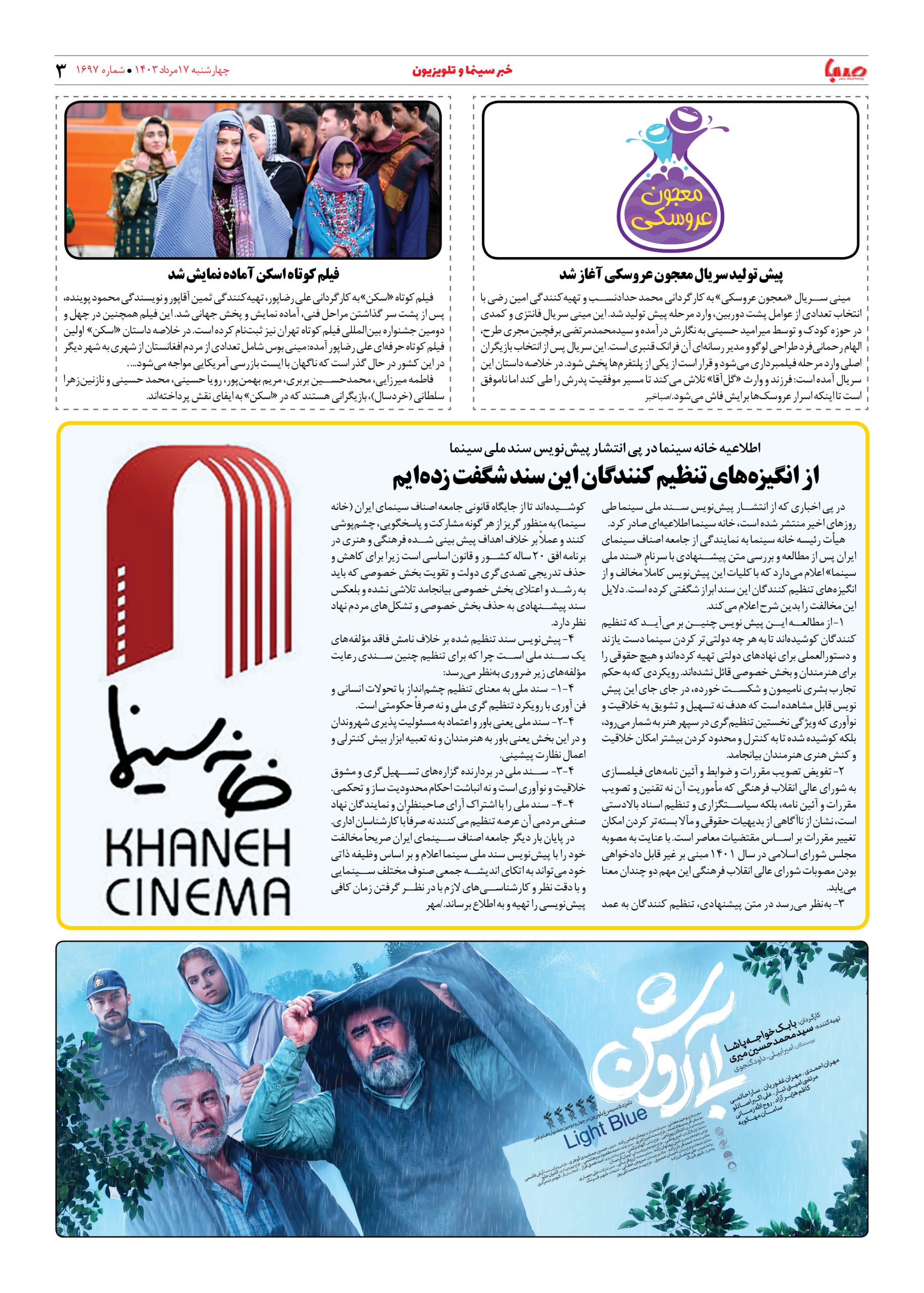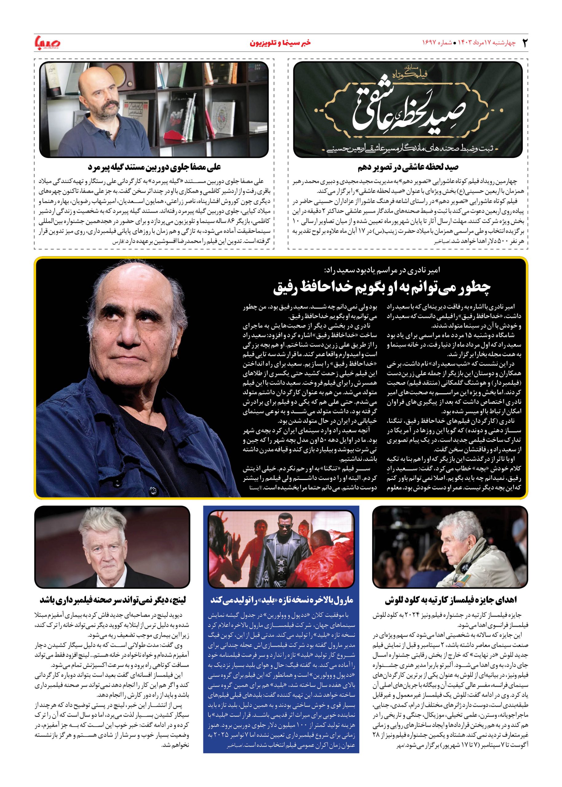 شماره ۱۶۹۷| روزنامه صبا چهارشنبه ۱۷ مرداد ۱۴۰۳