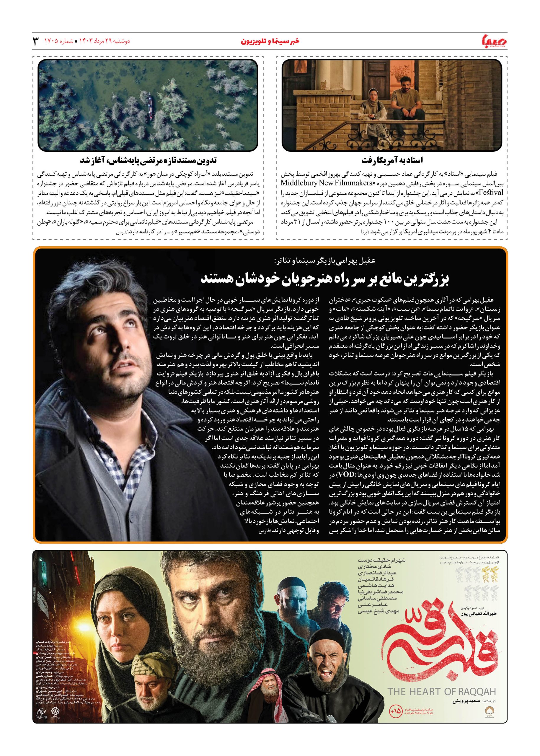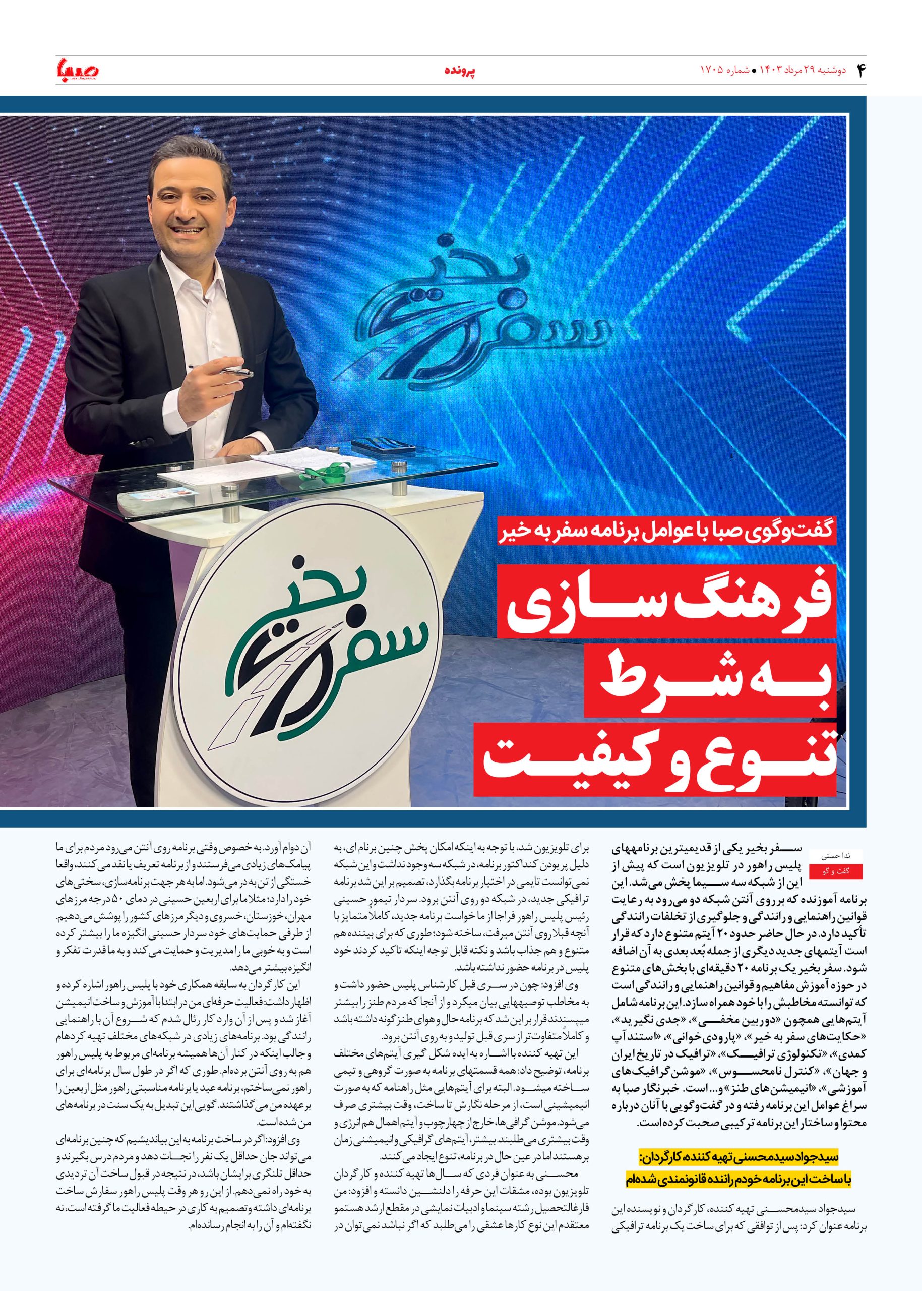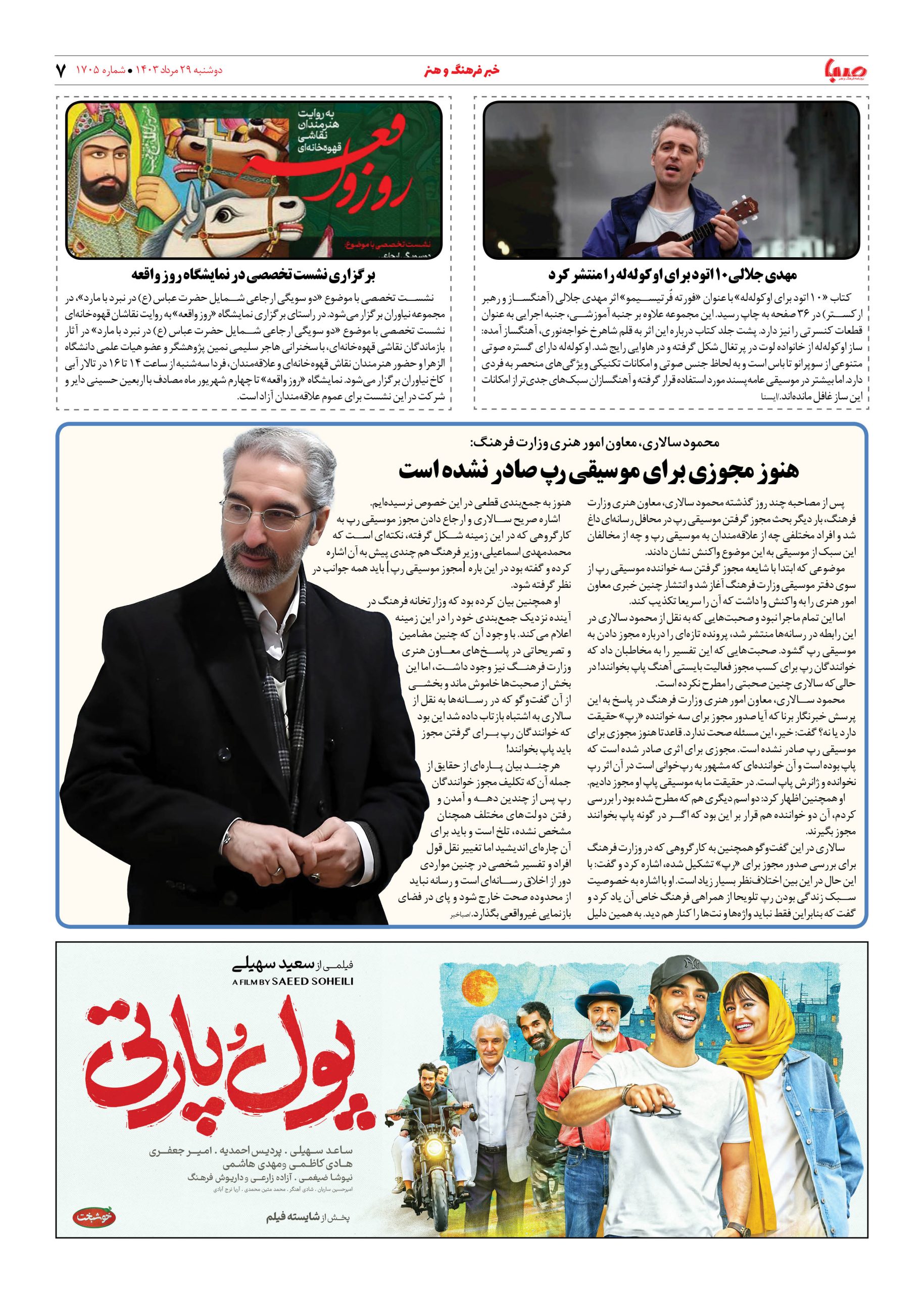 شماره ۱۷۰۵| روزنامه صبا دوشنبه ۲۹ مرداد ۱۴۰۳