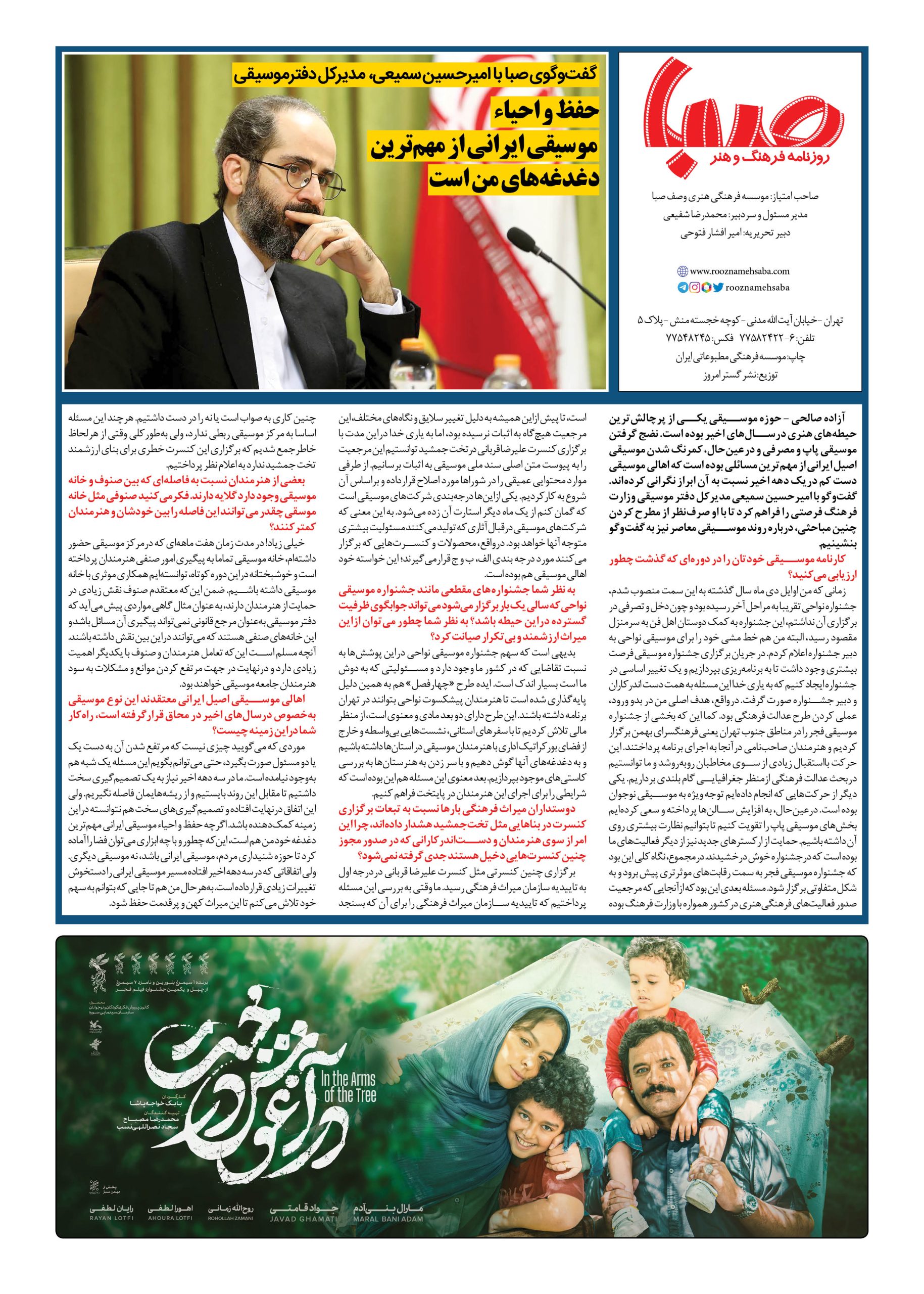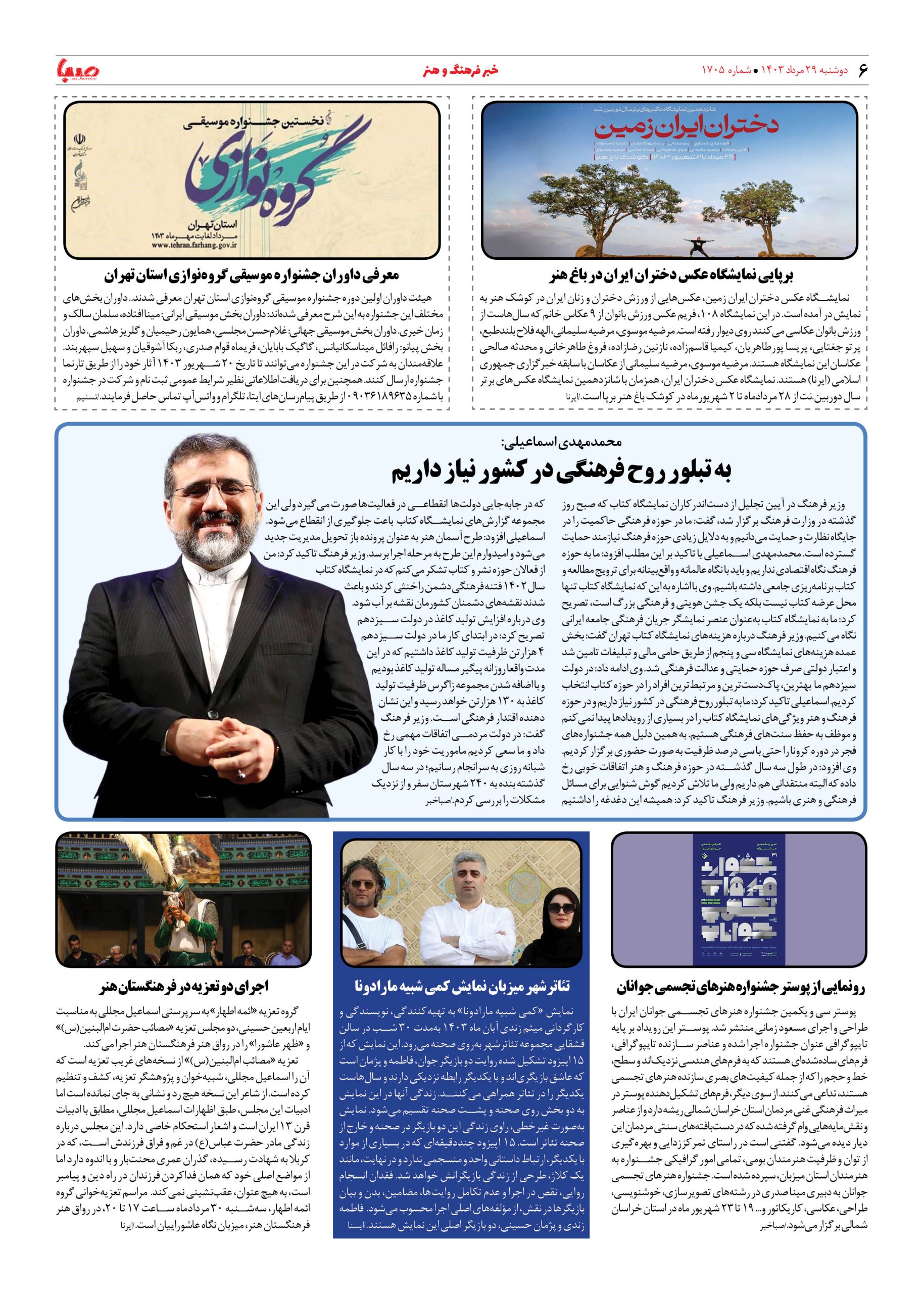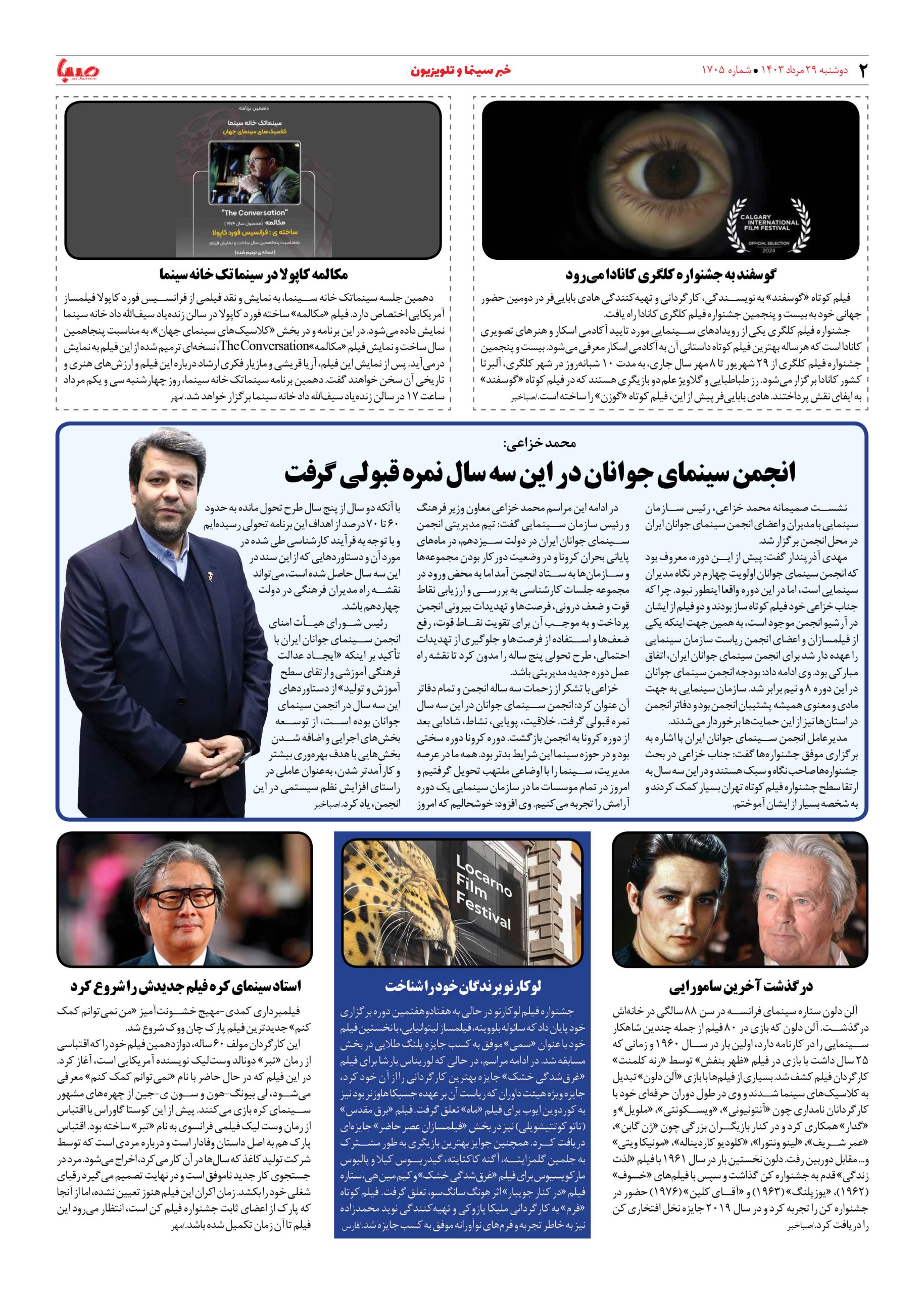 شماره ۱۷۰۵| روزنامه صبا دوشنبه ۲۹ مرداد ۱۴۰۳