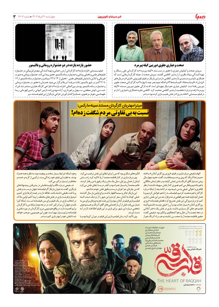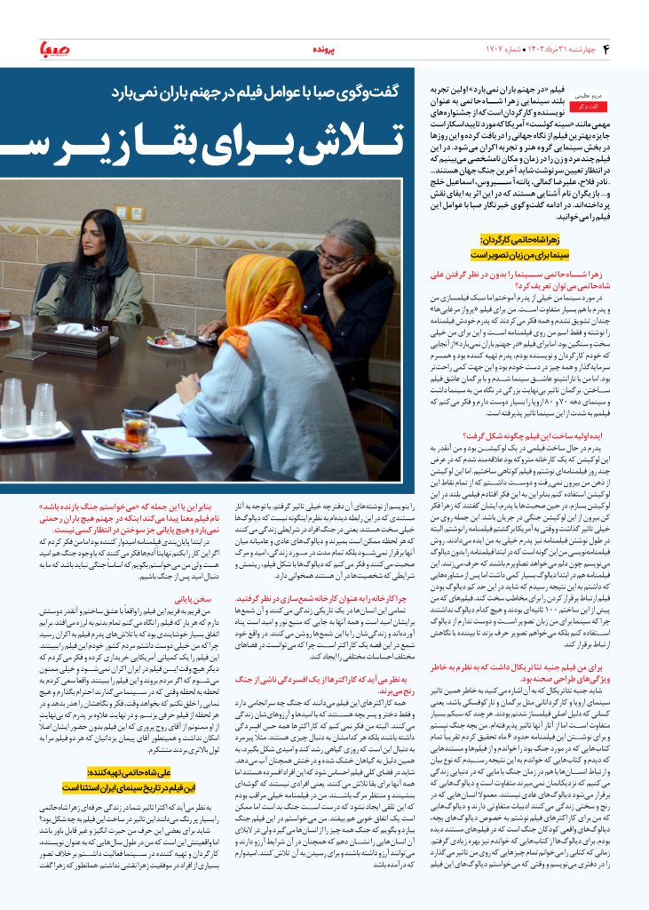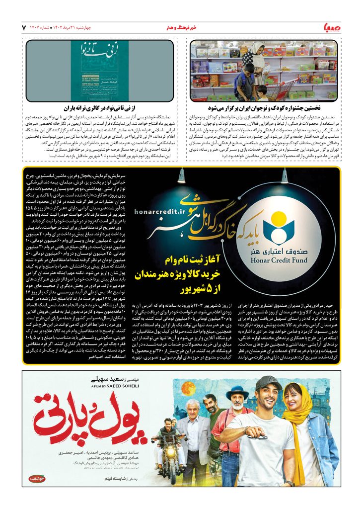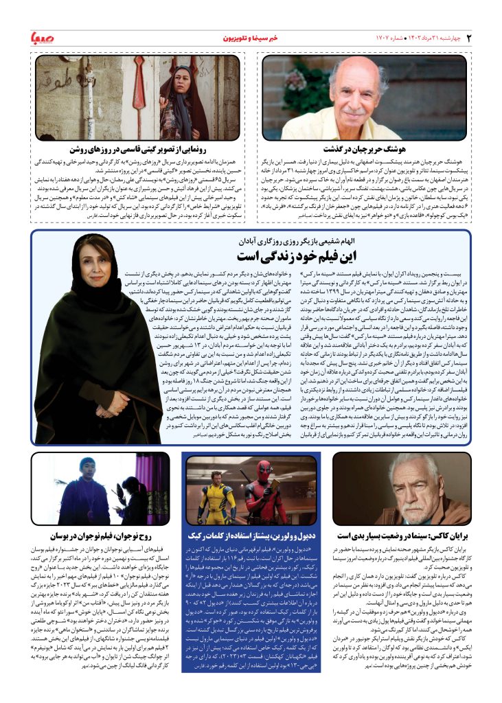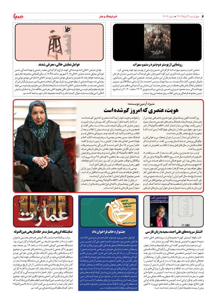 شماره ۱۷۰۷| روزنامه صبا چهارشنبه ۳۱ مرداد ۱۴۰۳