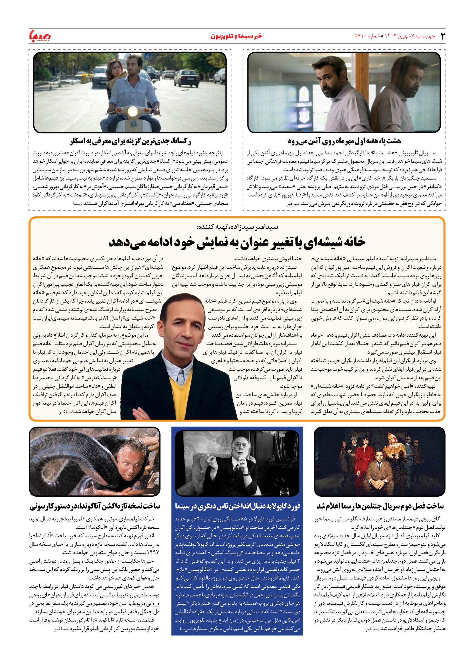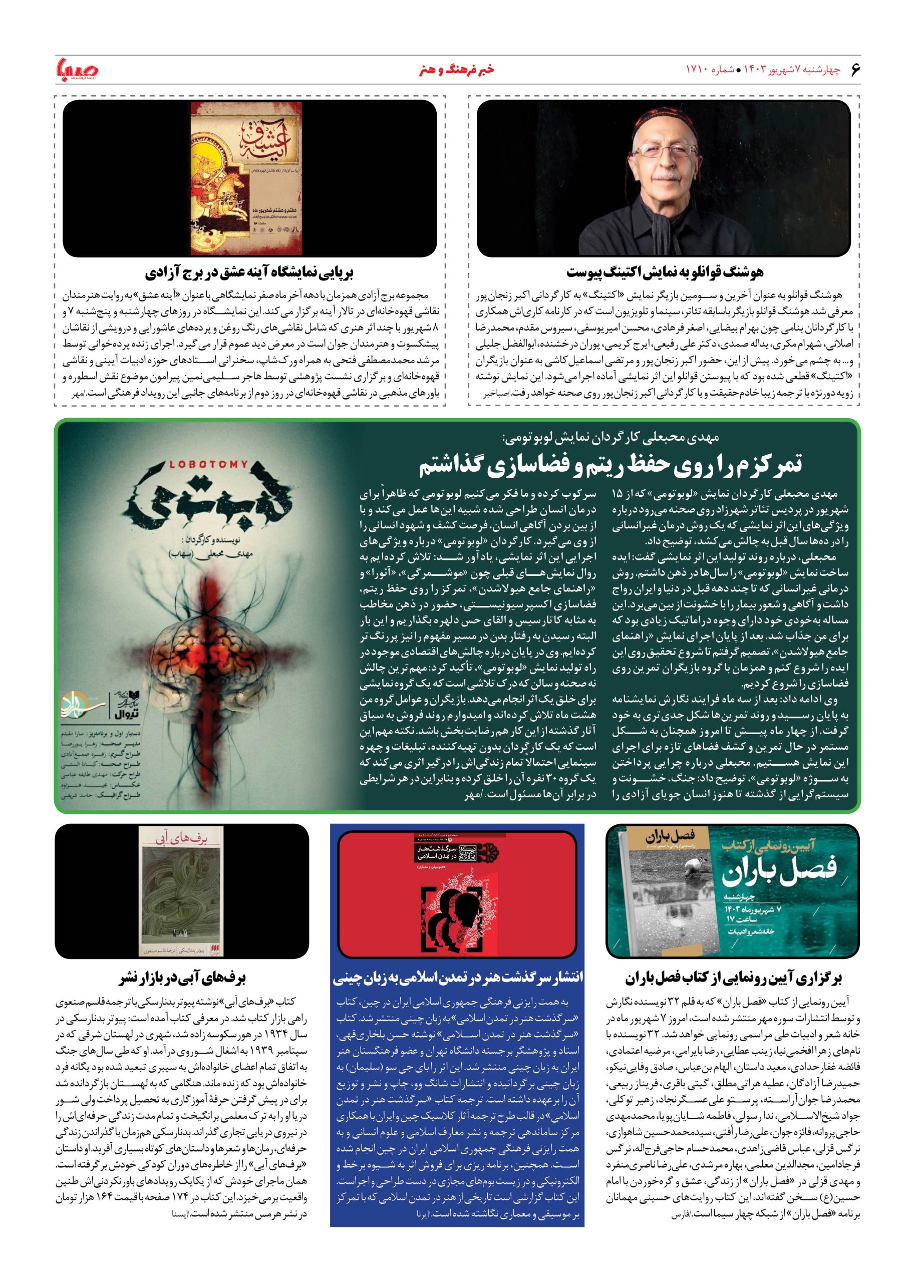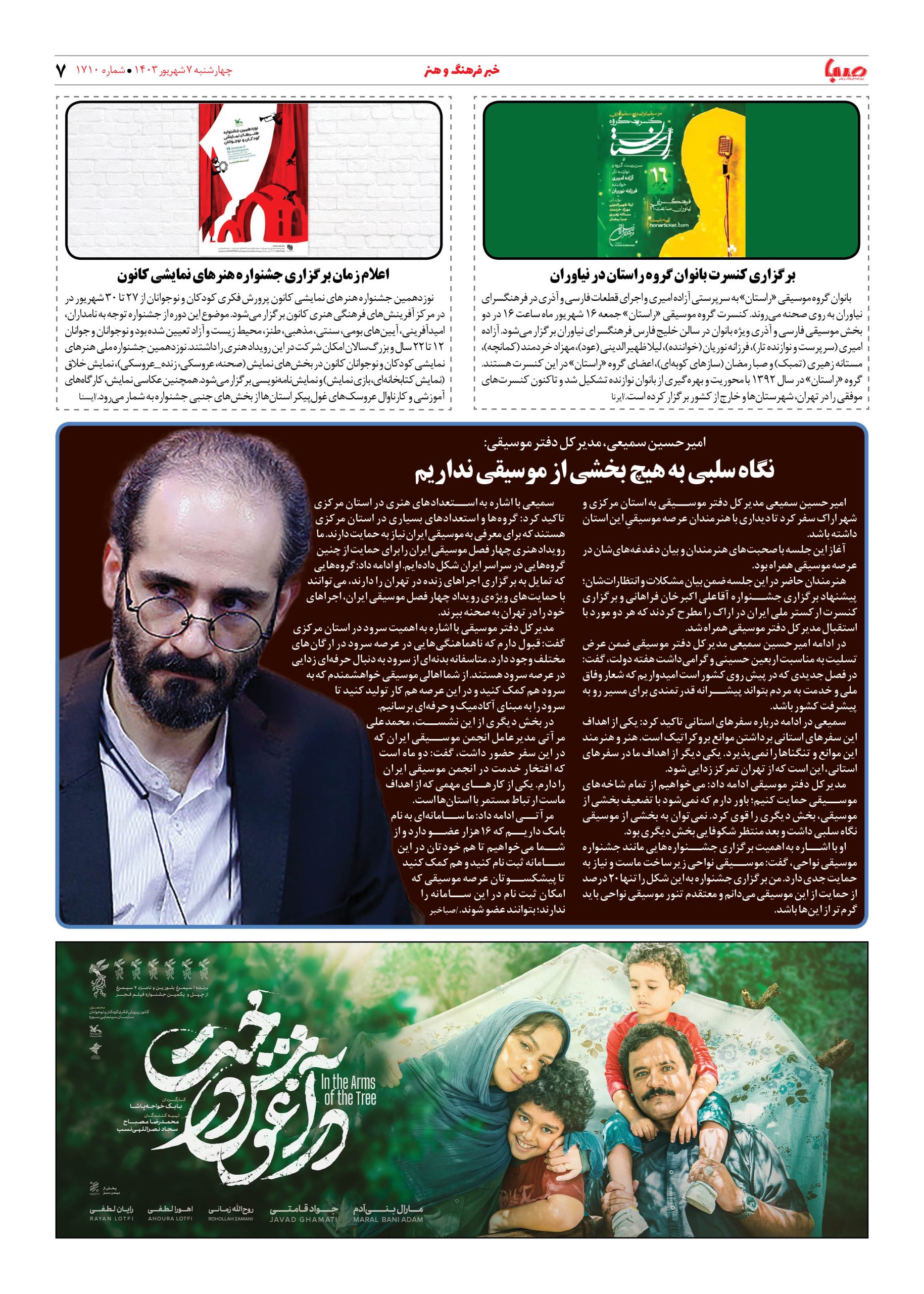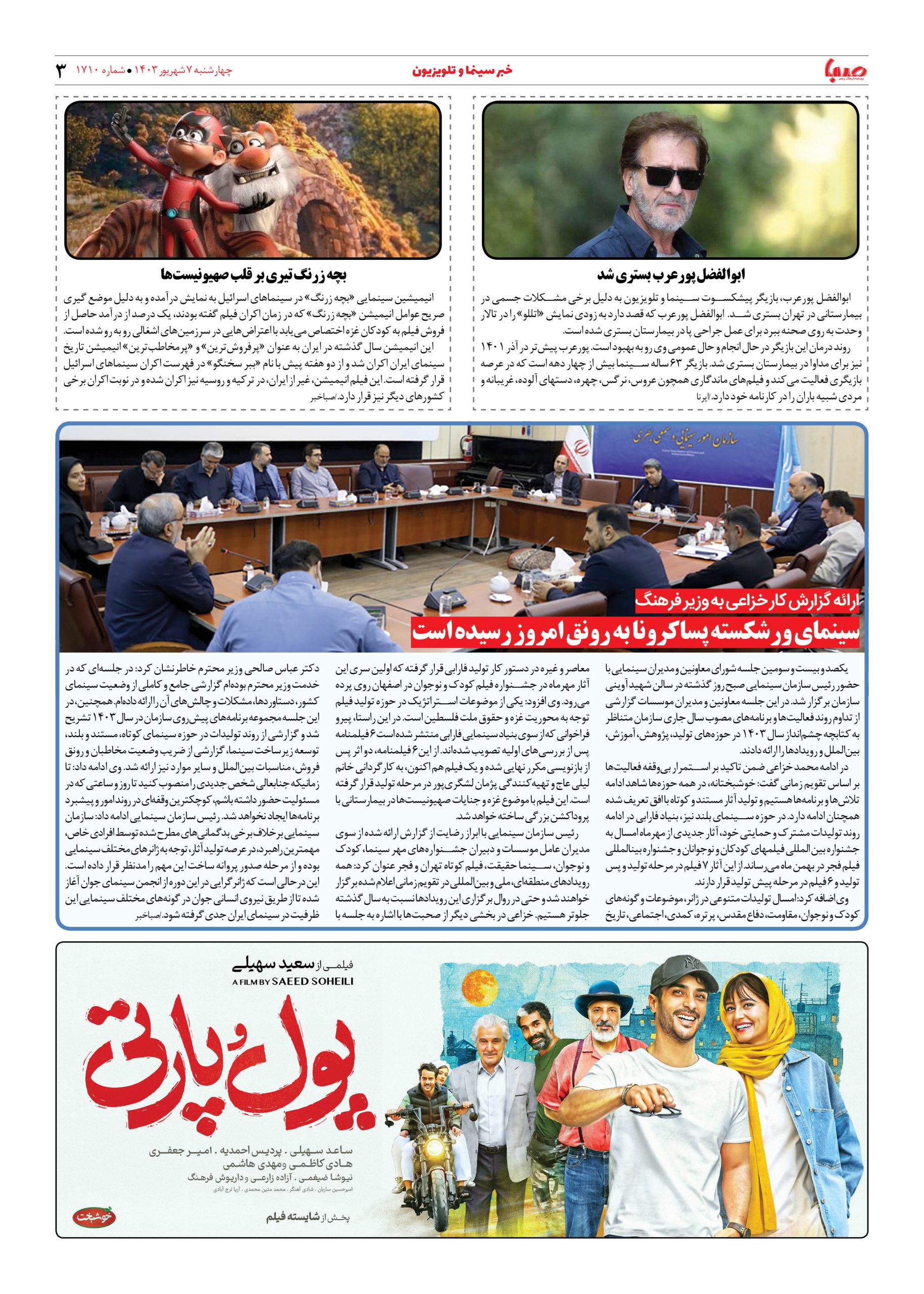شماره ۱۷۱۰| روزنامه صبا چهارشنبه ۷ شهریور ۱۴۰۳