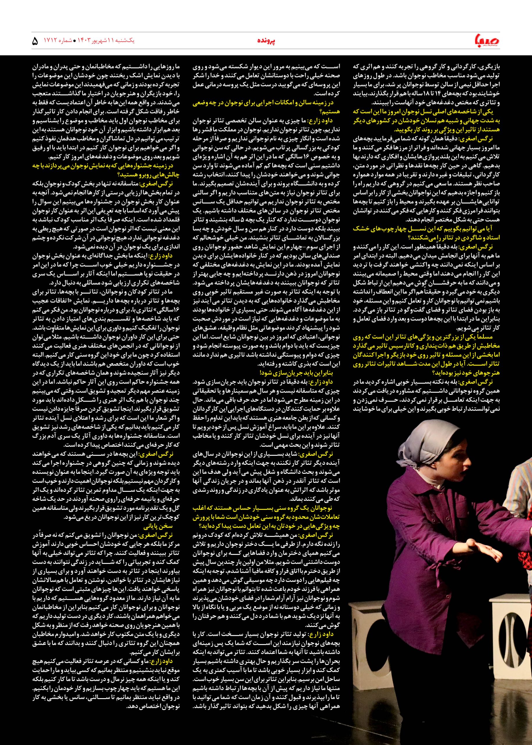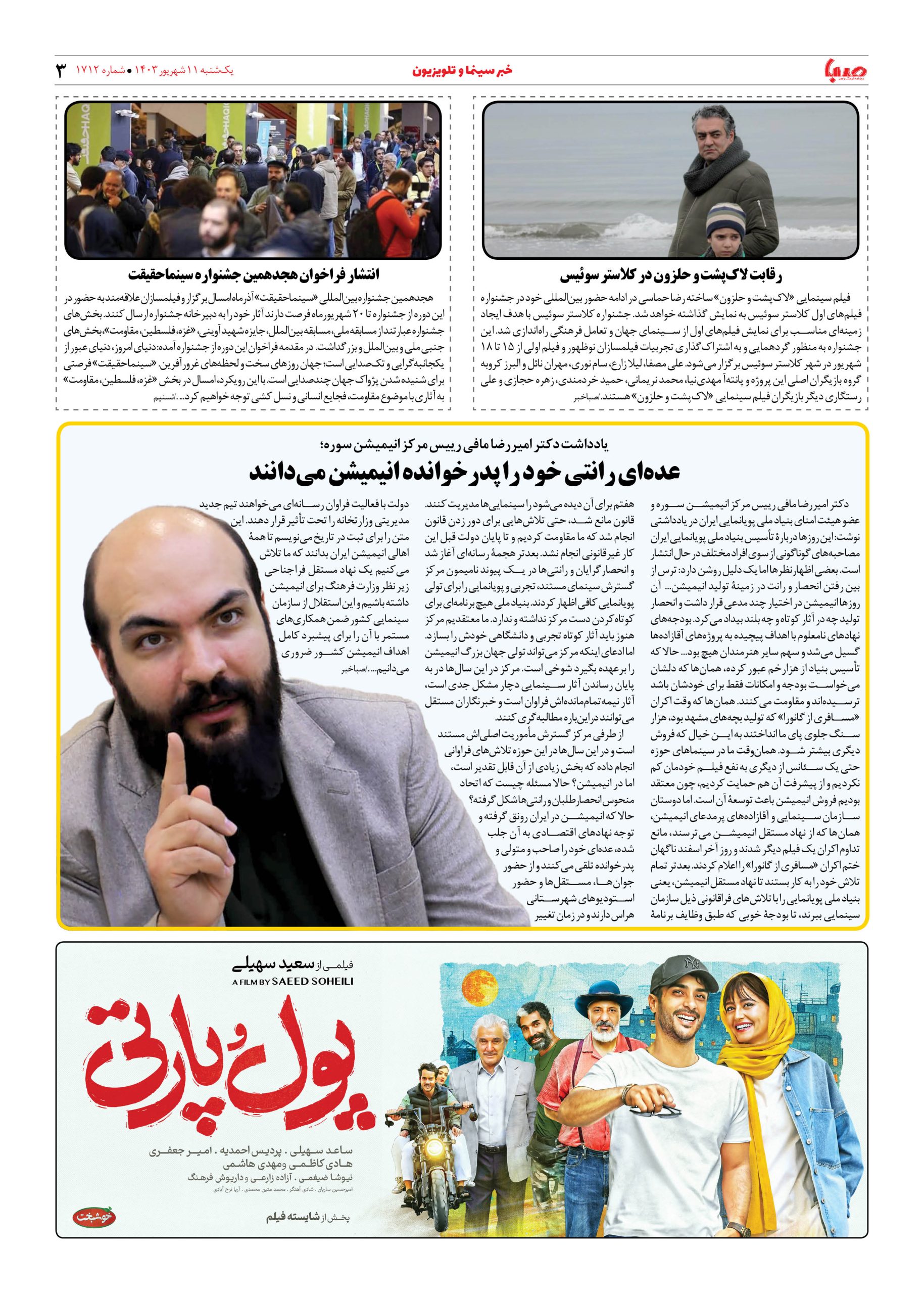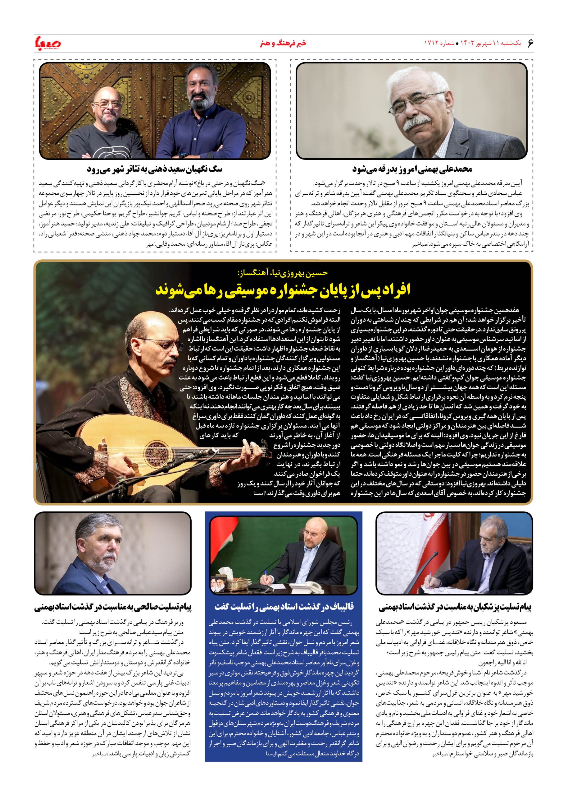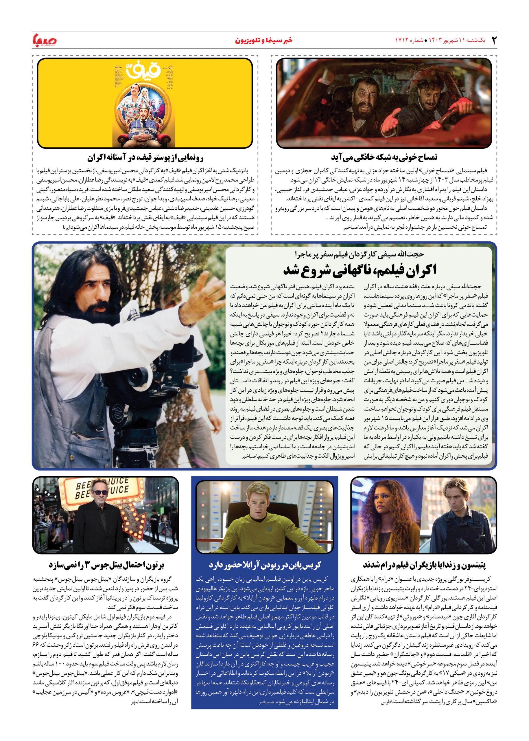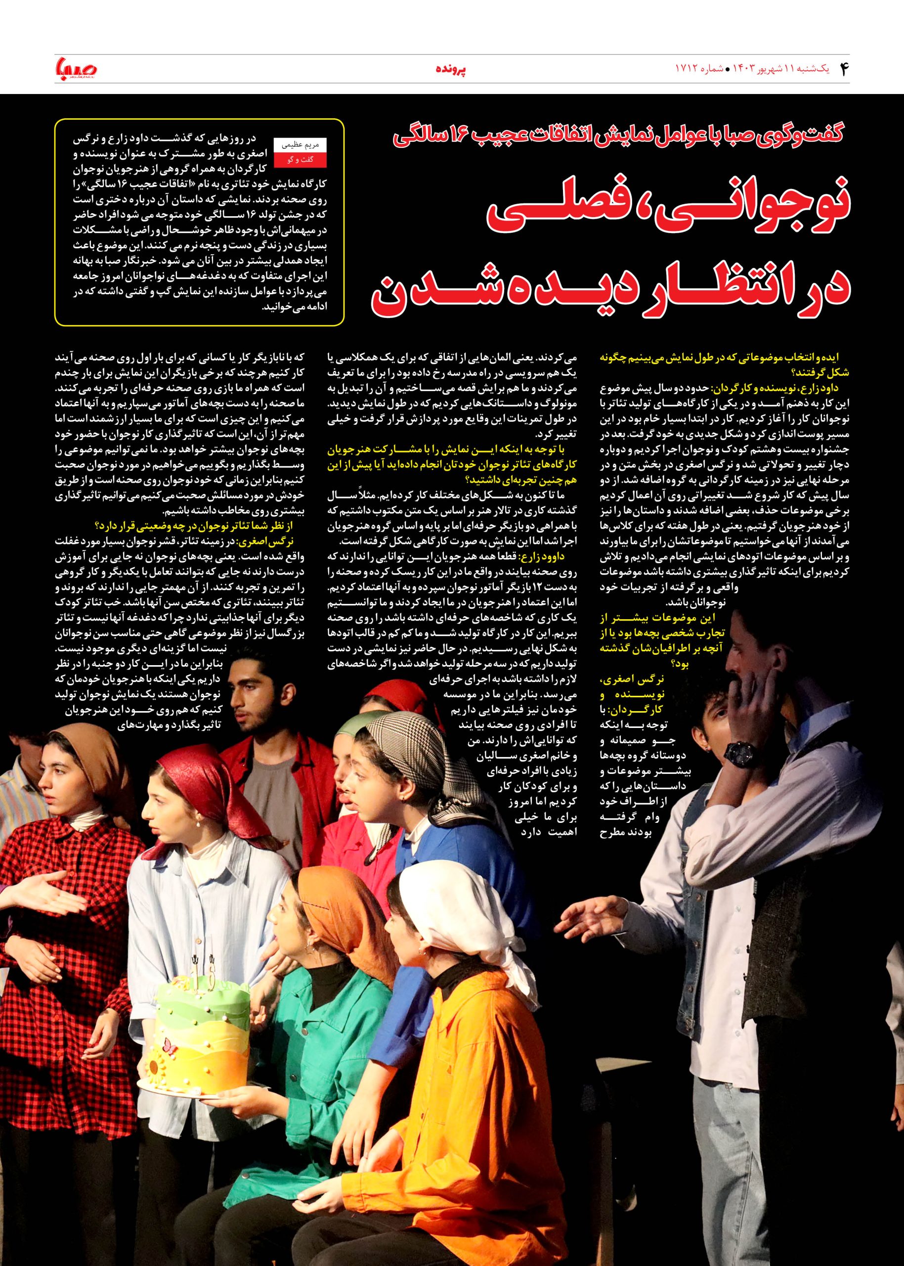 شماره ۱۷۱۲| روزنامه صبا یکشنبه ۱۱ شهریور ۱۴۰۳