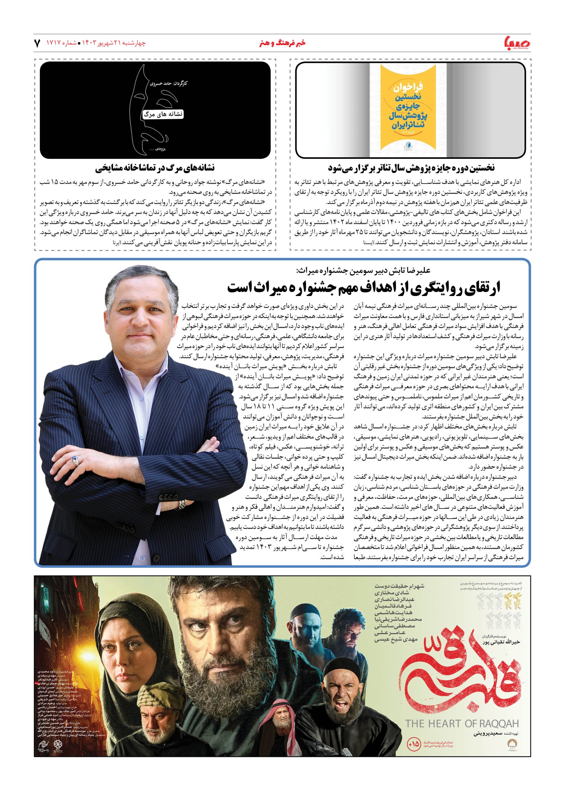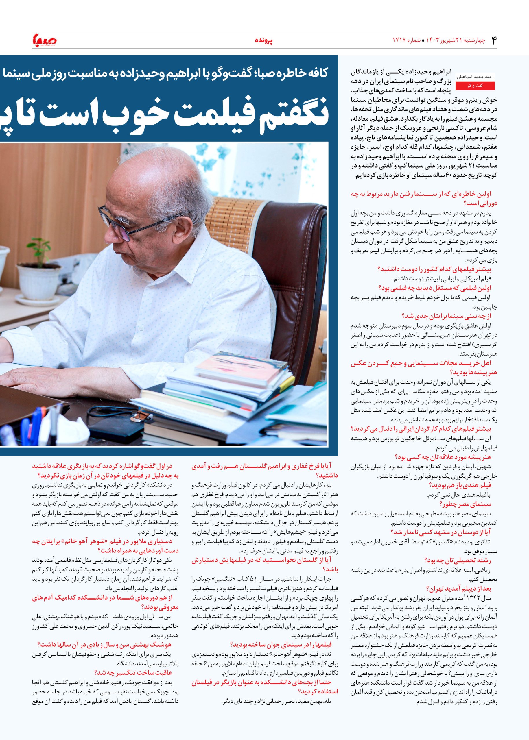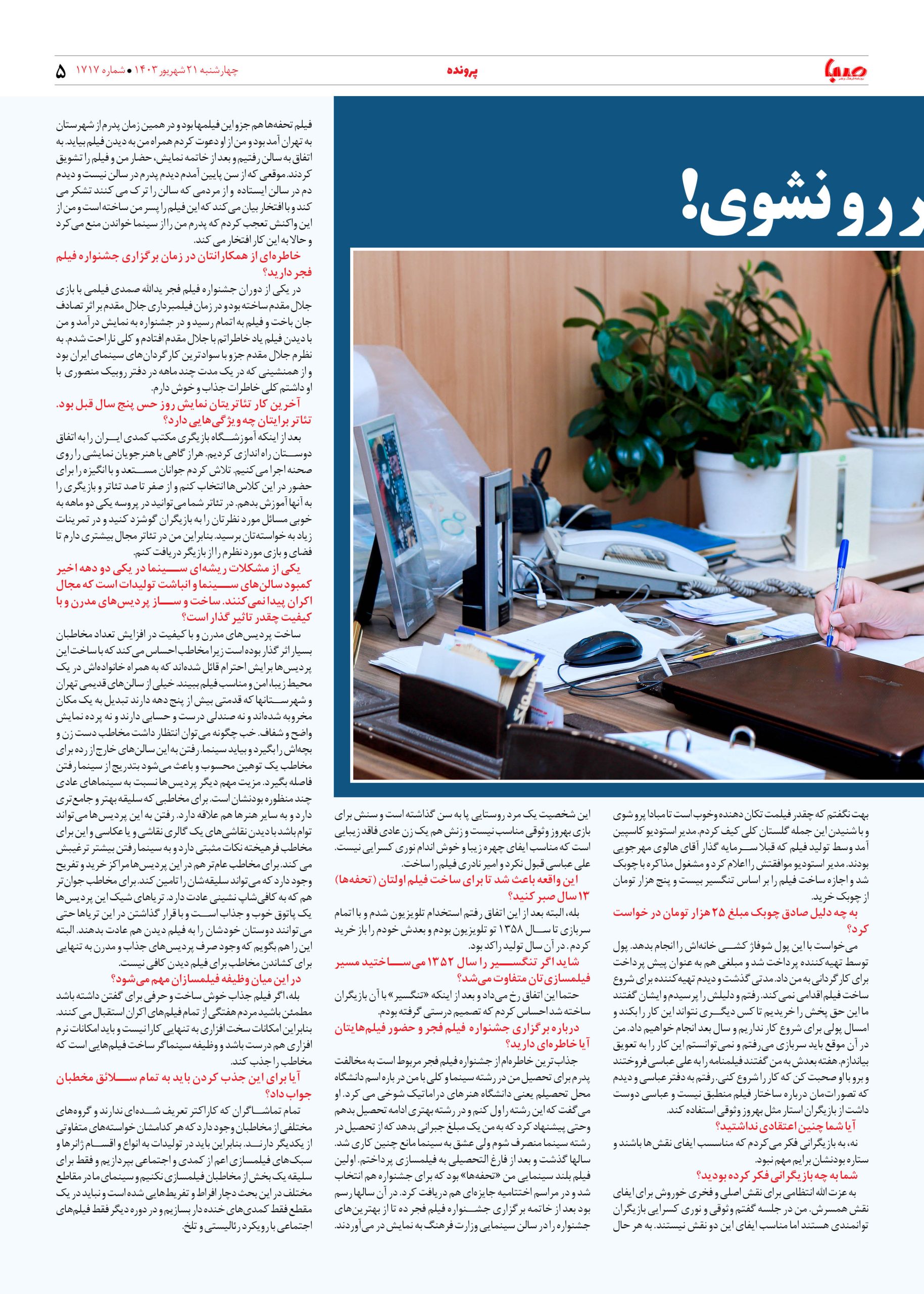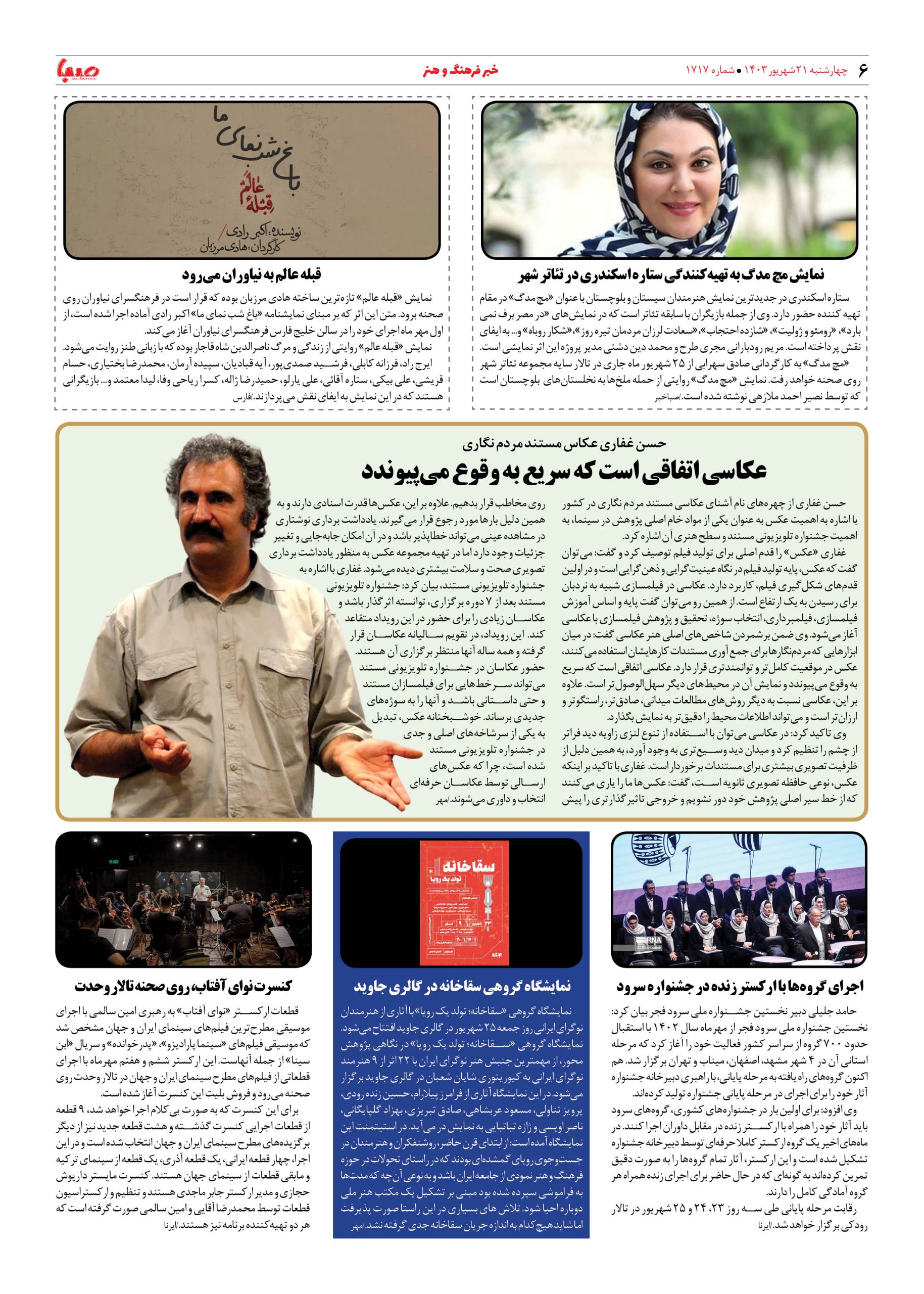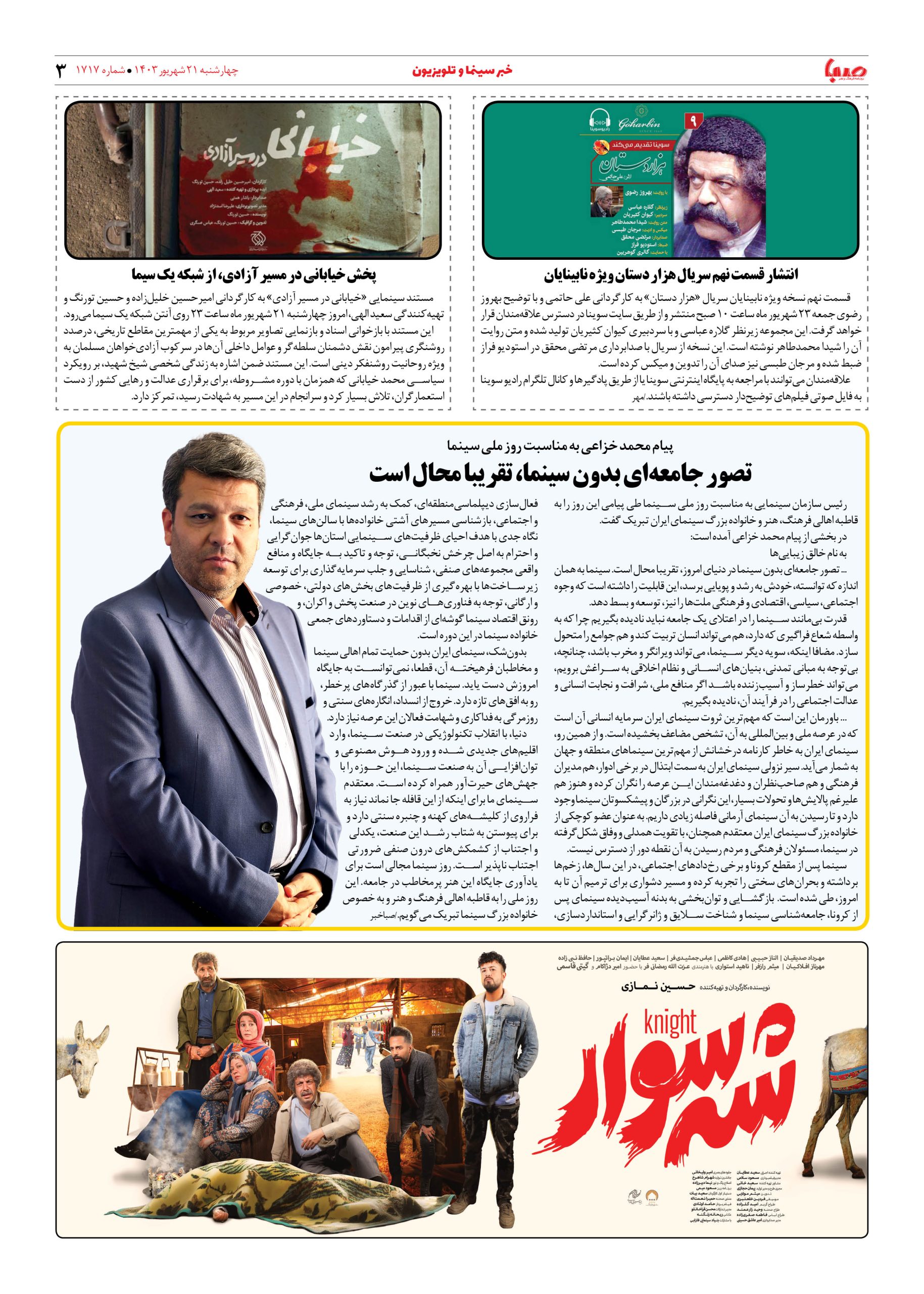 شماره ۱۷۱۷| روزنامه صبا شنبه ۲۱ شهریور ۱۴۰۳