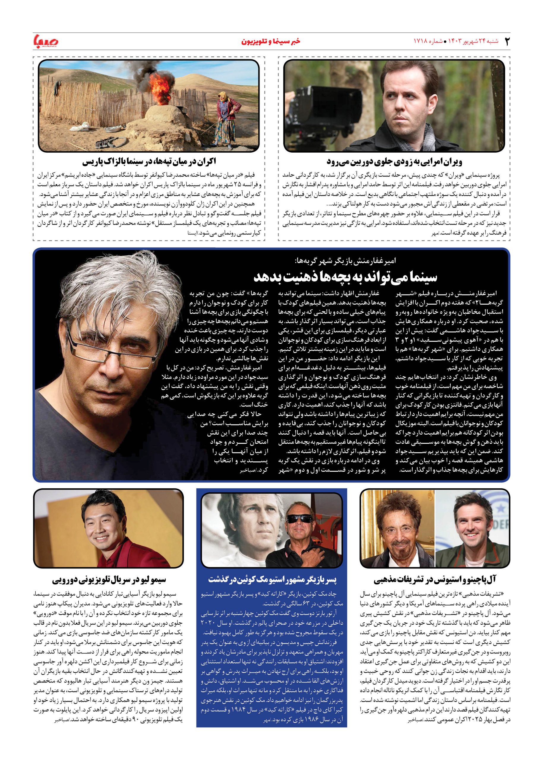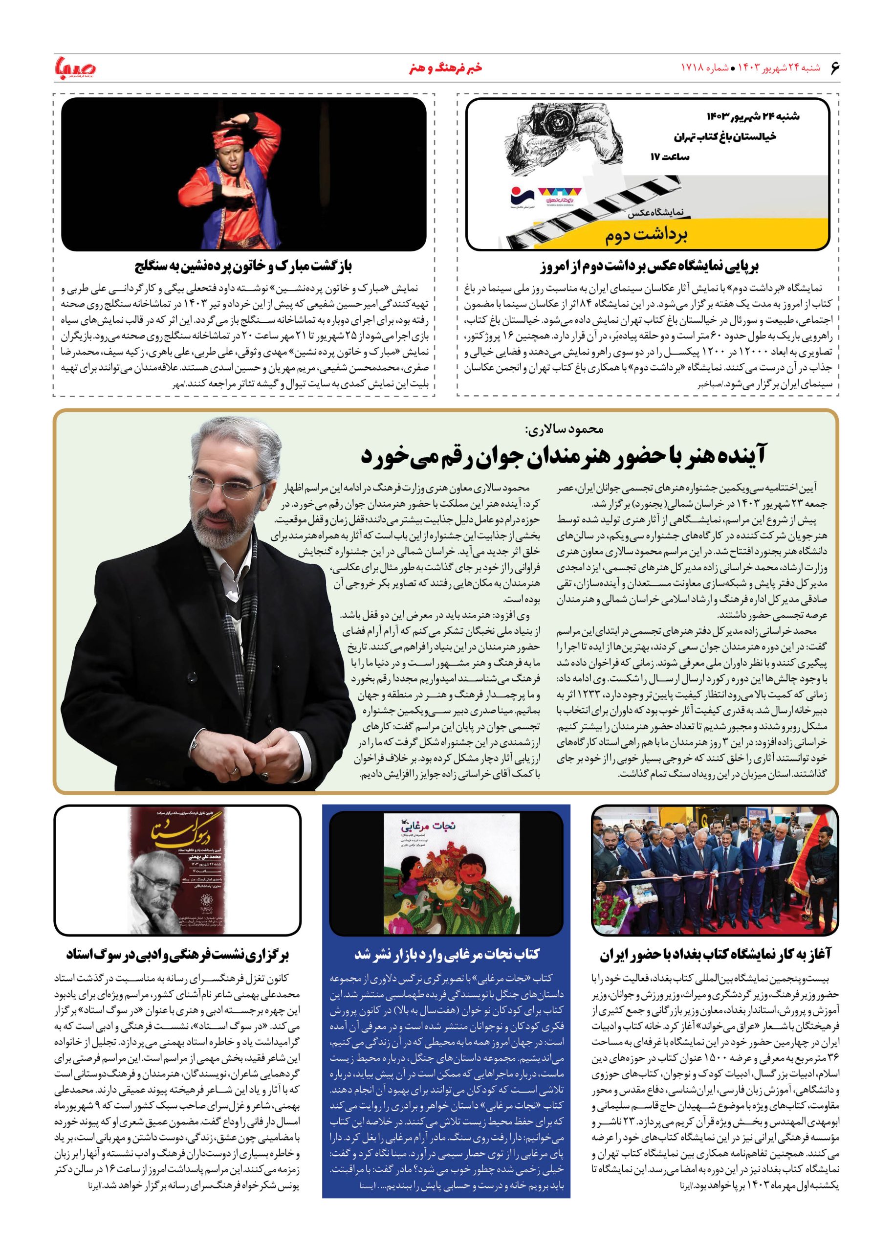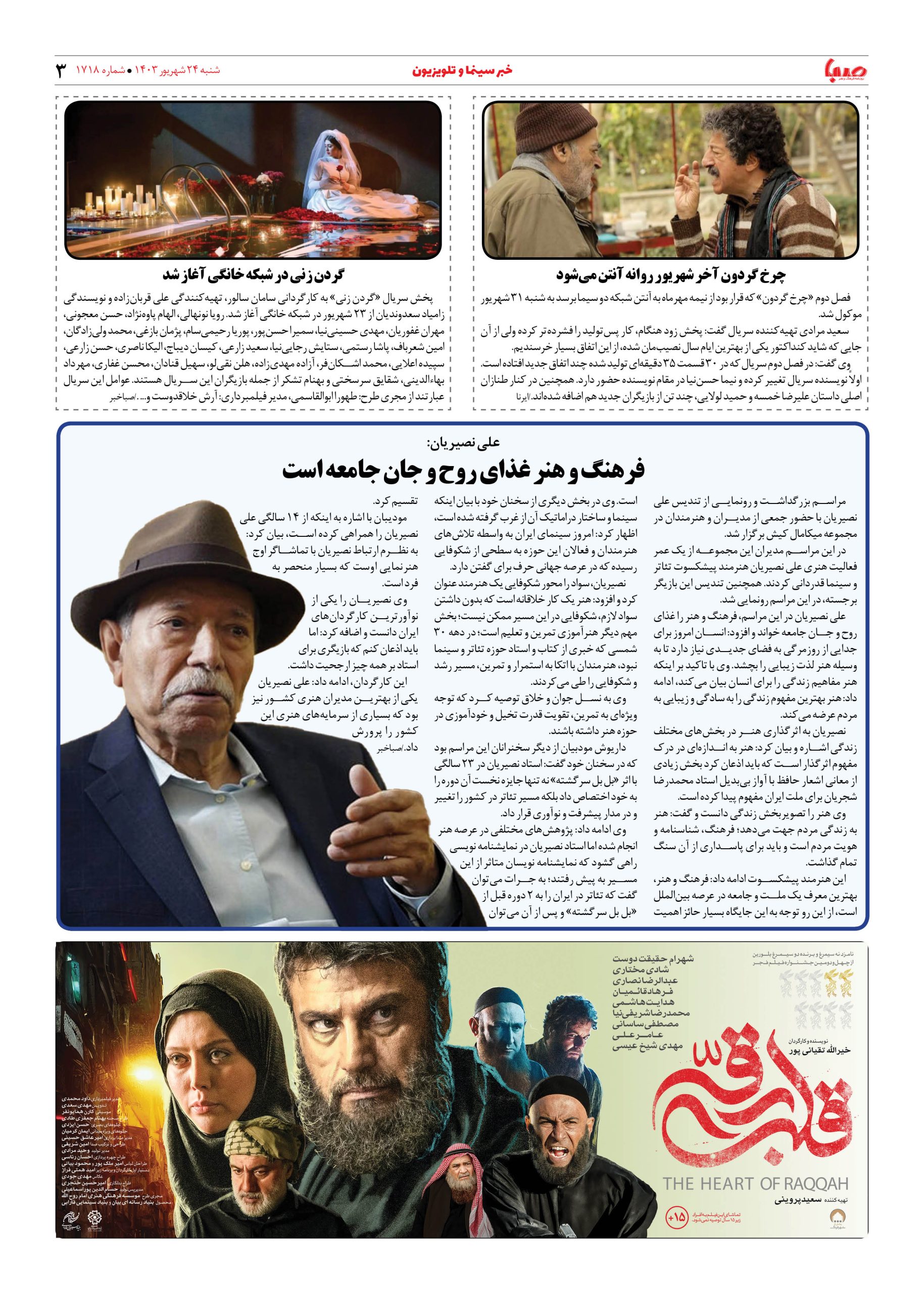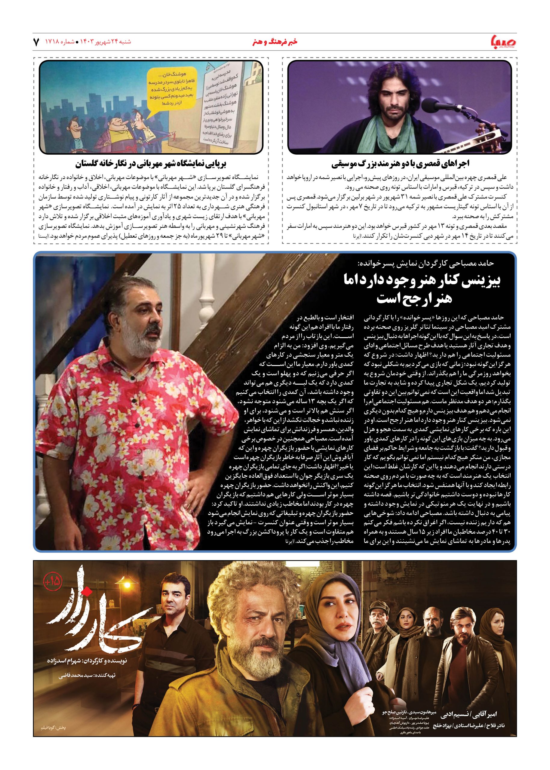 شماره ۱۷۱۸| روزنامه صبا شنبه ۲۴ شهریور ۱۴۰۳