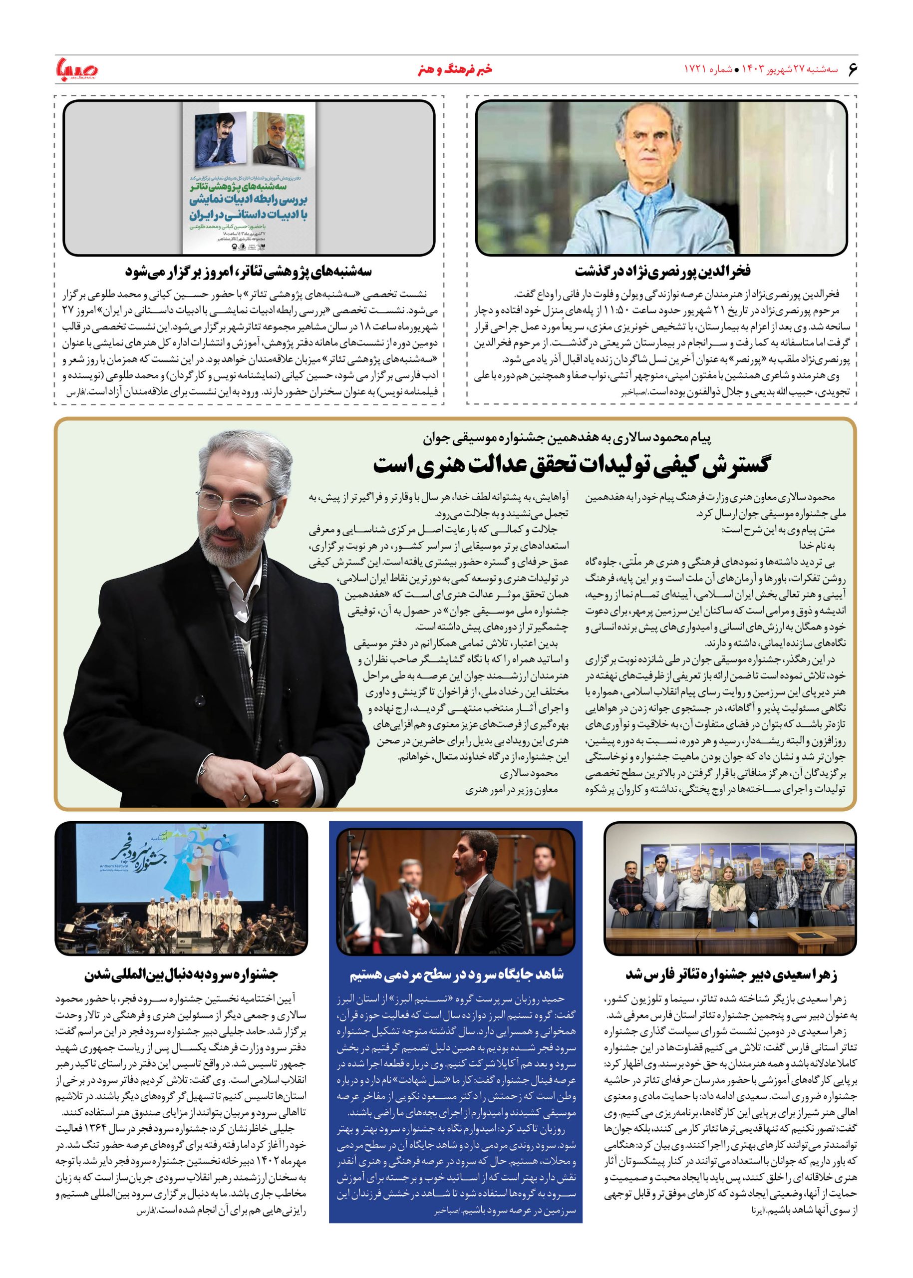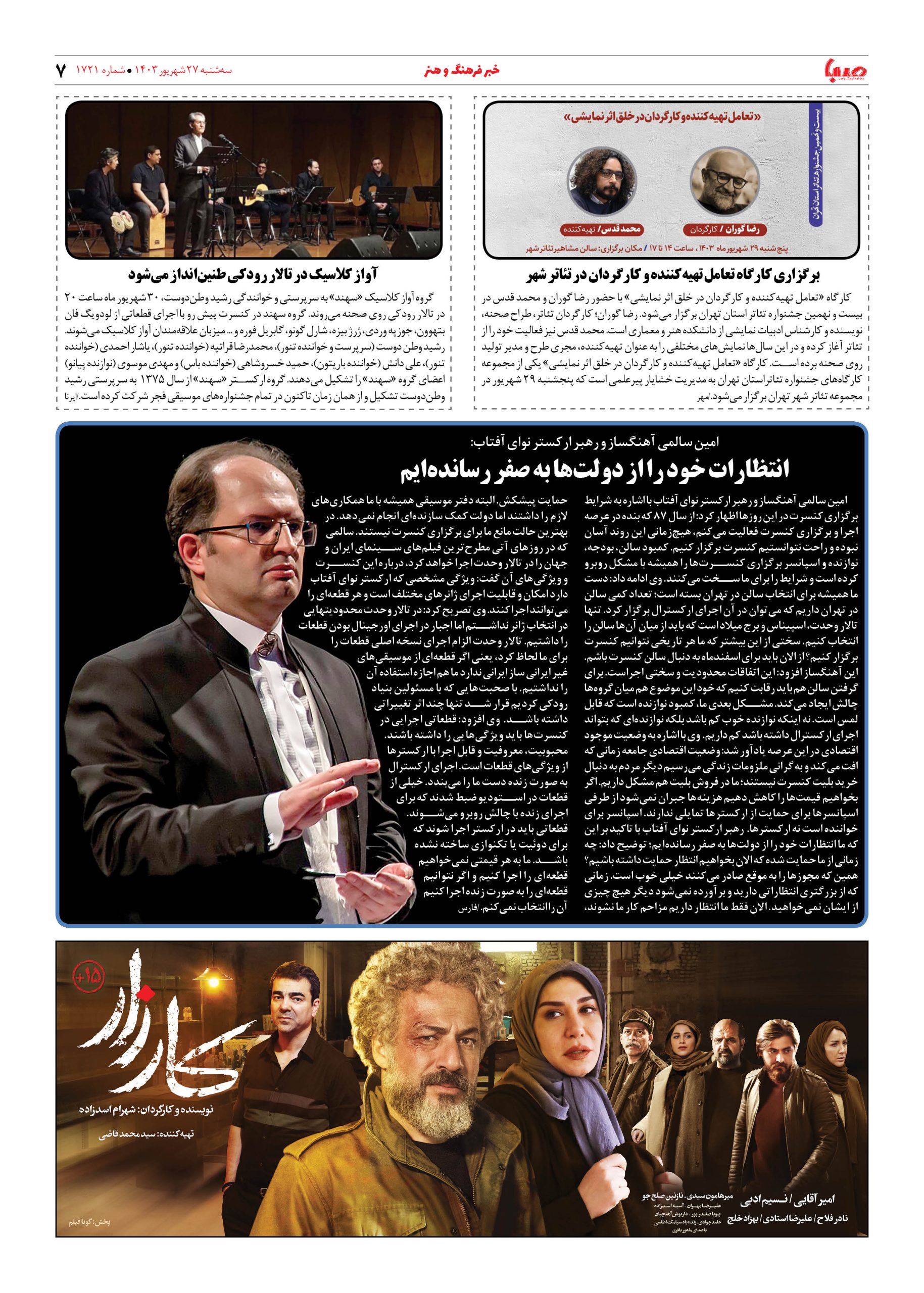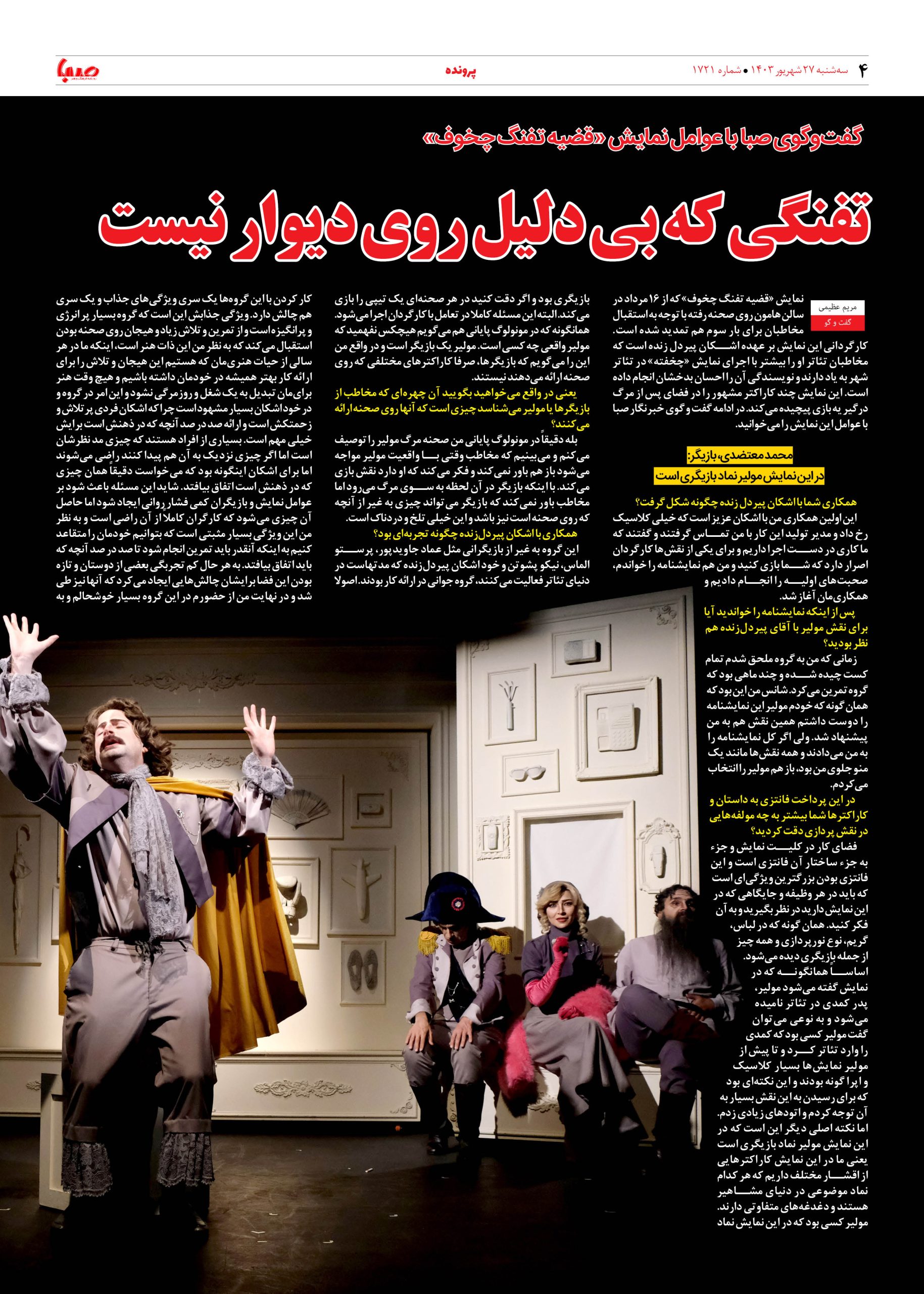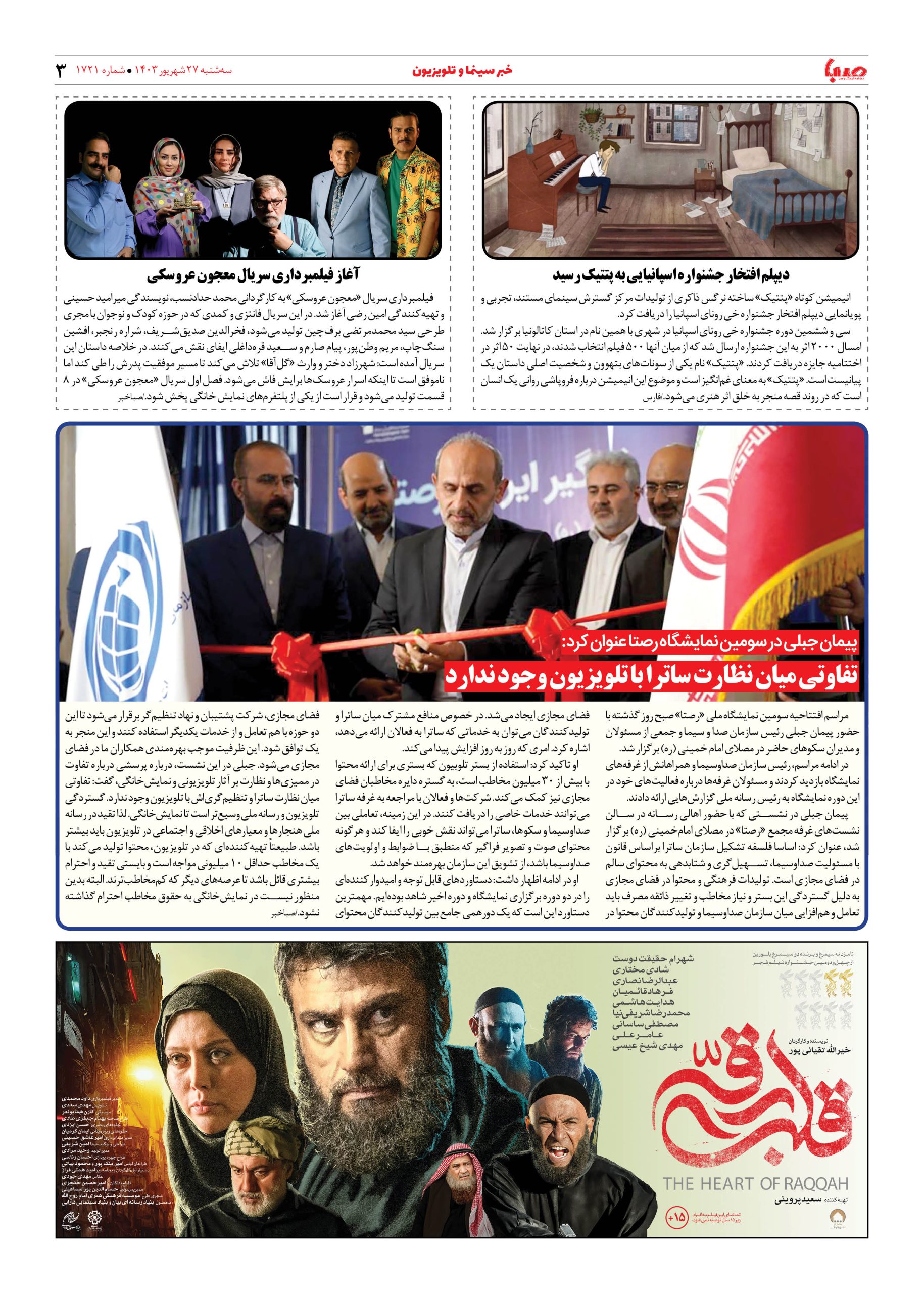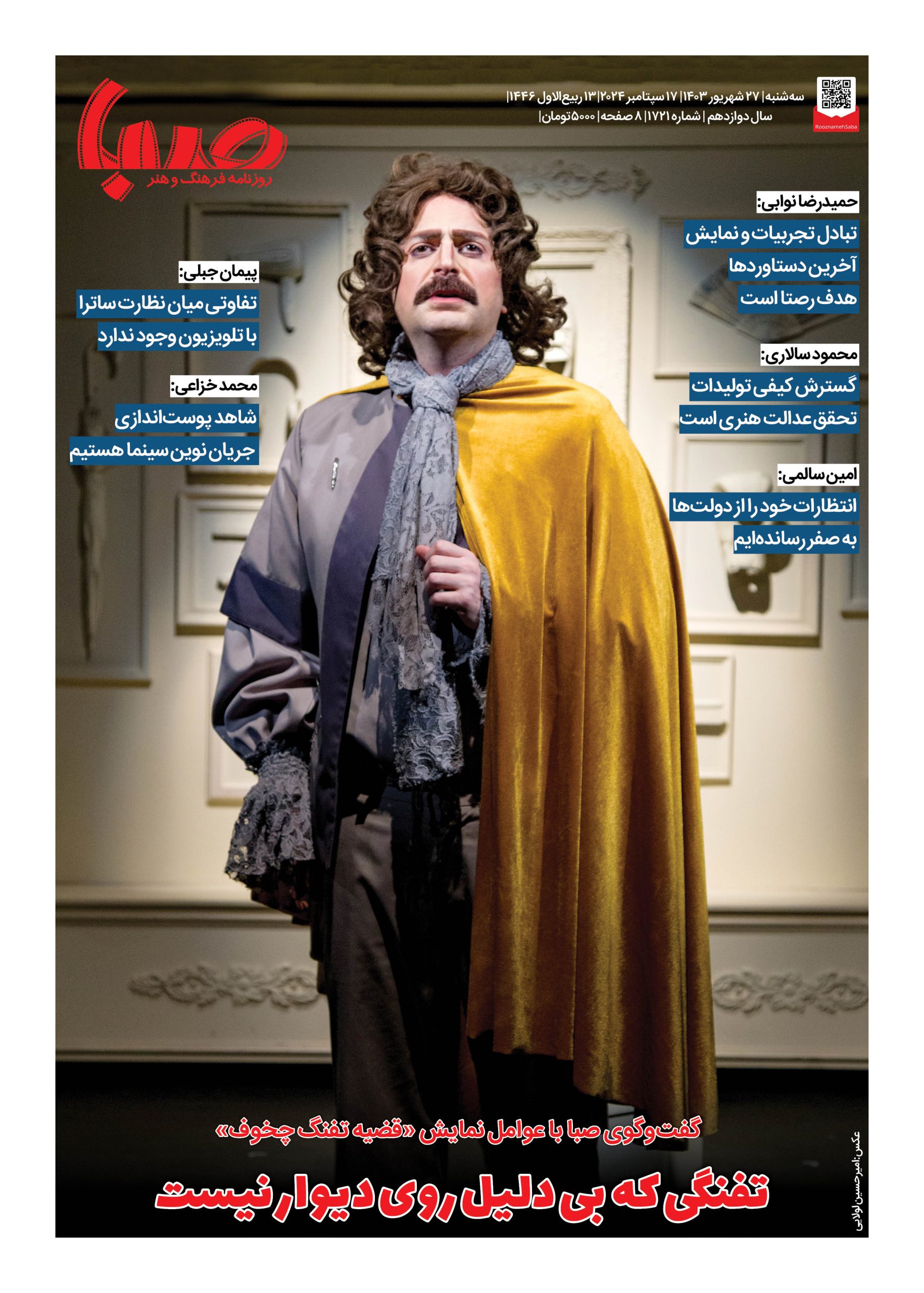 شماره ۱۷۲۱| روزنامه صبا سهشنبه ۲۷ شهریور ۱۴۰۳