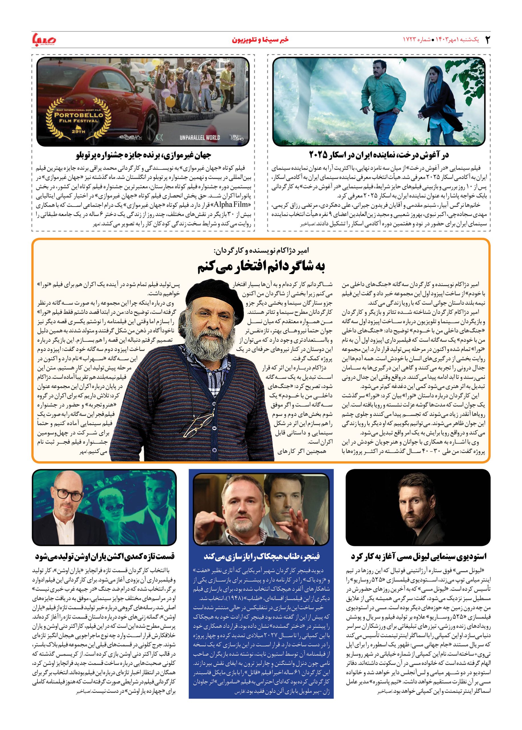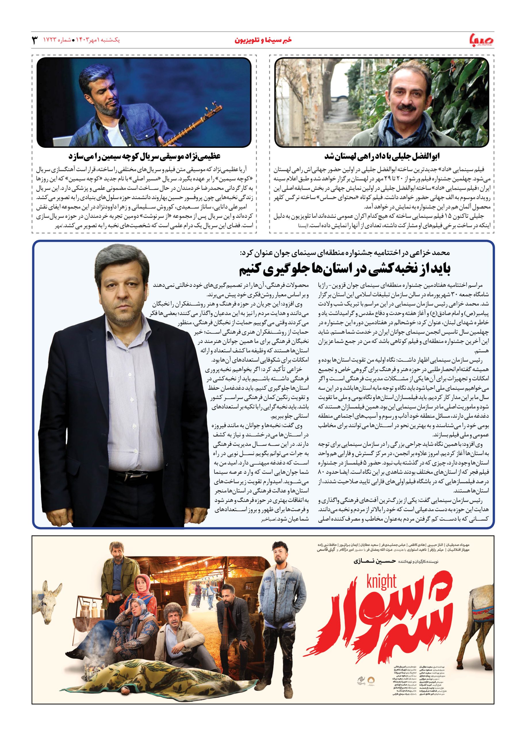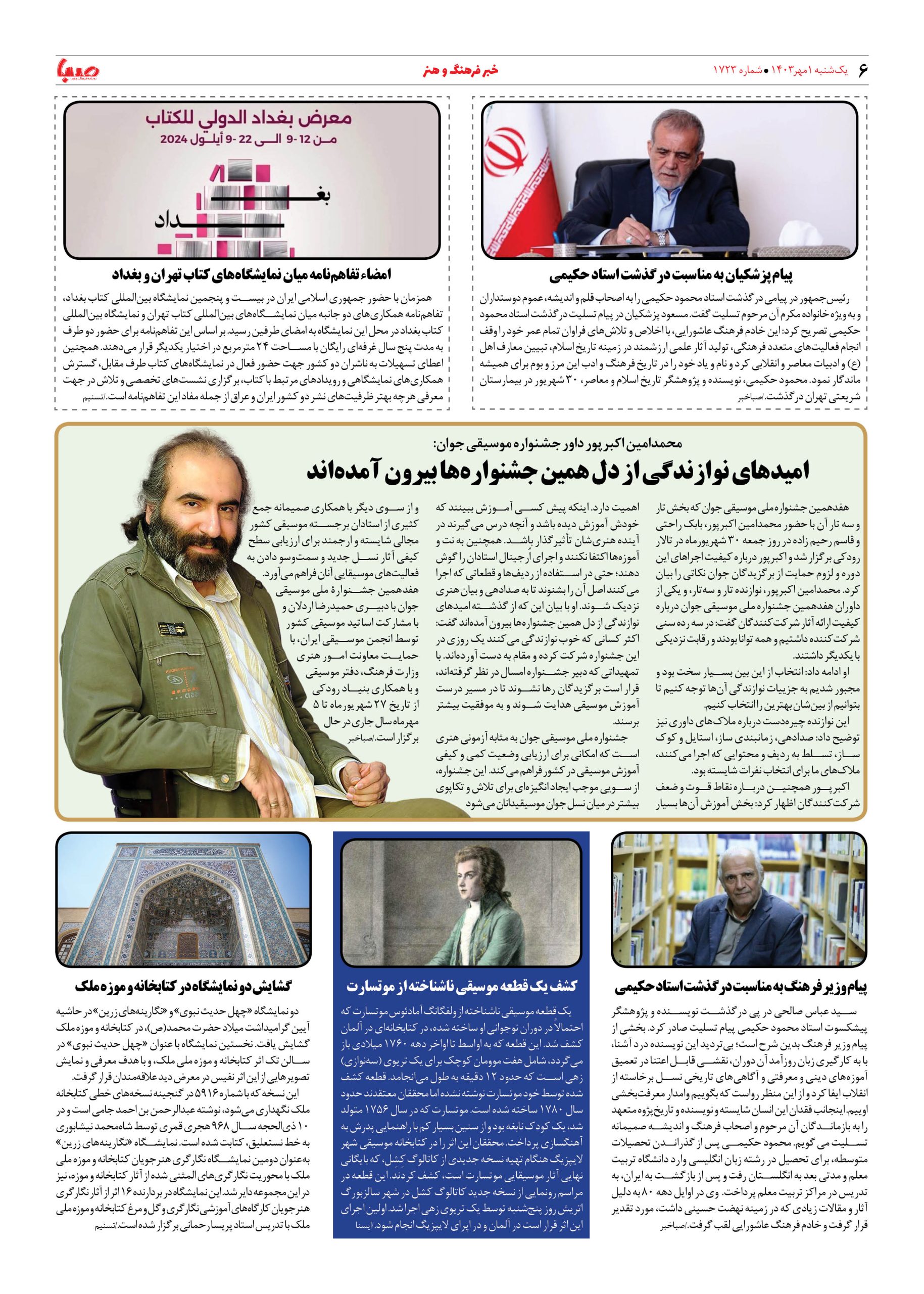 شماره ۱۷۲۳| روزنامه صبا یکشنبه ۱ مهر ۱۴۰۳