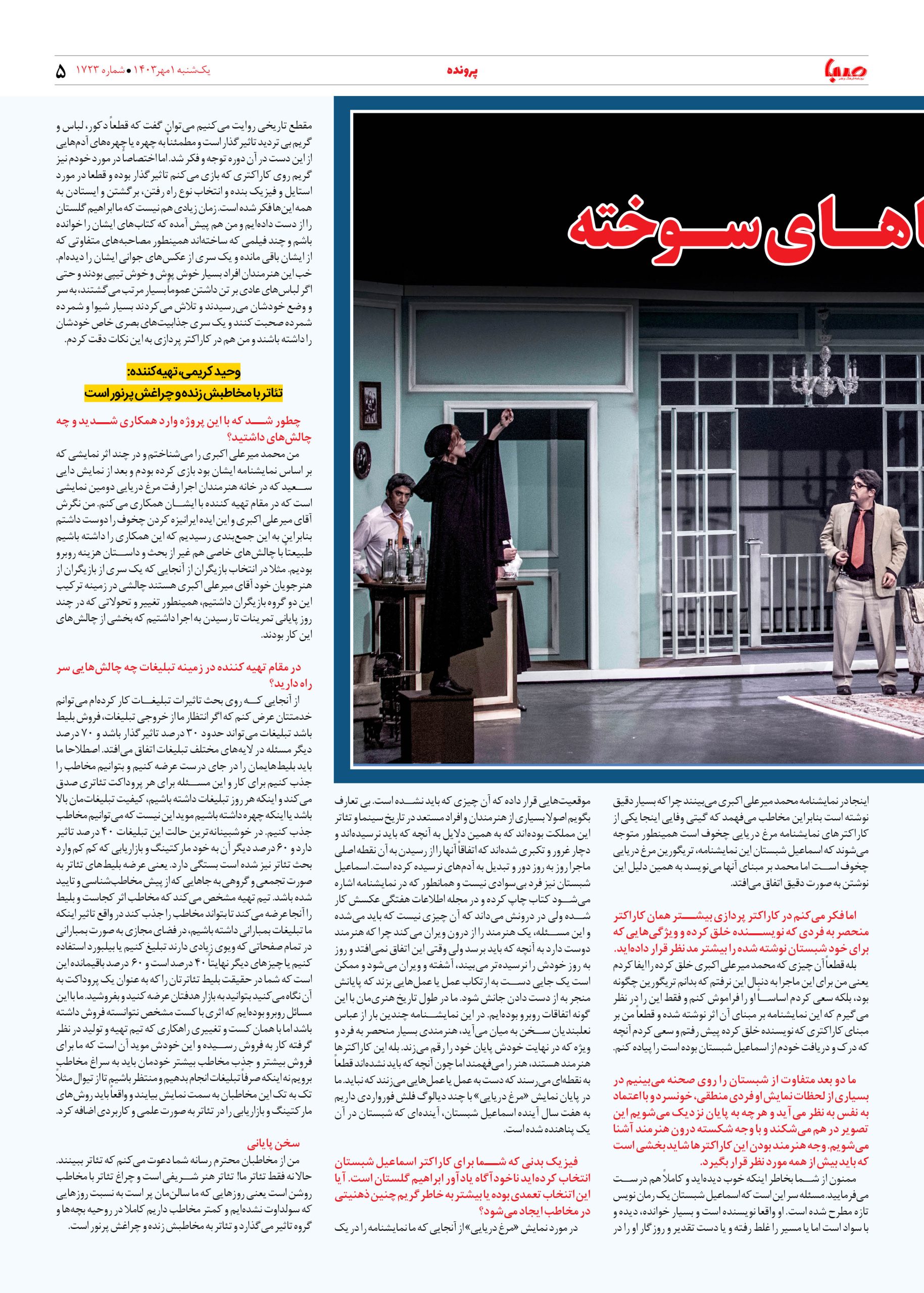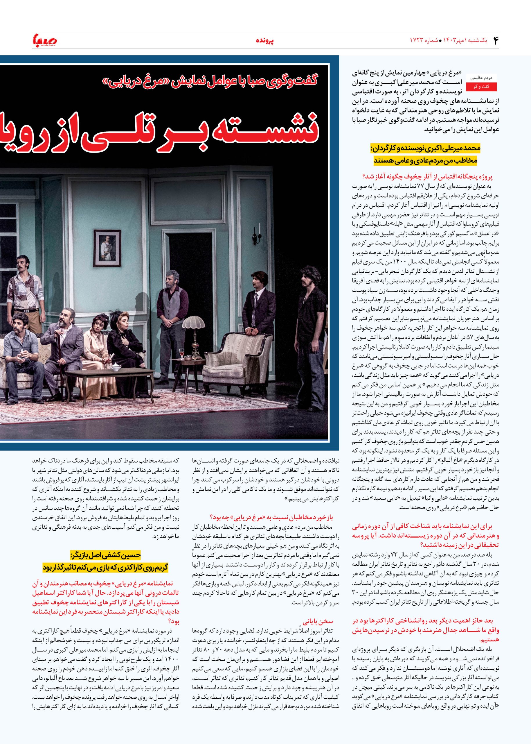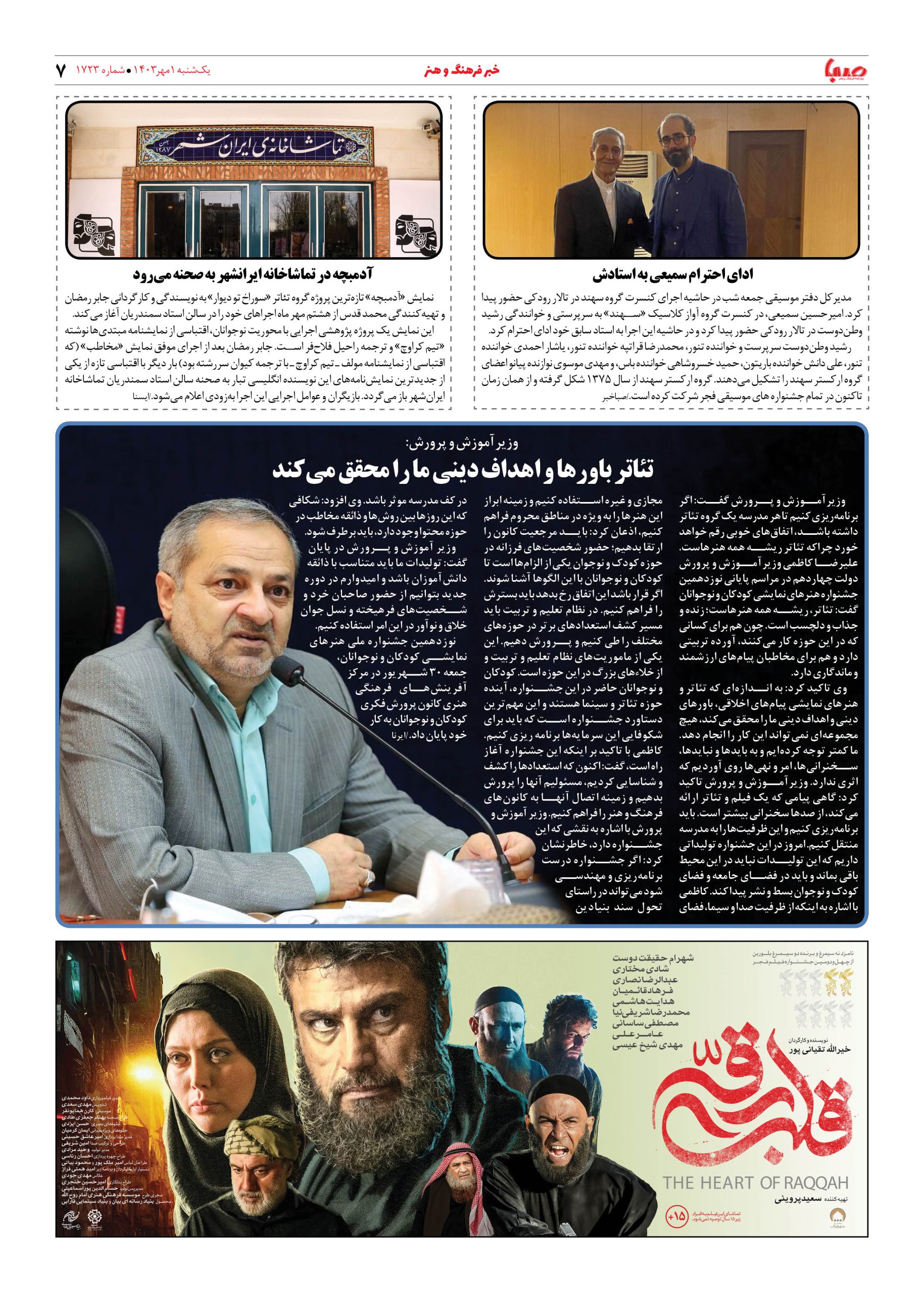 شماره ۱۷۲۳| روزنامه صبا یکشنبه ۱ مهر ۱۴۰۳