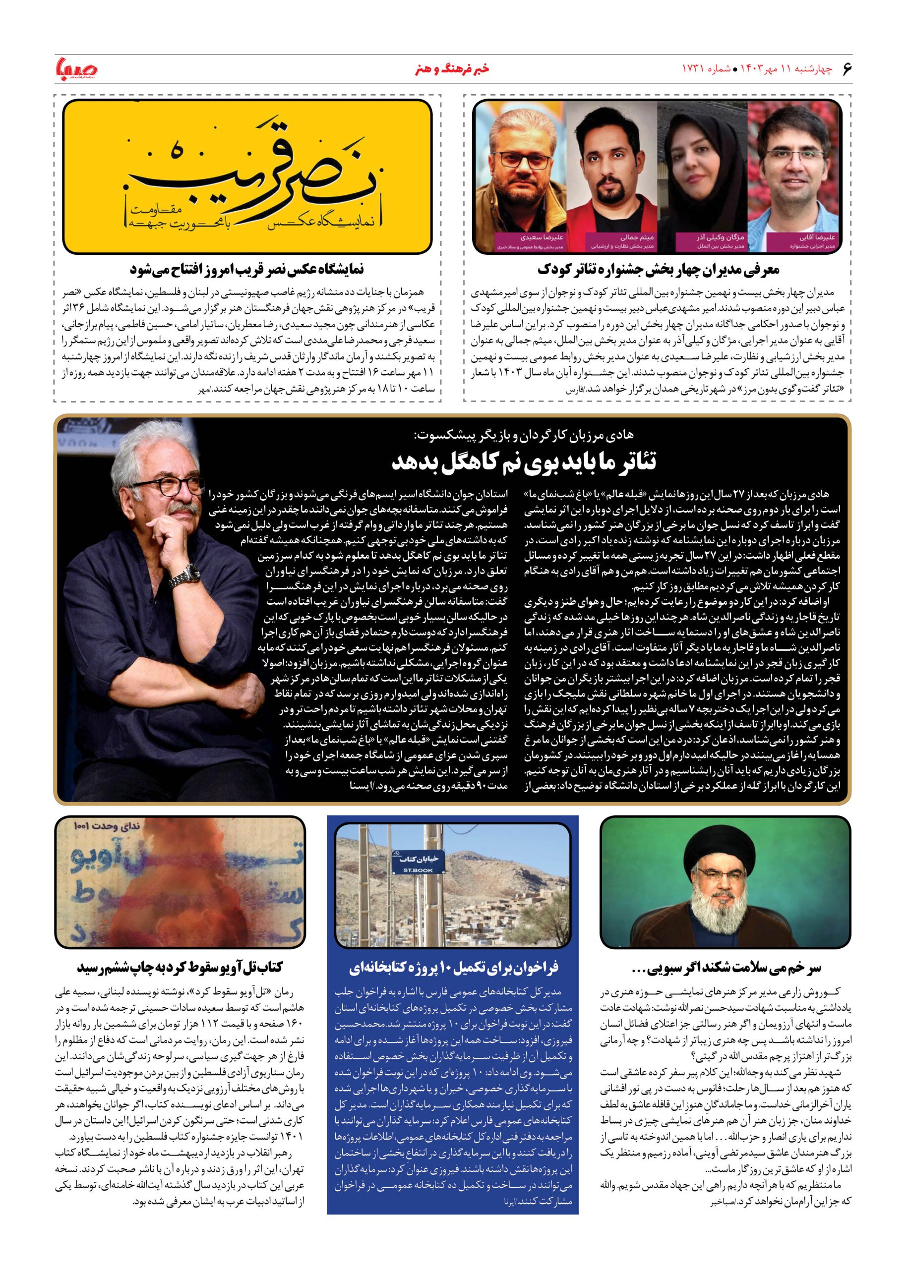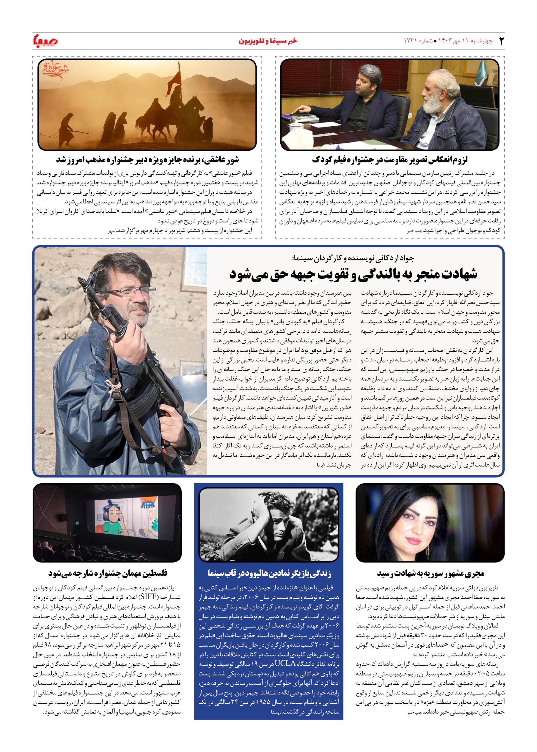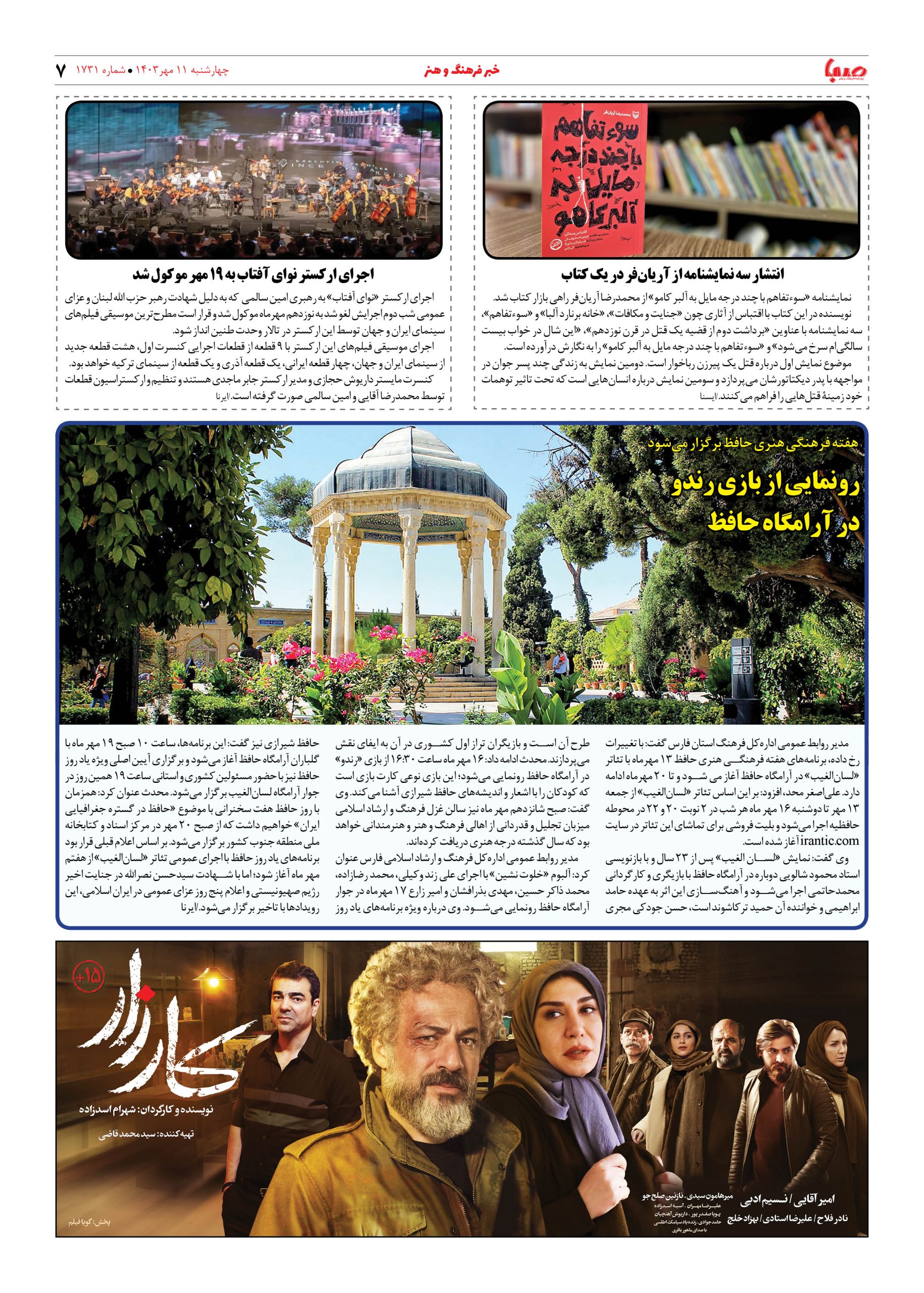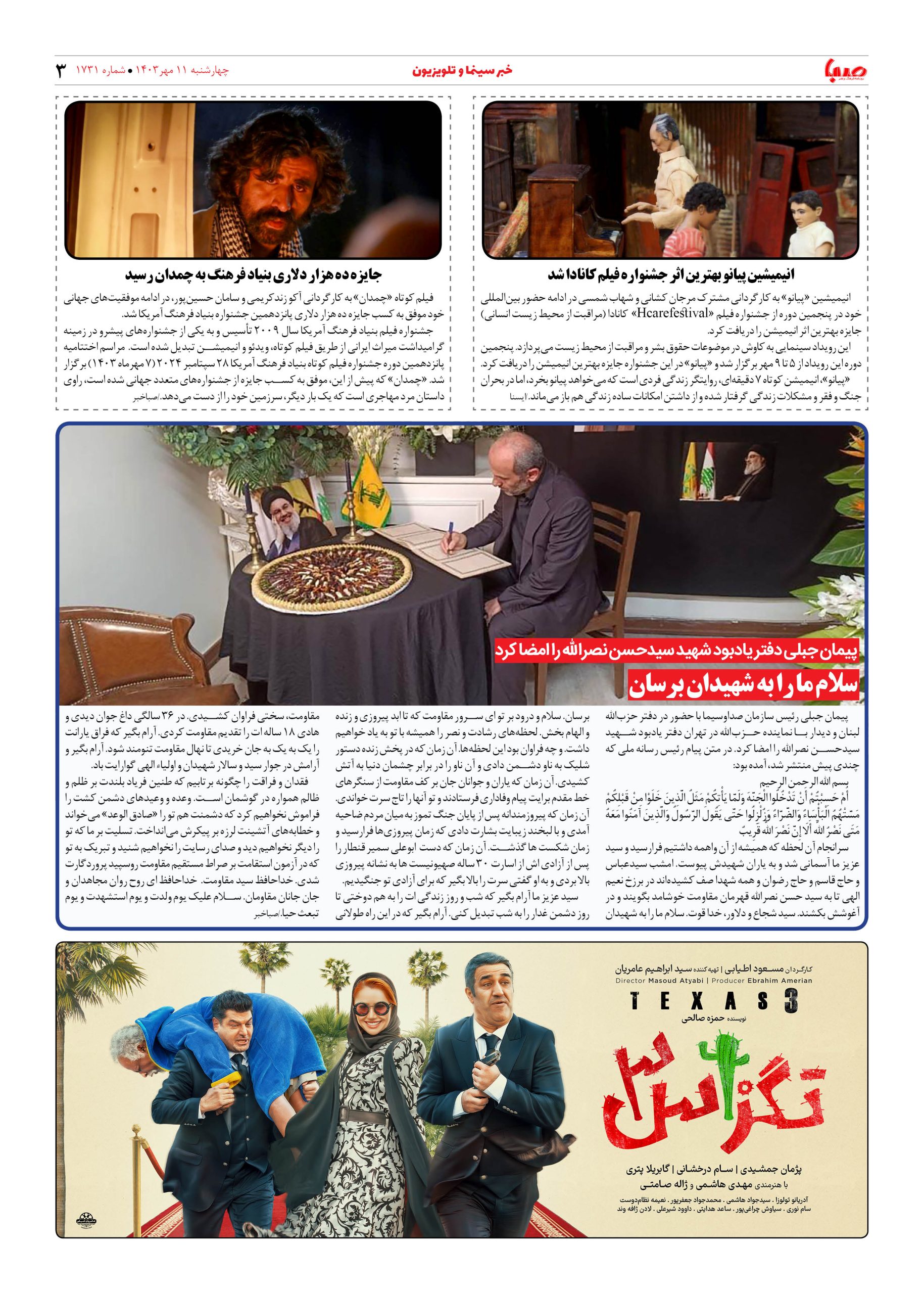 شماره ۱۷۳۱| روزنامه صبا چهارشنبه ۱۱ مهر ۱۴۰۳