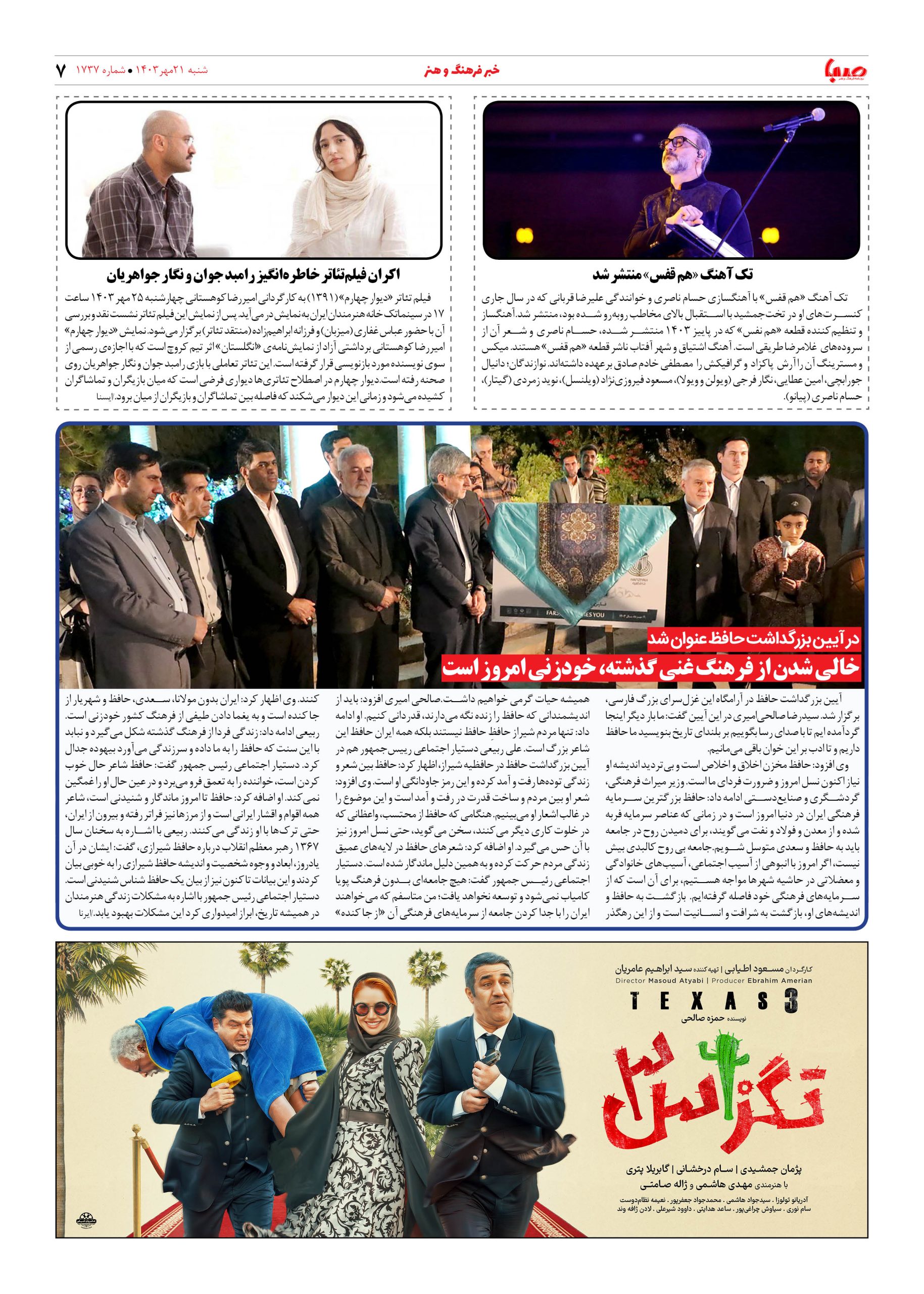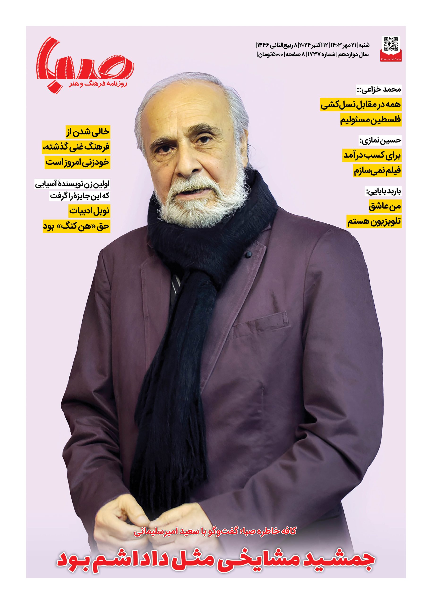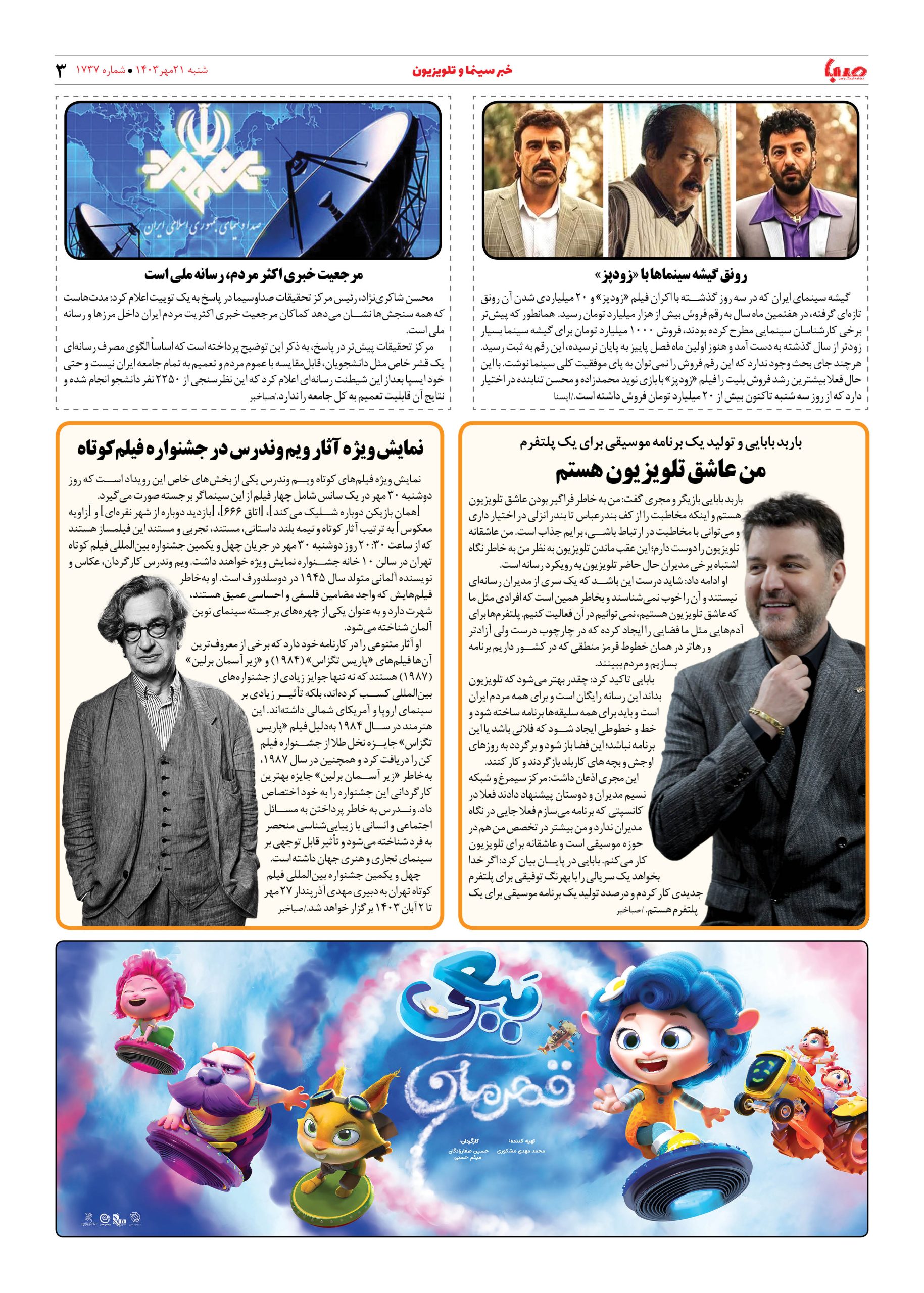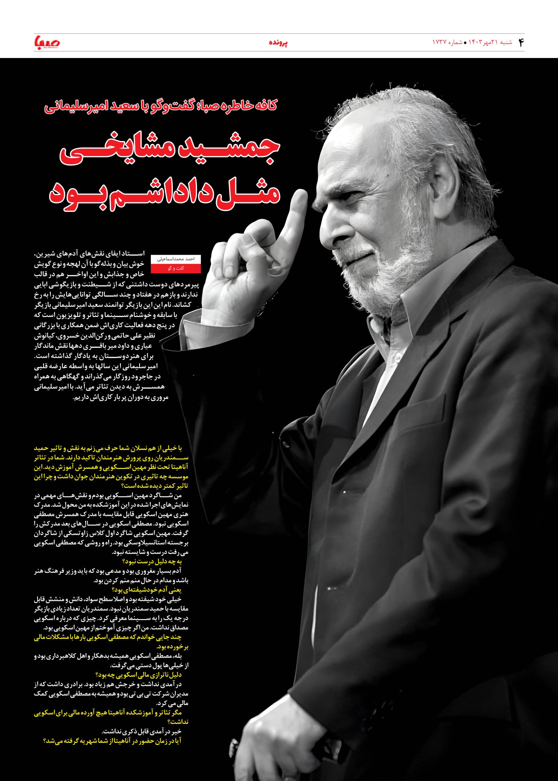 شماره ۱۷۳۷| روزنامه صبا شنبه ۲۱ مهر ۱۴۰۳
