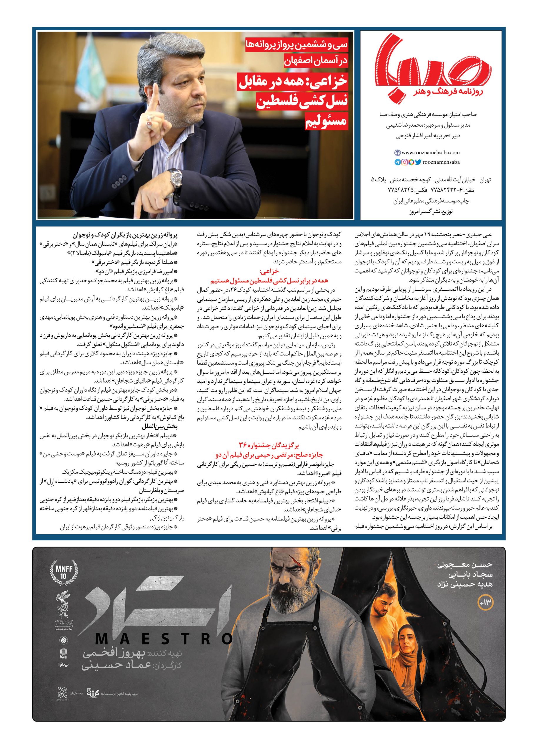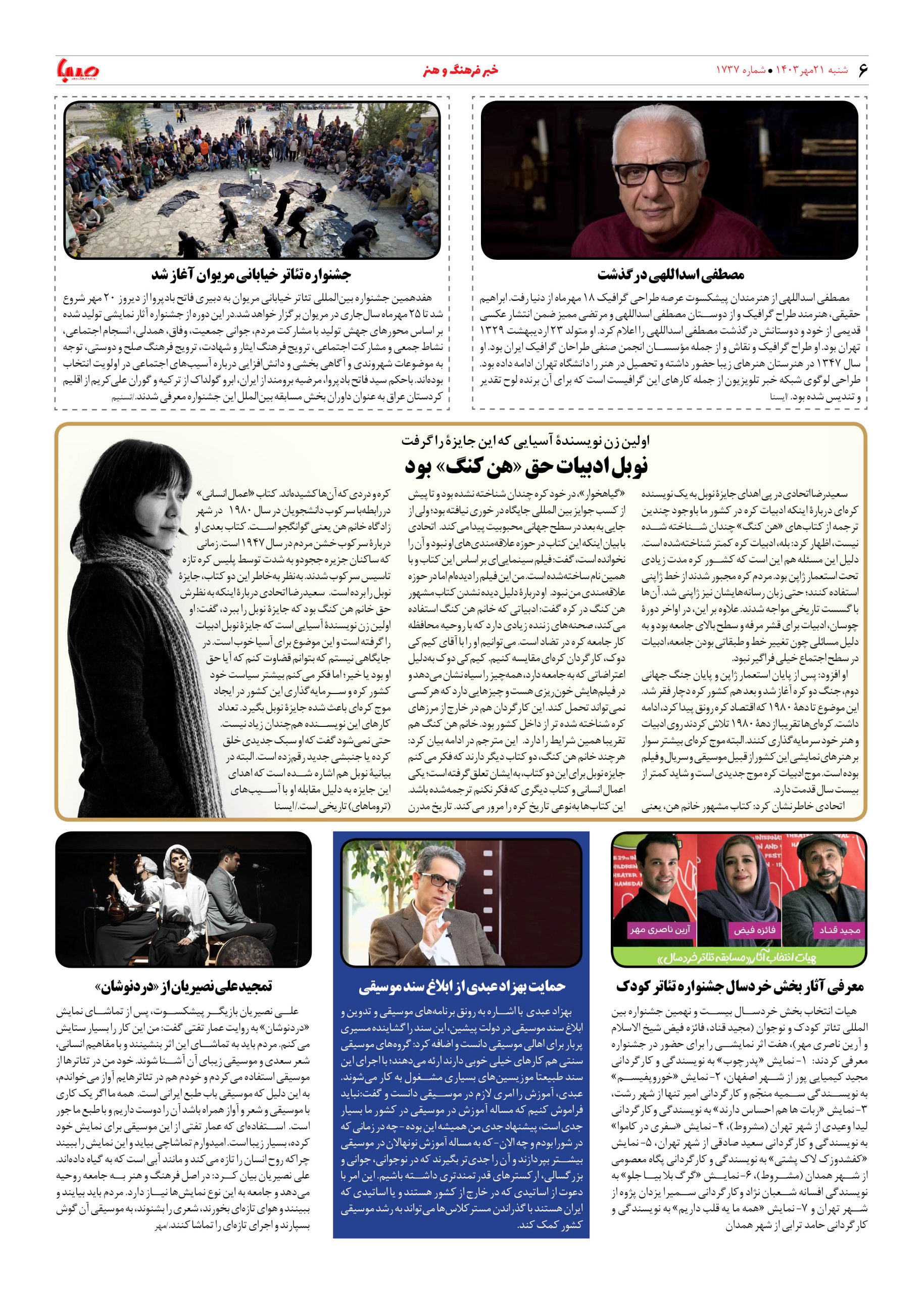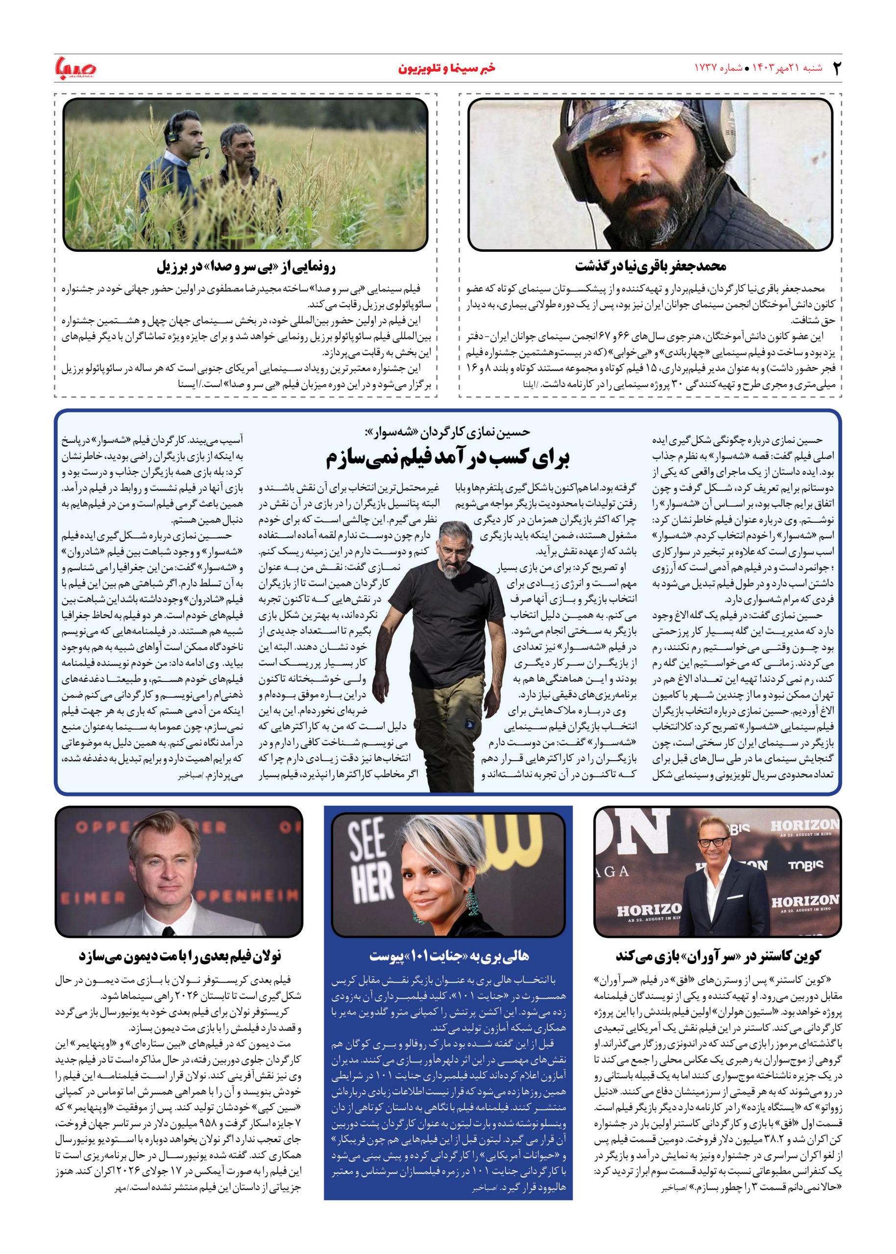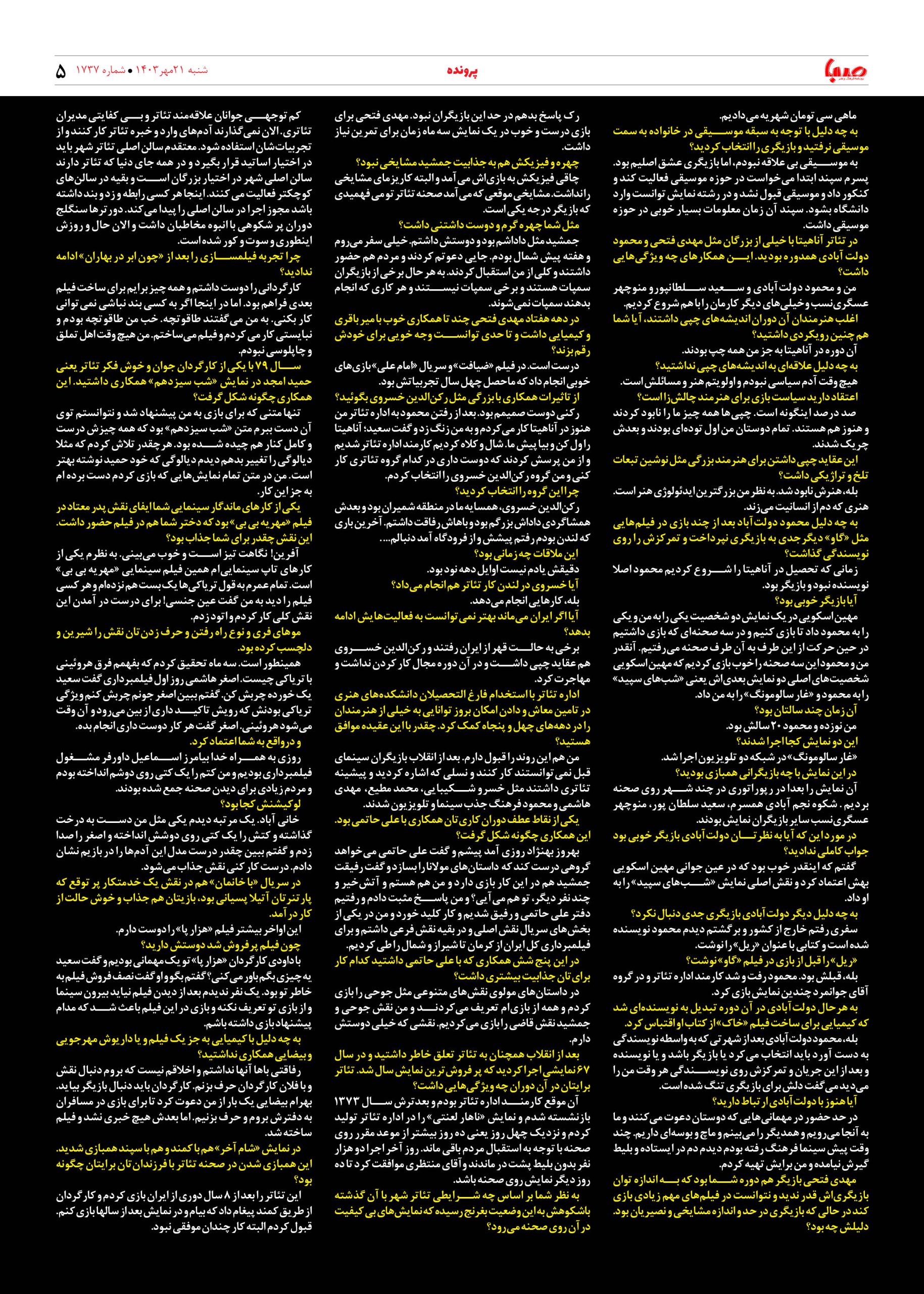 شماره ۱۷۳۷| روزنامه صبا شنبه ۲۱ مهر ۱۴۰۳