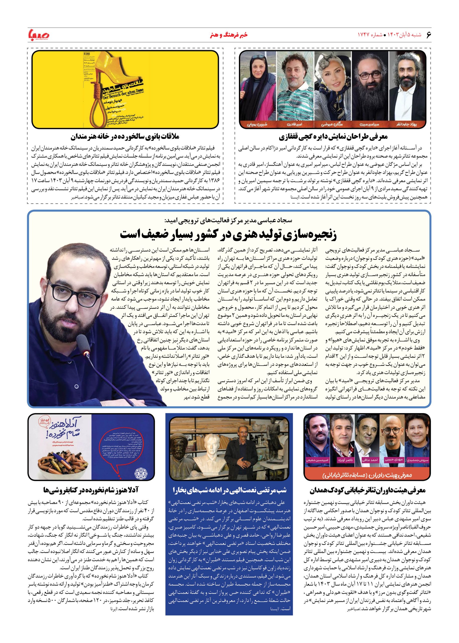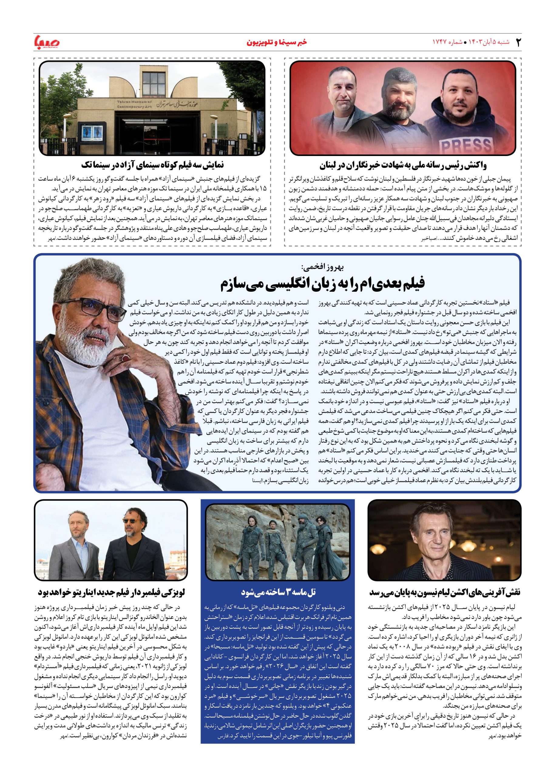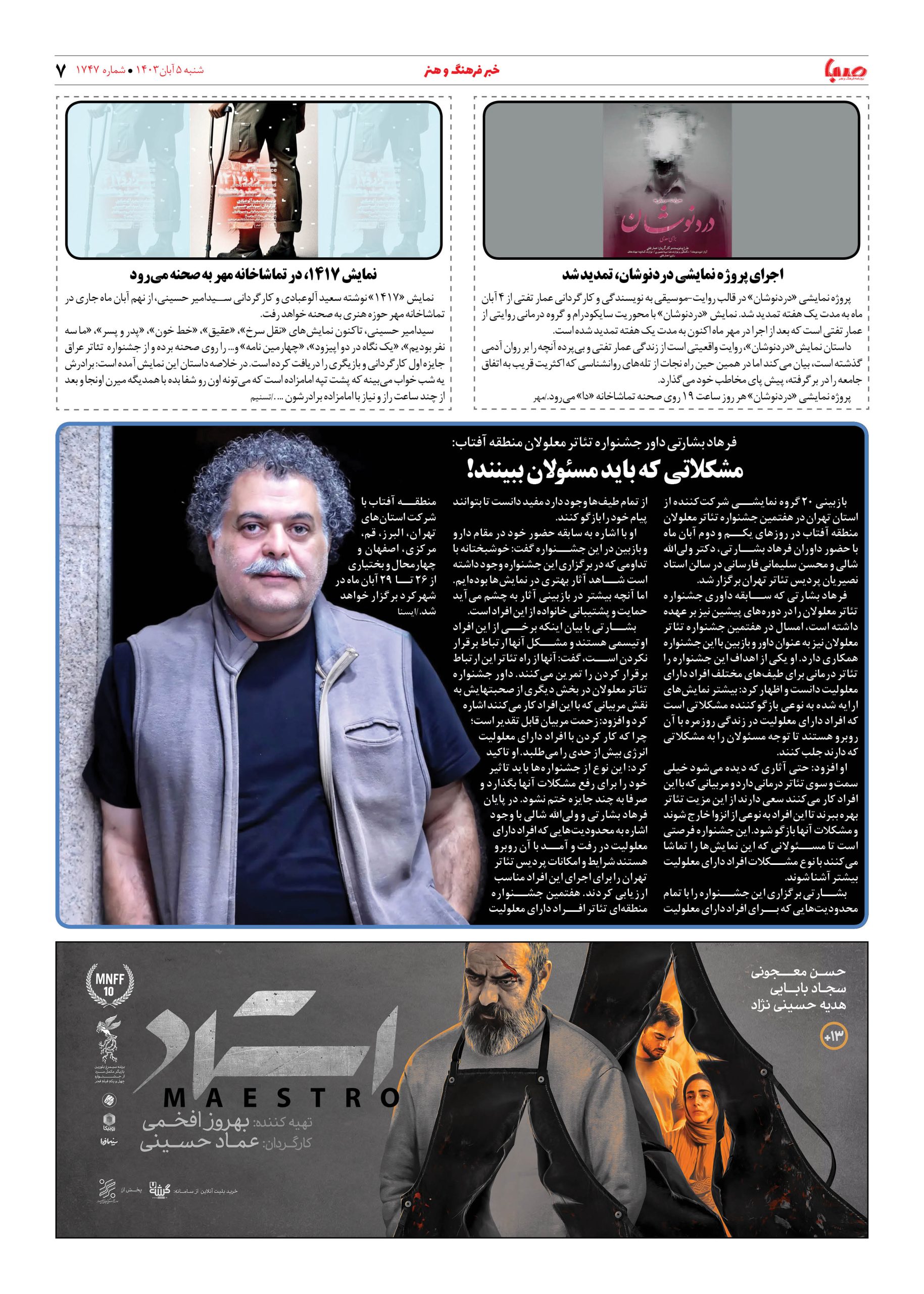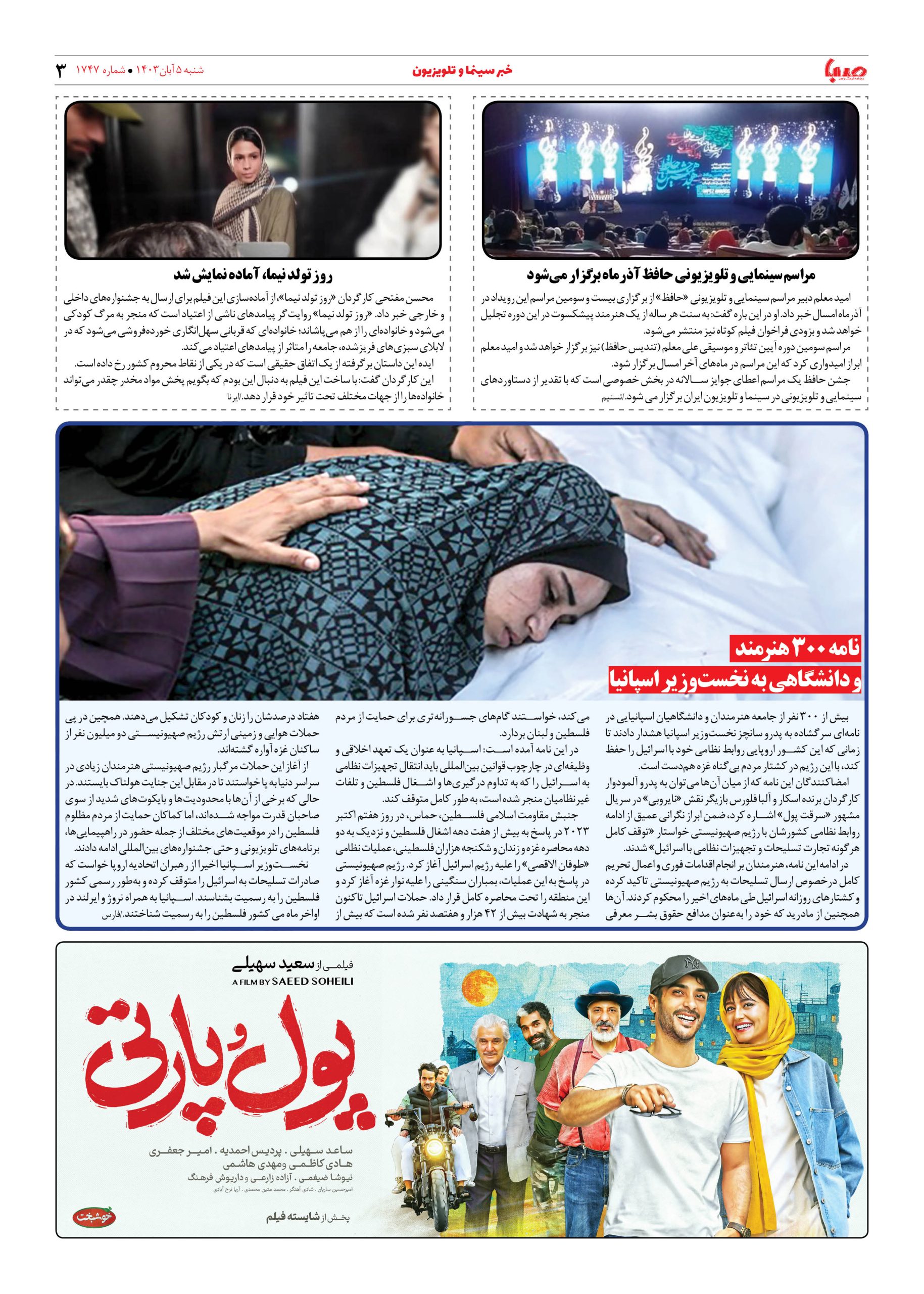 شماره ۱۷۴۷| روزنامه صبا شنبه ۵ آبان ۱۴۰۳