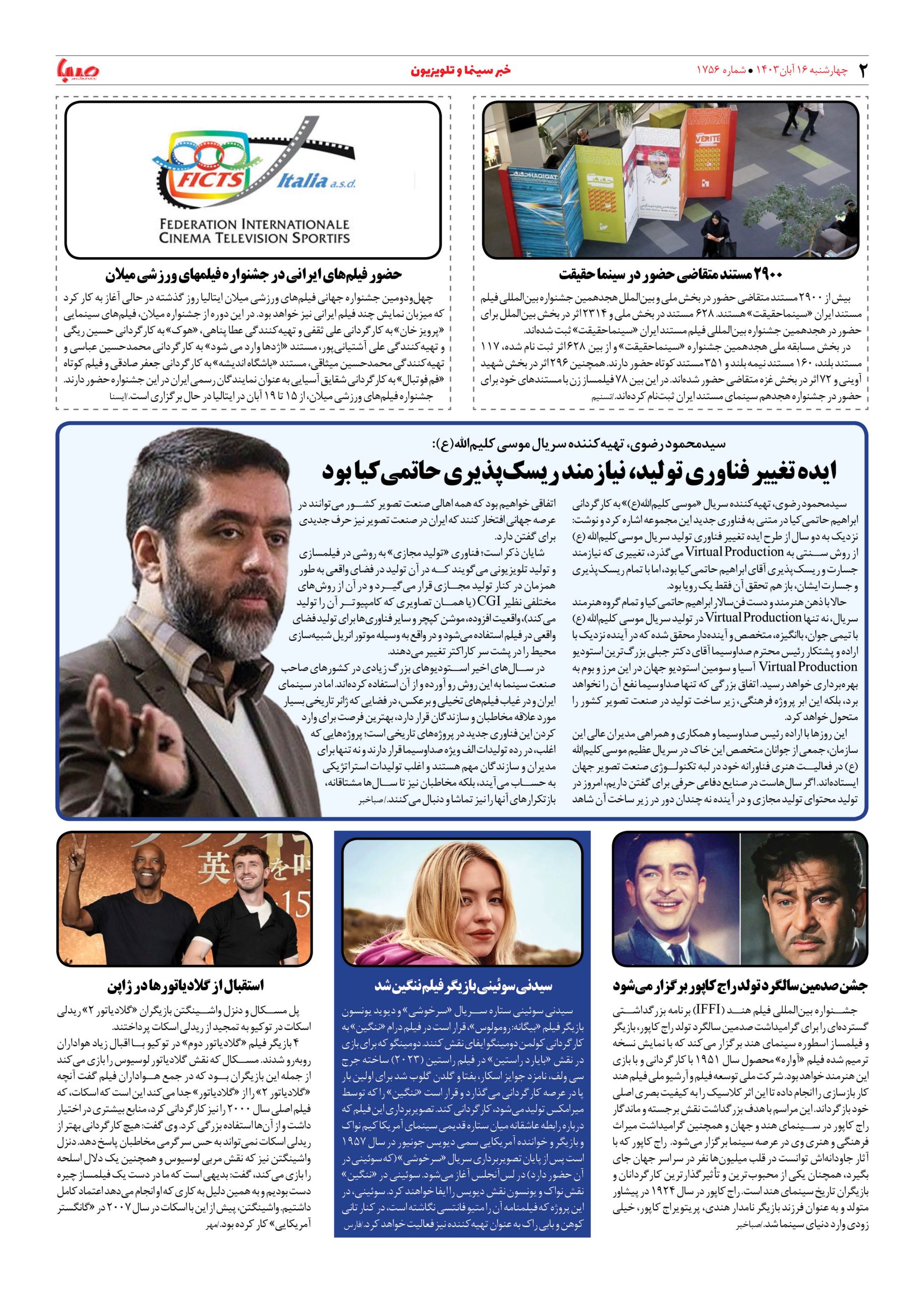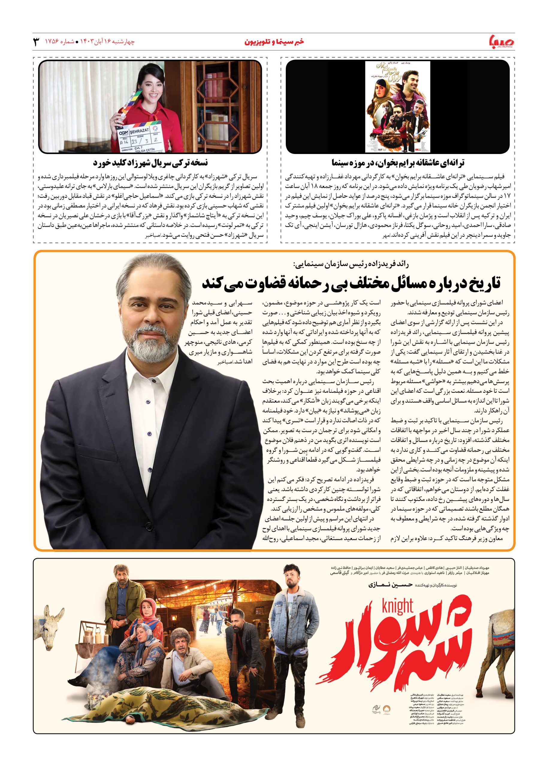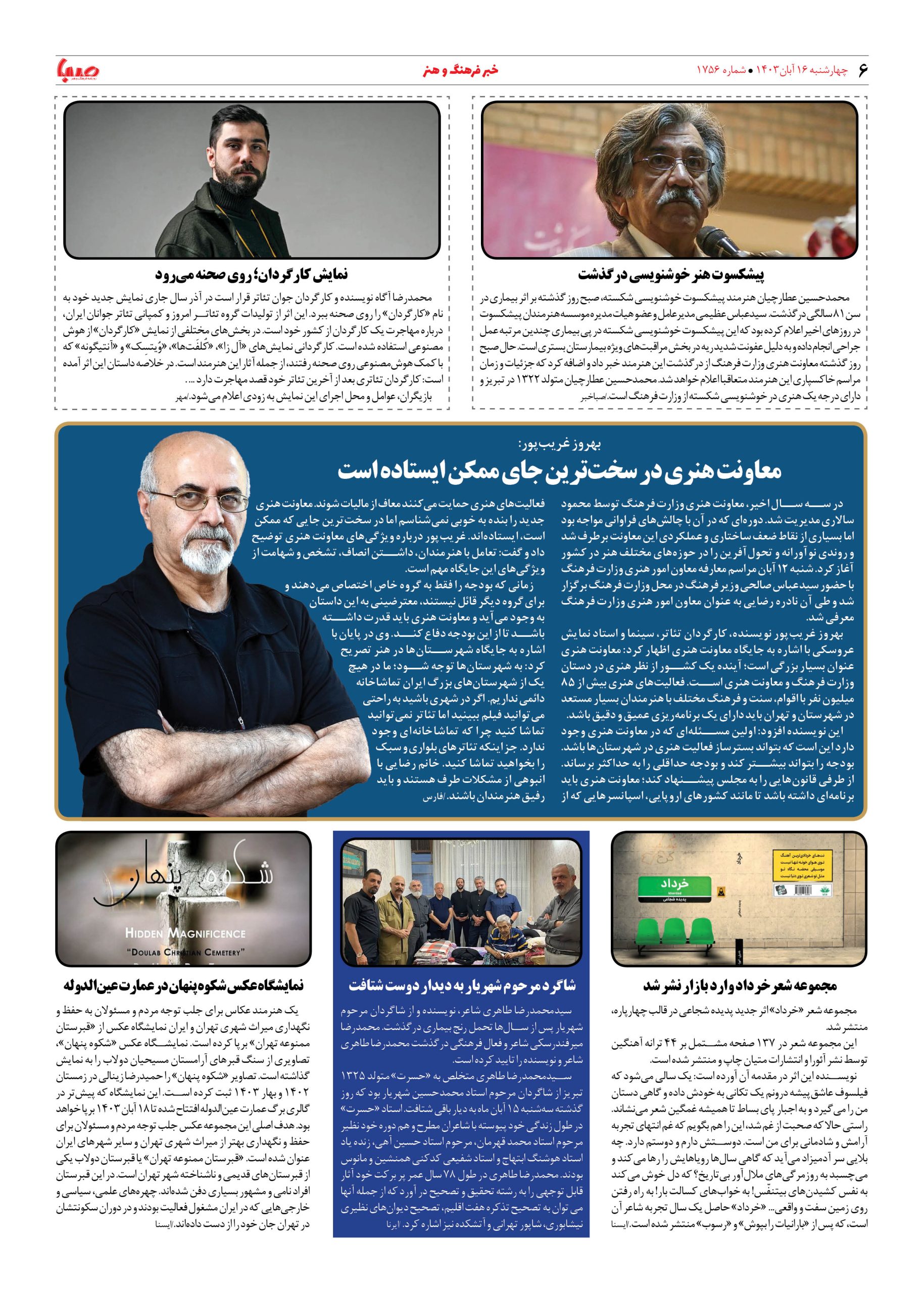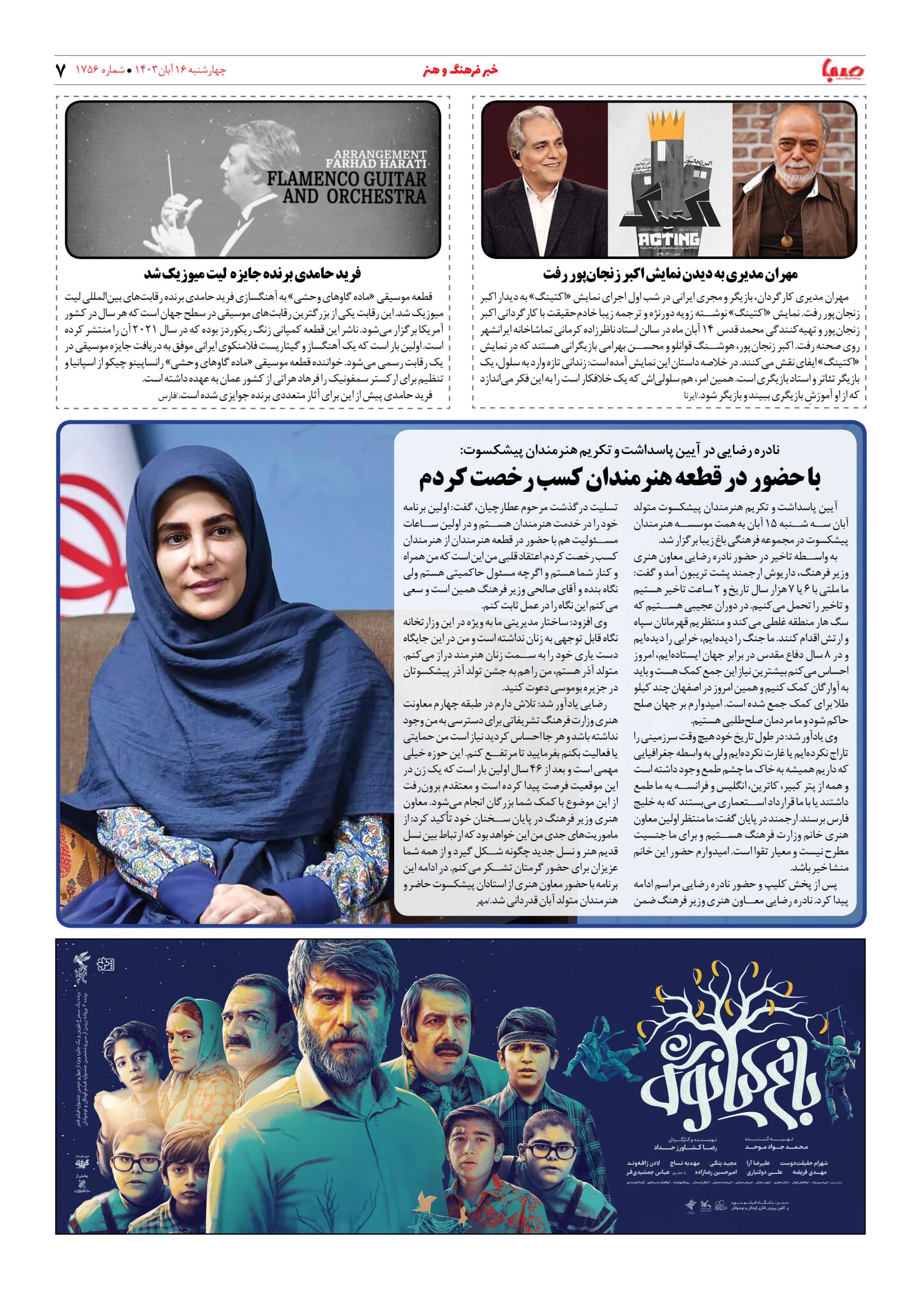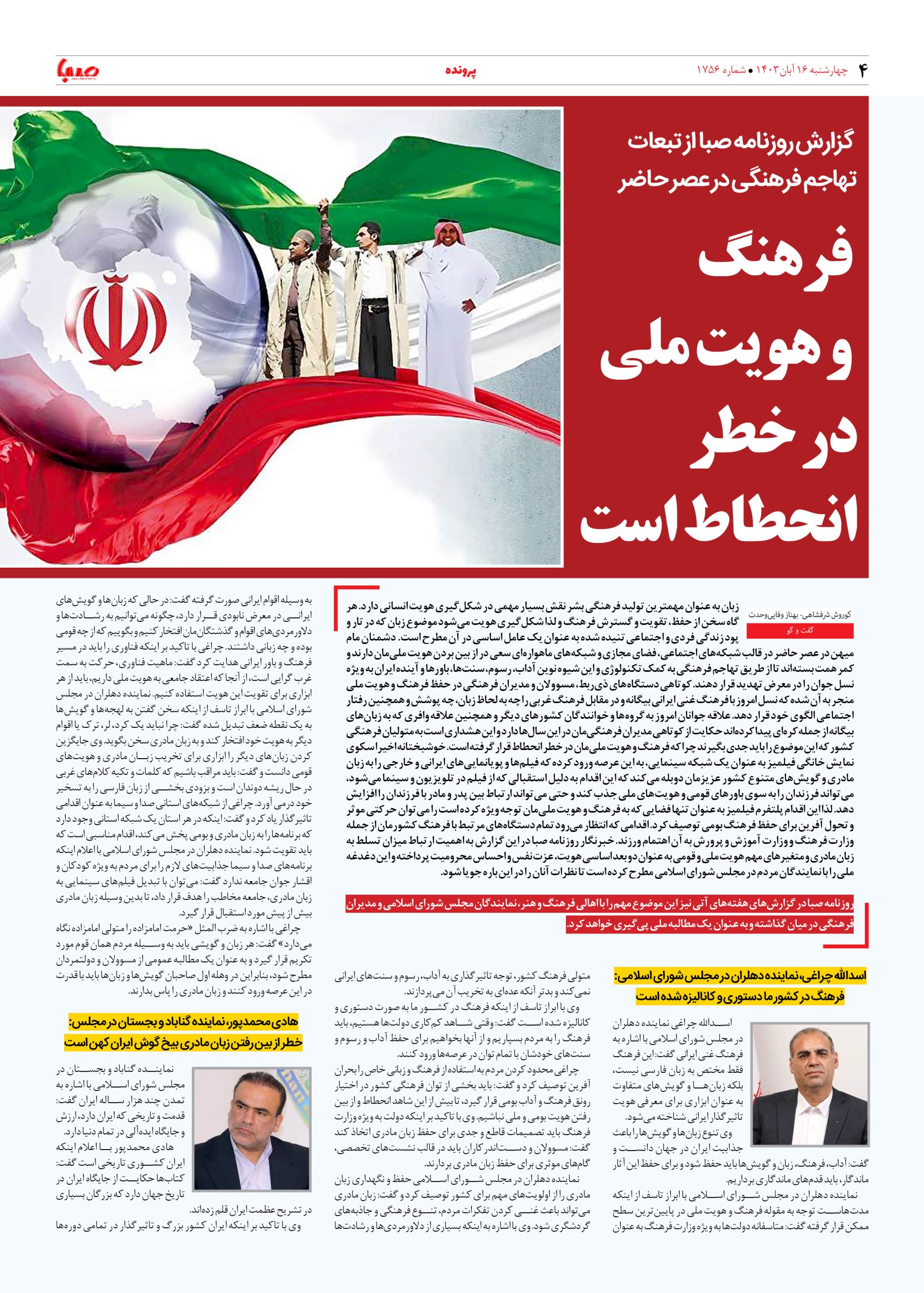 شماره ۱۷۵۶| روزنامه صبا چهارشنبه ۱۶ آبان ۱۴۰۳