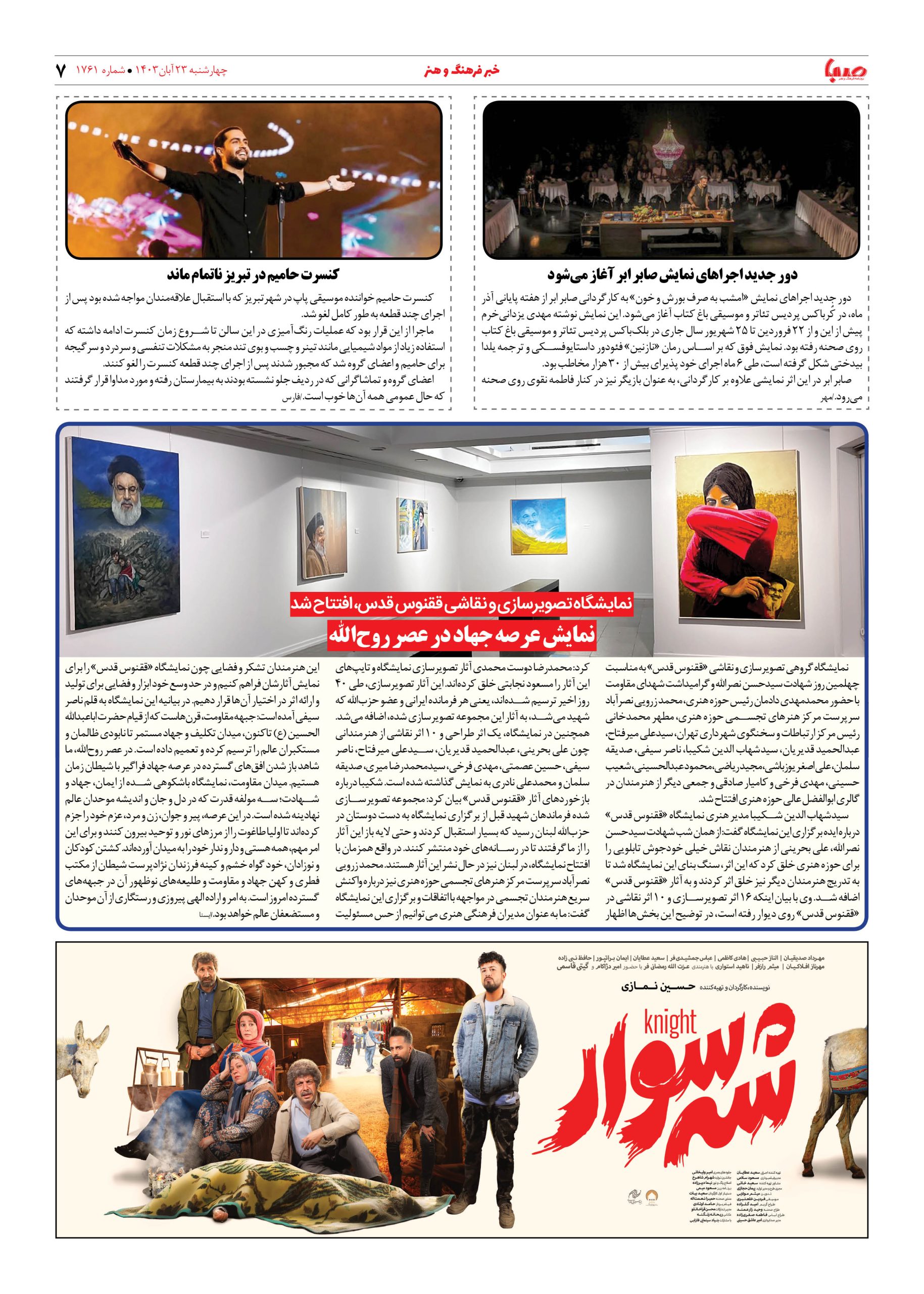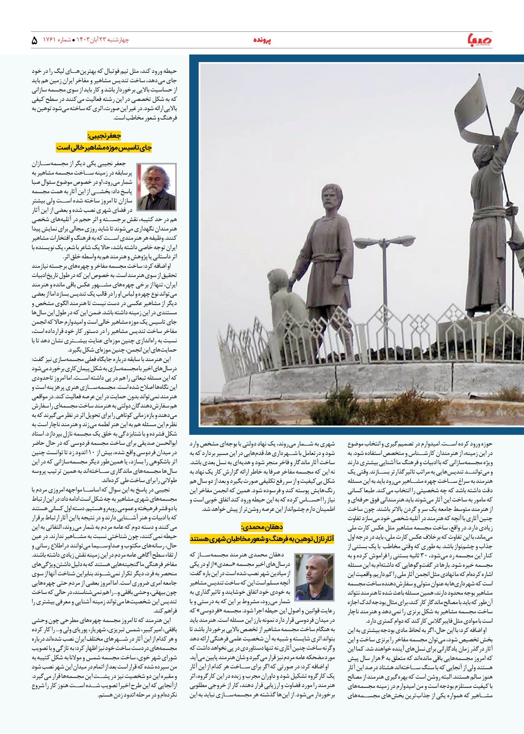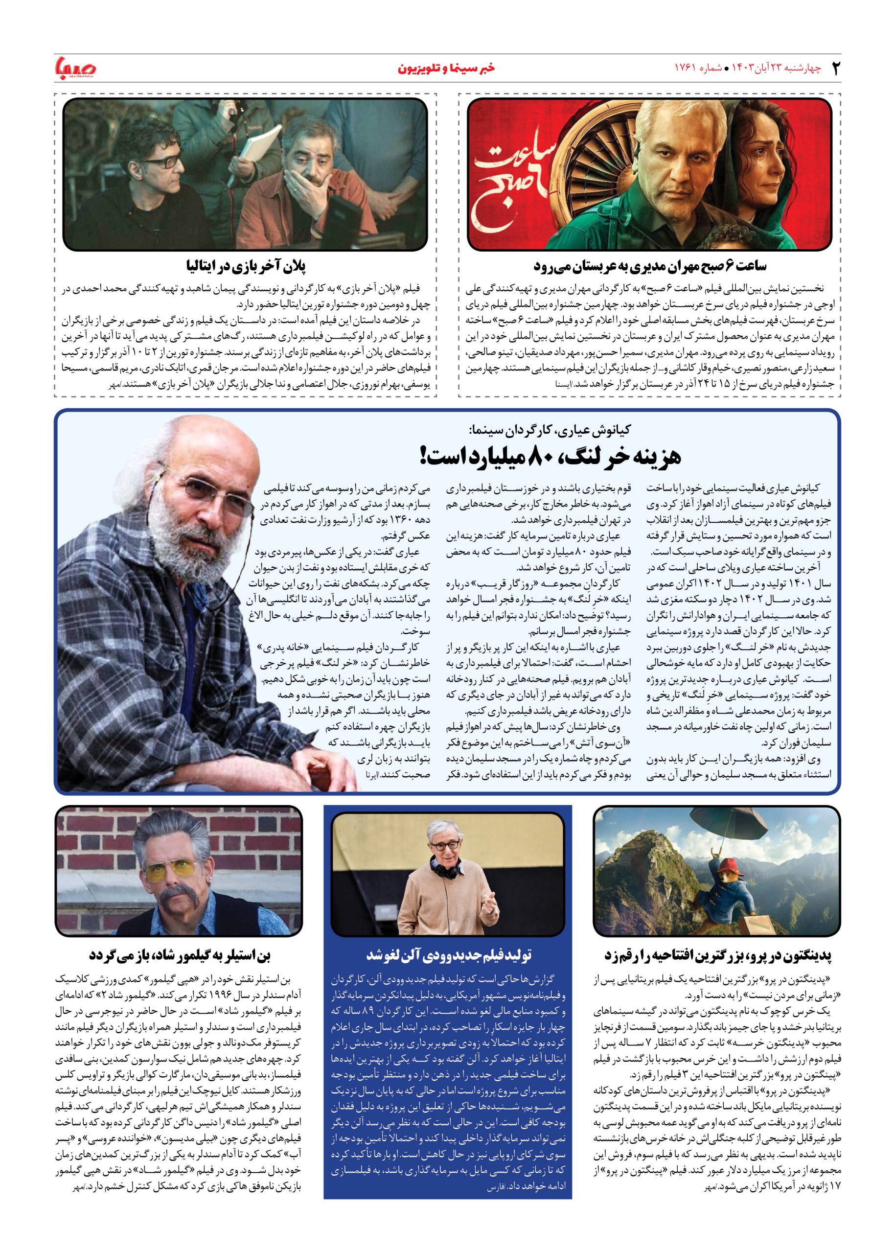شماره ۱۷۶۱| روزنامه صبا چهارشنبه ۲۳ آبان ۱۴۰۳