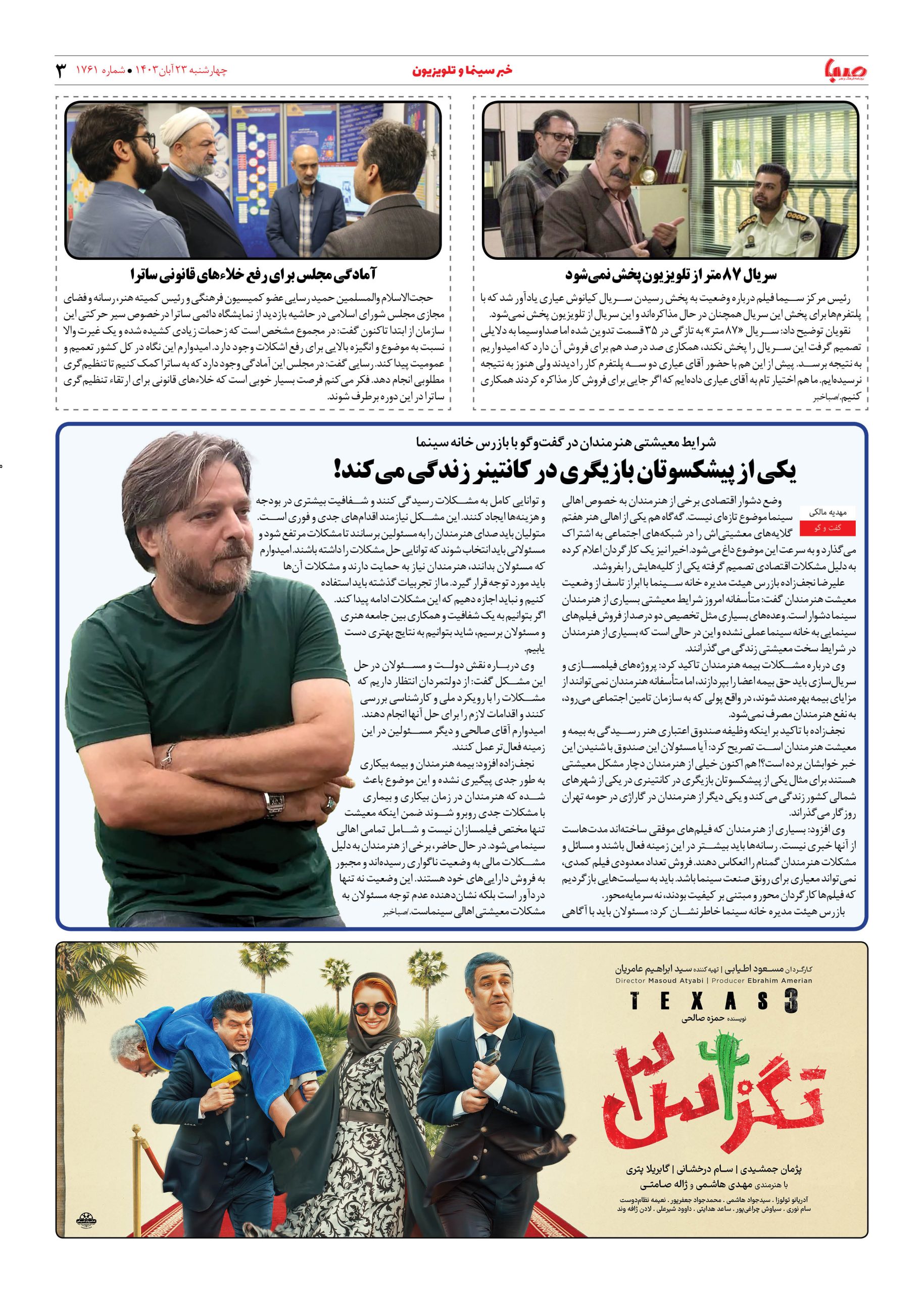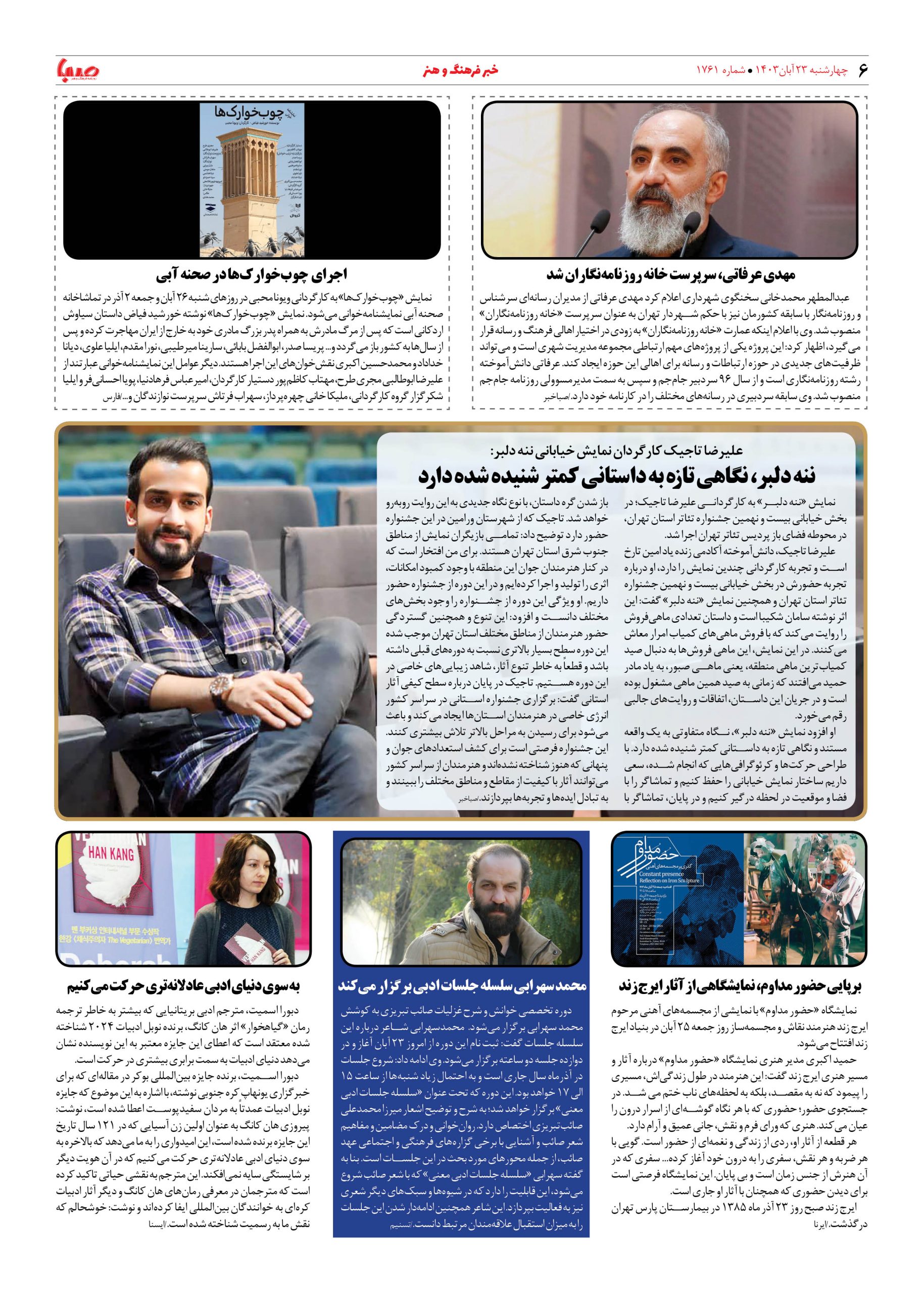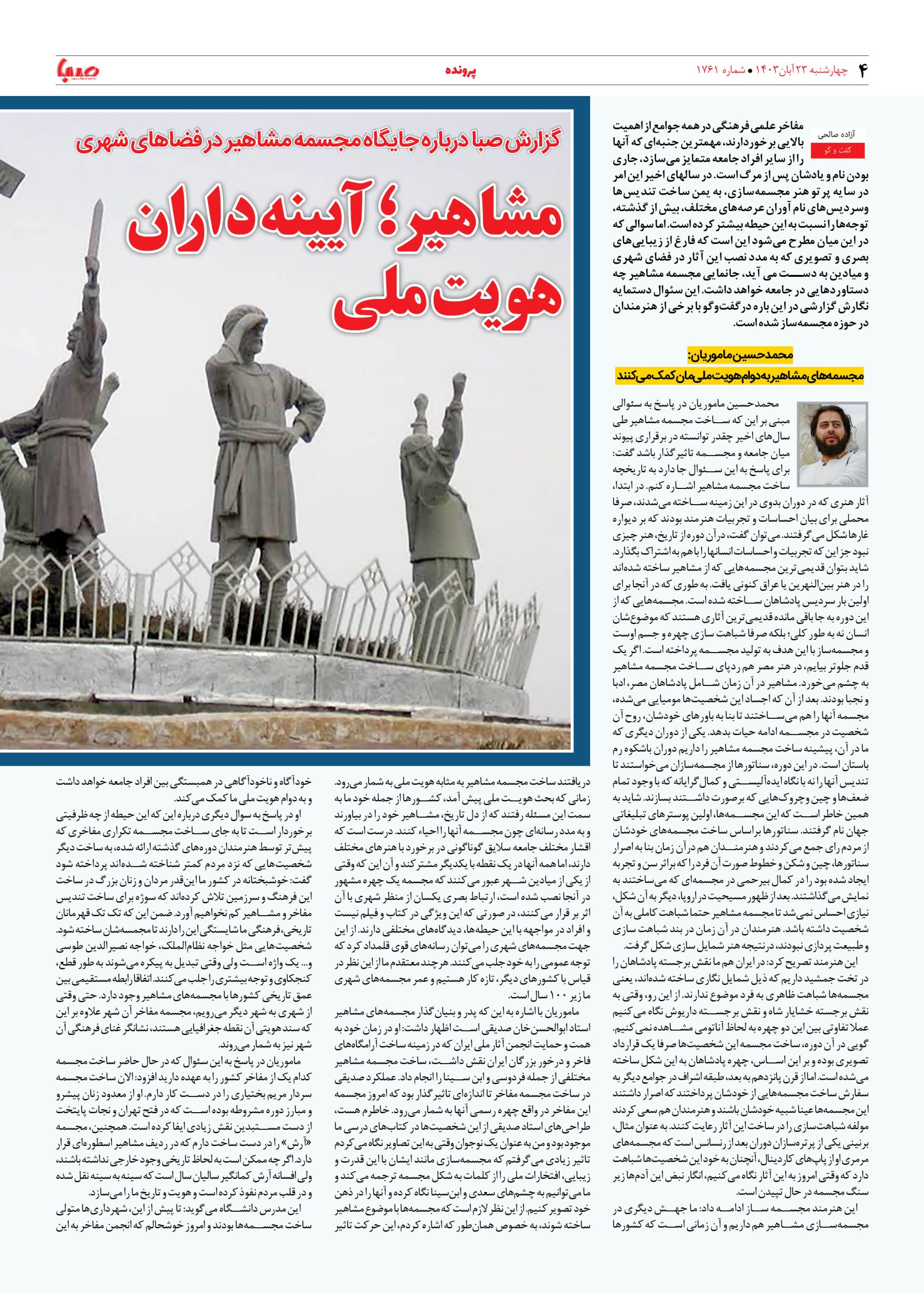 شماره ۱۷۶۱| روزنامه صبا چهارشنبه ۲۳ آبان ۱۴۰۳