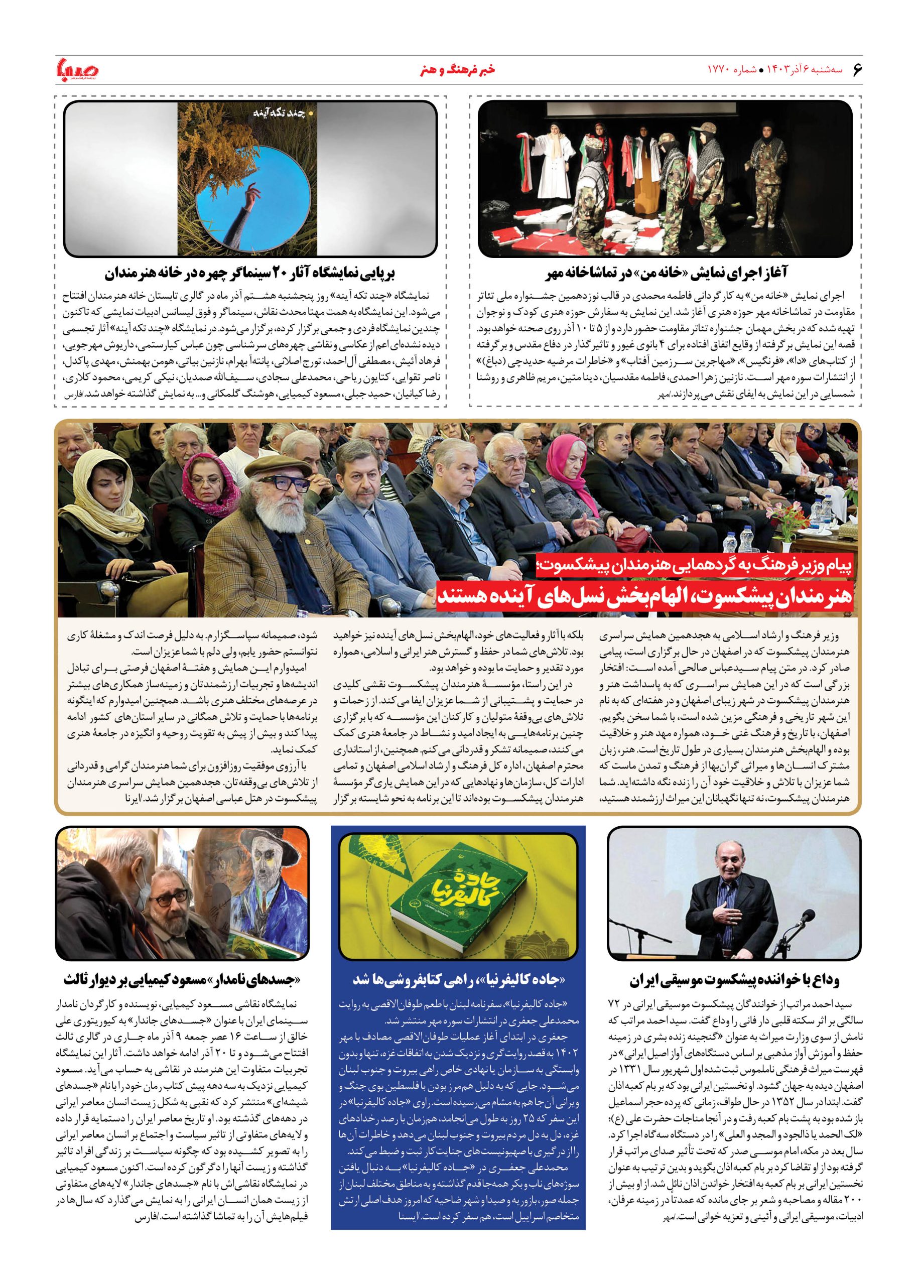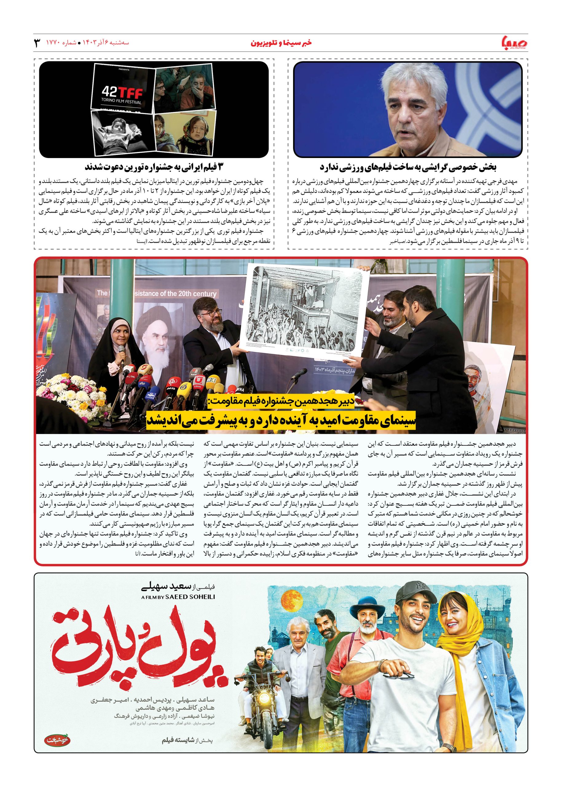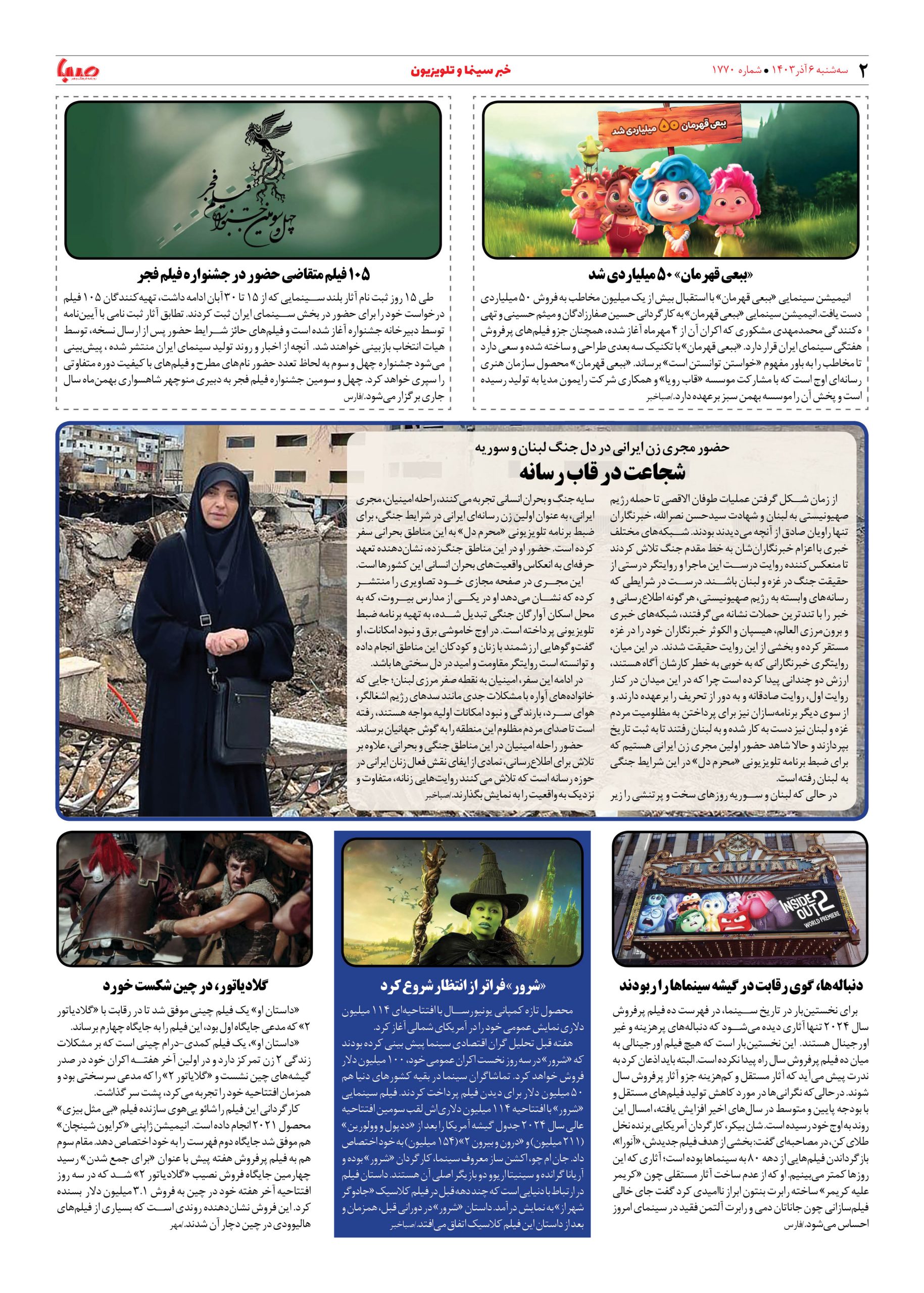 شماره ۱۷۷۰| روزنامه صبا سه شنبه ۶ آذر ۱۴۰۳