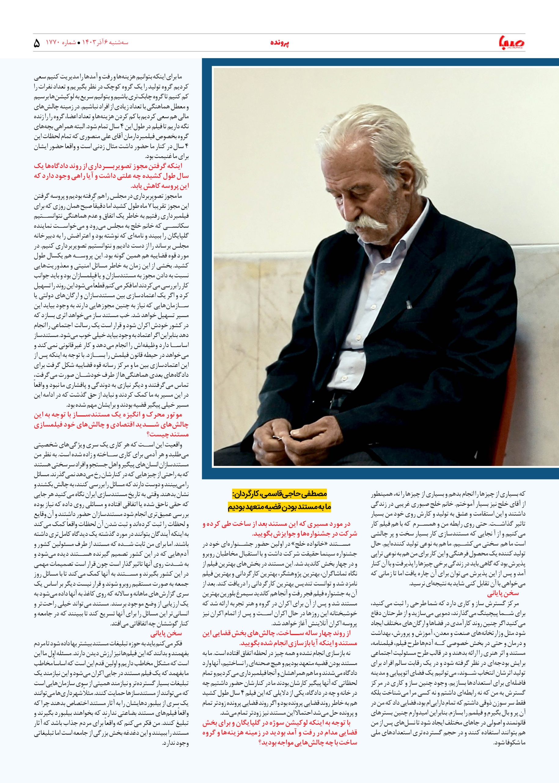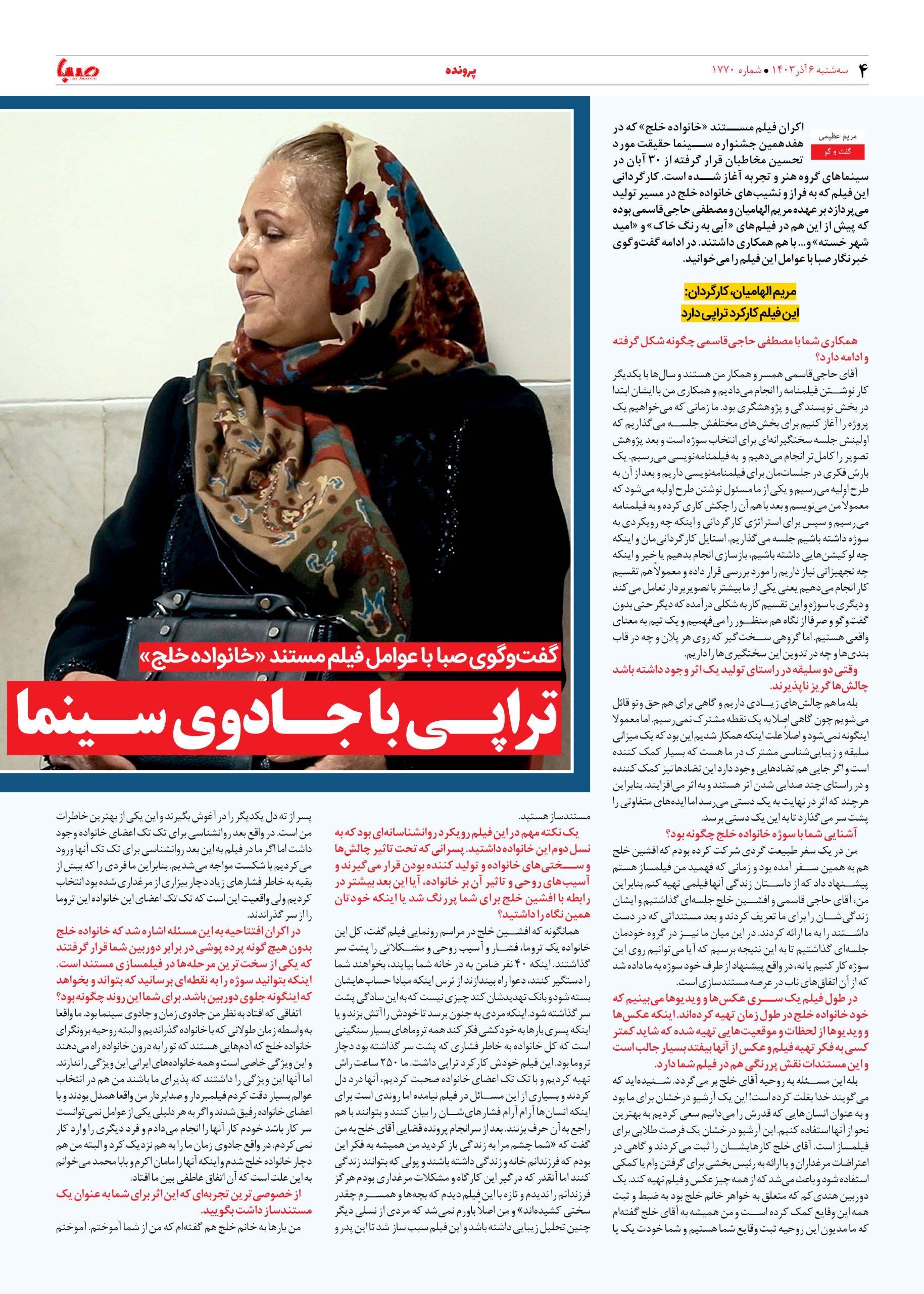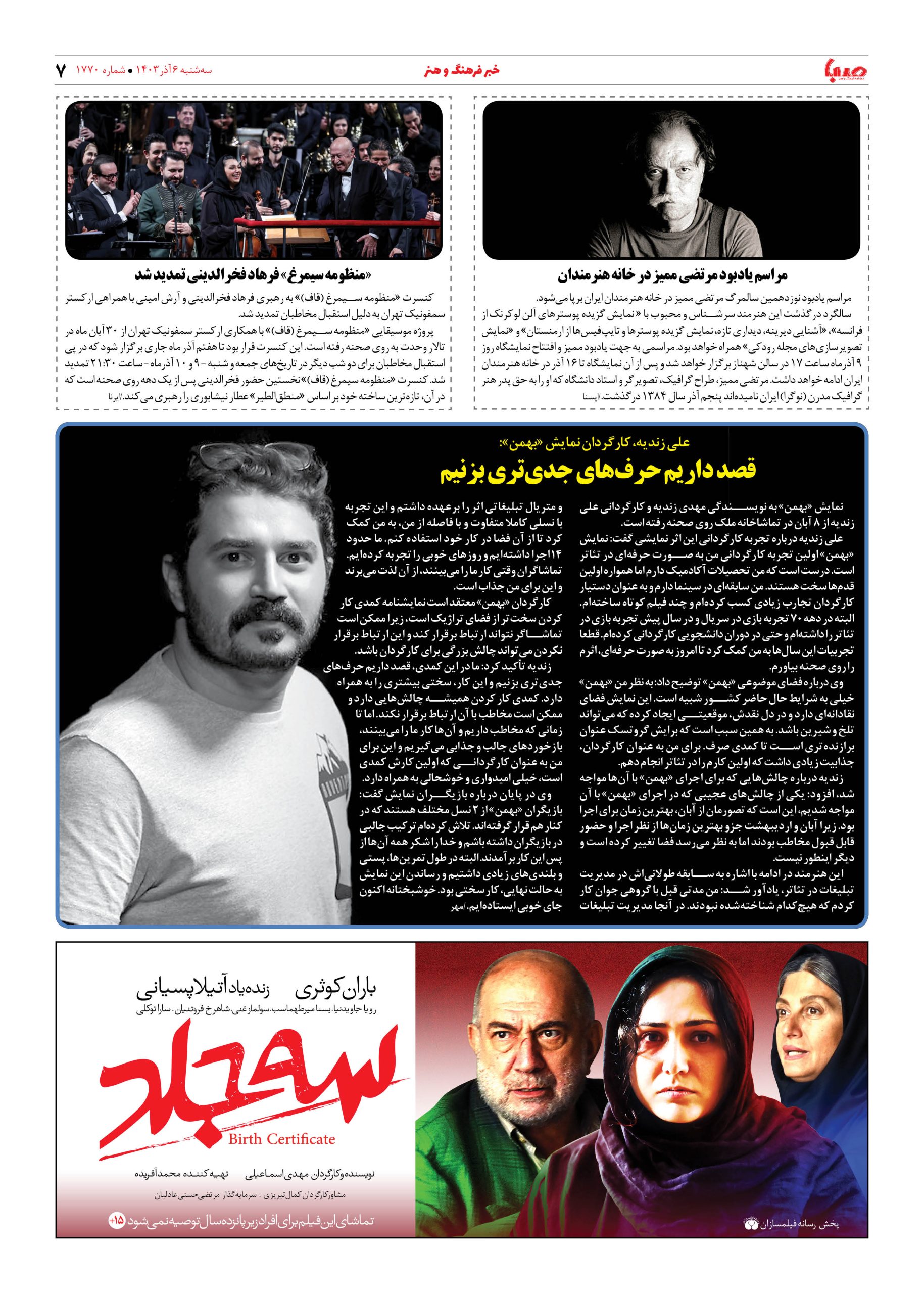 شماره ۱۷۷۰| روزنامه صبا سه شنبه ۶ آذر ۱۴۰۳