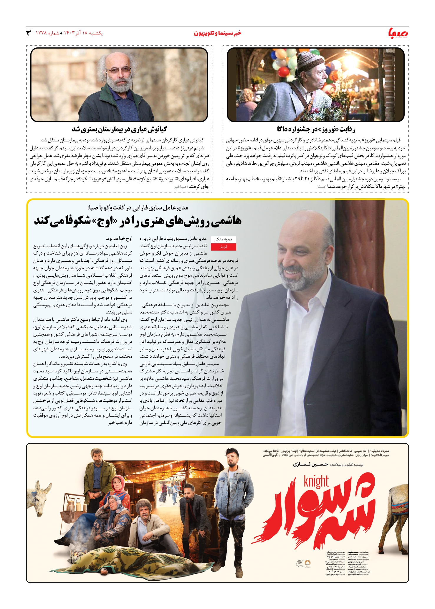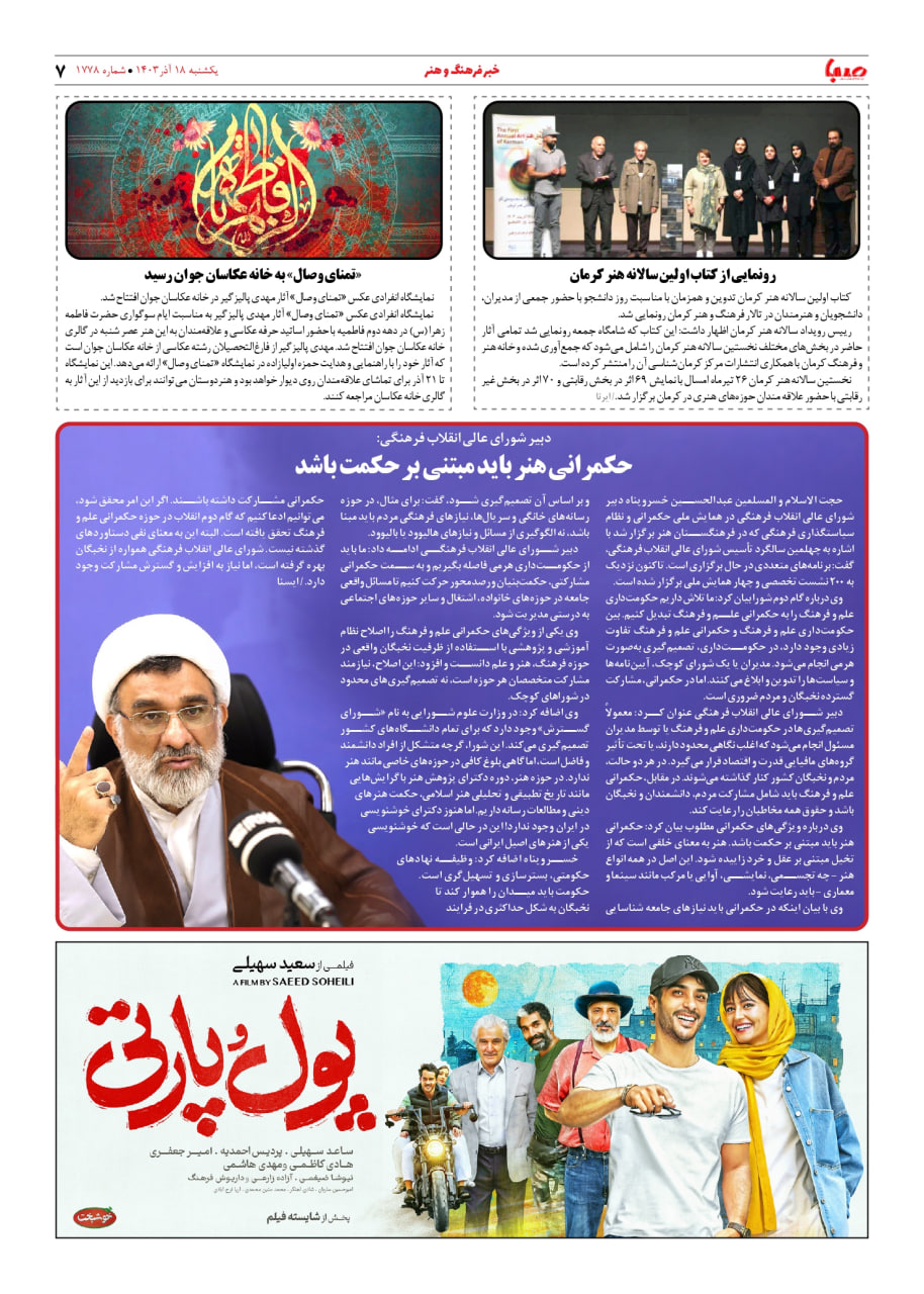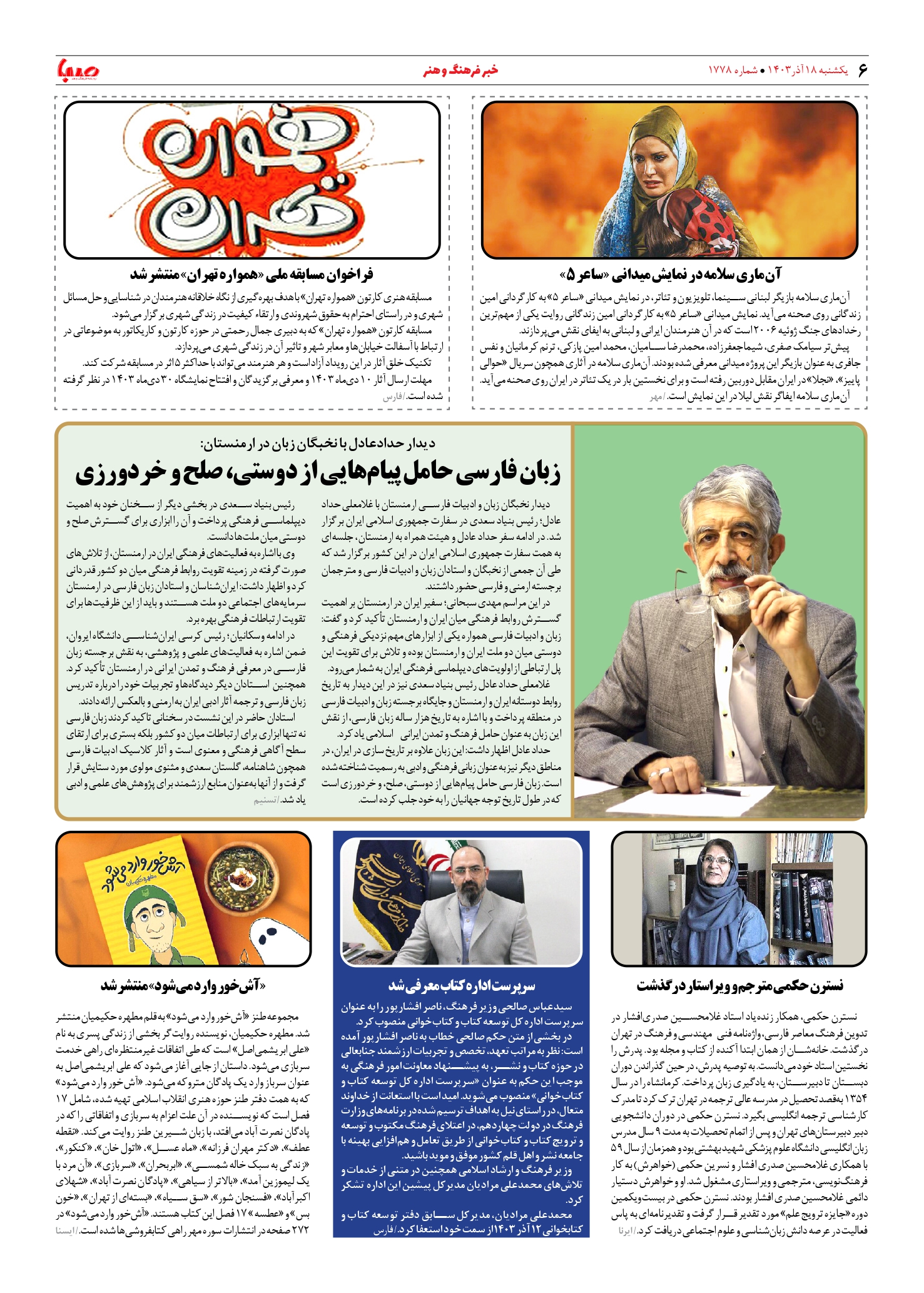 شماره ۱۷۷۸| روزنامه صبا یکشنبه ۱۸ آذر ۱۴۰۳
