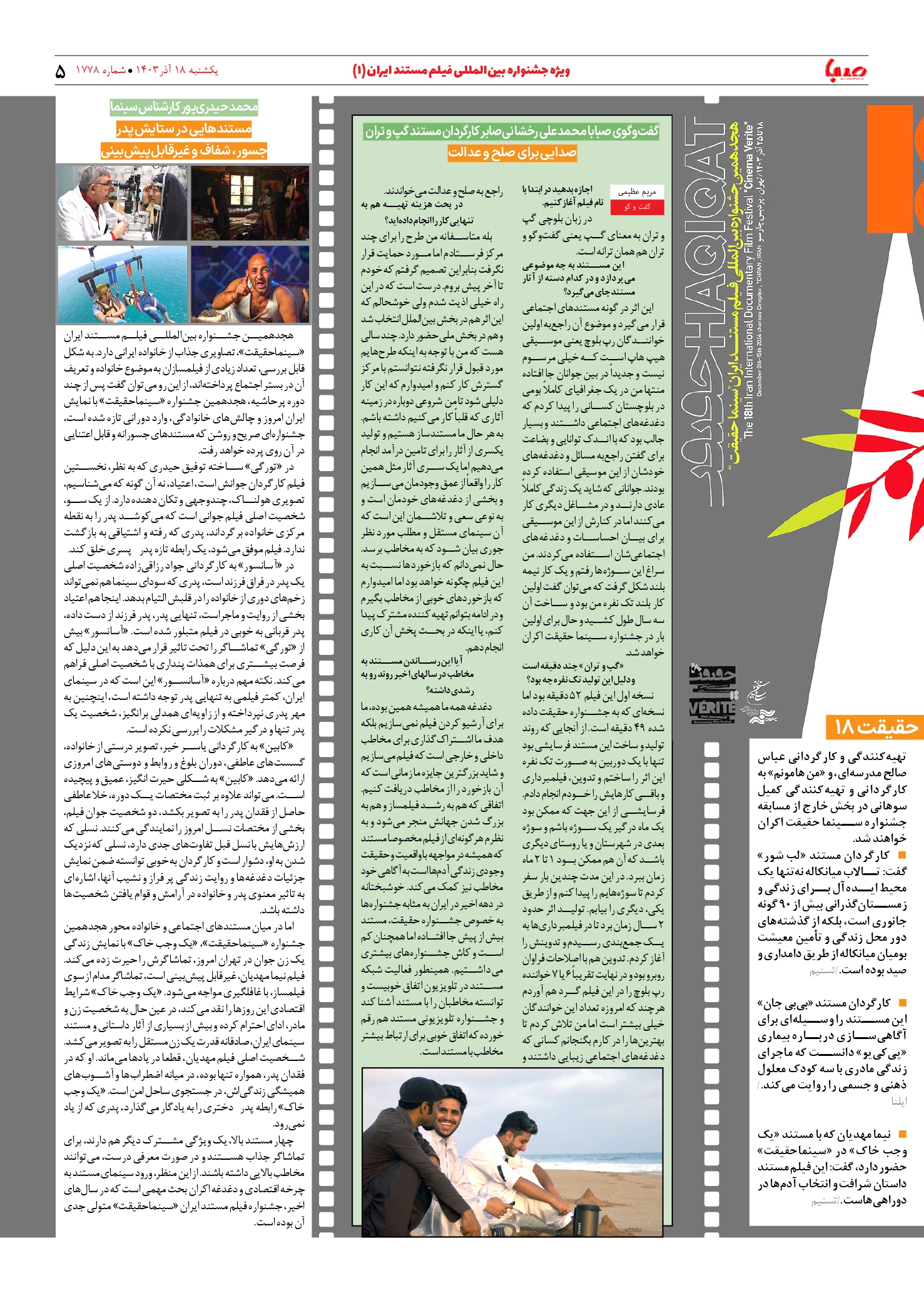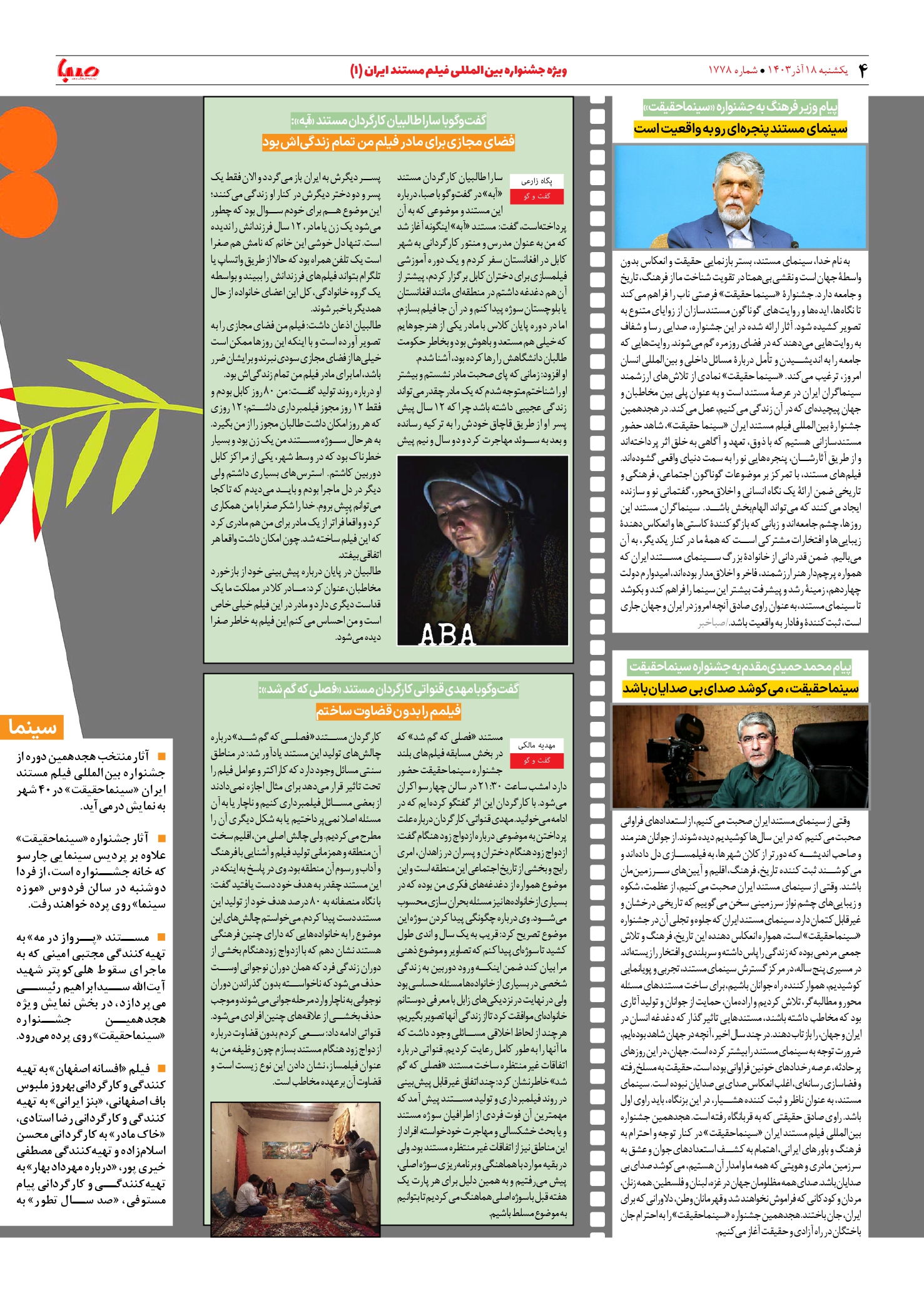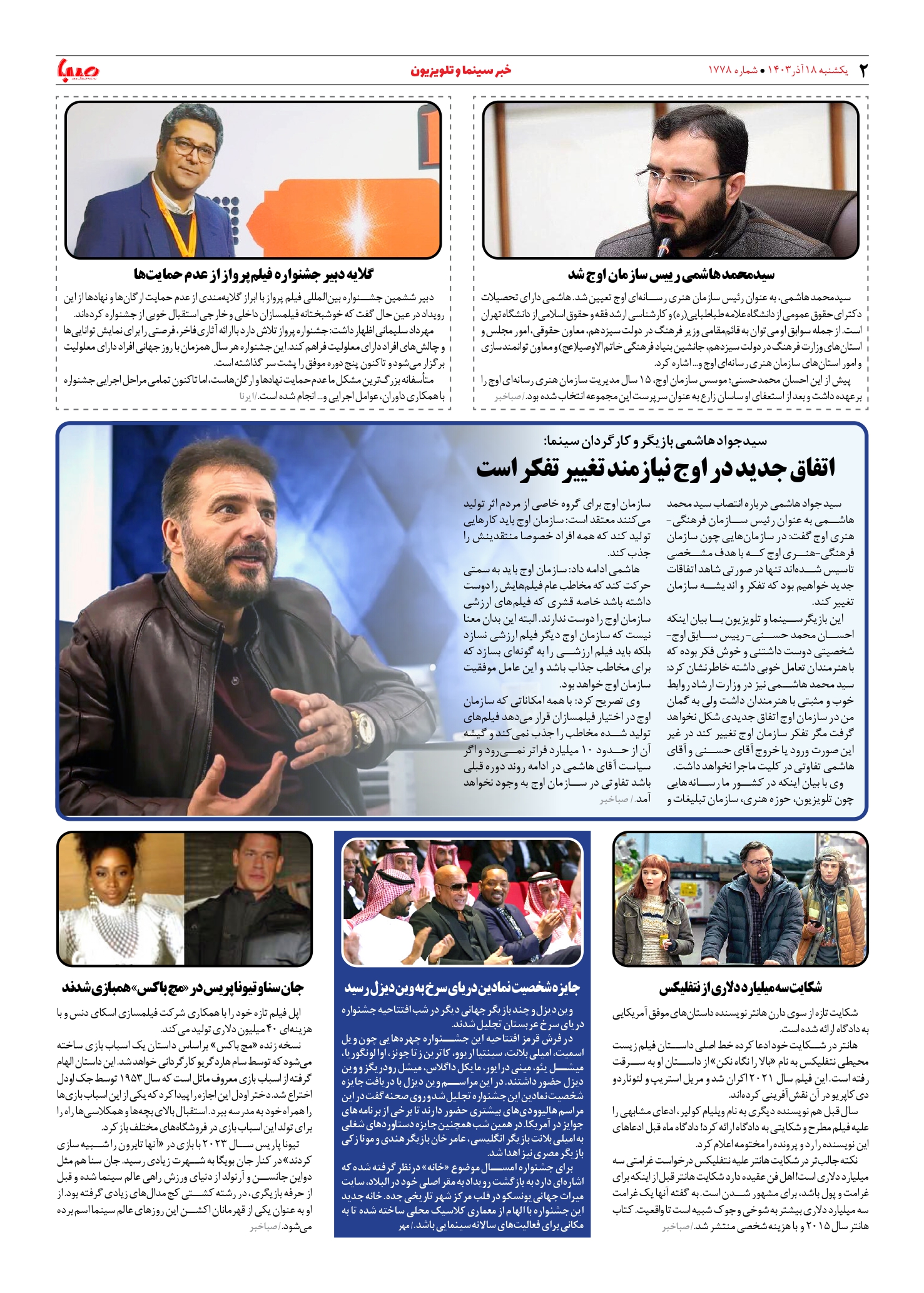 شماره ۱۷۷۸| روزنامه صبا یکشنبه ۱۸ آذر ۱۴۰۳