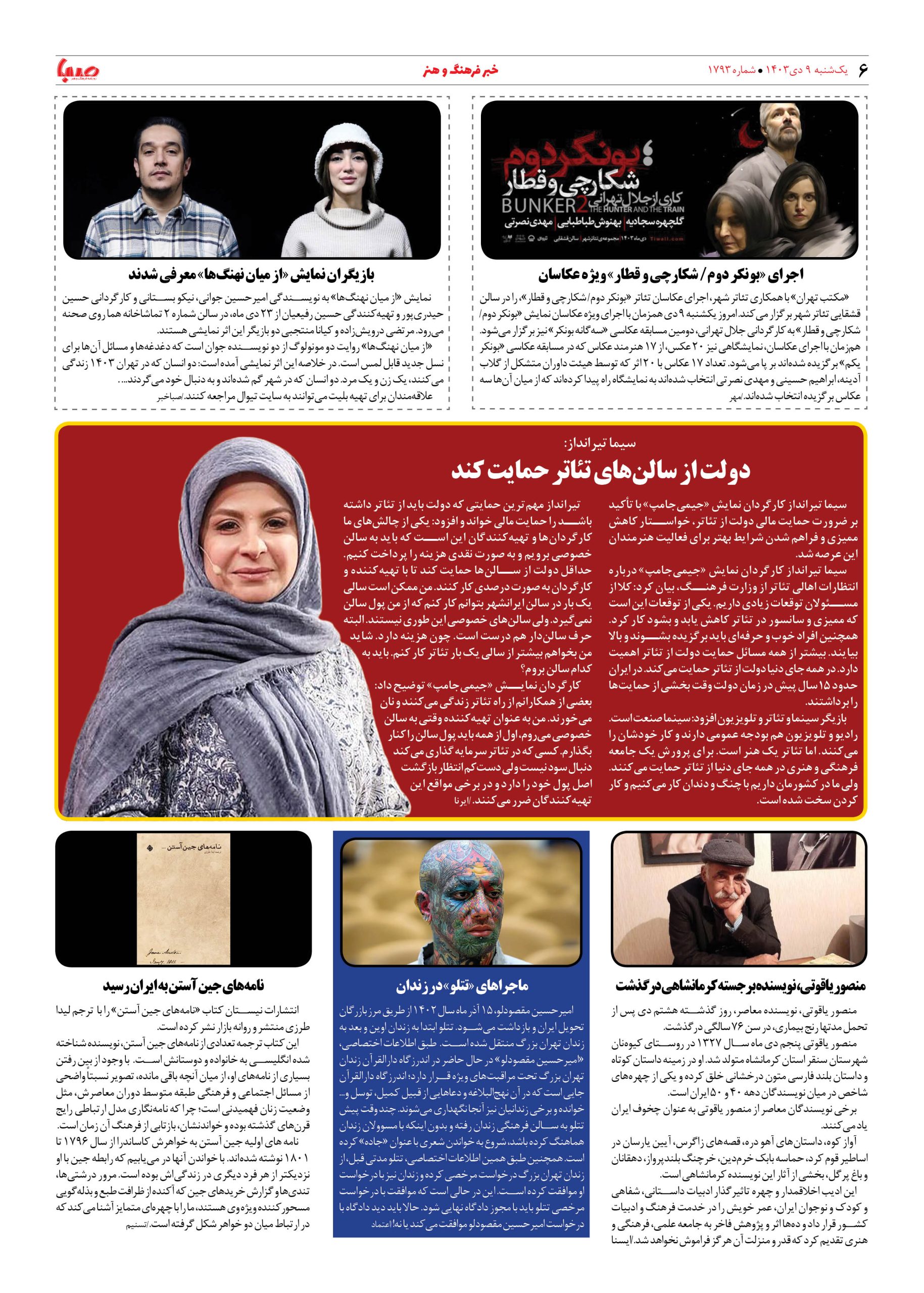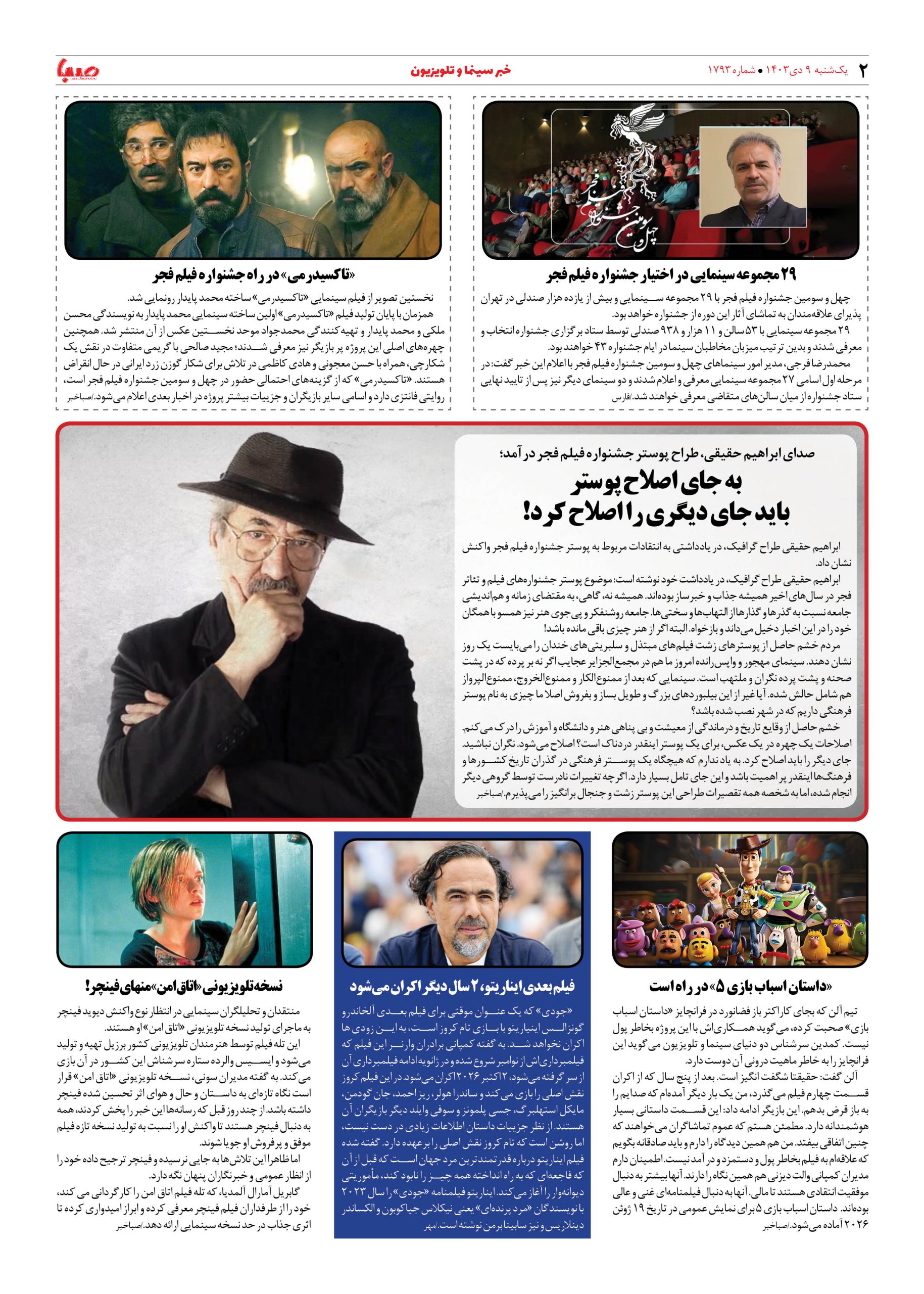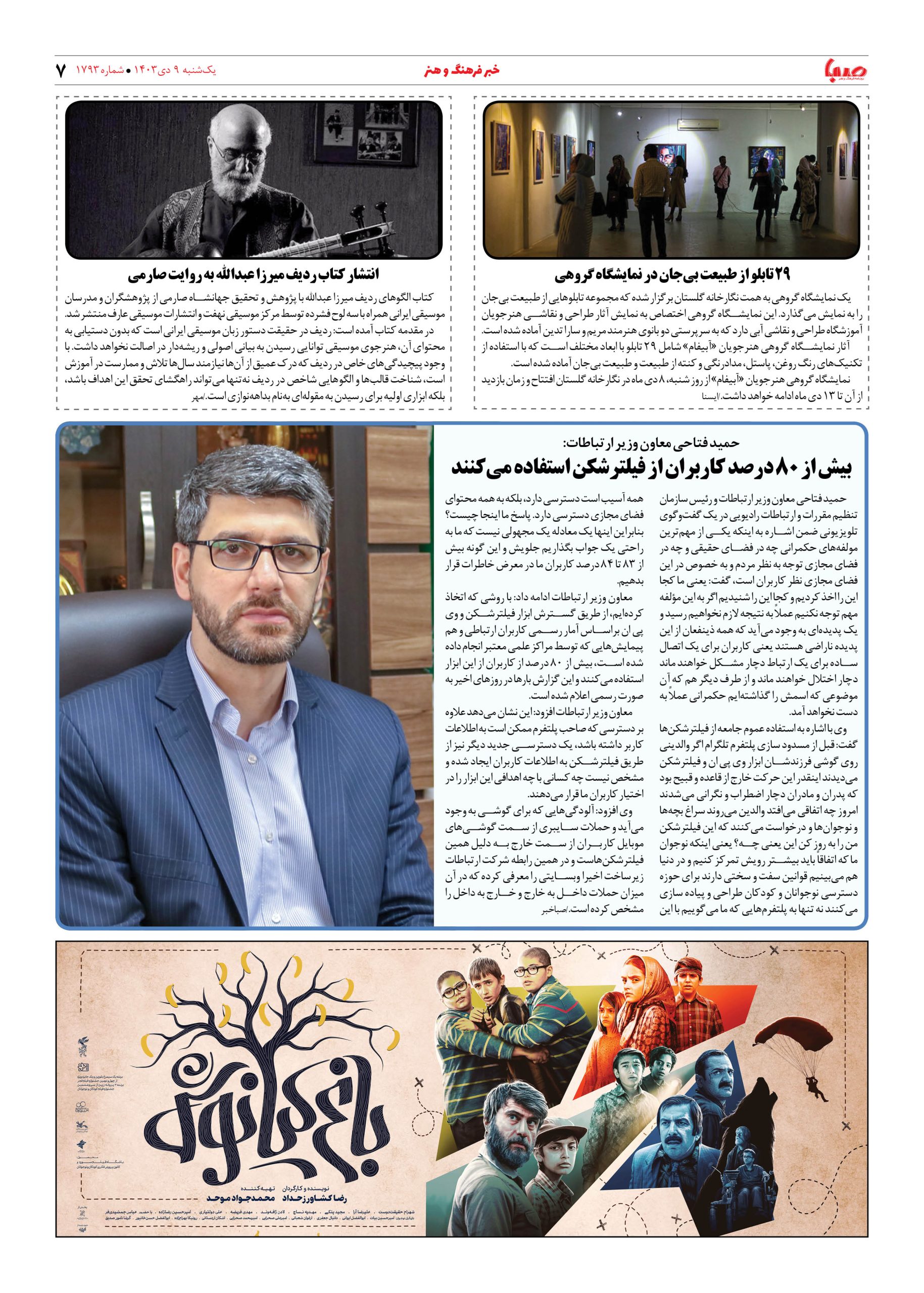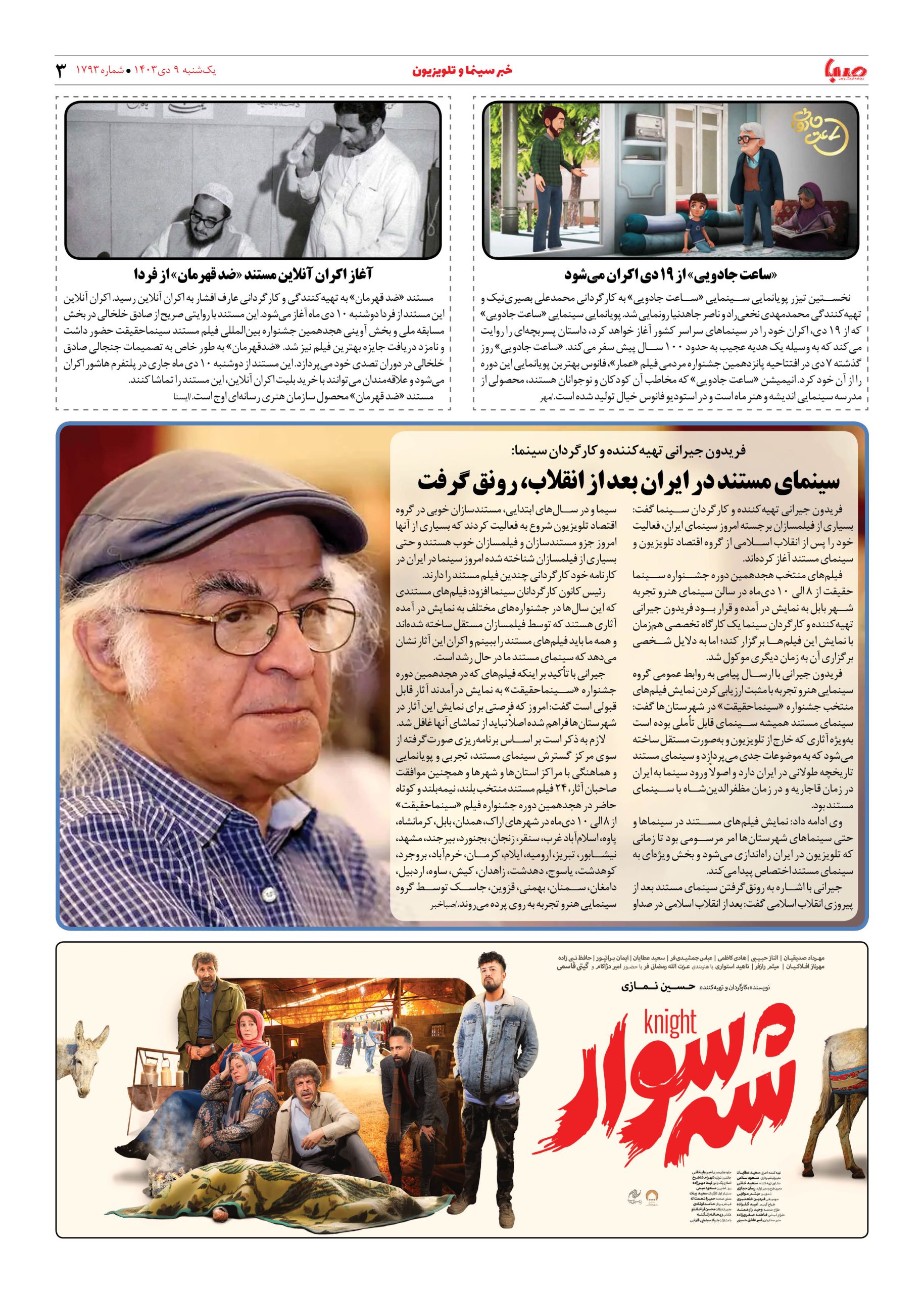 شماره ۱۷۹۳| روزنامه صبا یکشنبه ۹ دی ۱۴۰۳