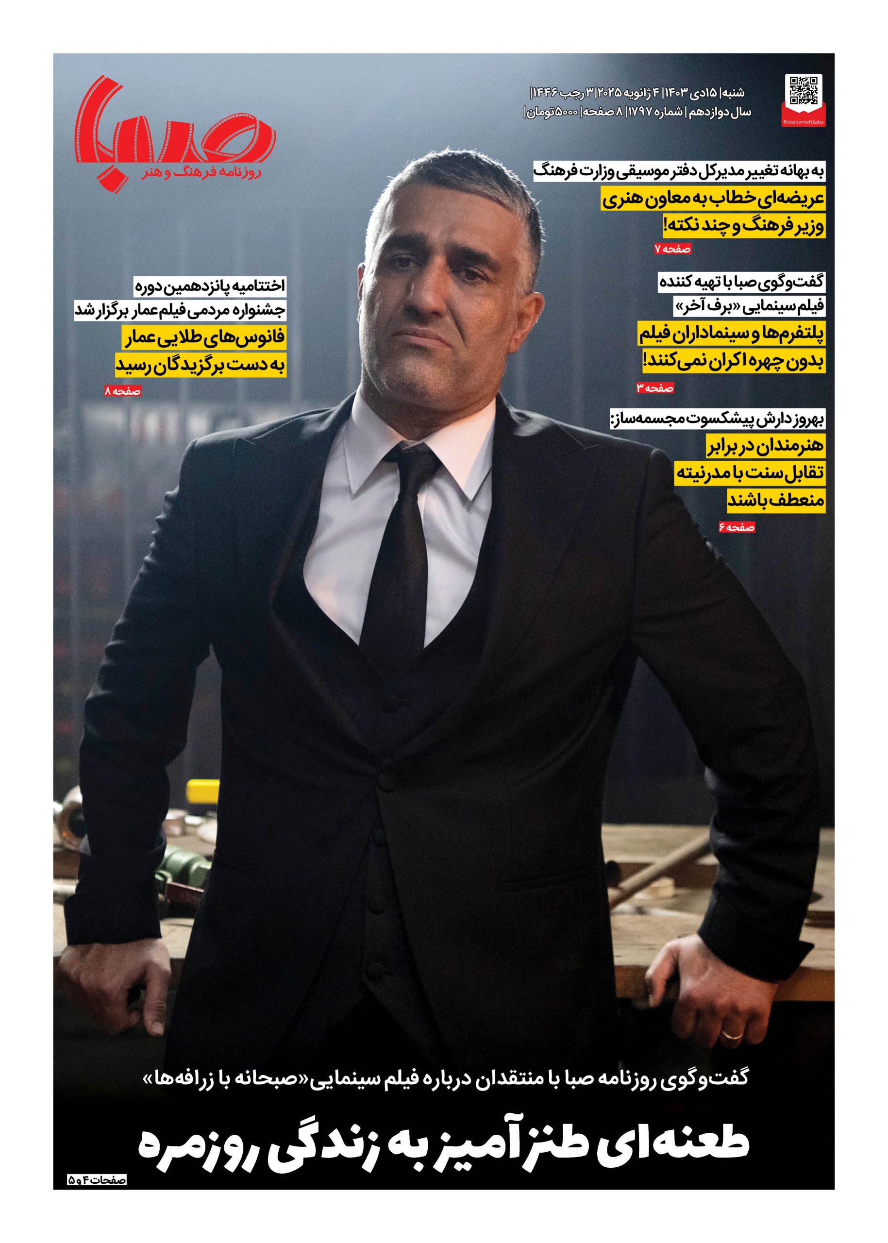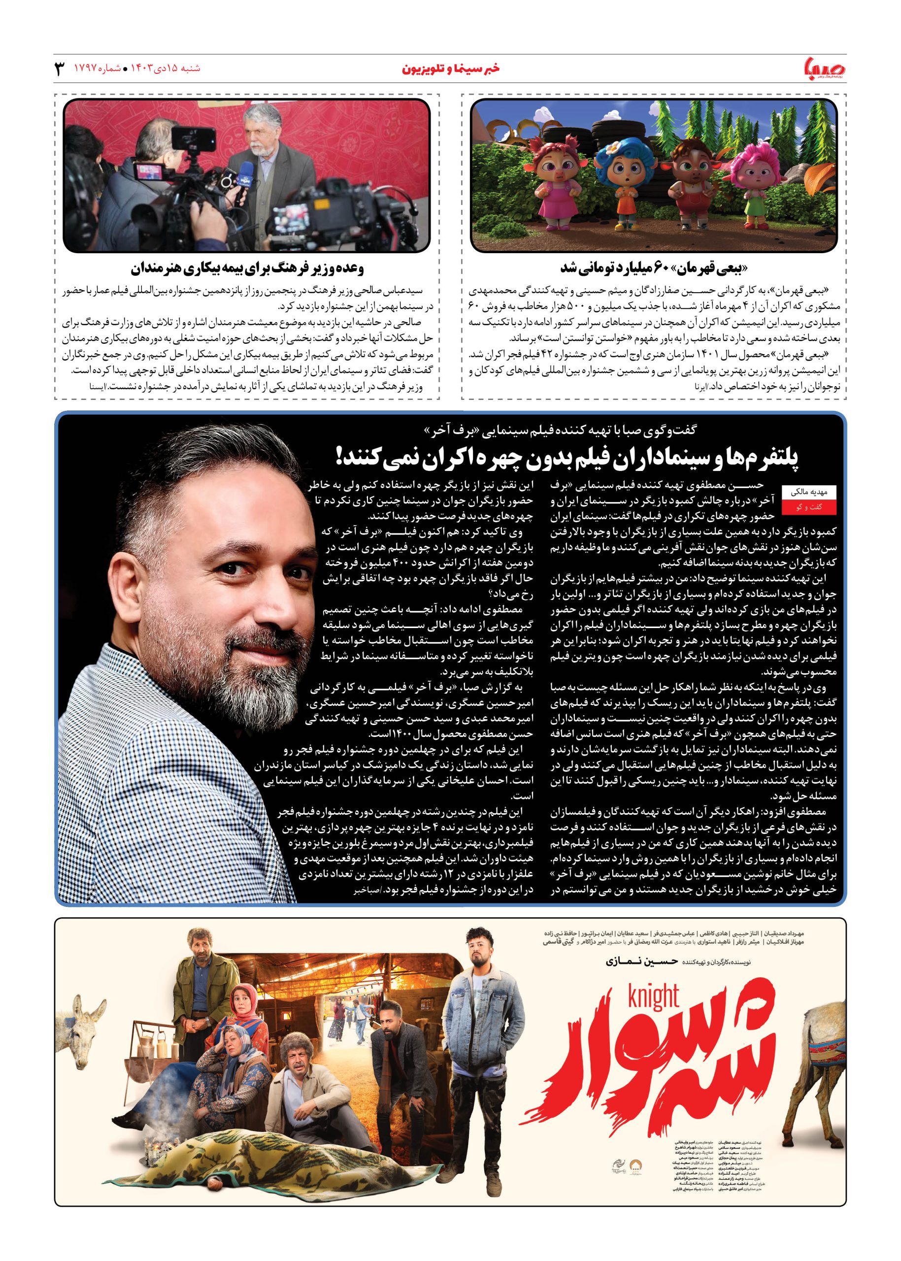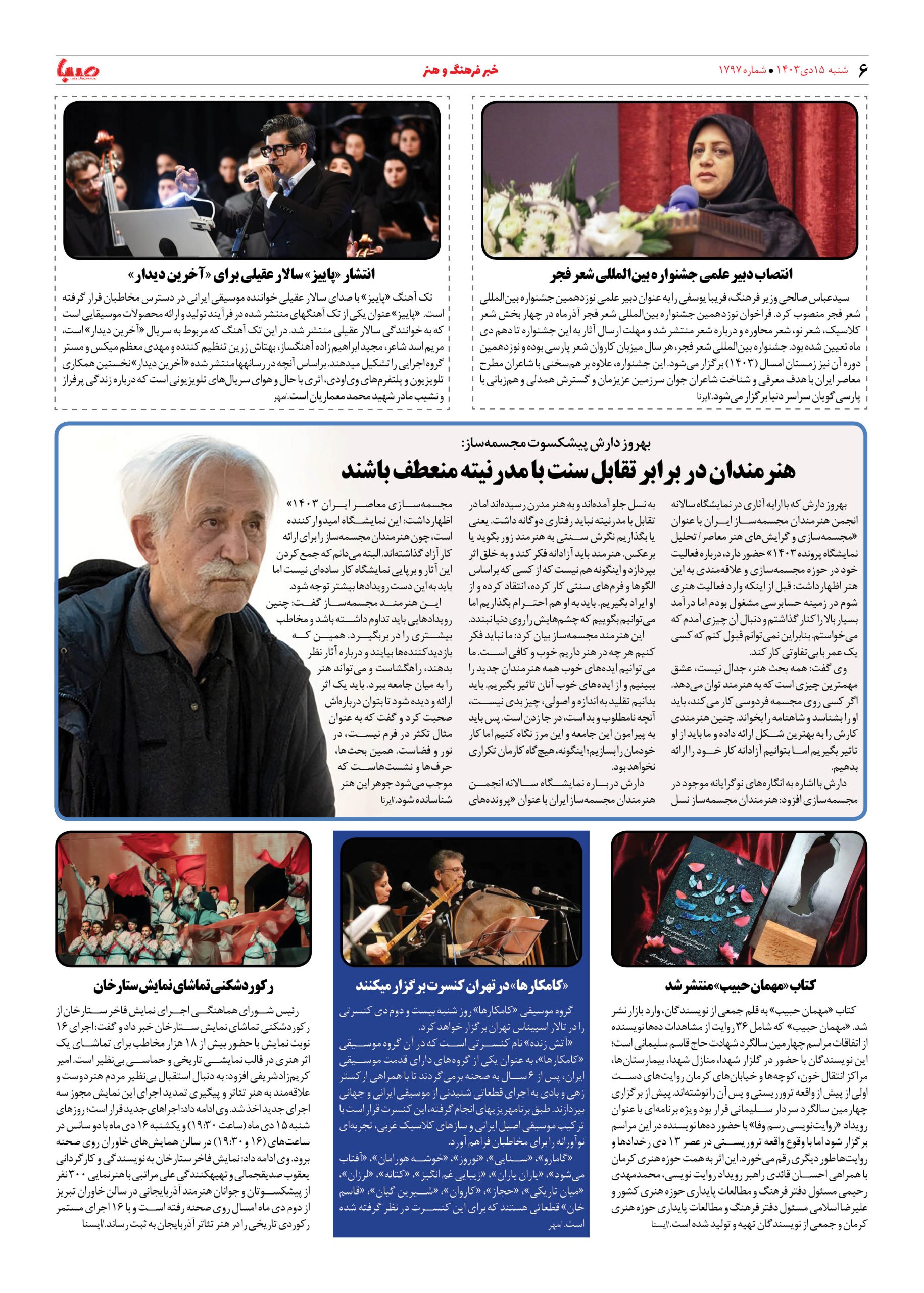 شماره ۱۷۹۷| روزنامه صبا شنبه ۱۵ دی ۱۴۰۳