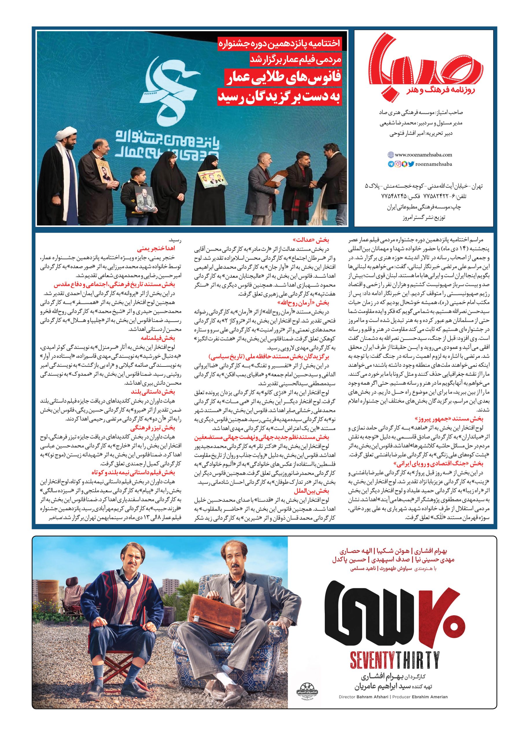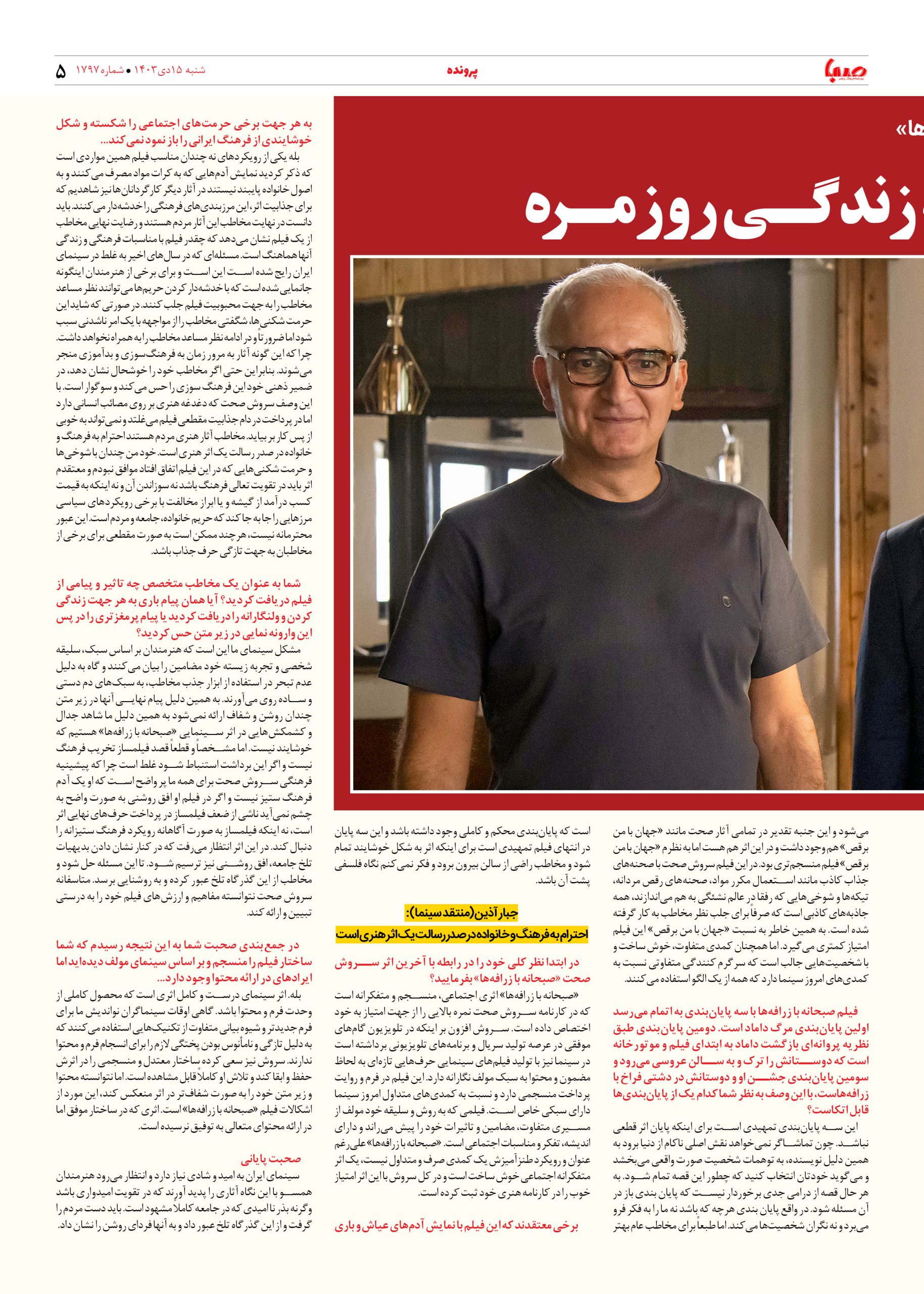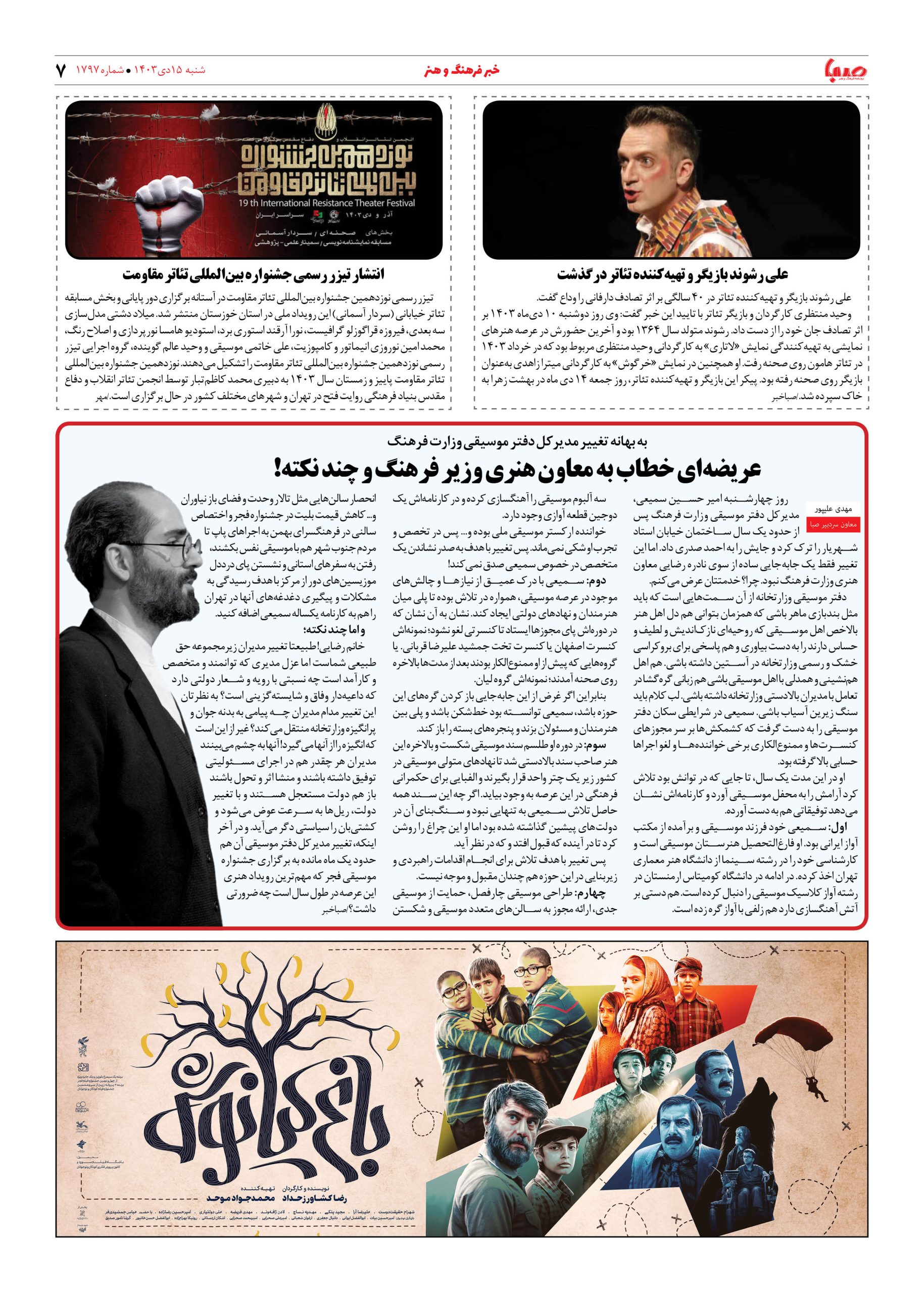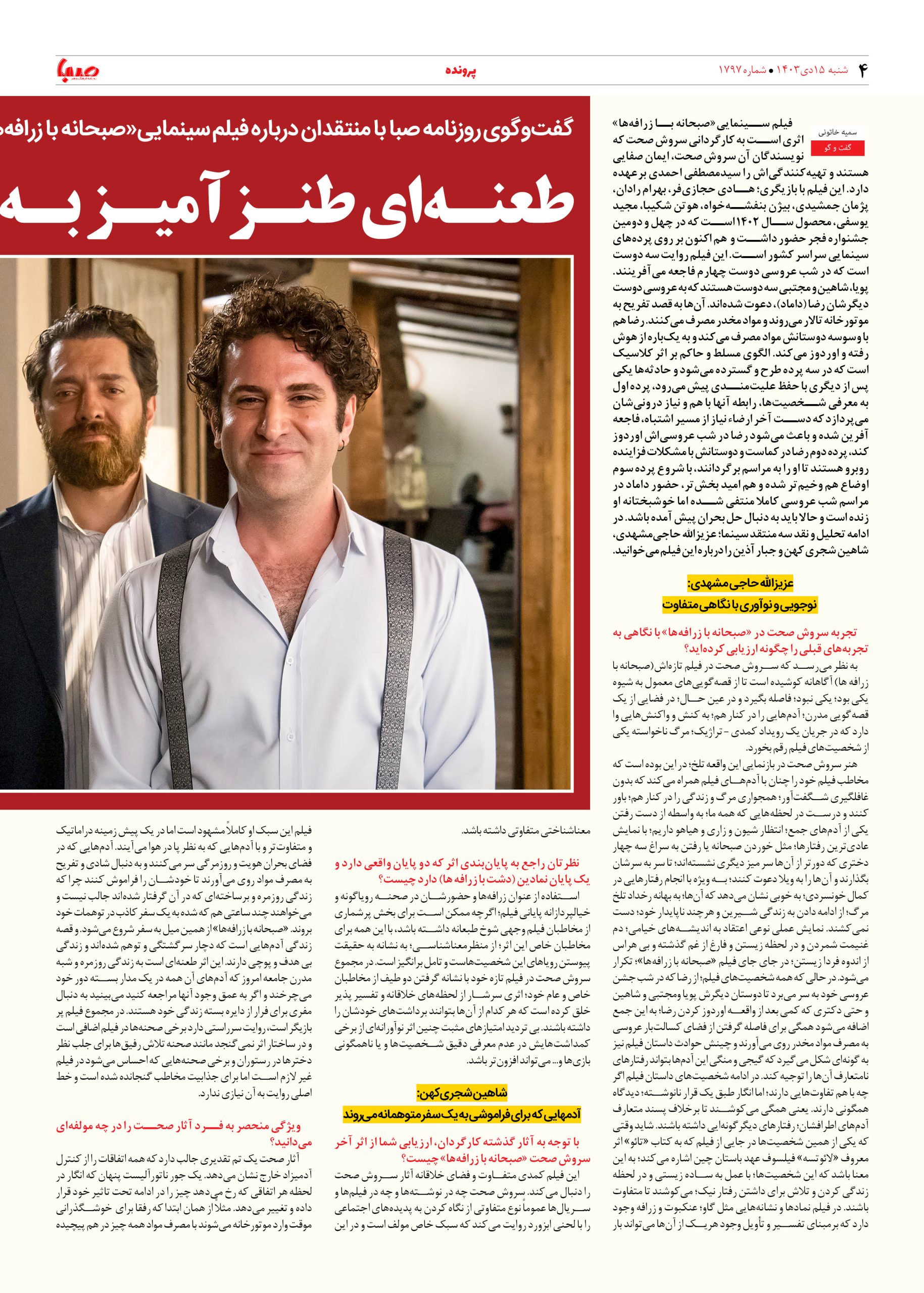 شماره ۱۷۹۷| روزنامه صبا شنبه ۱۵ دی ۱۴۰۳