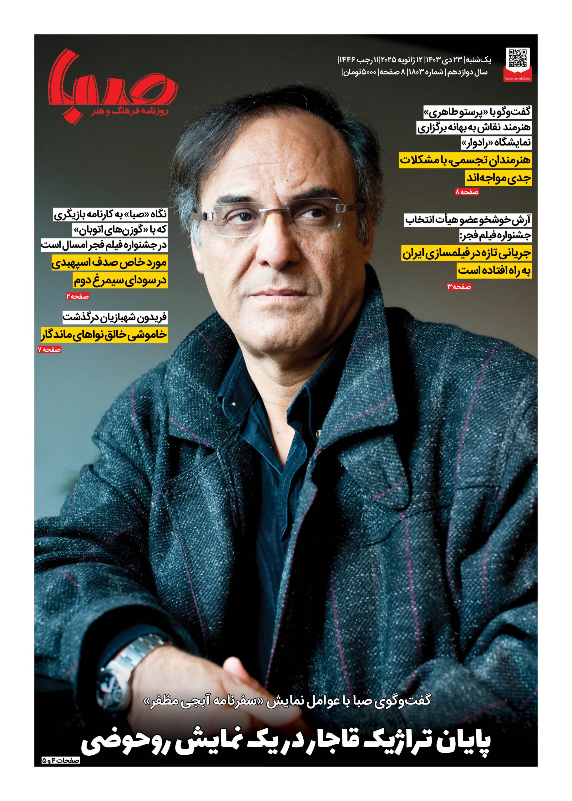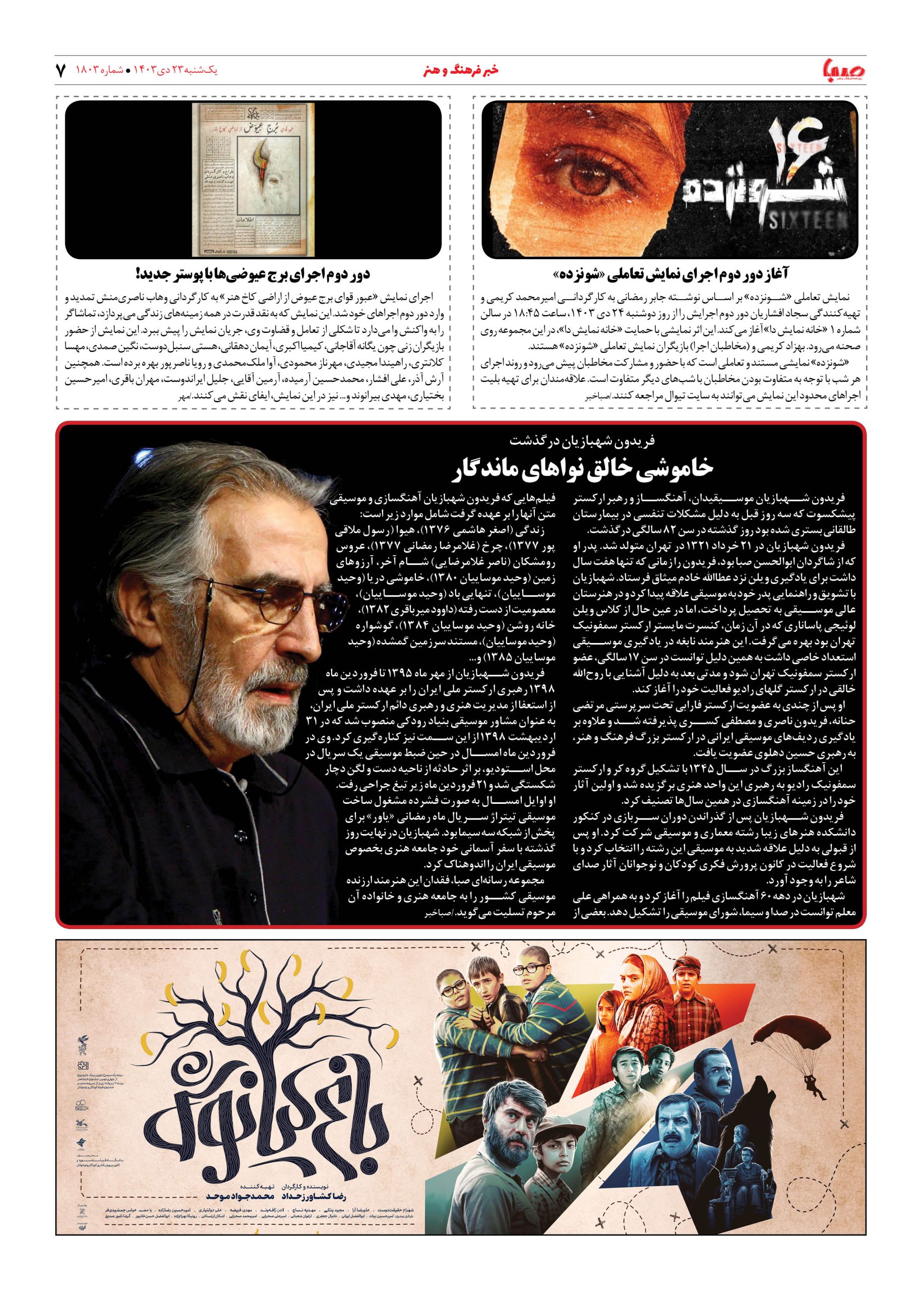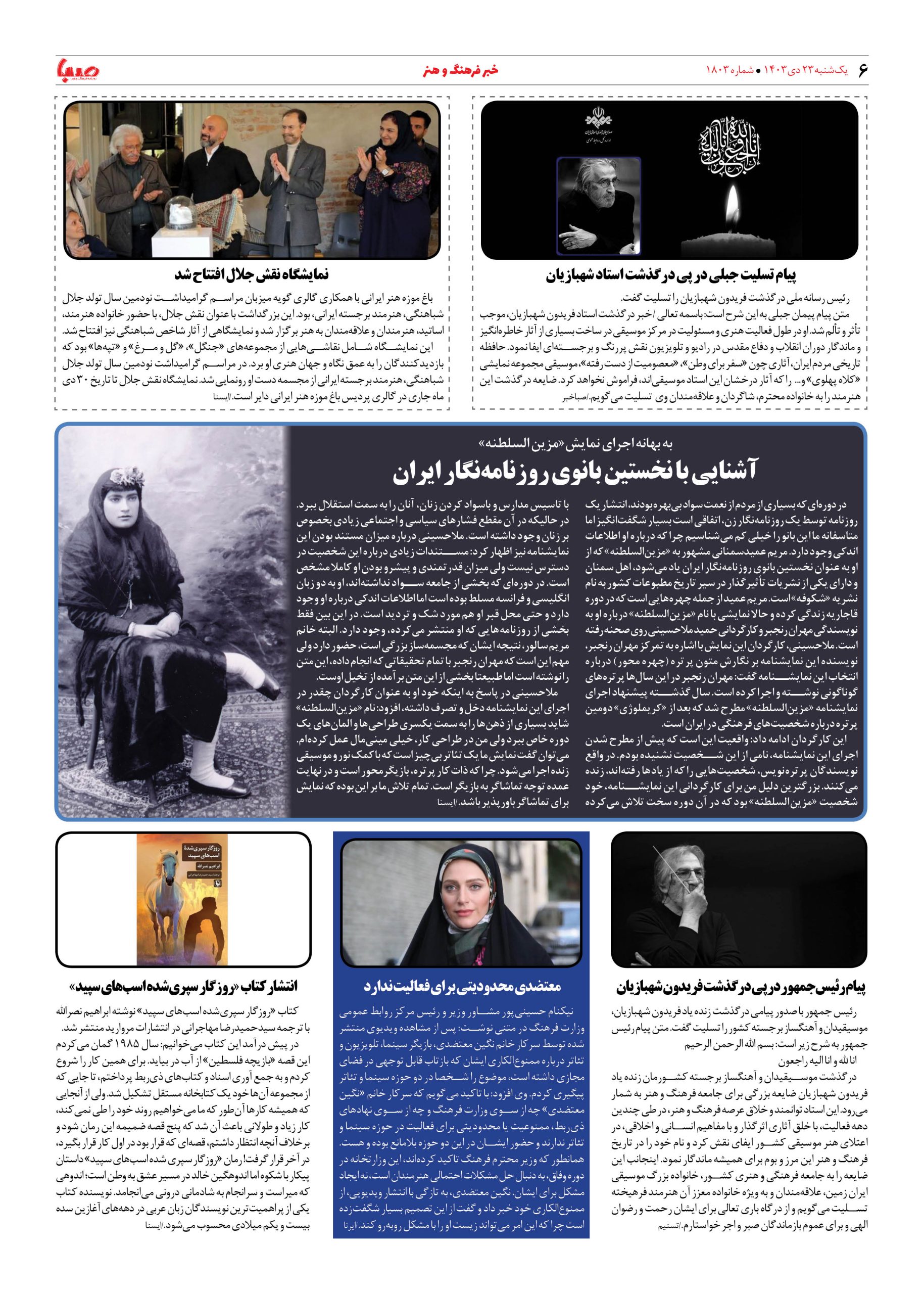 شماره ۱۸۰۳| روزنامه صبا یکشنبه ۲۳ دی ۱۴۰۳