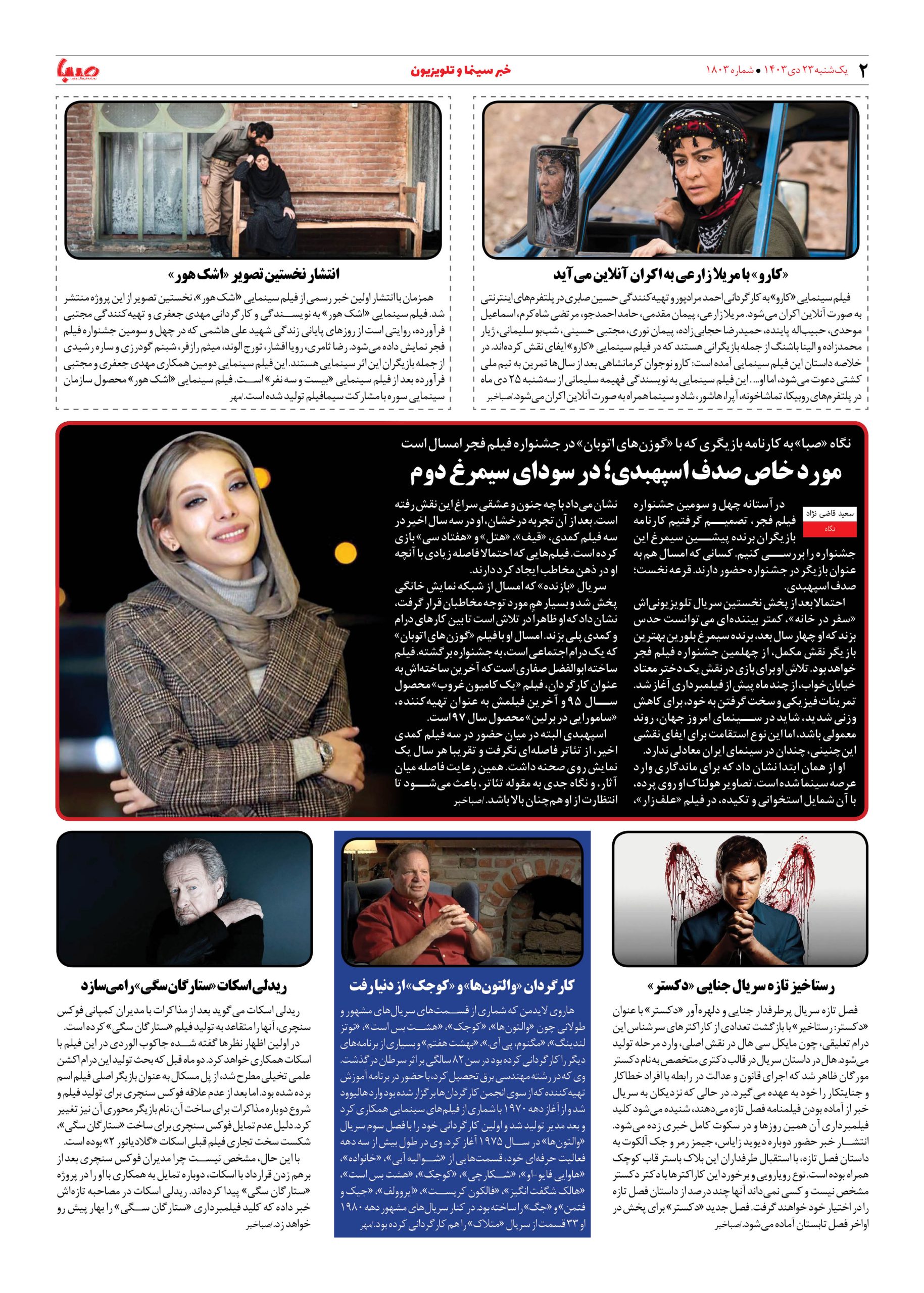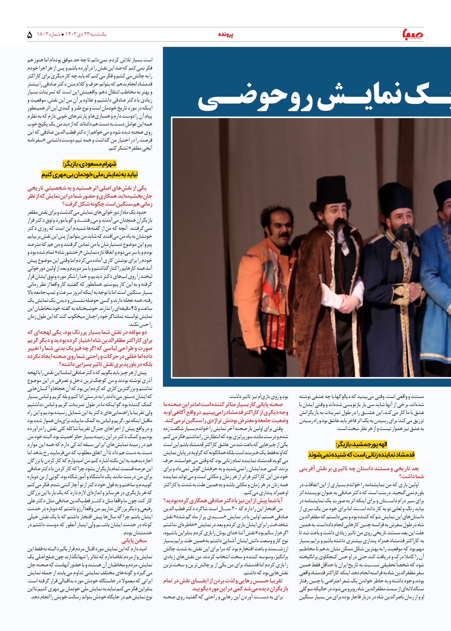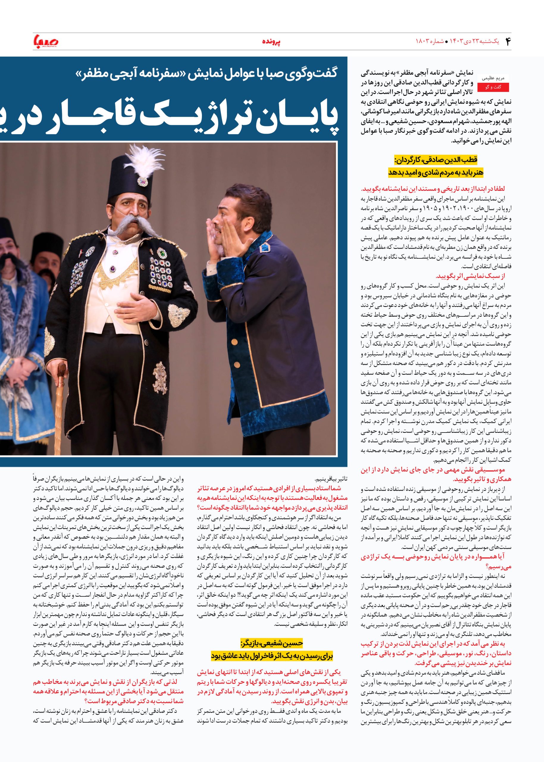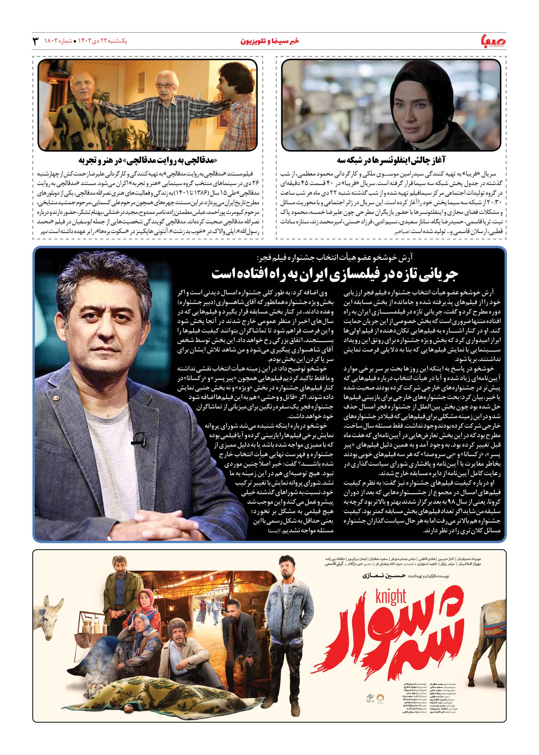 شماره ۱۸۰۳| روزنامه صبا یکشنبه ۲۳ دی ۱۴۰۳