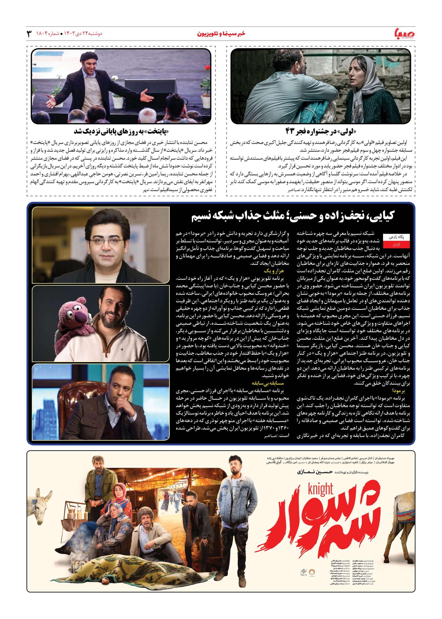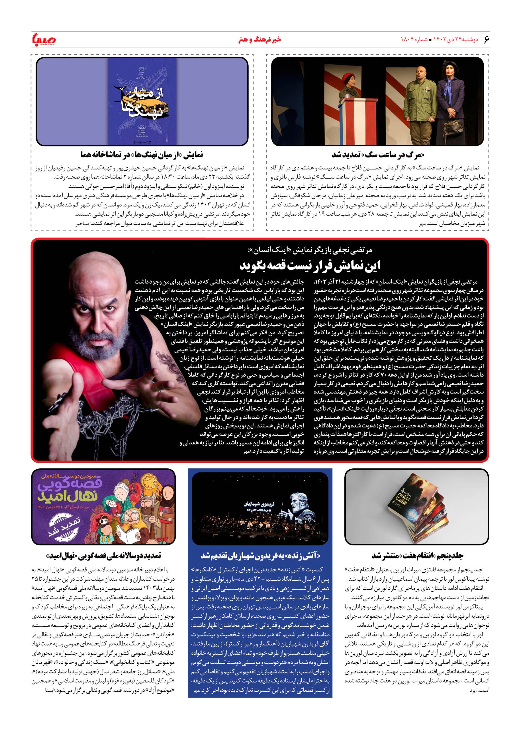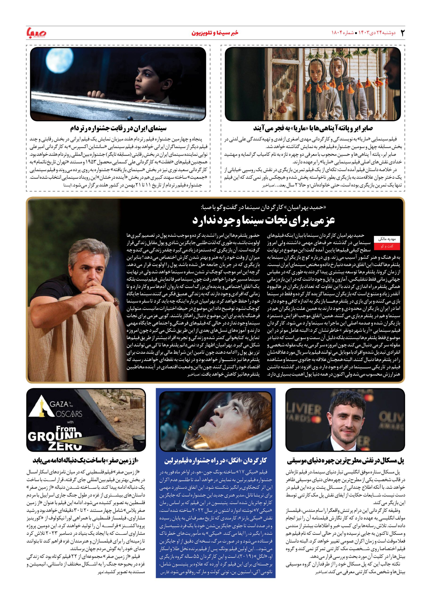 شماره ۱۸۰۴| روزنامه صبا دوشنبه ۲۴ دی ۱۴۰۳