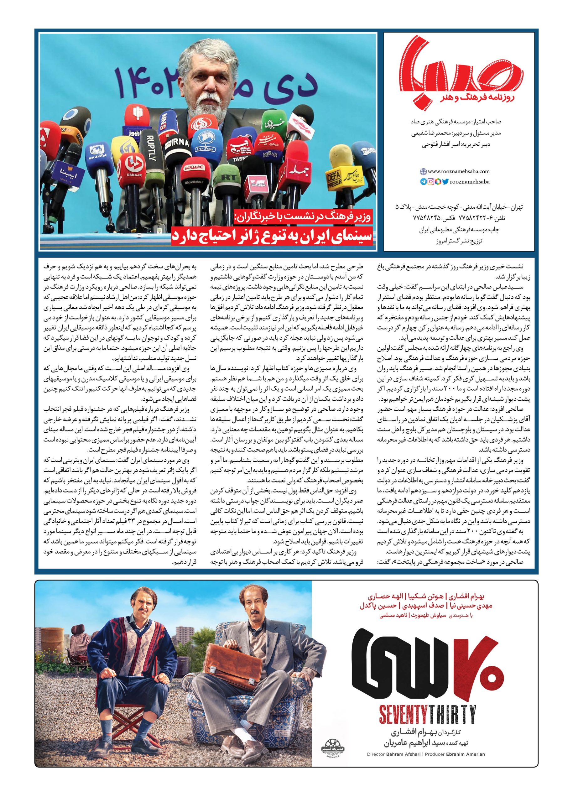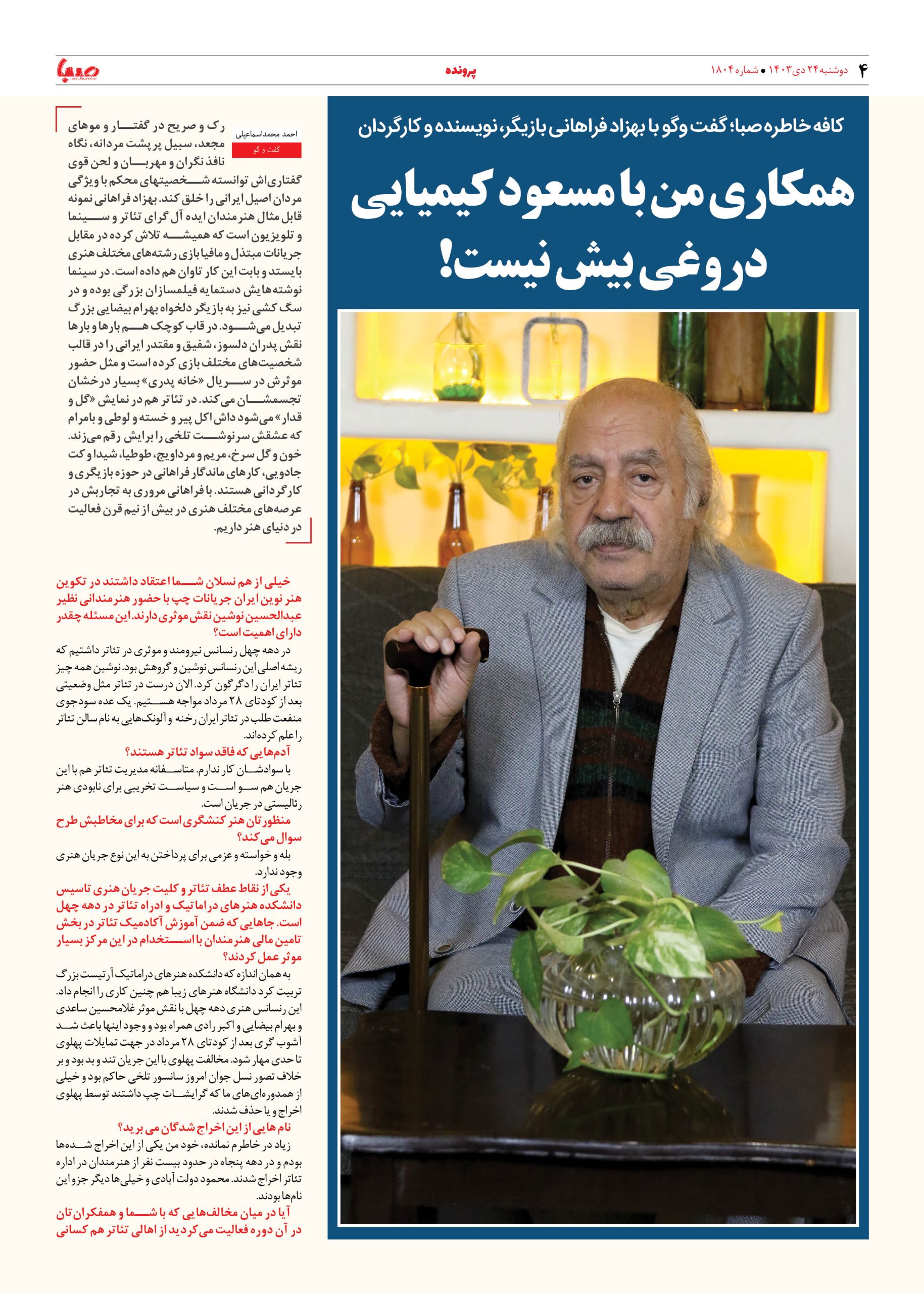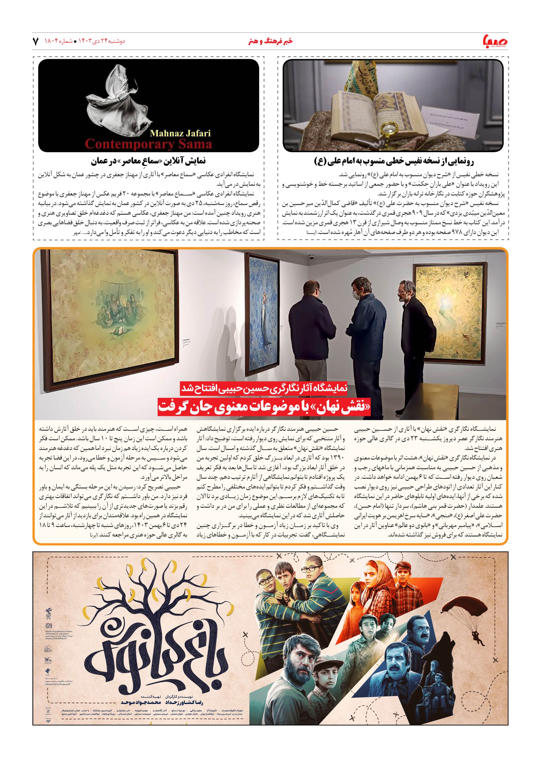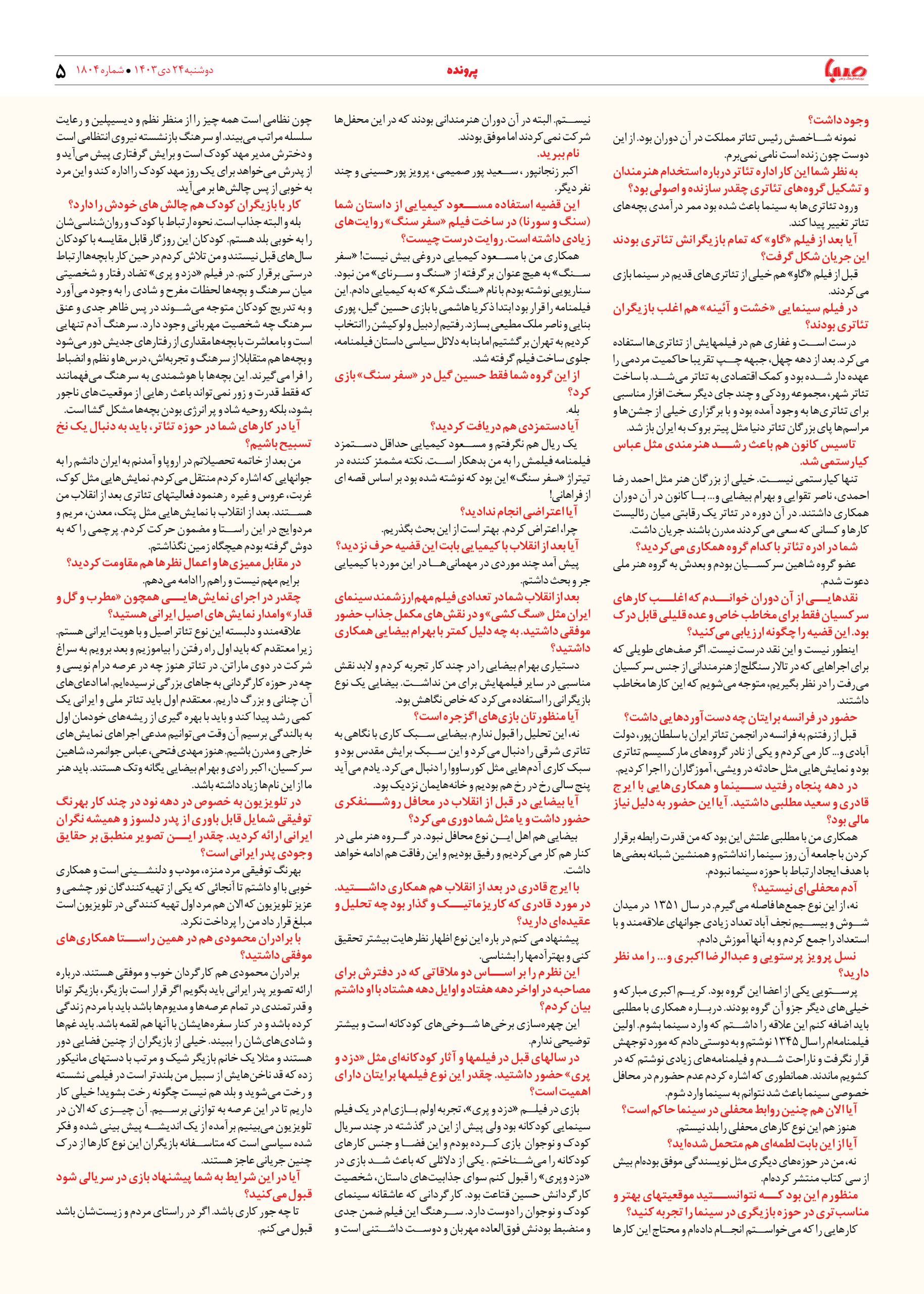 شماره ۱۸۰۴| روزنامه صبا دوشنبه ۲۴ دی ۱۴۰۳