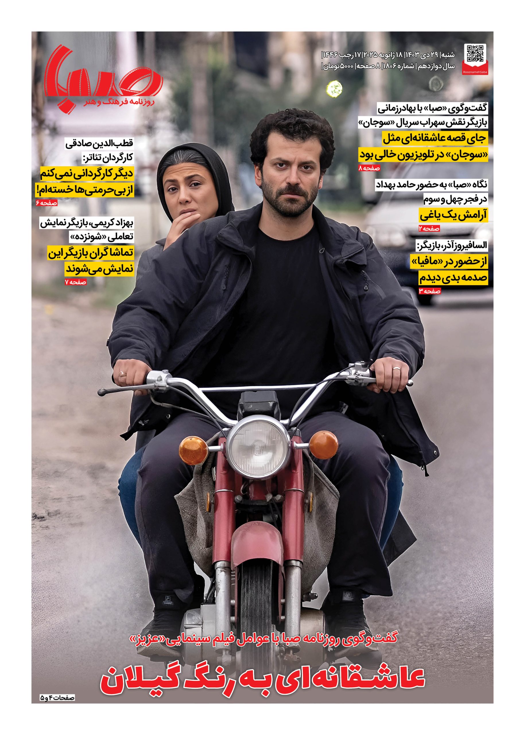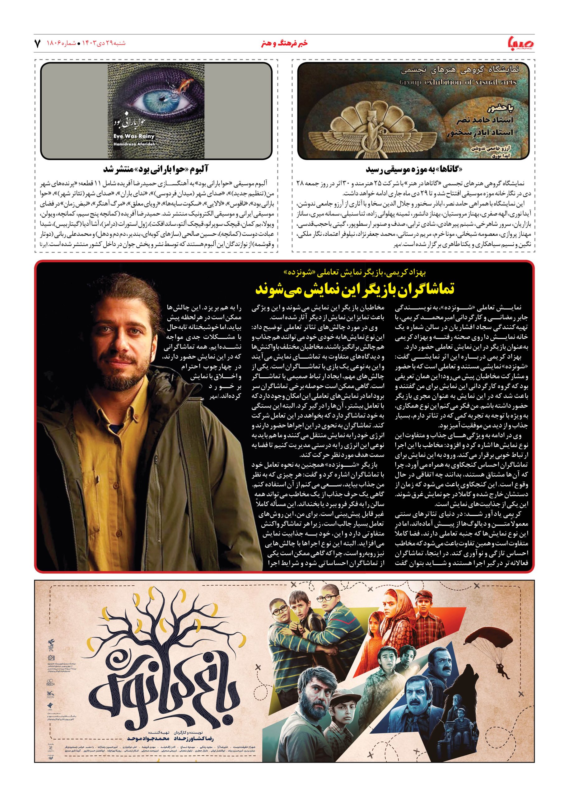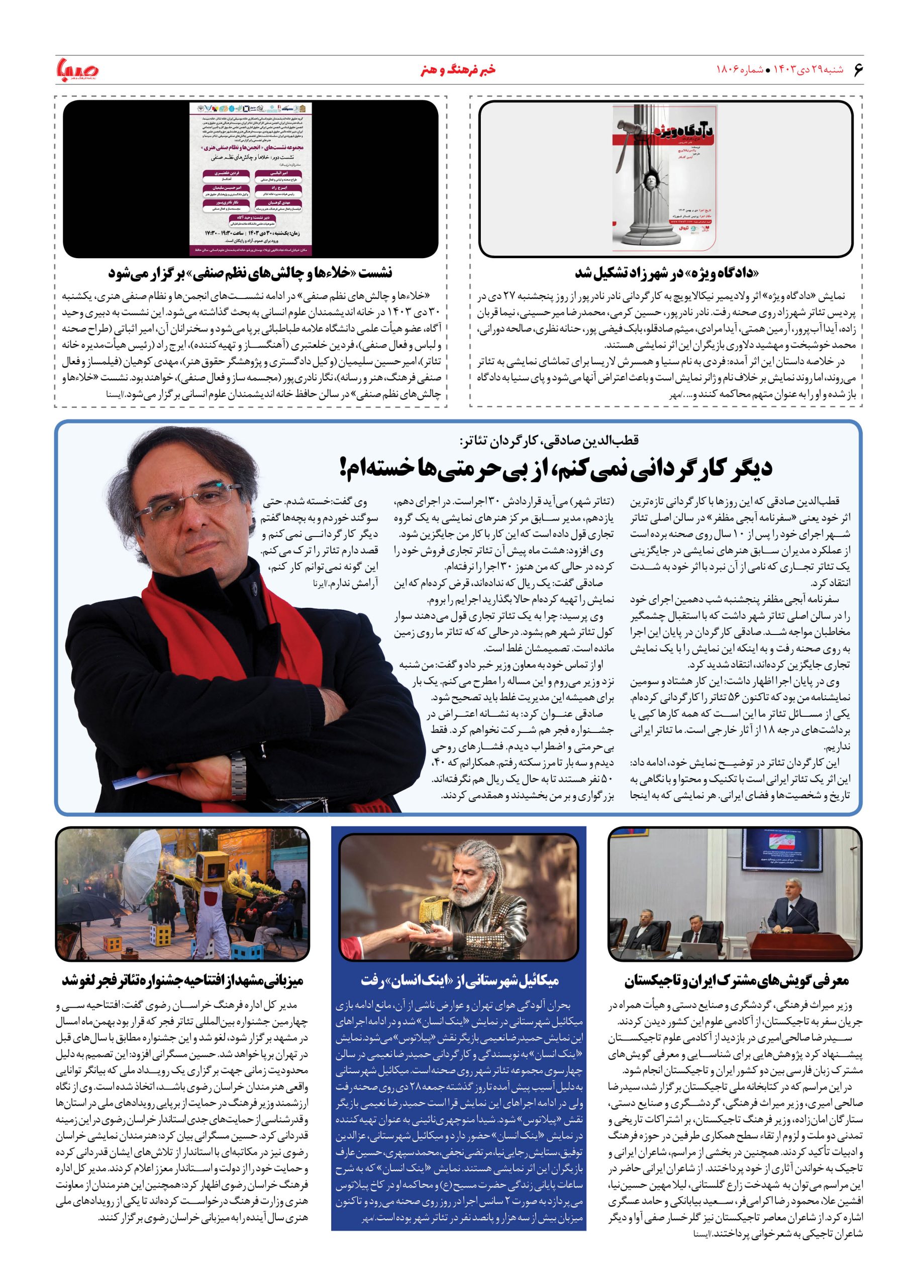 شماره ۱۸۰۶| روزنامه صبا شنبه ۲۹ دی ۱۴۰۳