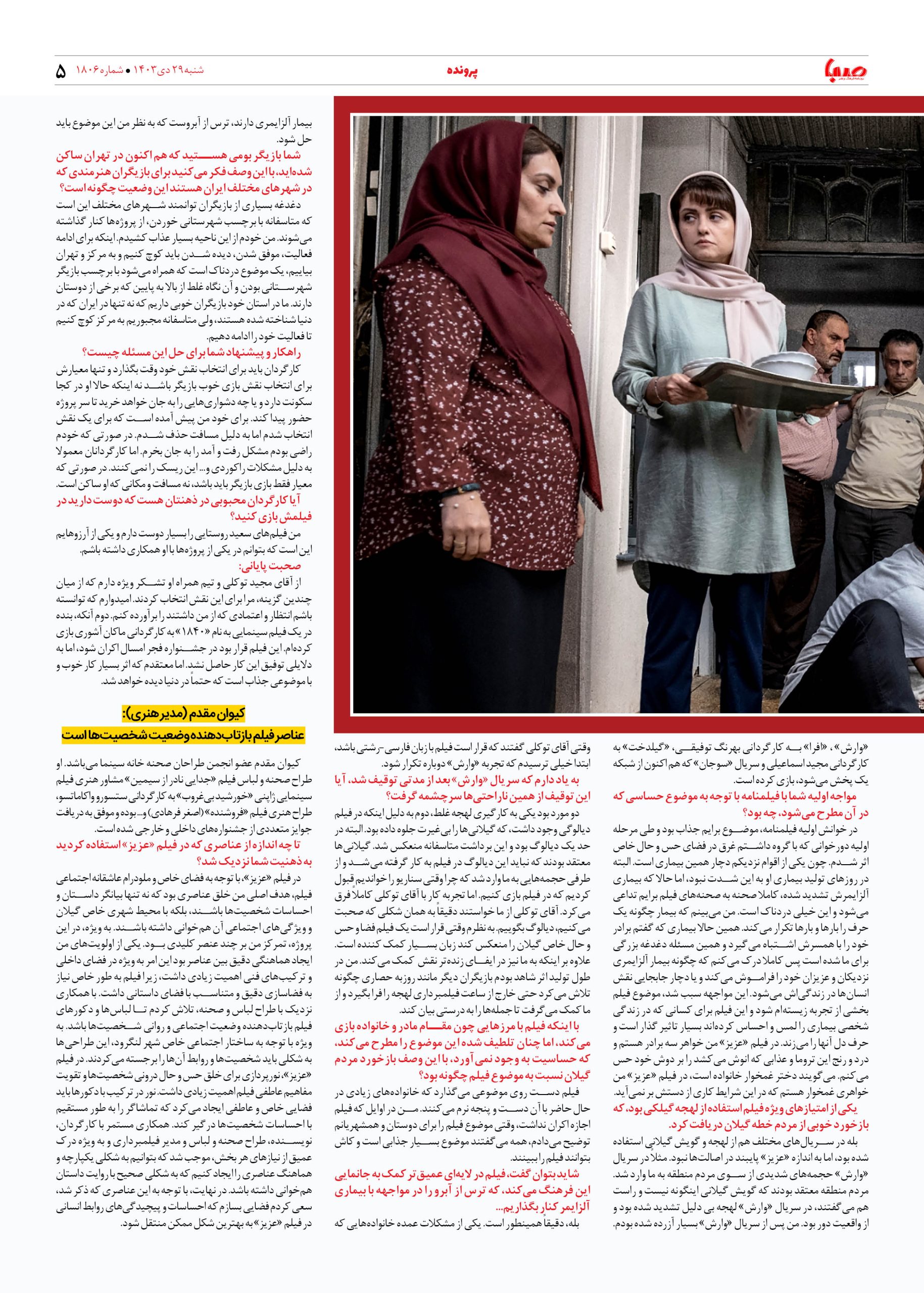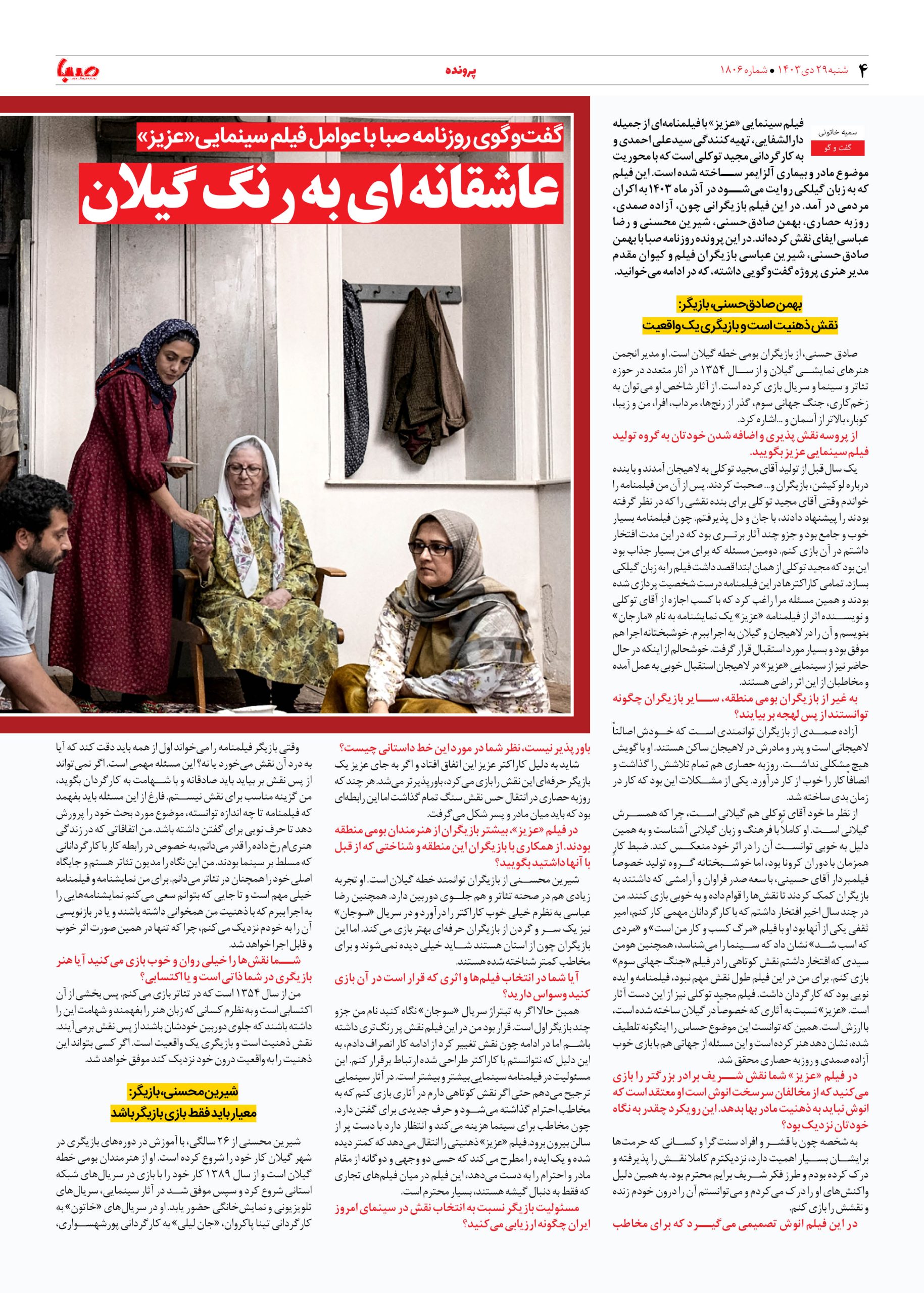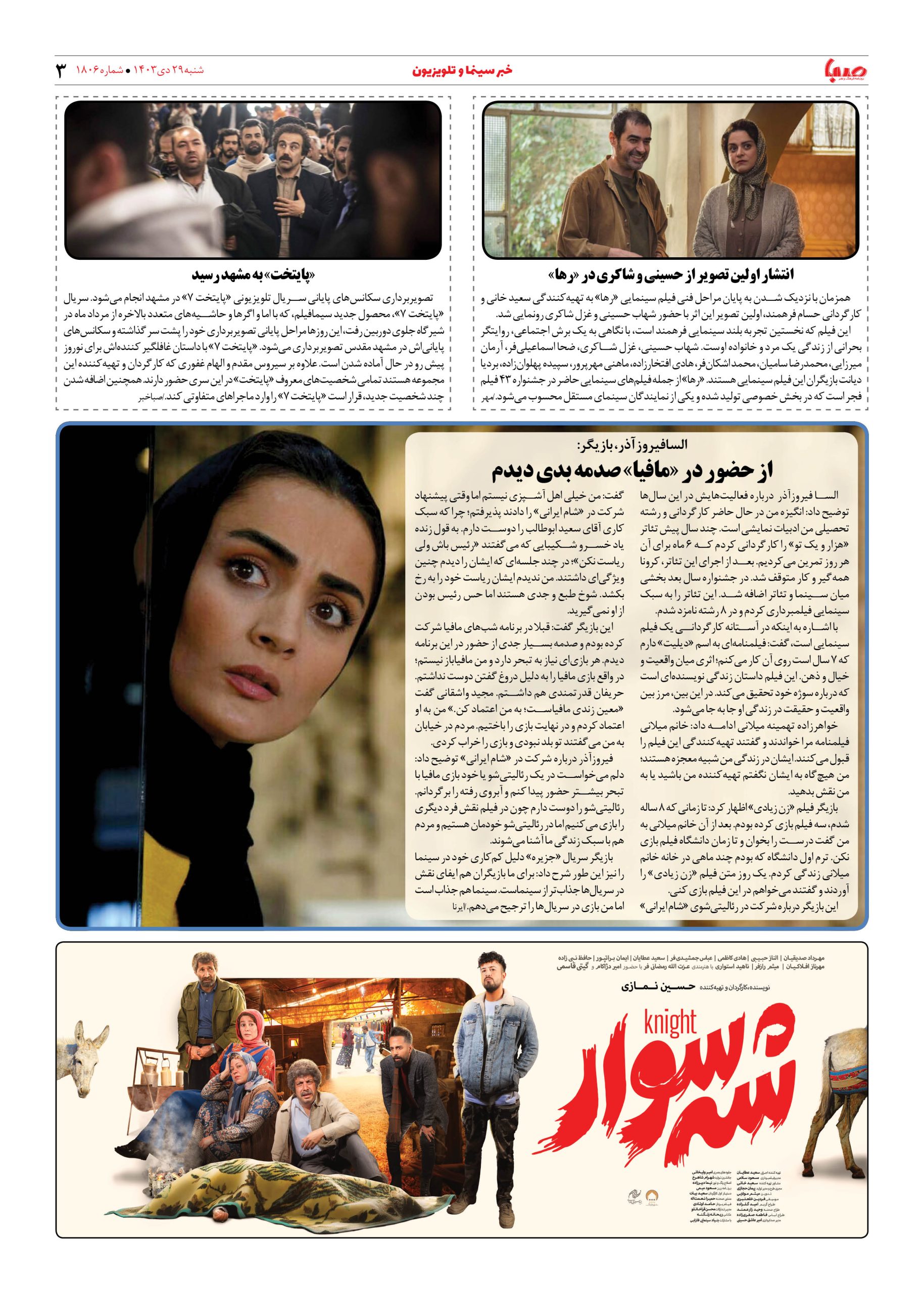 شماره ۱۸۰۶| روزنامه صبا شنبه ۲۹ دی ۱۴۰۳