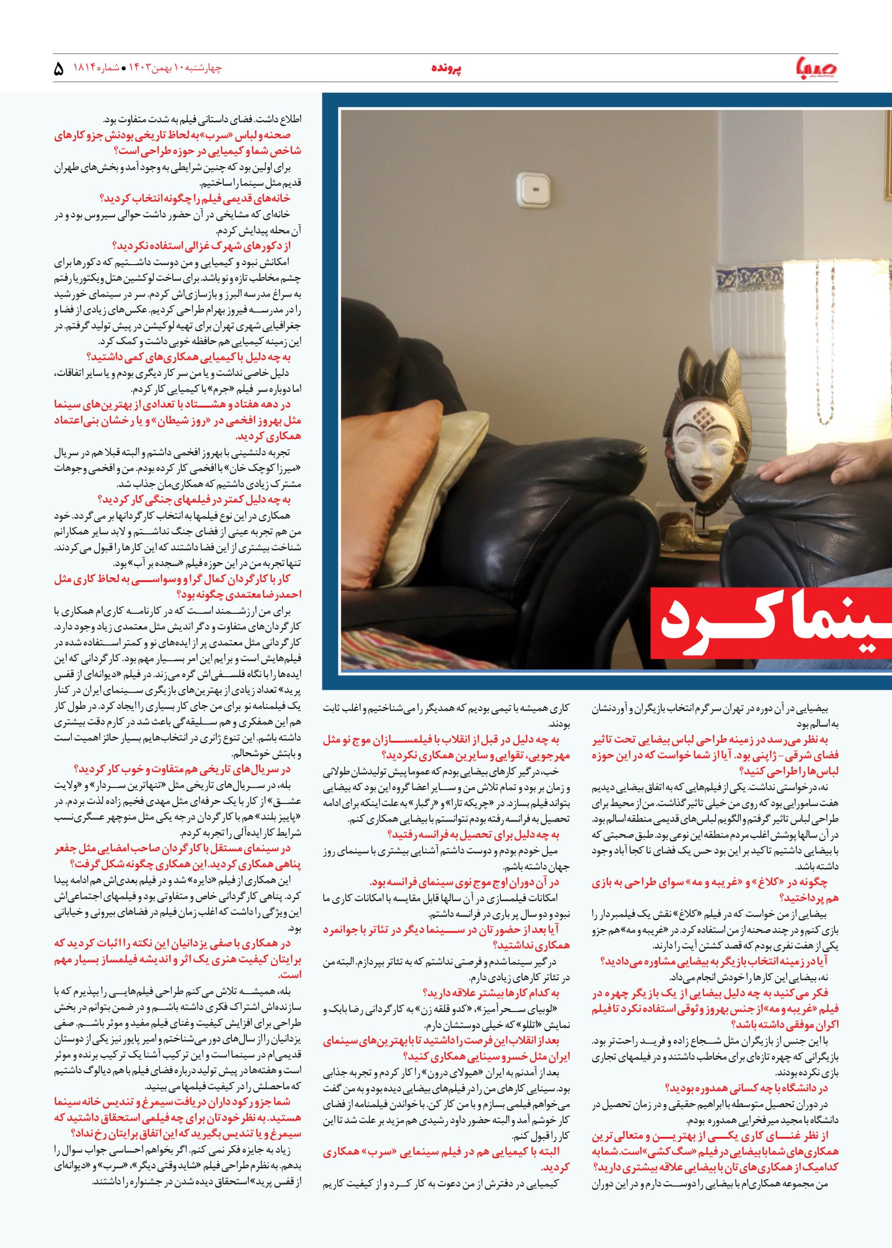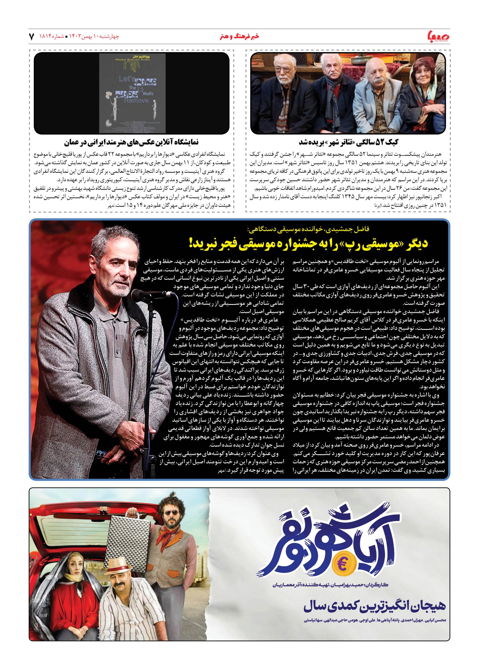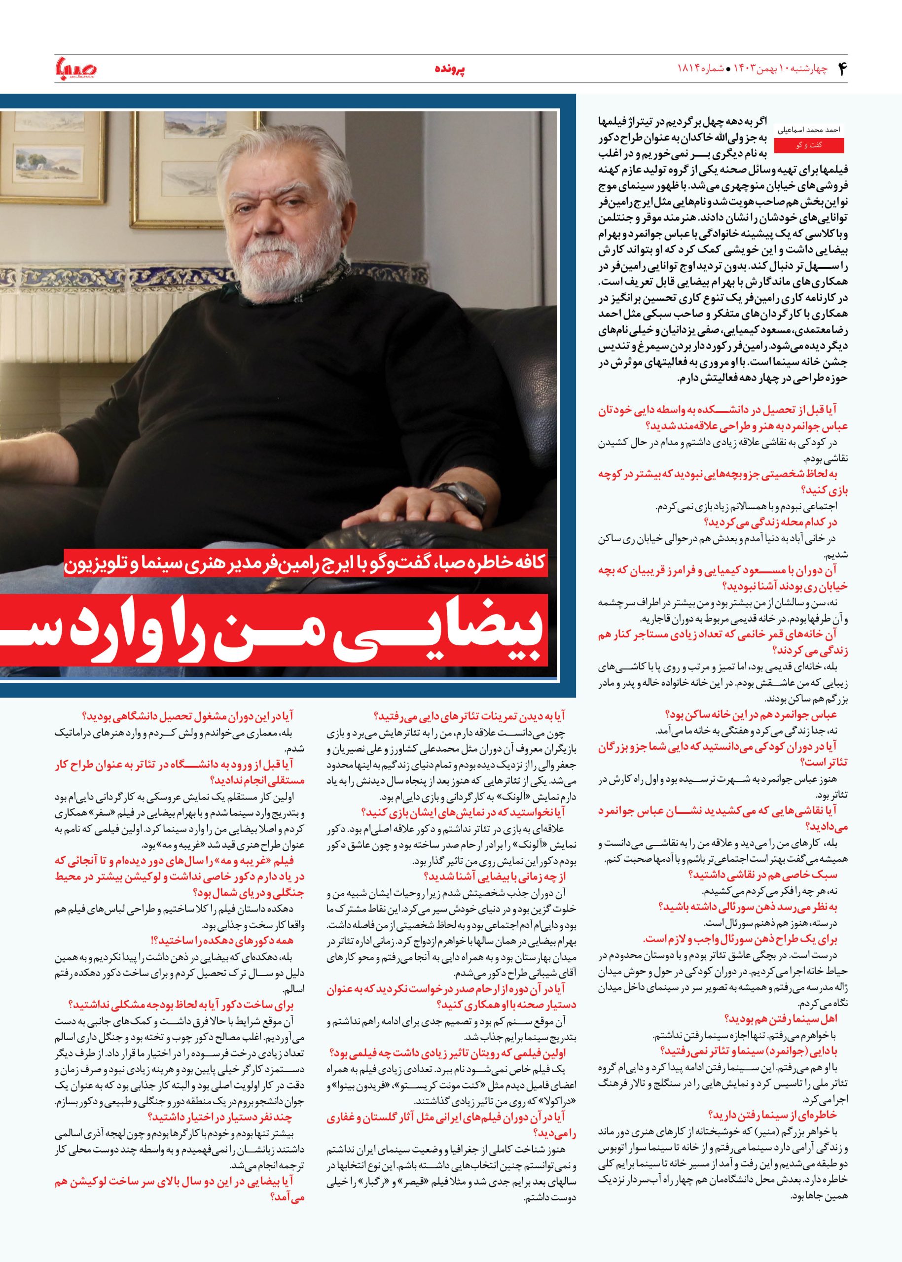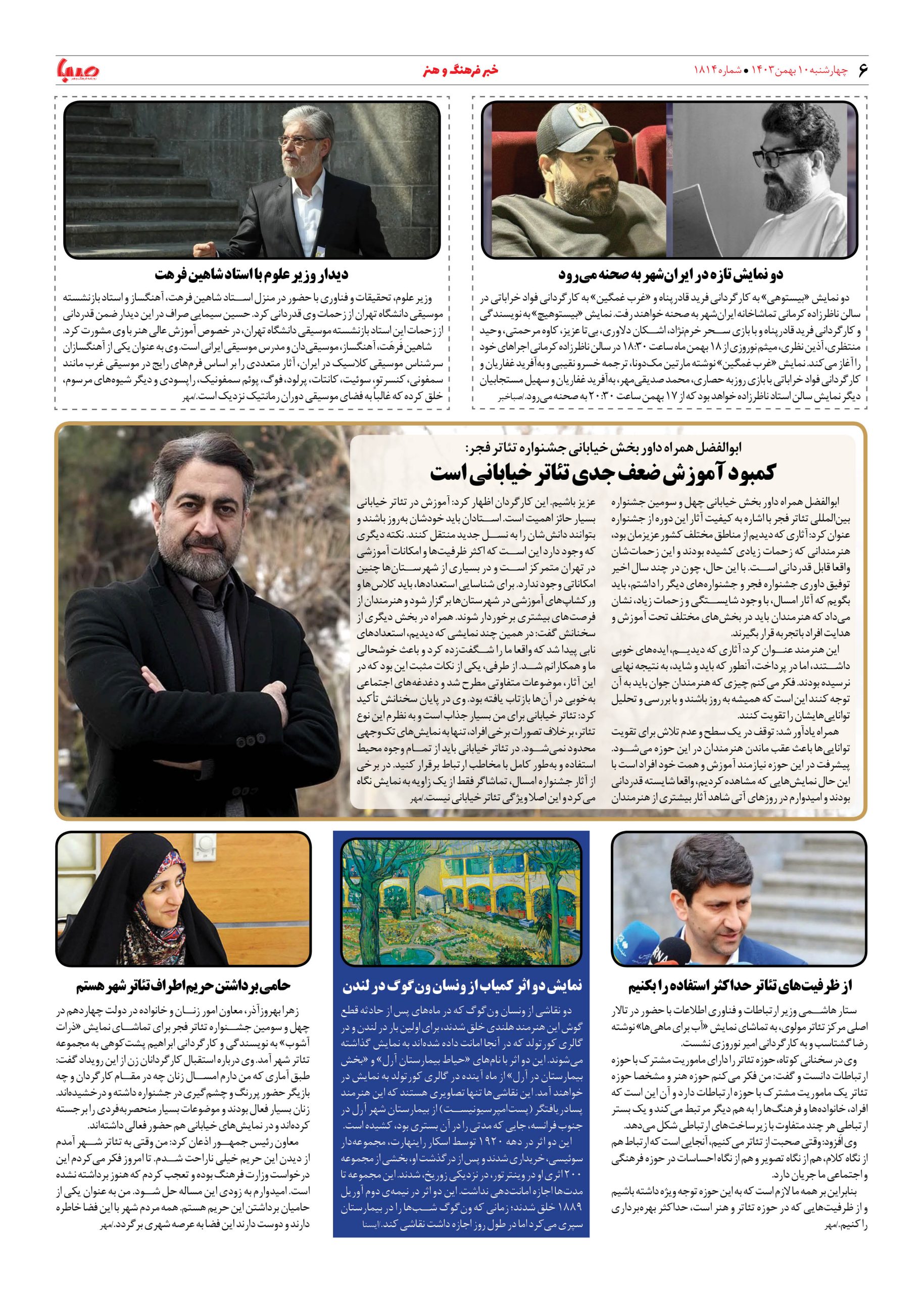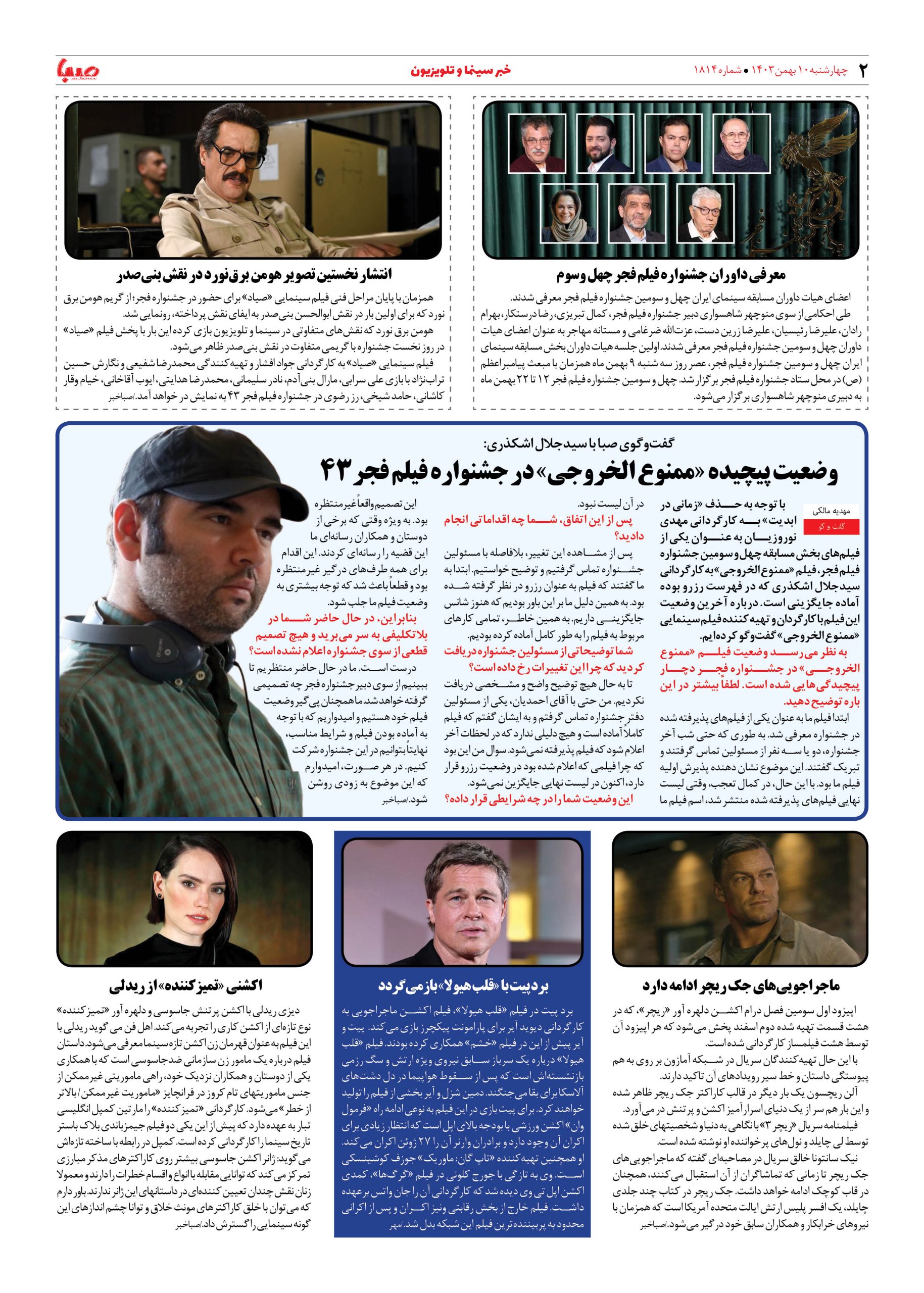 شماره ۱۸۱۴| روزنامه صبا چهارشنبه ۱۰ بهمن ۱۴۰۳