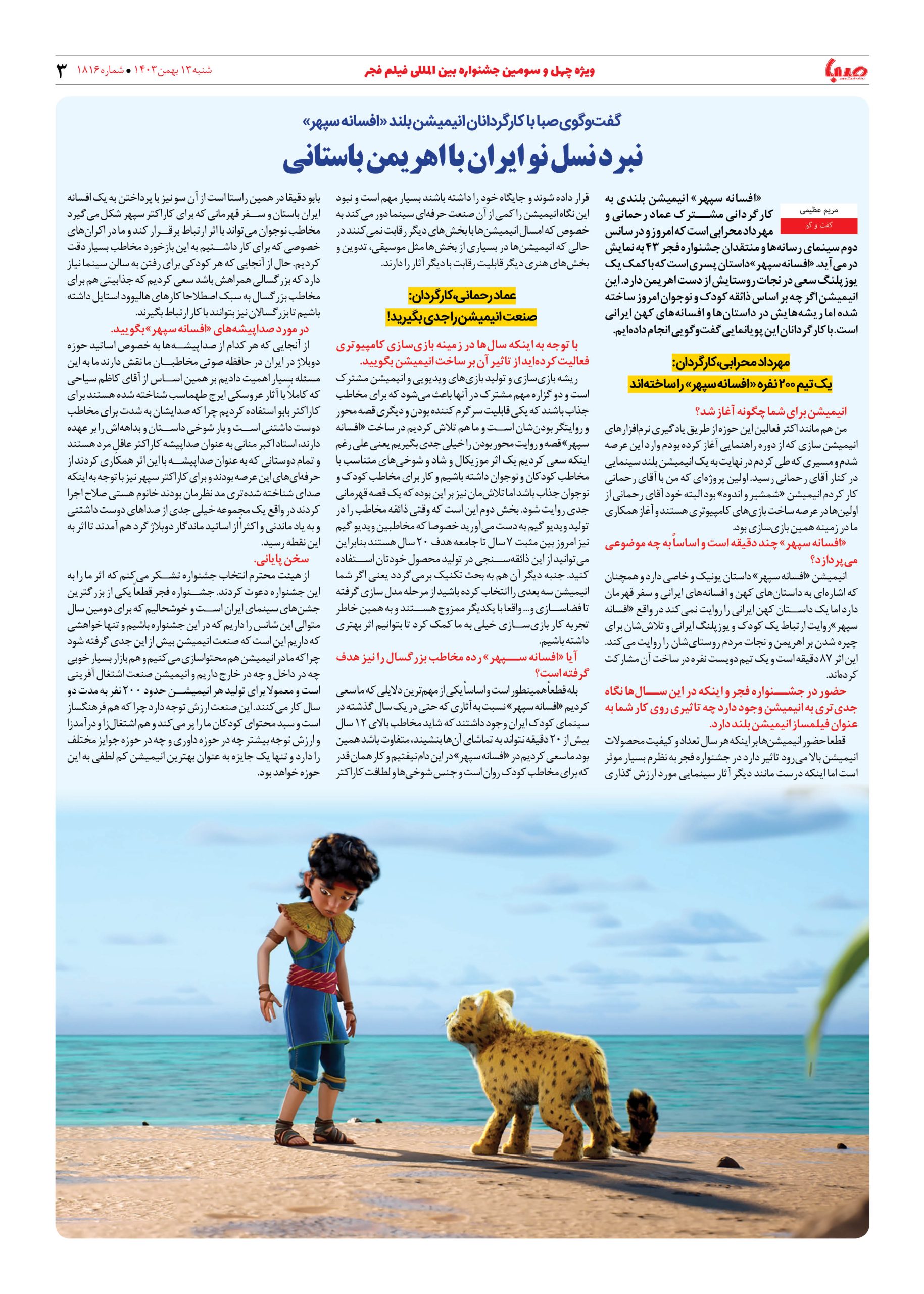 شماره ۱۸۱۶| روزنامه صبا شنبه ۱۳ بهمن ۱۴۰۳