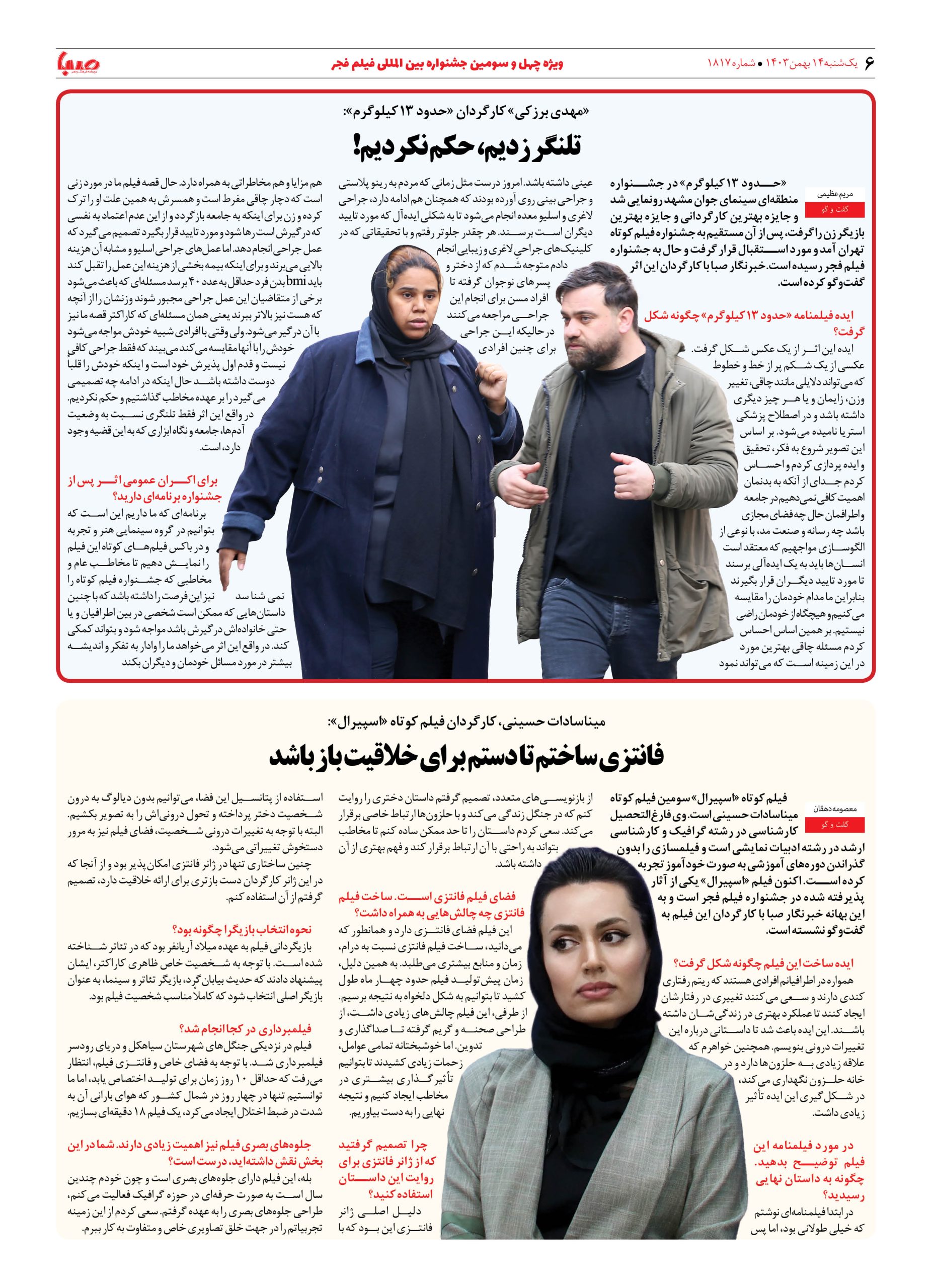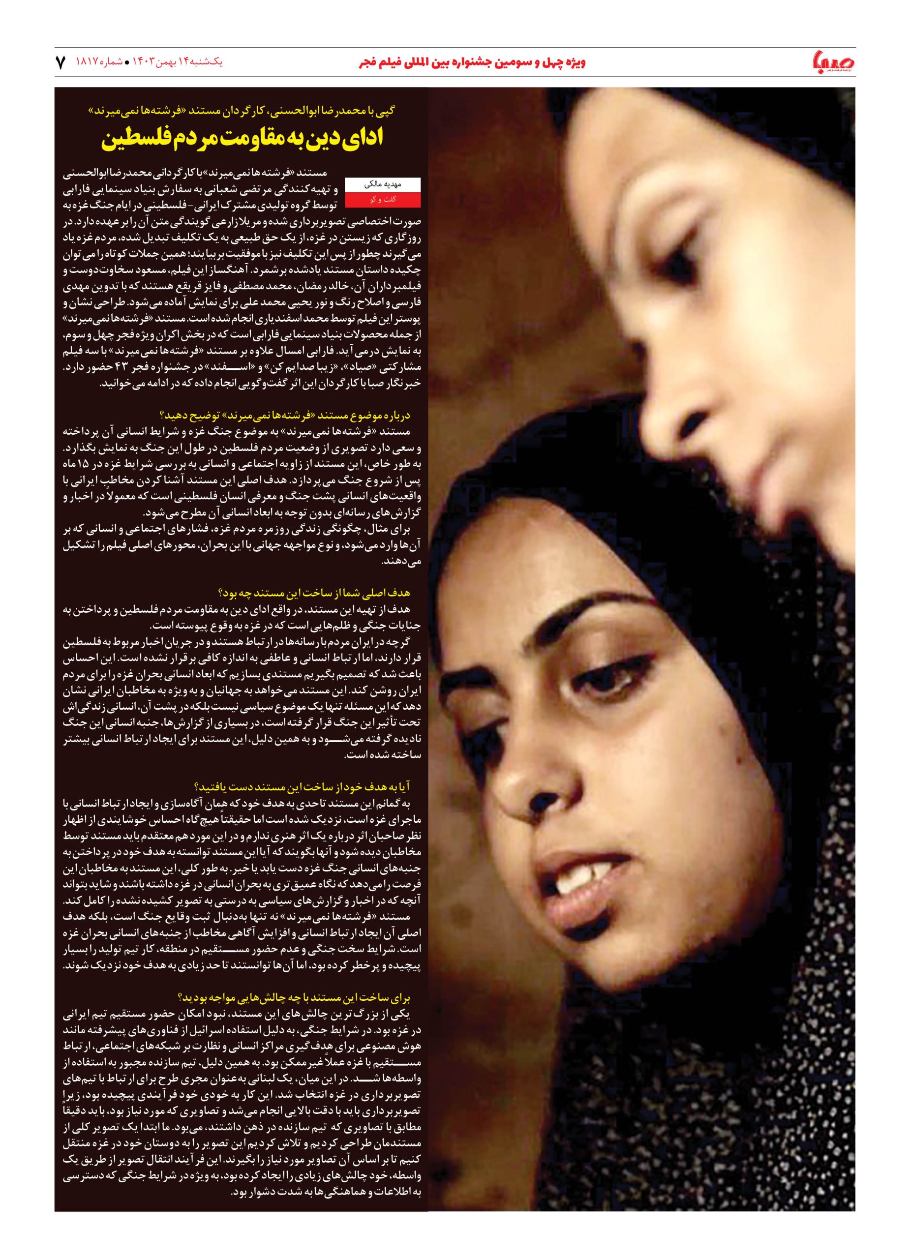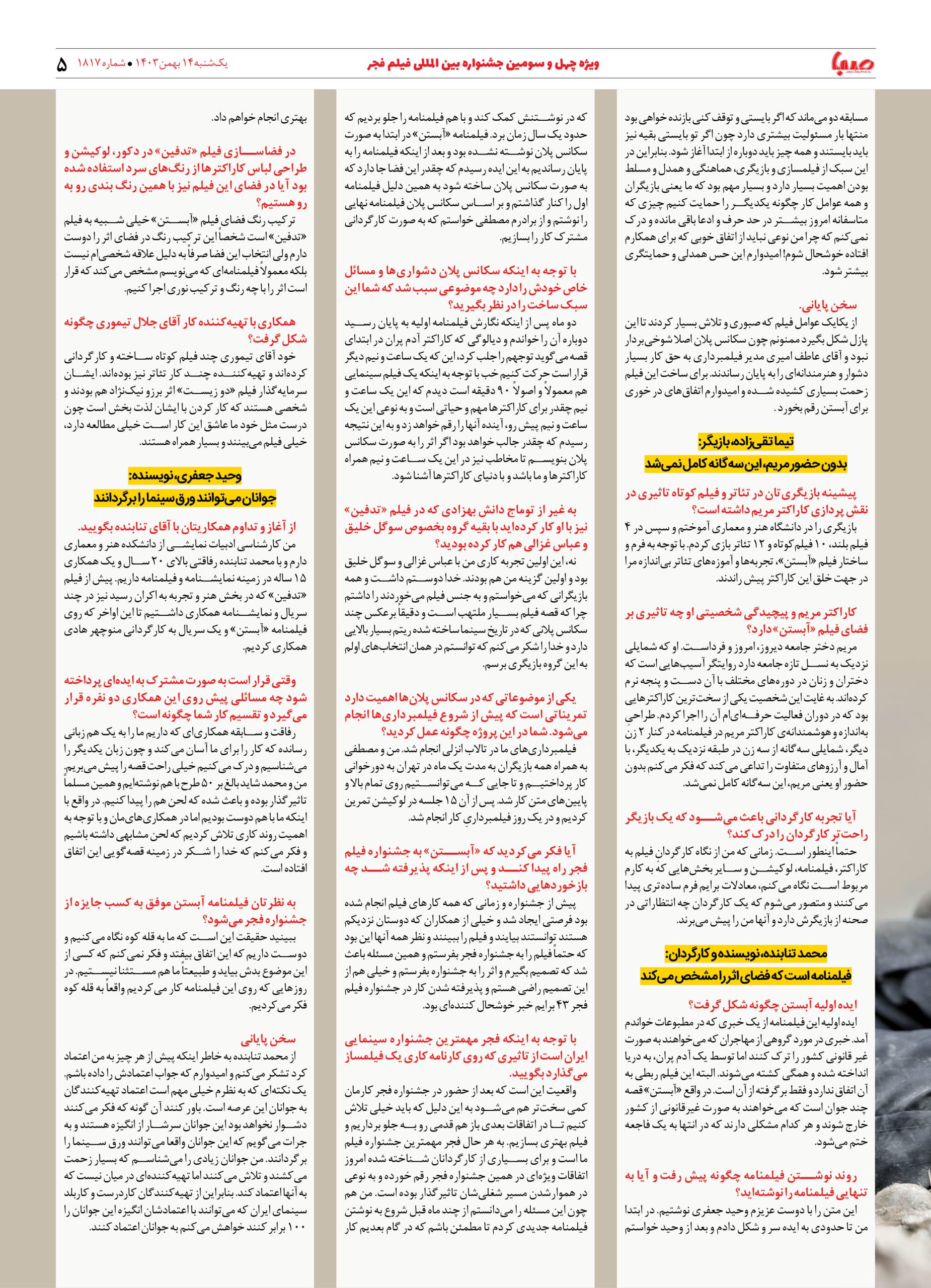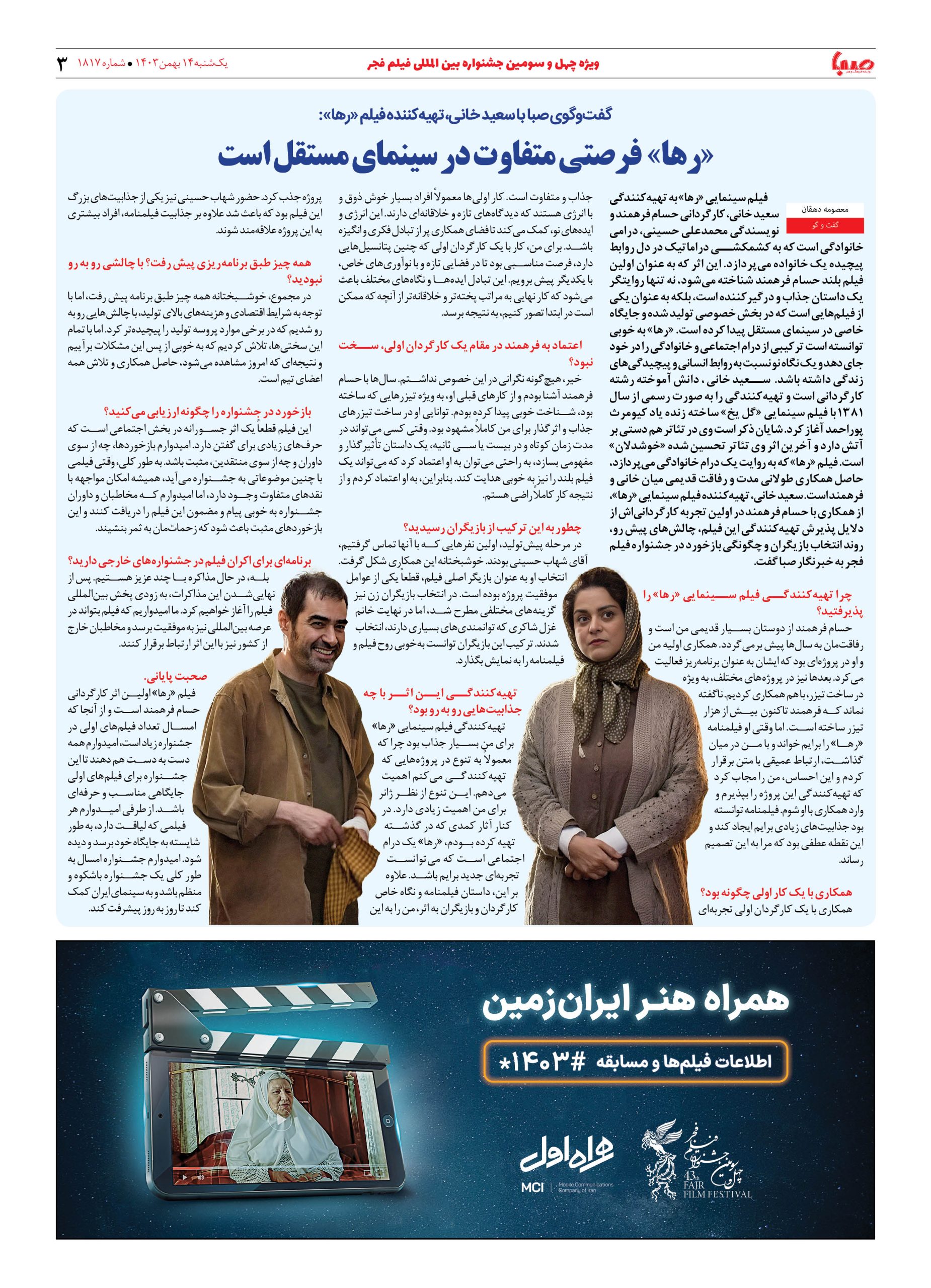 شماره ۱۸۱۷| روزنامه صبا یکشنبه ۱۴ بهمن ۱۴۰۳