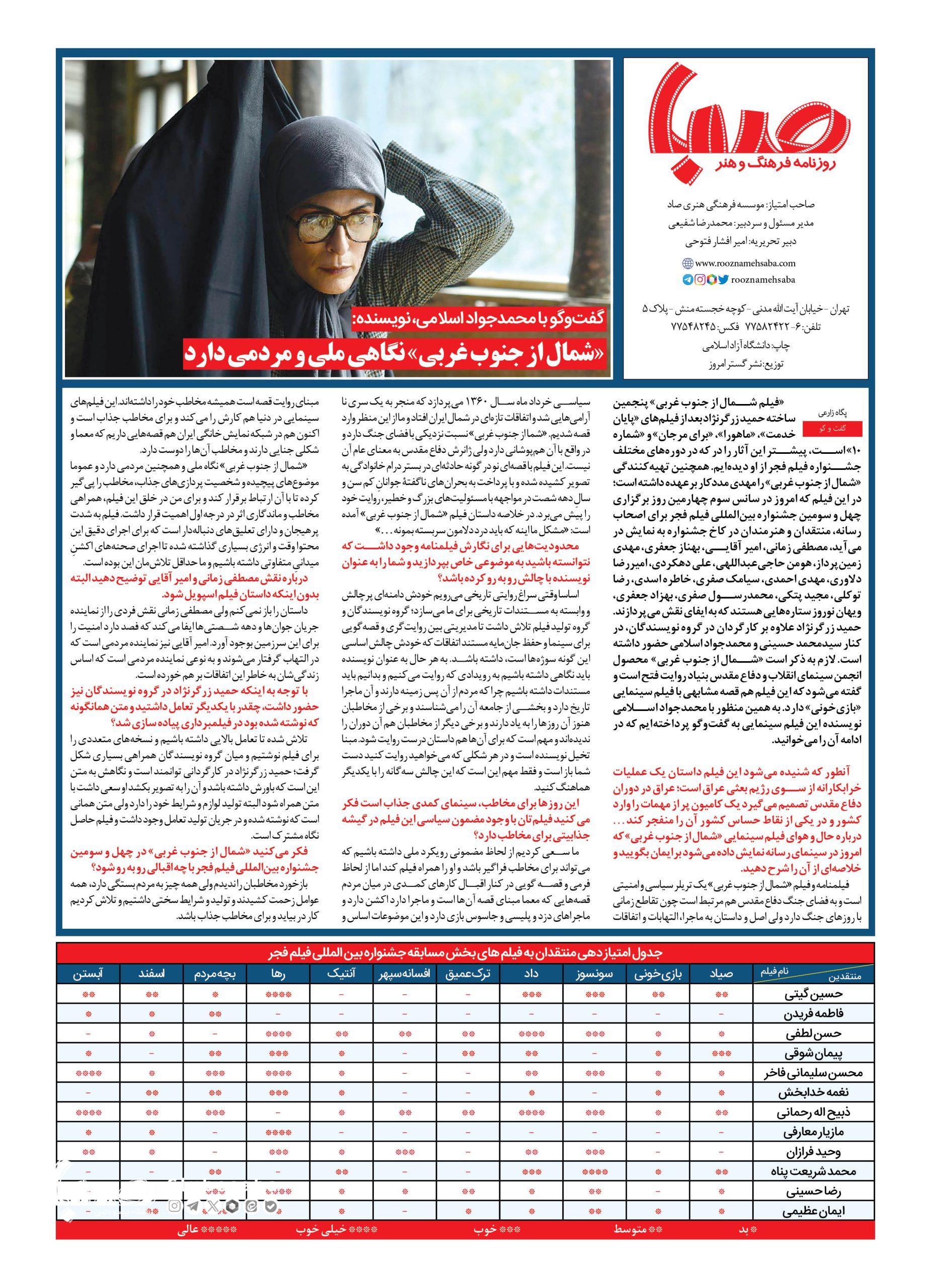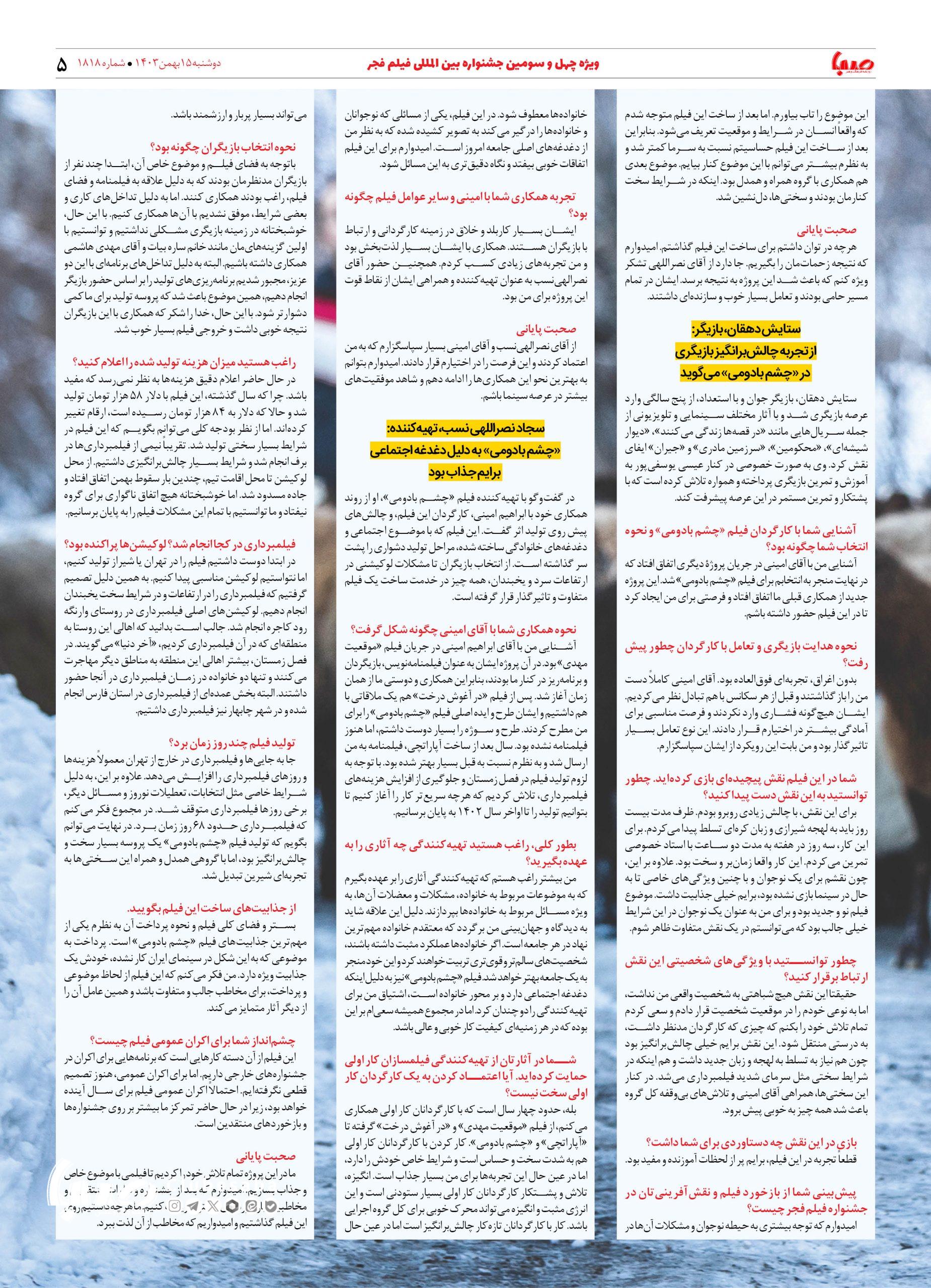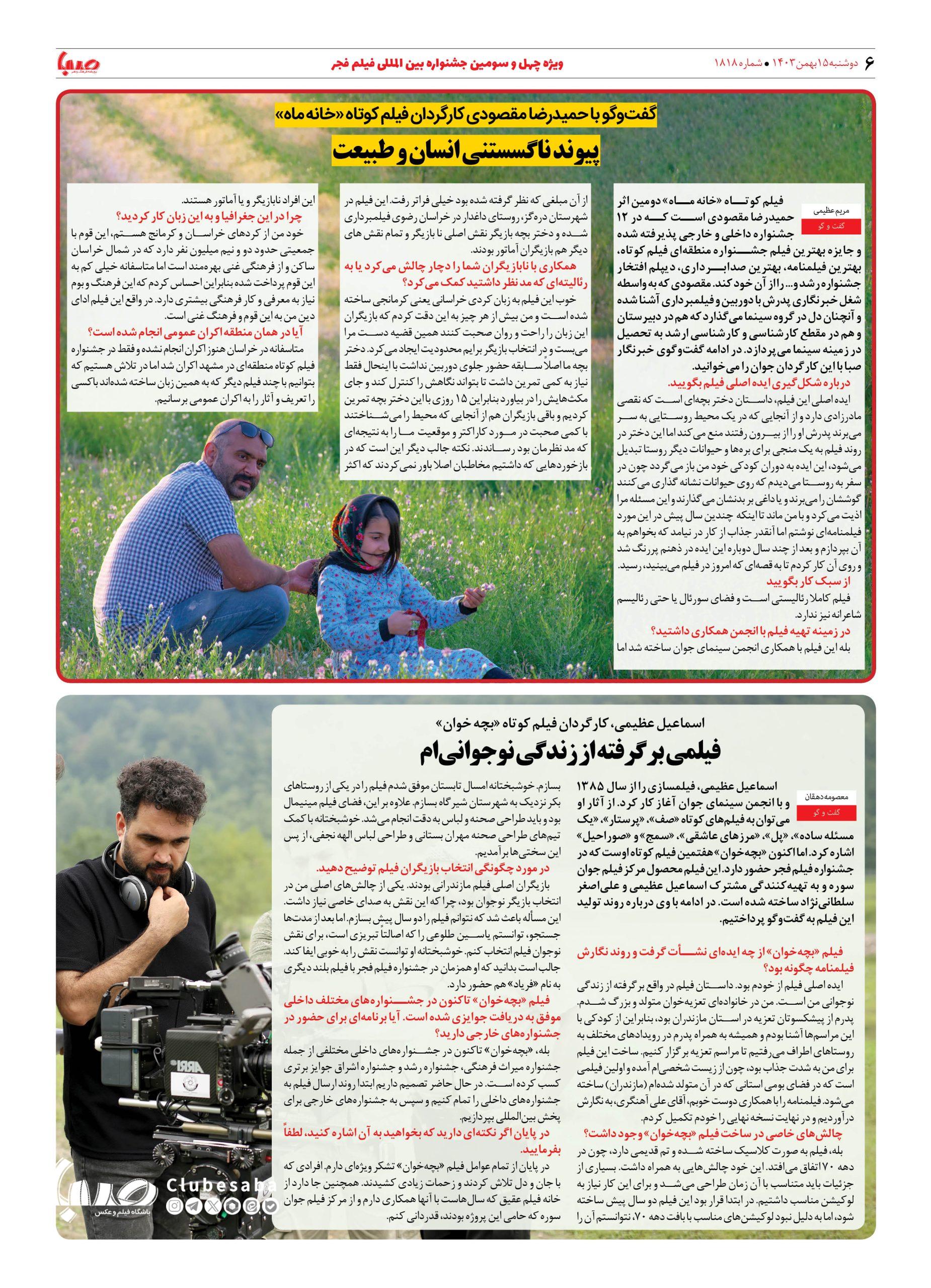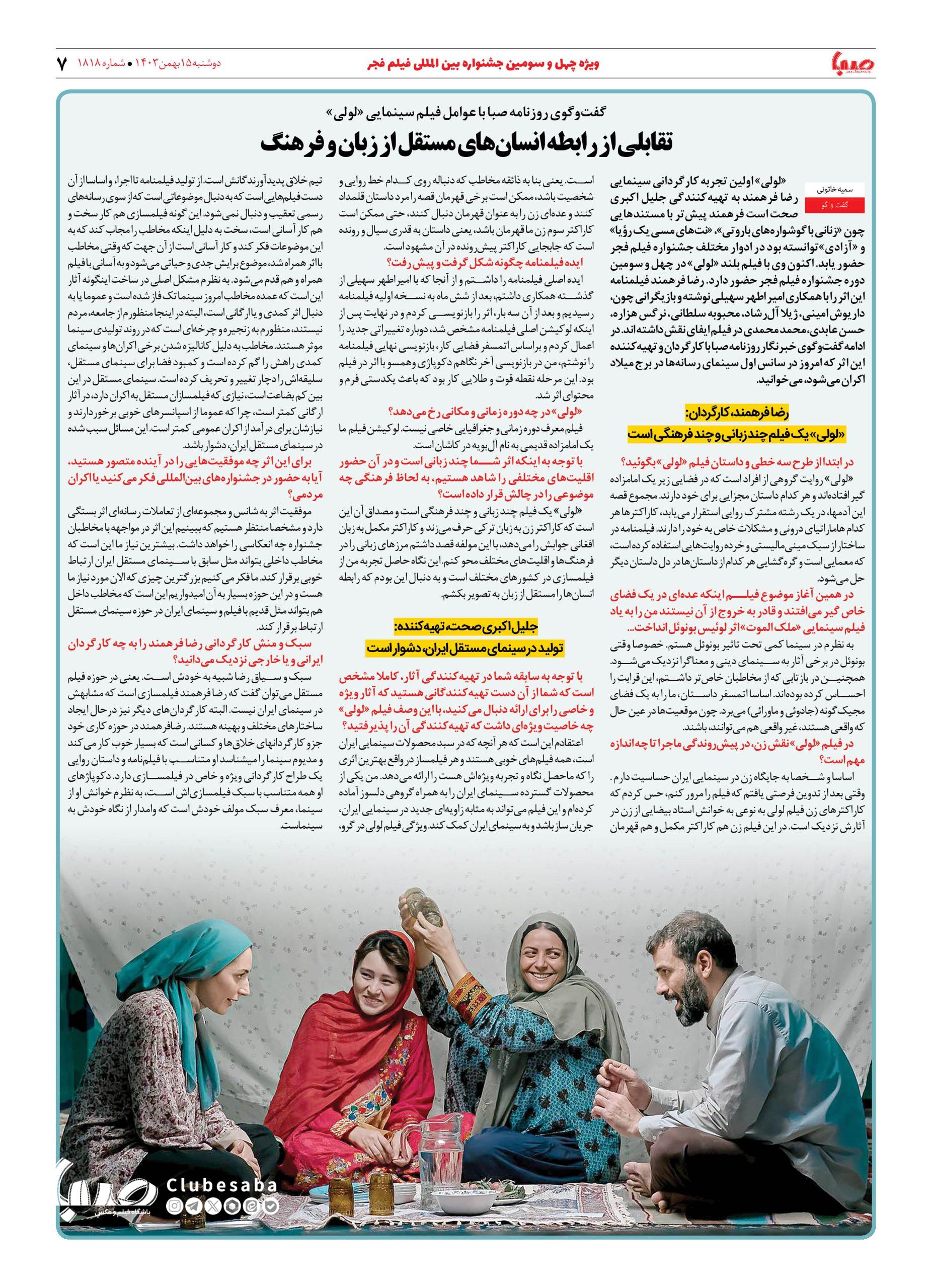 شماره ۱۸۱۸| روزنامه صبا دوشنبه ۱۵ بهمن ۱۴۰۳