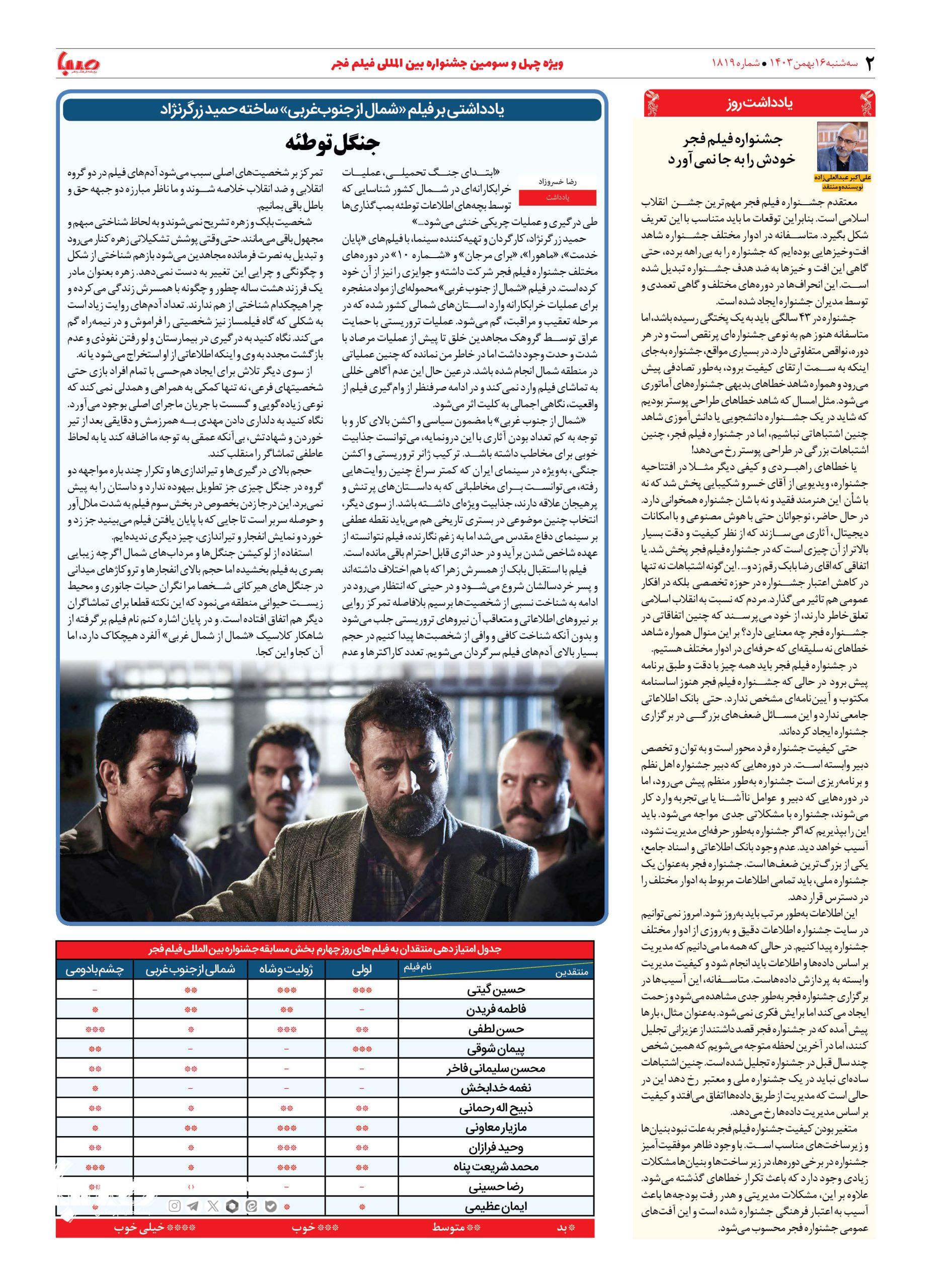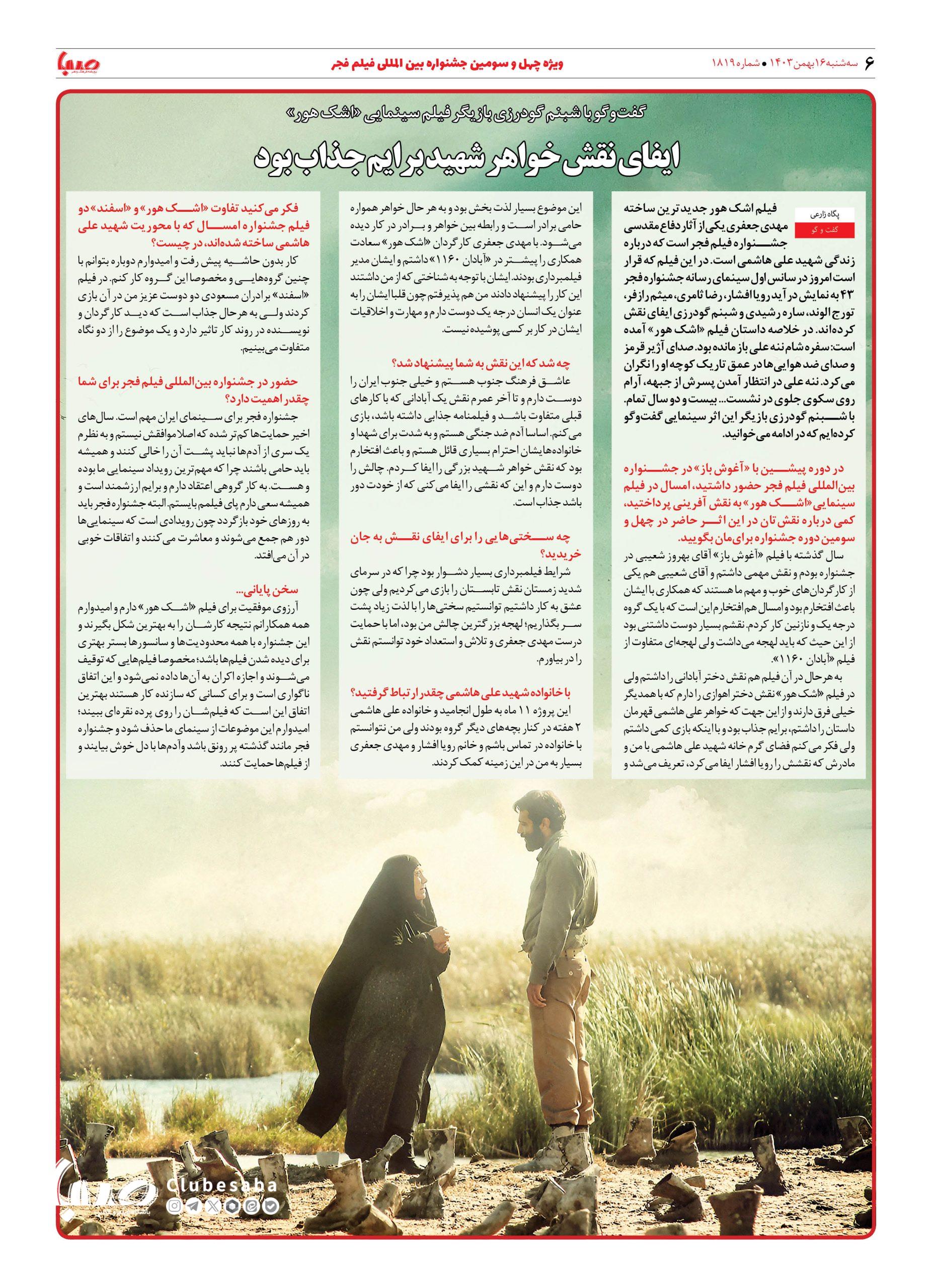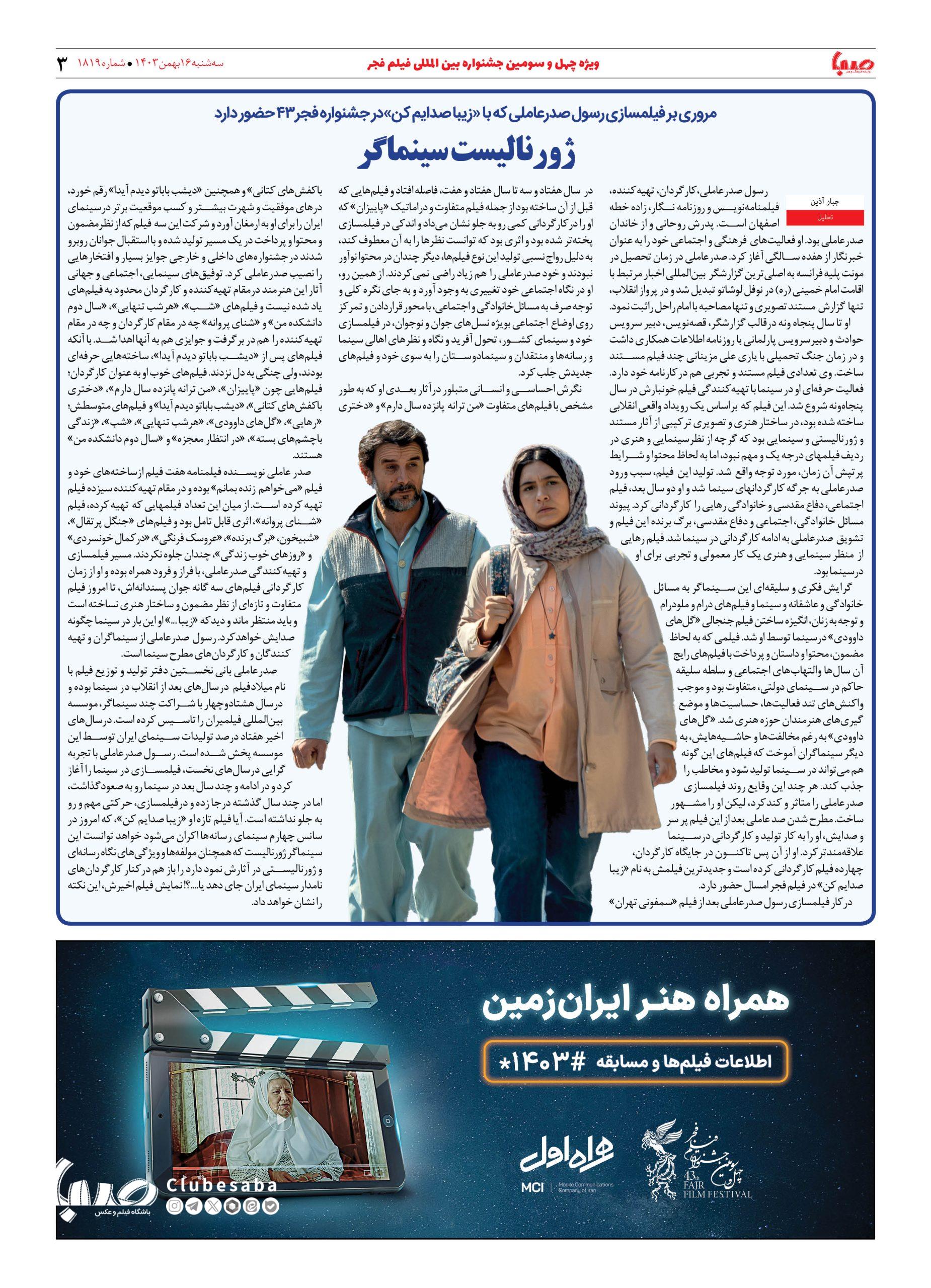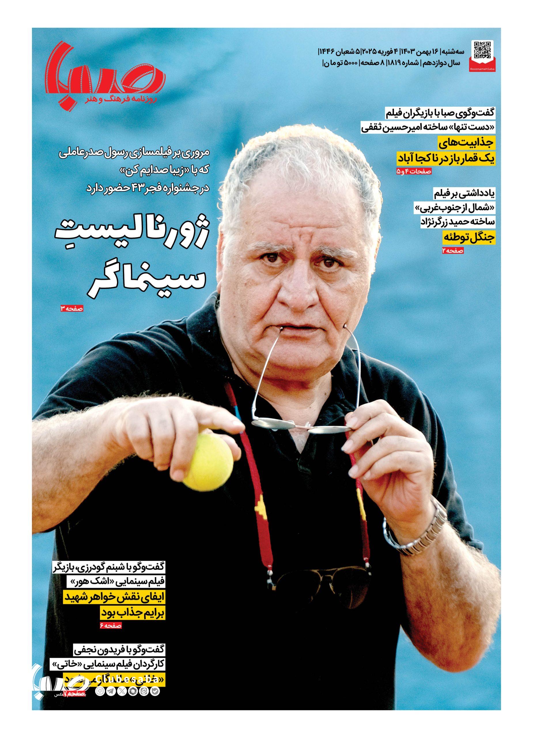شماره ۱۸۱۹| روزنامه صبا سه شنبه ۱۶ بهمن ۱۴۰۳