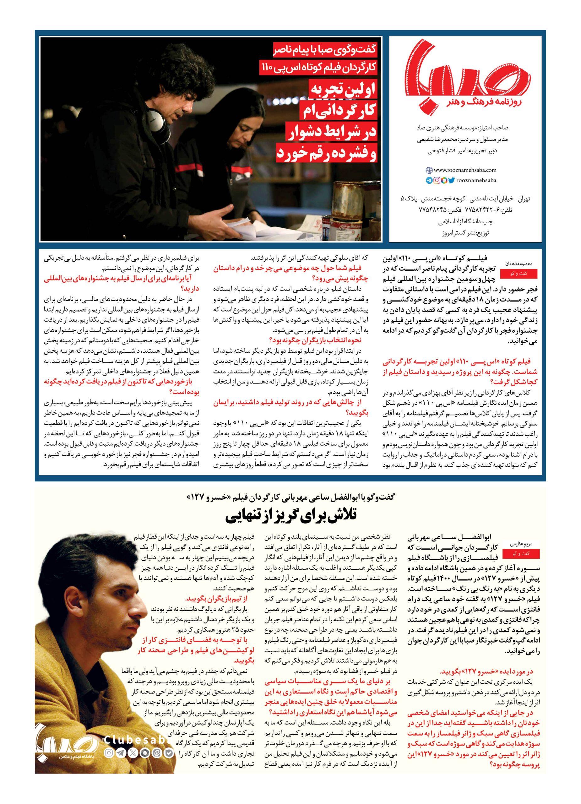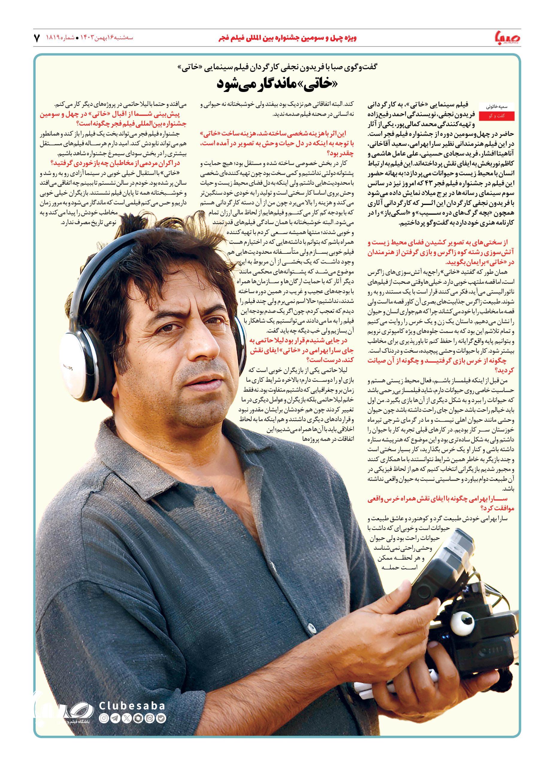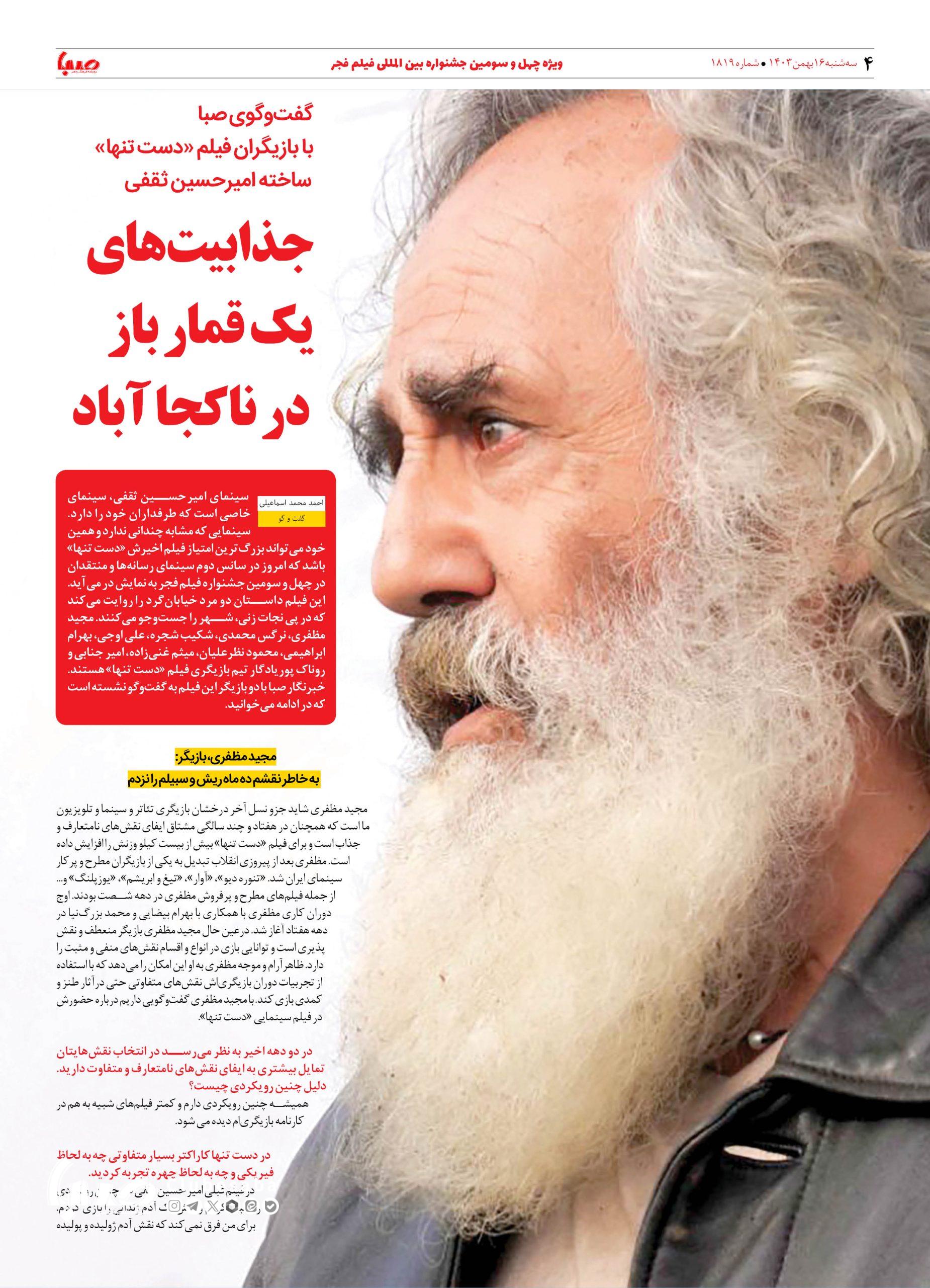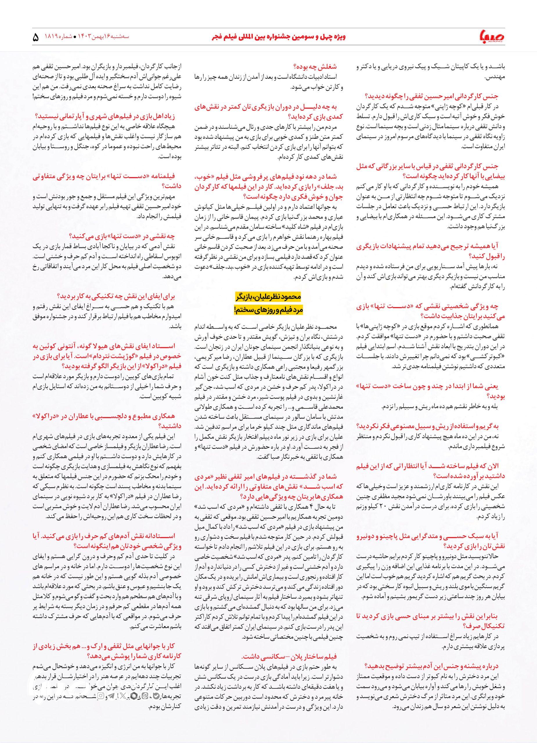 شماره ۱۸۱۹| روزنامه صبا سه شنبه ۱۶ بهمن ۱۴۰۳
