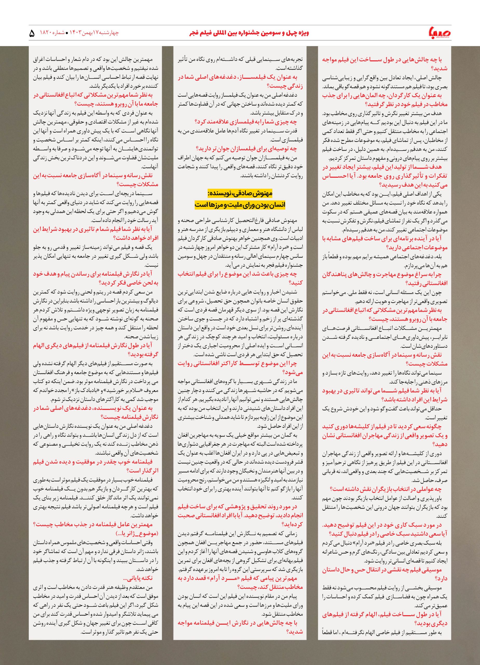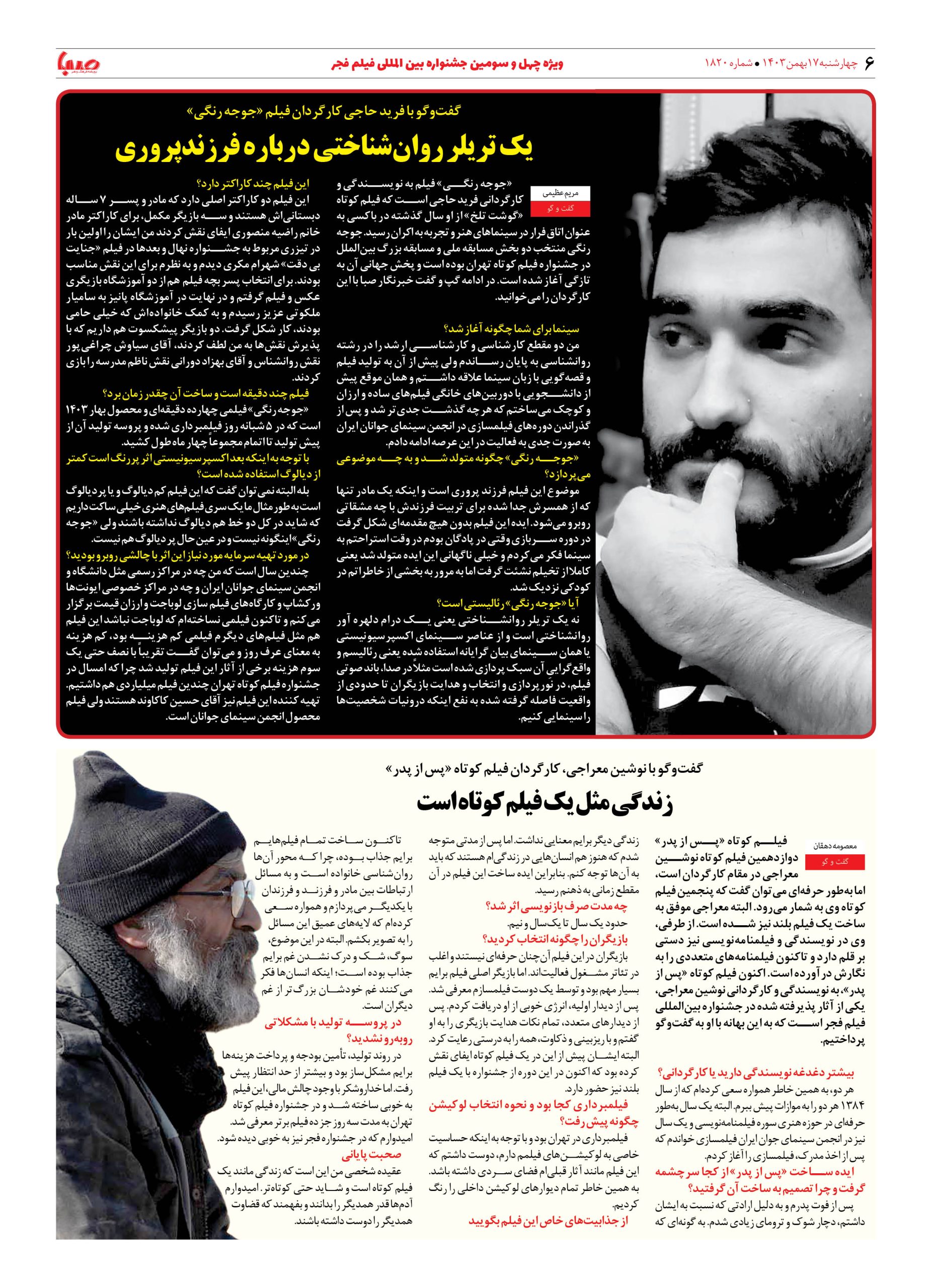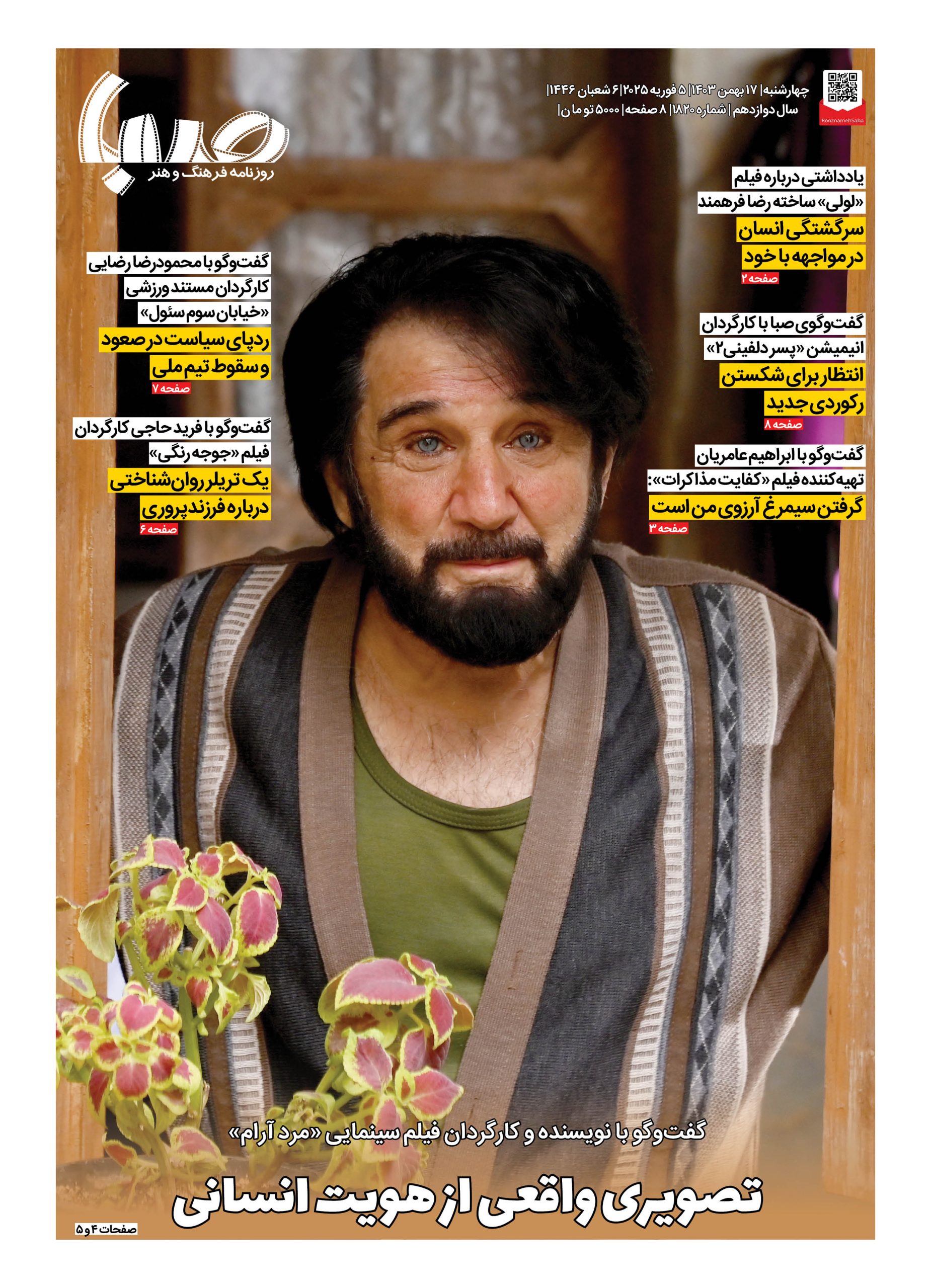 شماره ۱۸۲۰| روزنامه صبا چهارشنبه ۱۷ بهمن ۱۴۰۳