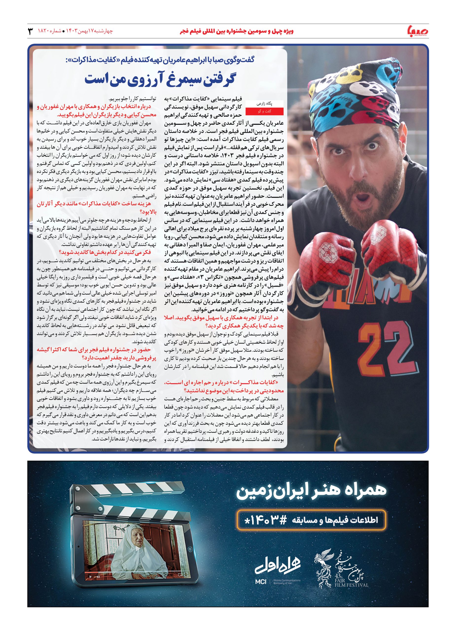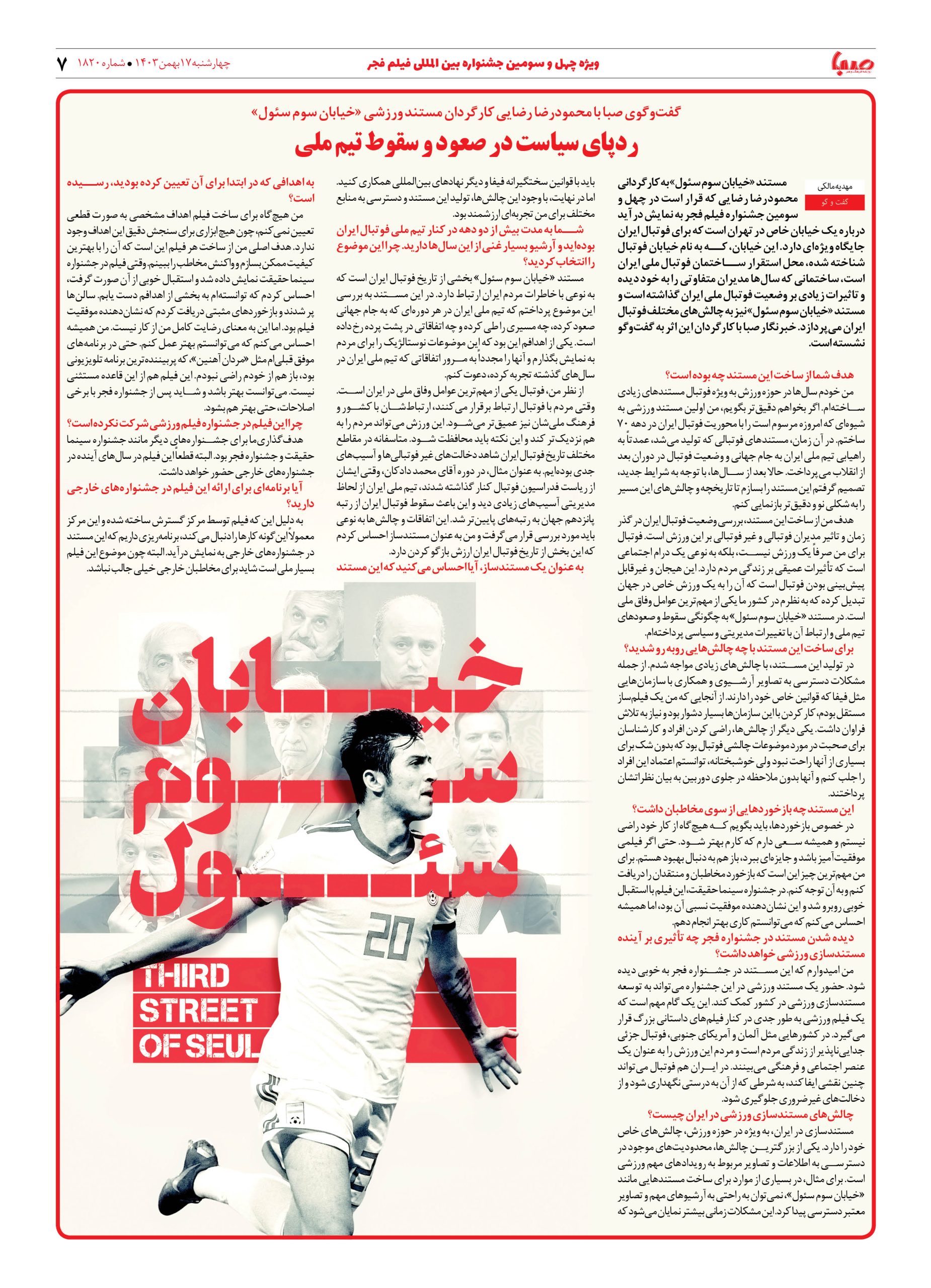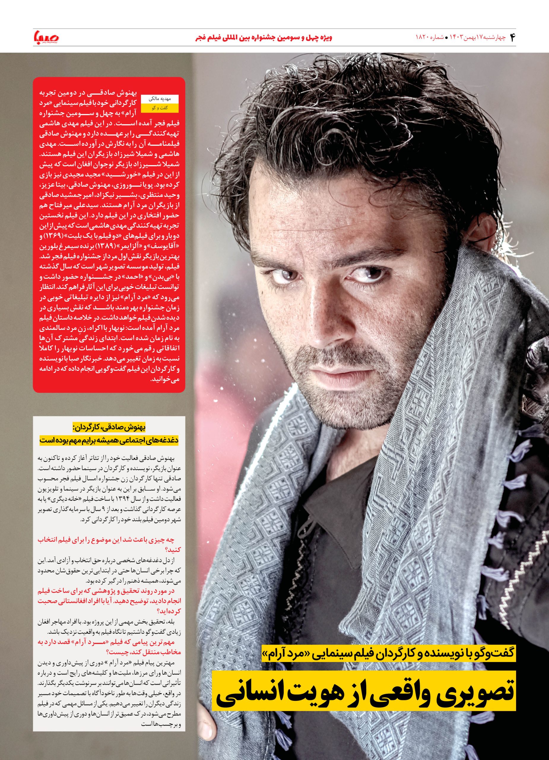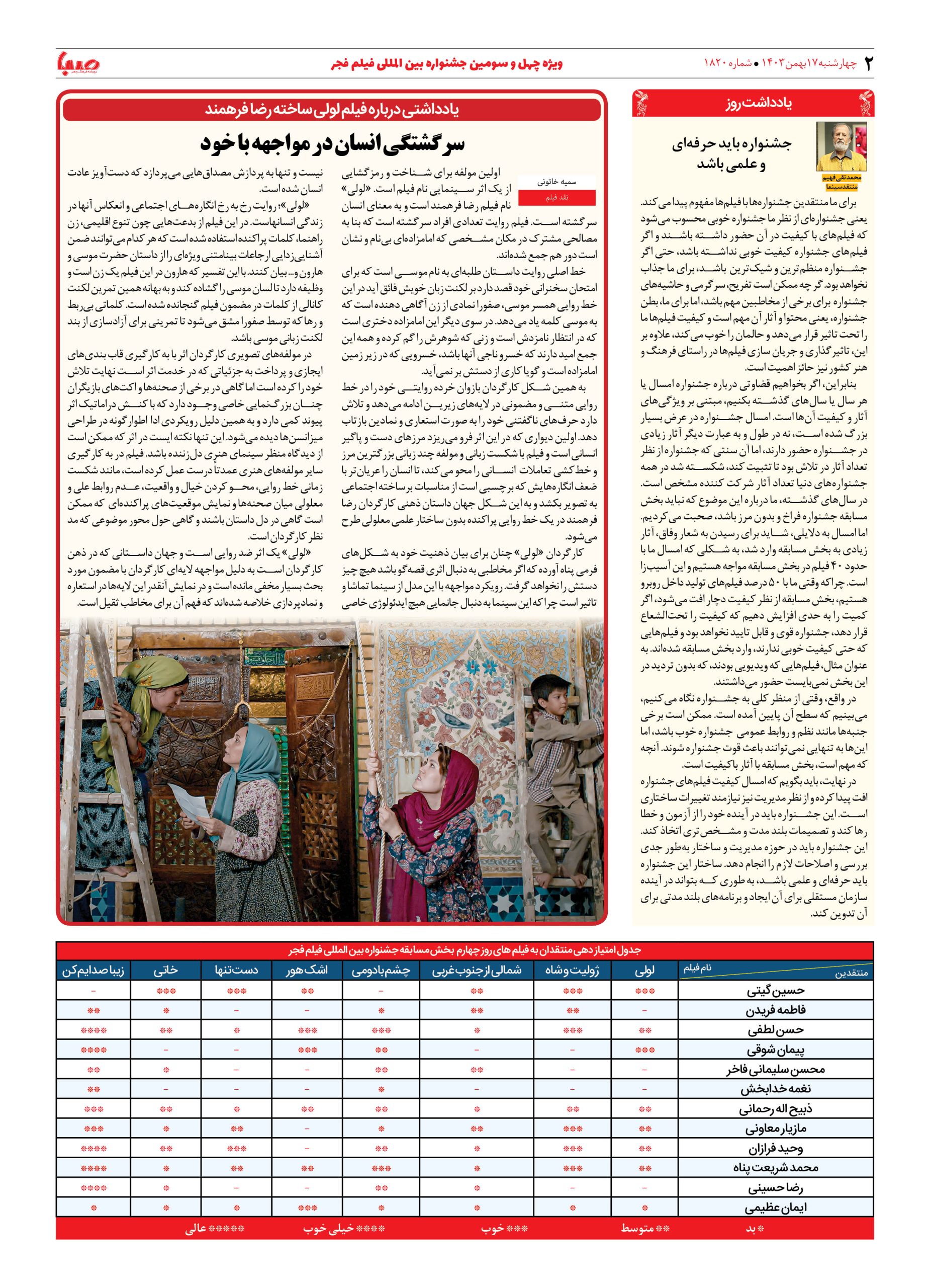 شماره ۱۸۲۰| روزنامه صبا چهارشنبه ۱۷ بهمن ۱۴۰۳