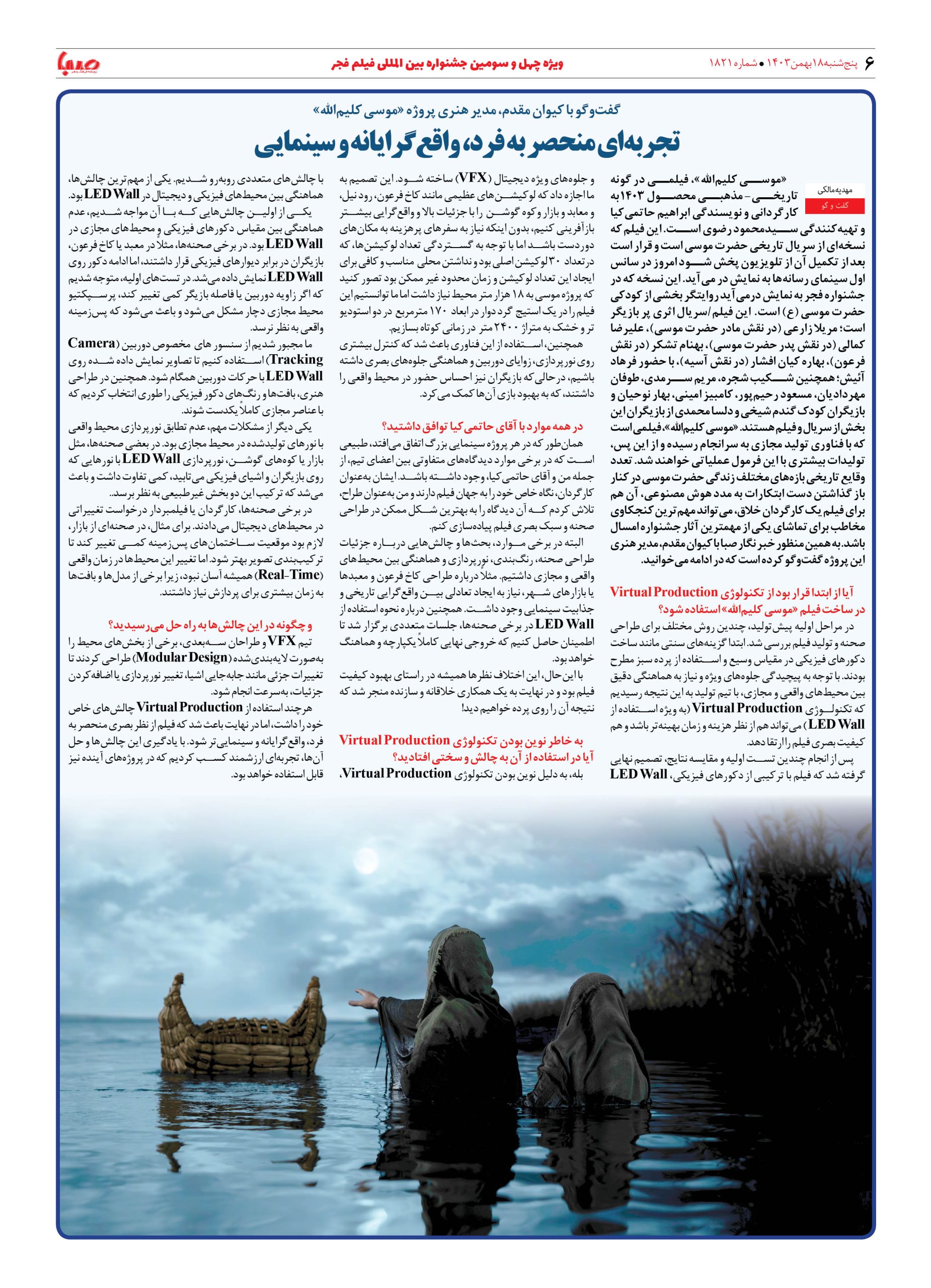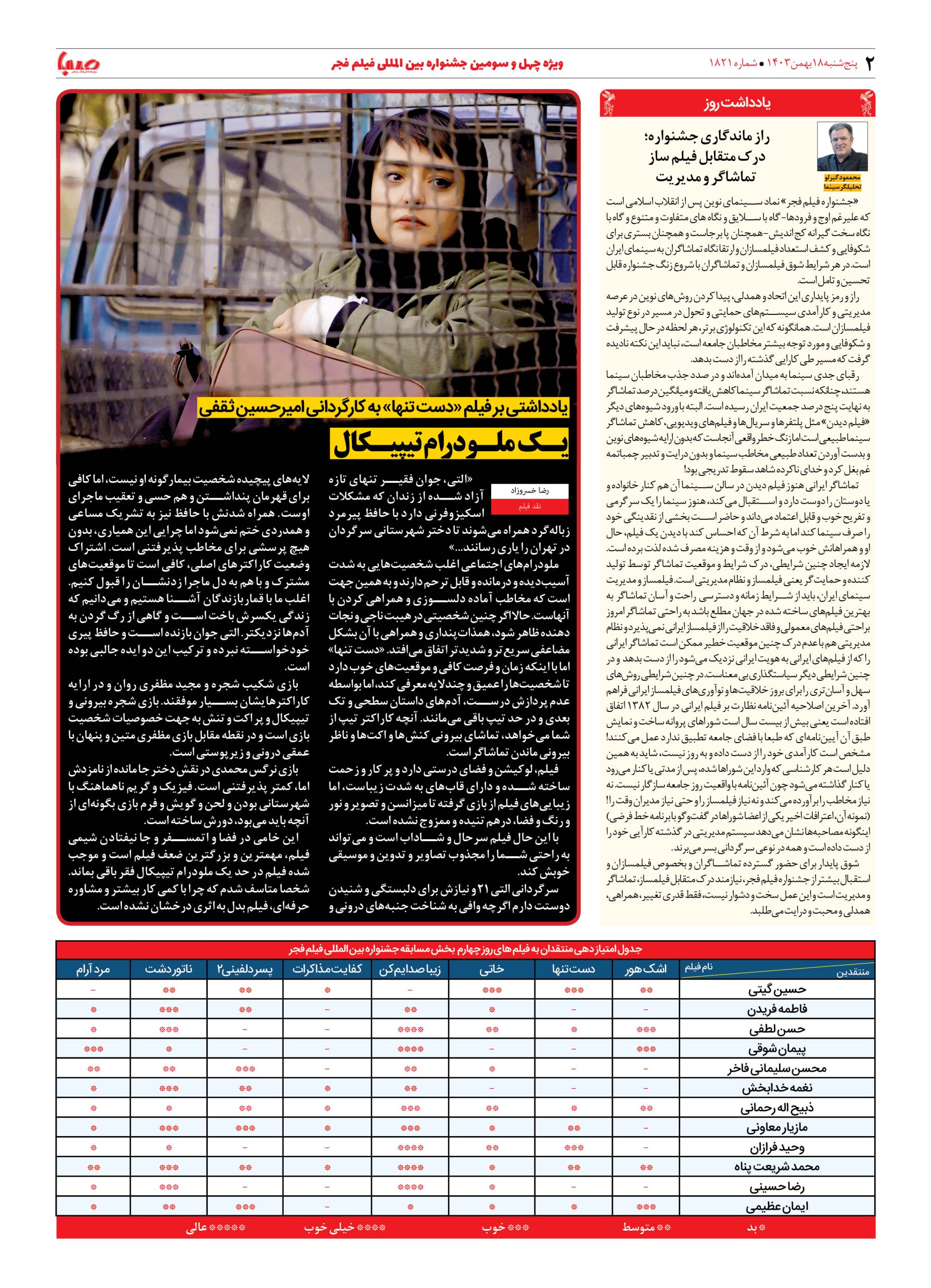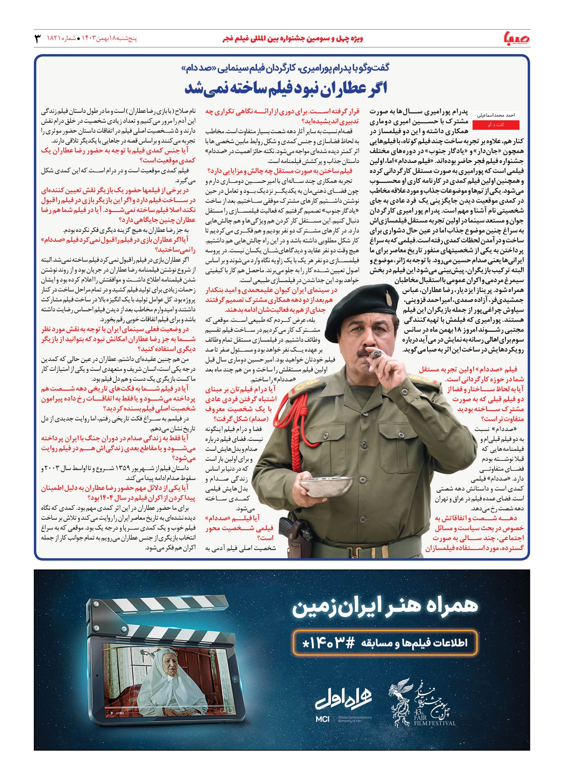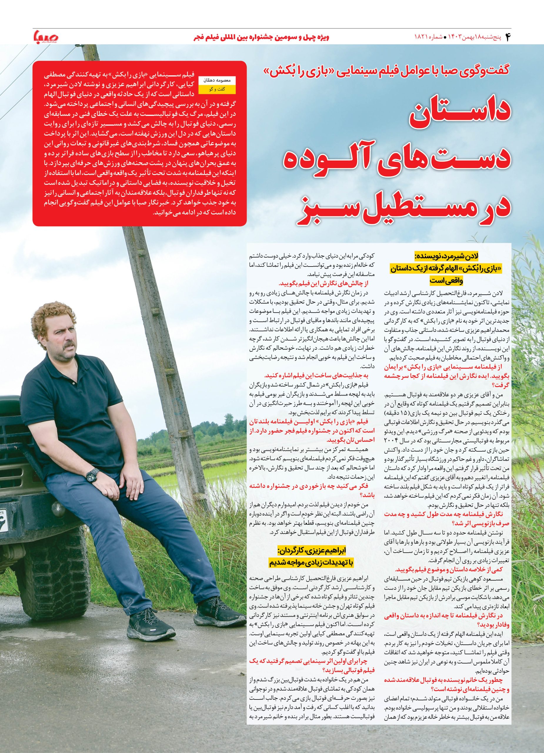 شماره ۱۸۲۱| روزنامه صبا پنجشنبه ۱۸ بهمن ۱۴۰۳