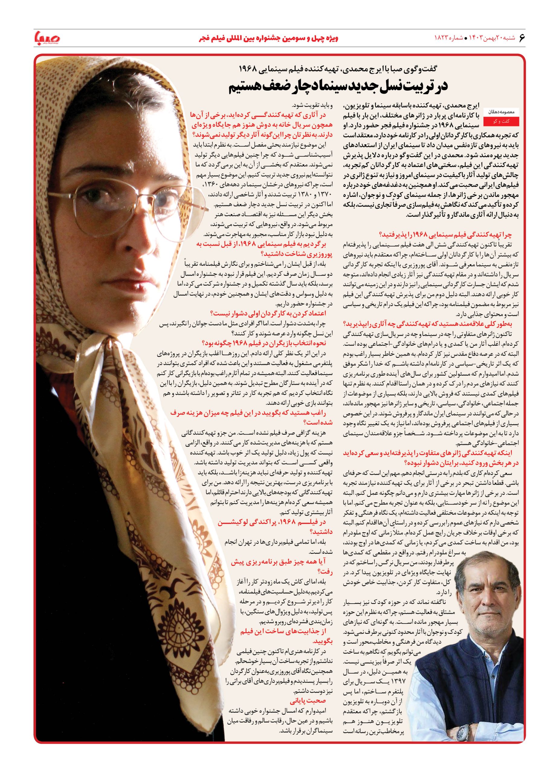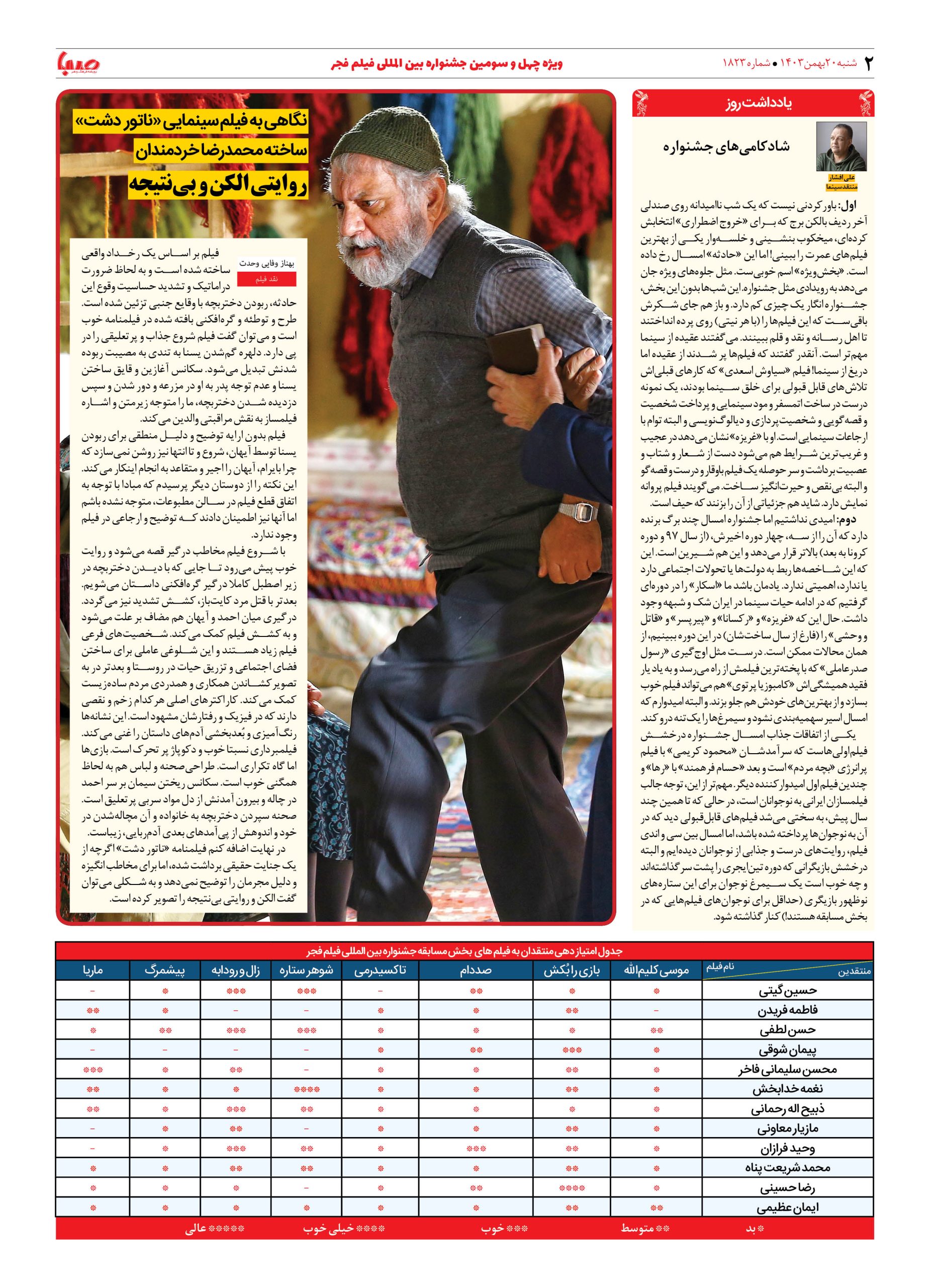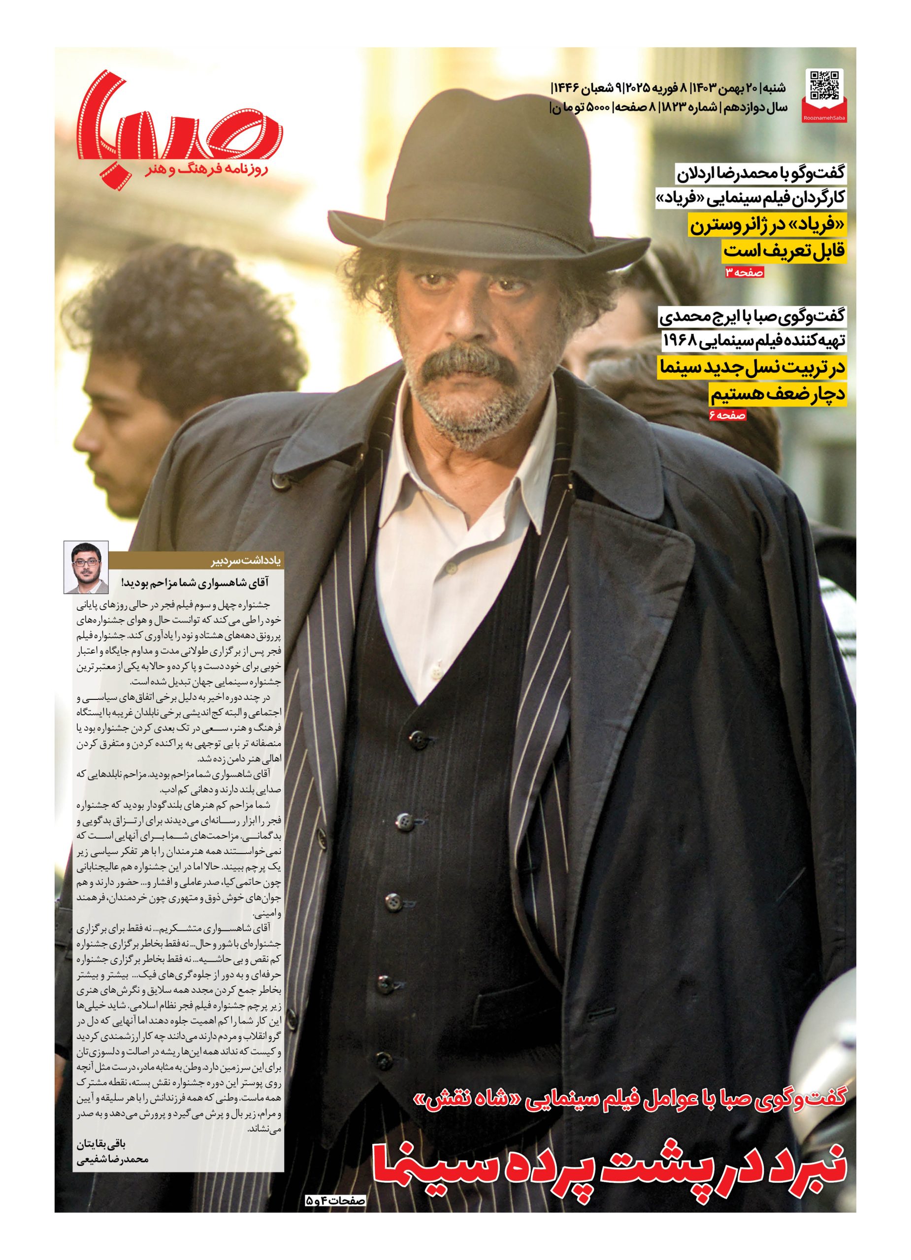 شماره ۱۸۲۳| روزنامه صبا شنبه ۲۰ بهمن ۱۴۰۳