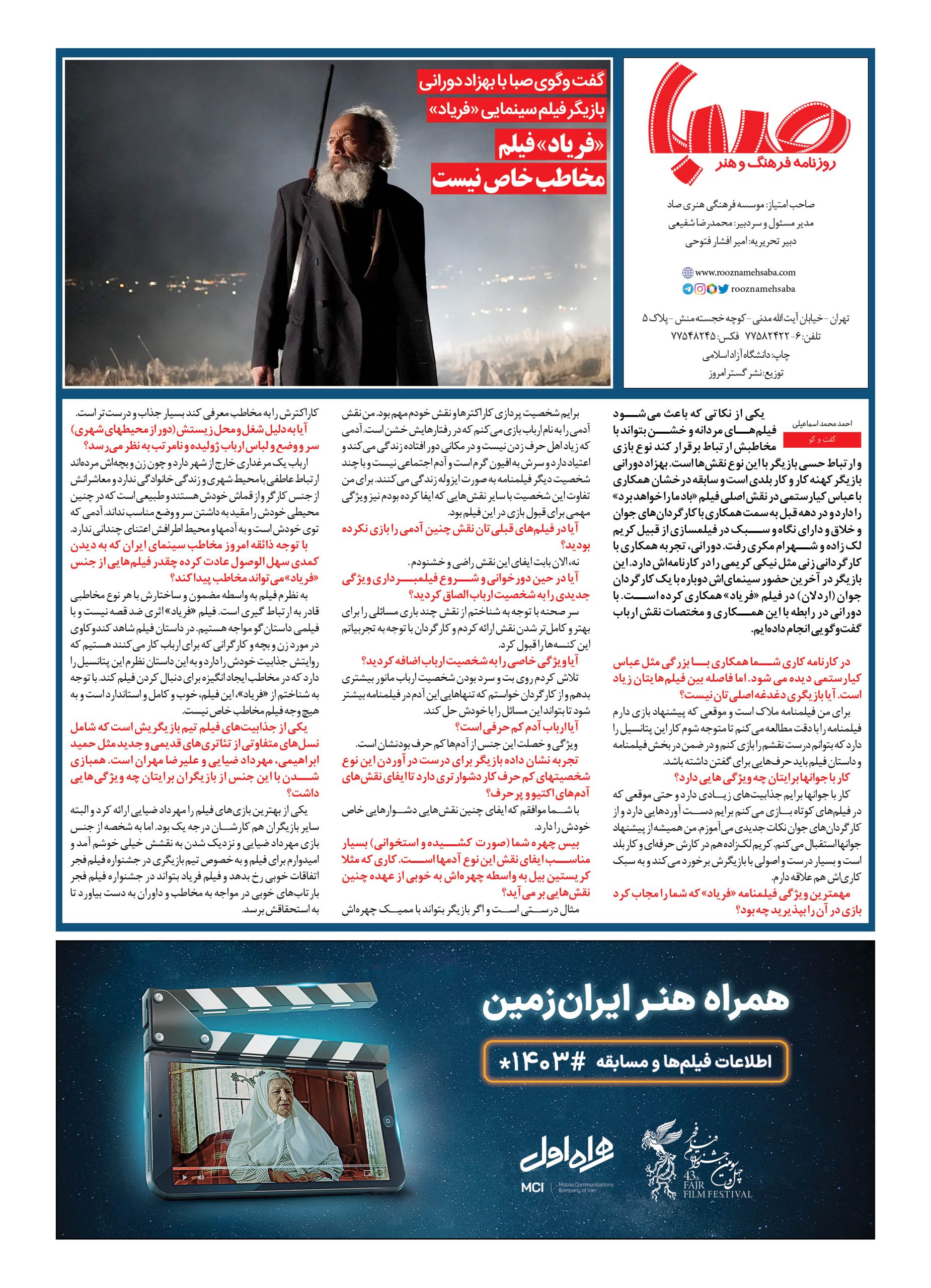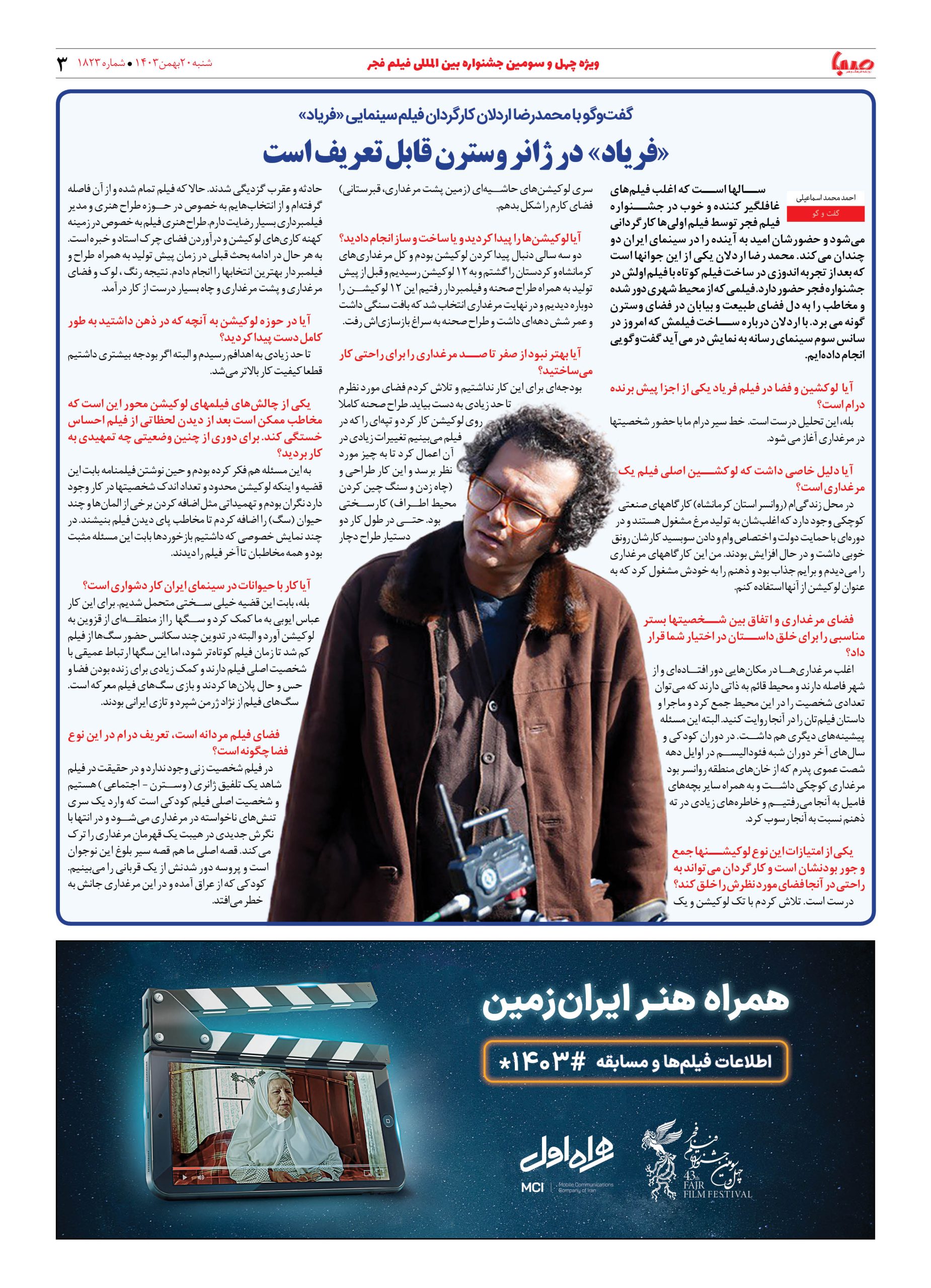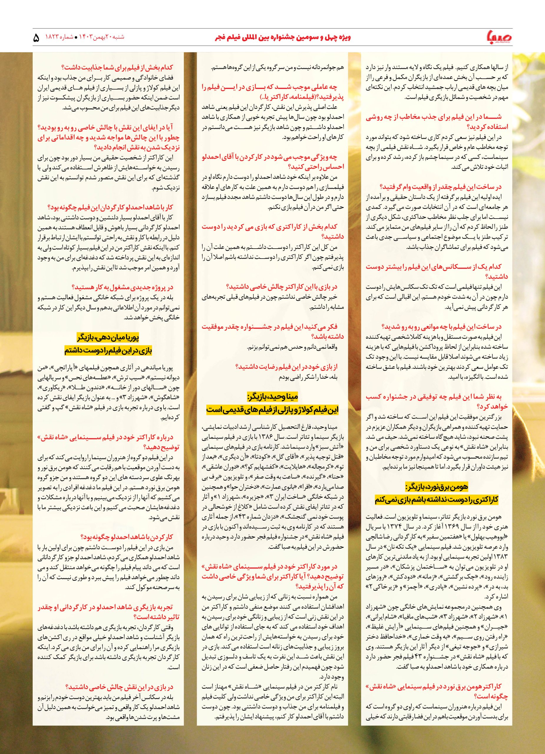 شماره ۱۸۲۳| روزنامه صبا شنبه ۲۰ بهمن ۱۴۰۳