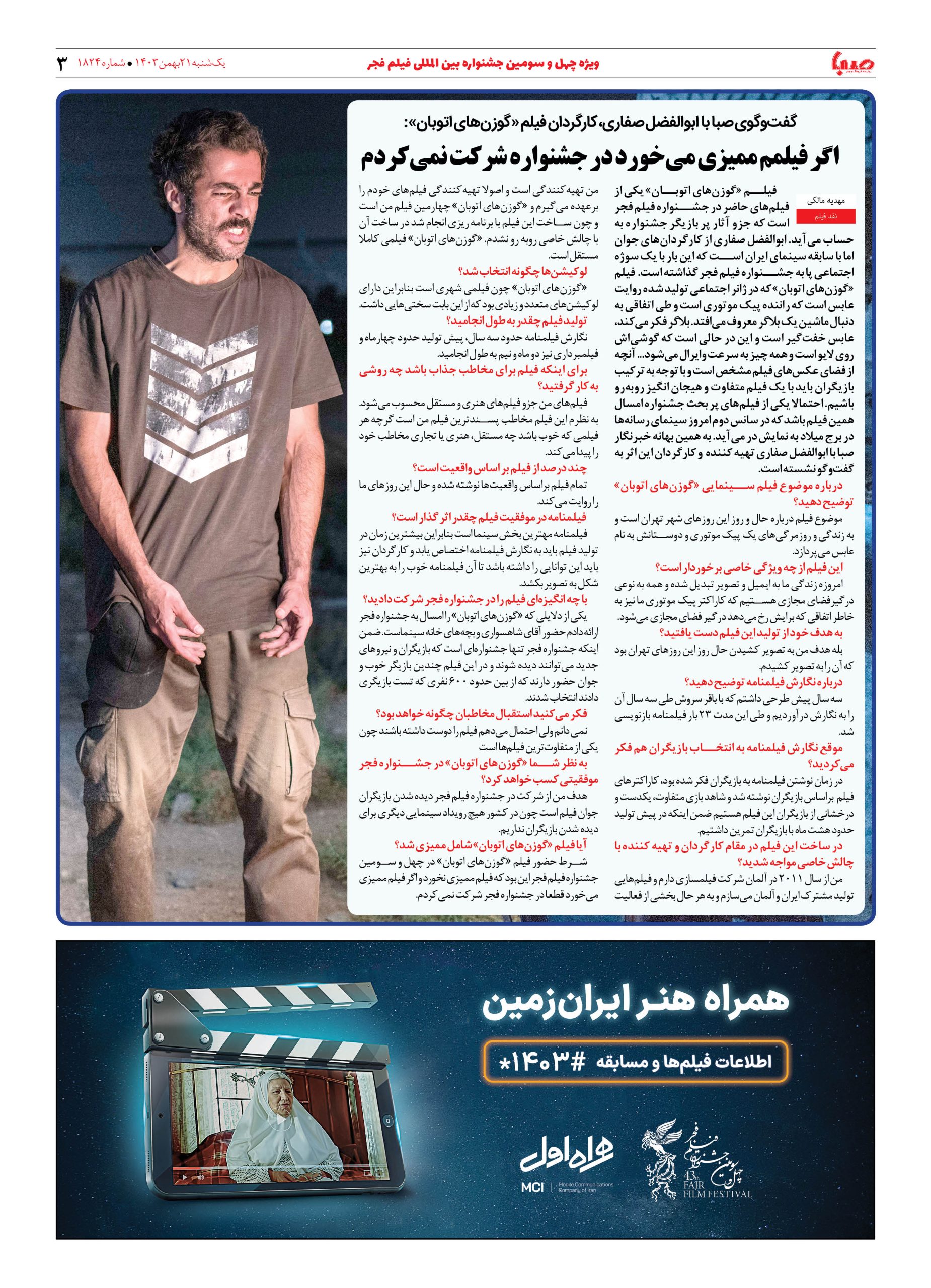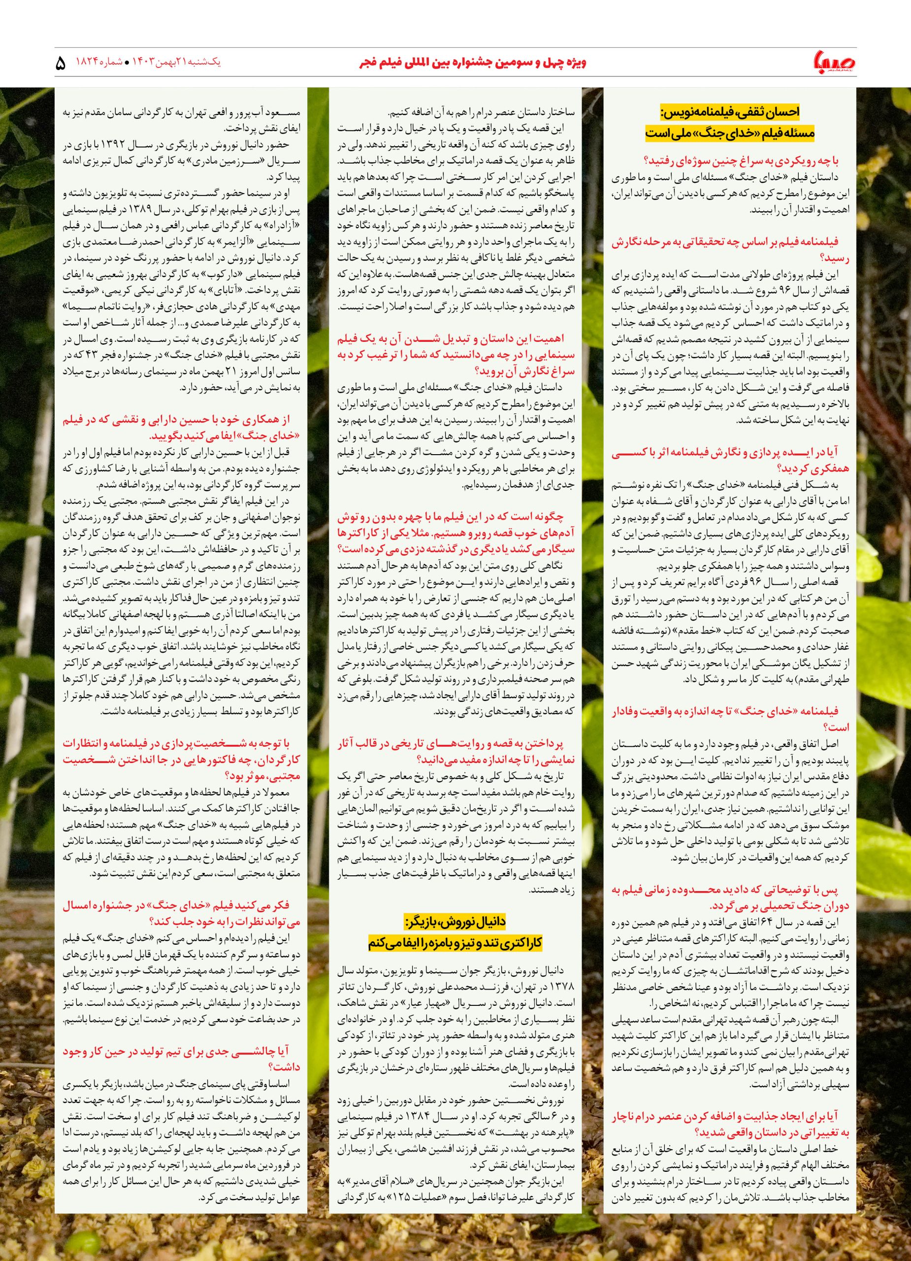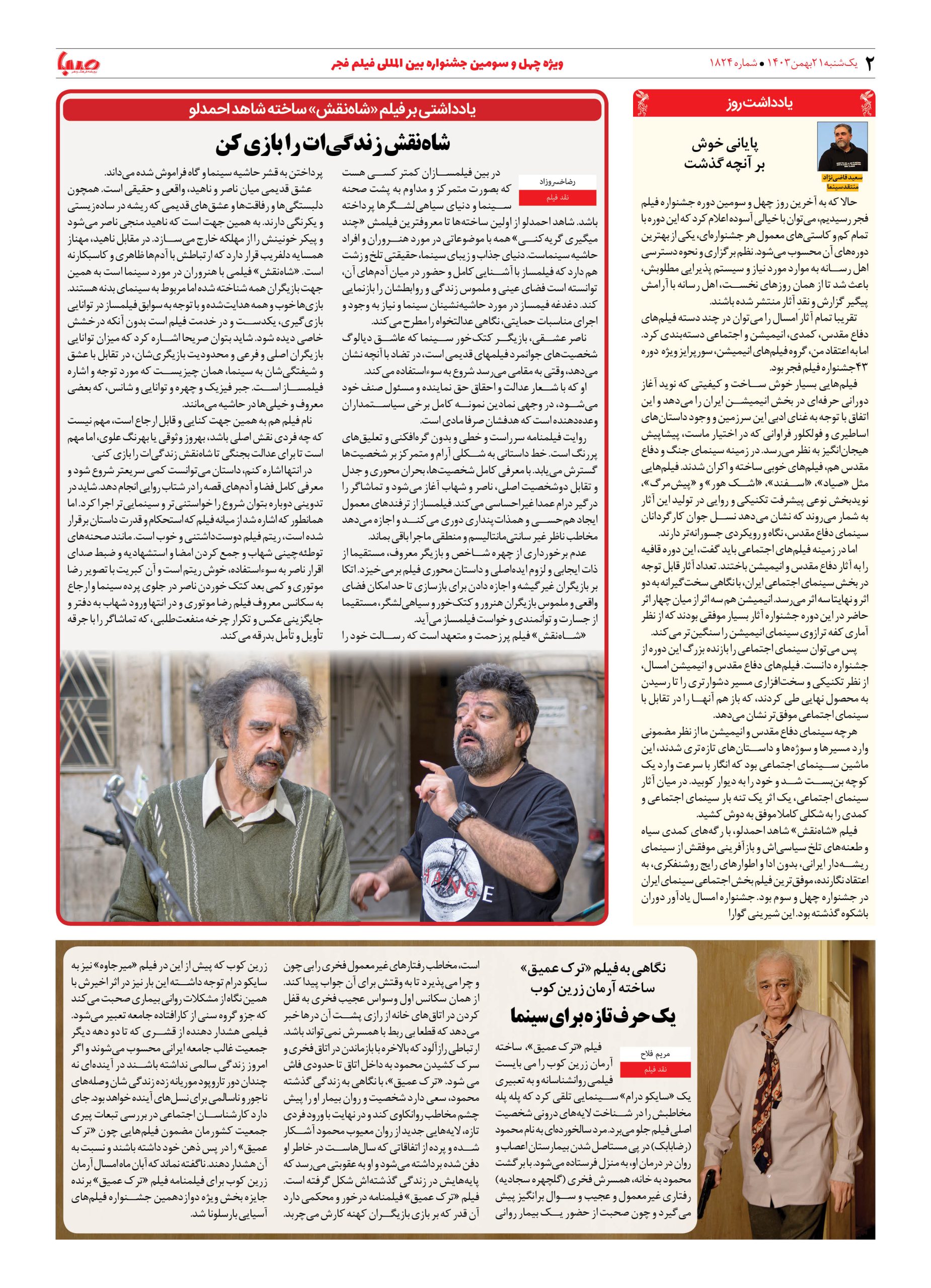 شماره ۱۸۲۴| روزنامه صبا یکشنبه ۲۱ بهمن ۱۴۰۳