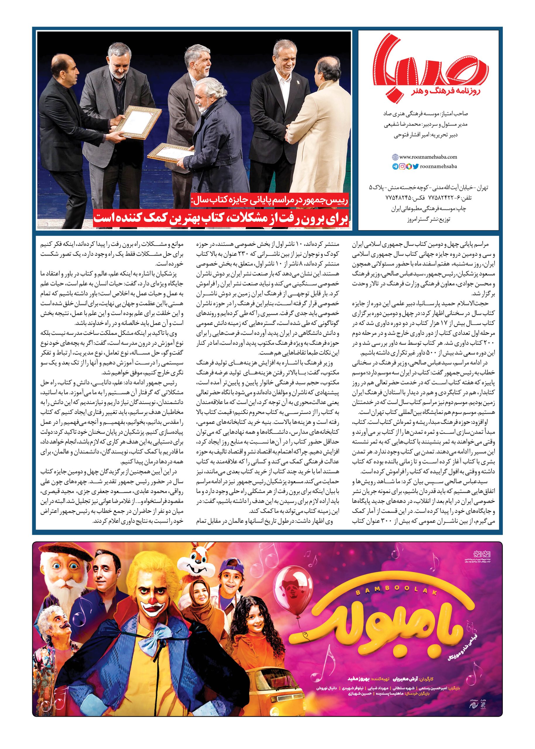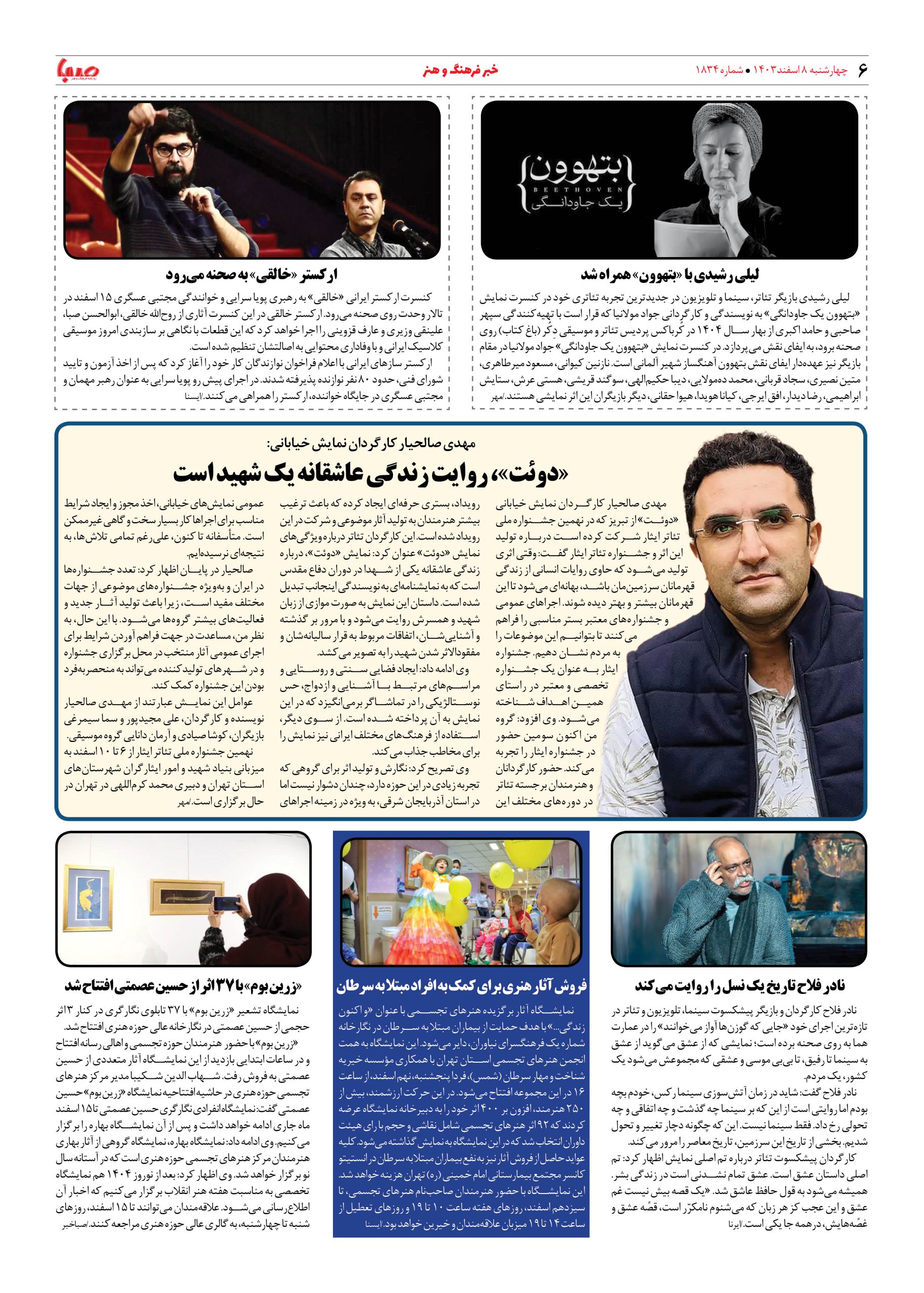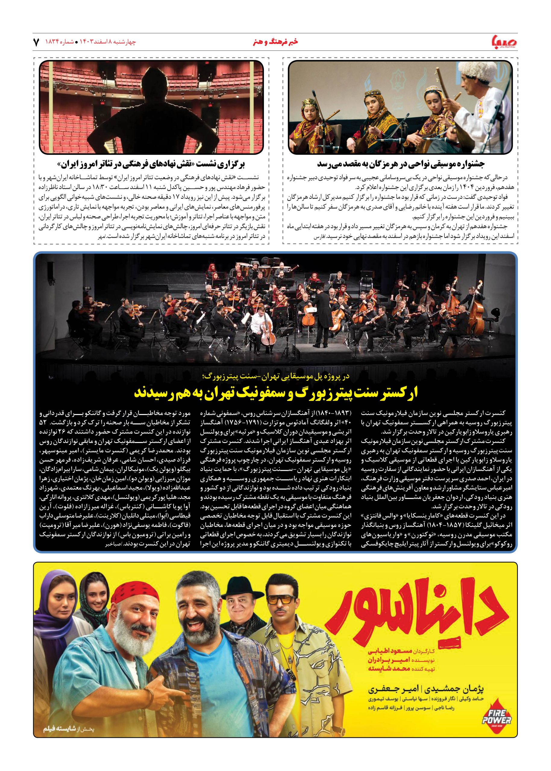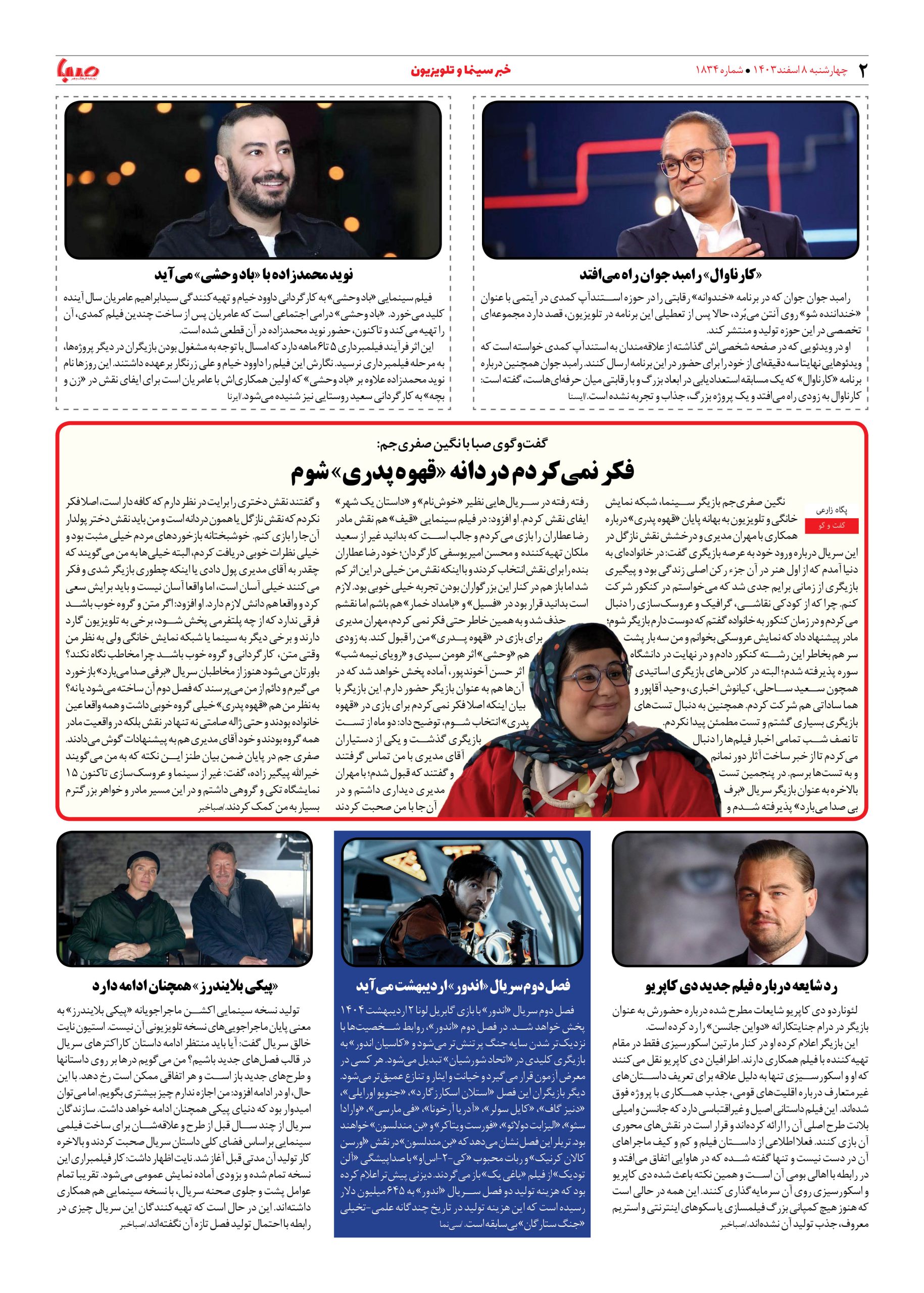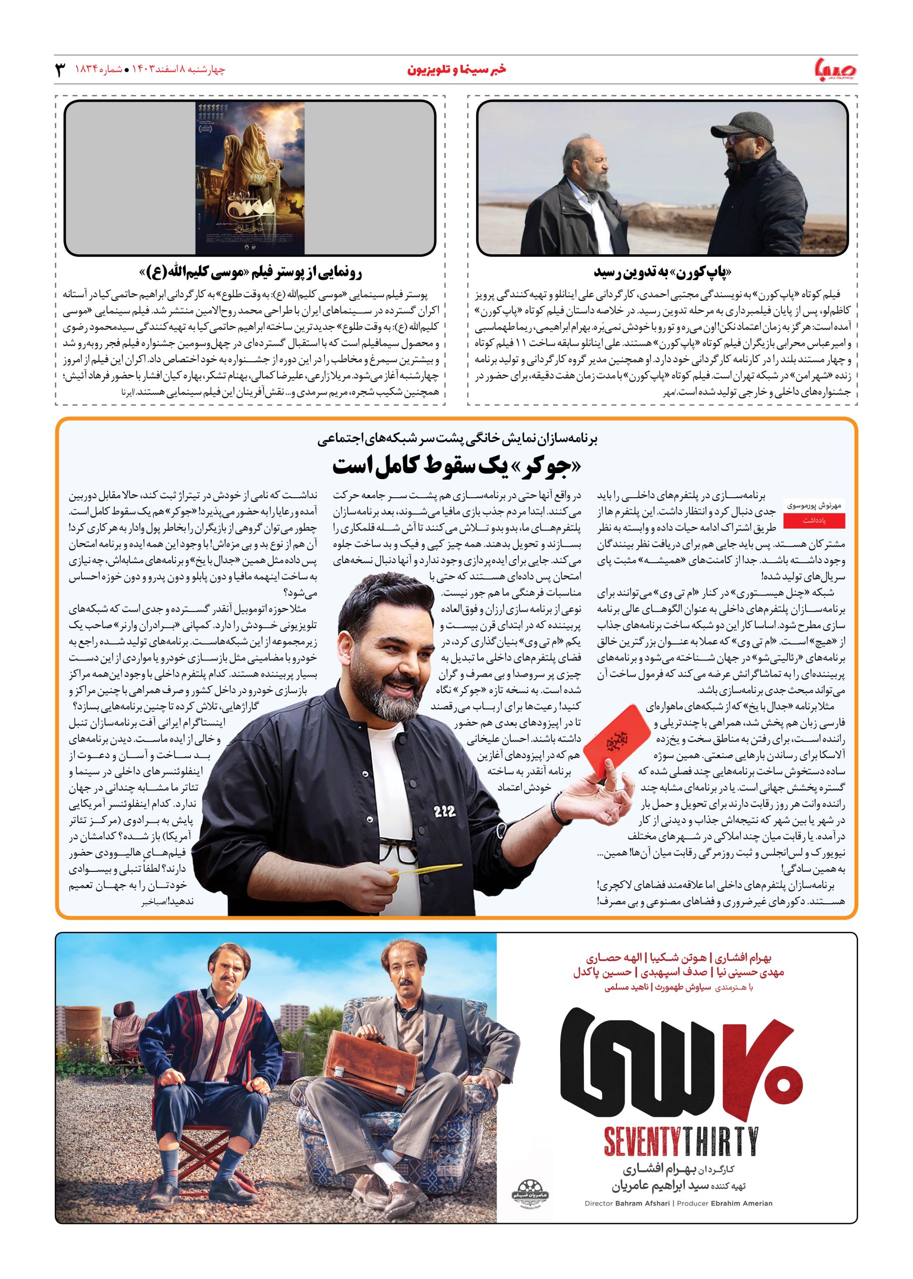 شماره ۱۸۳۴| روزنامه صبا چهارشنبه ۸ اسفند ۱۴۰۳