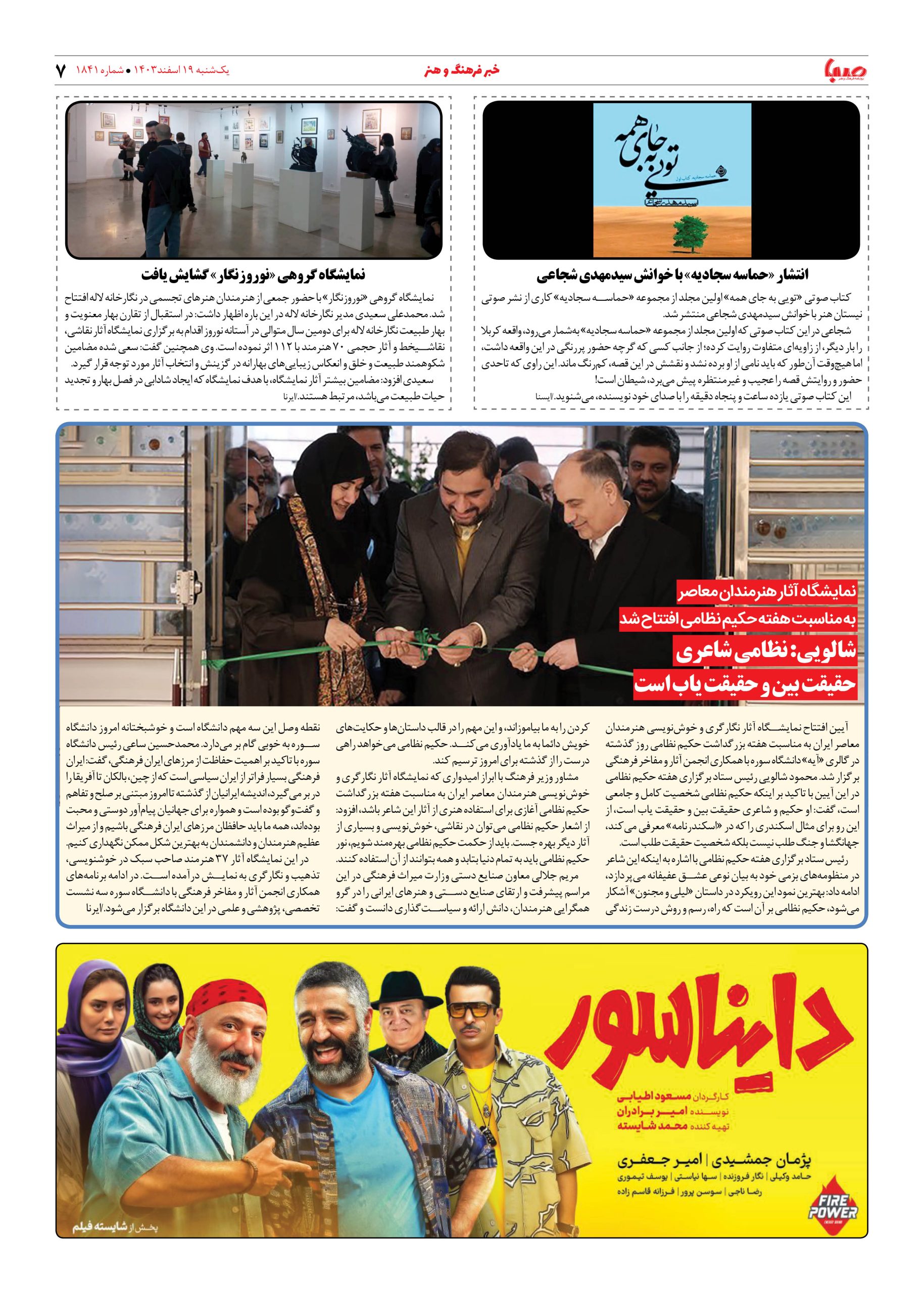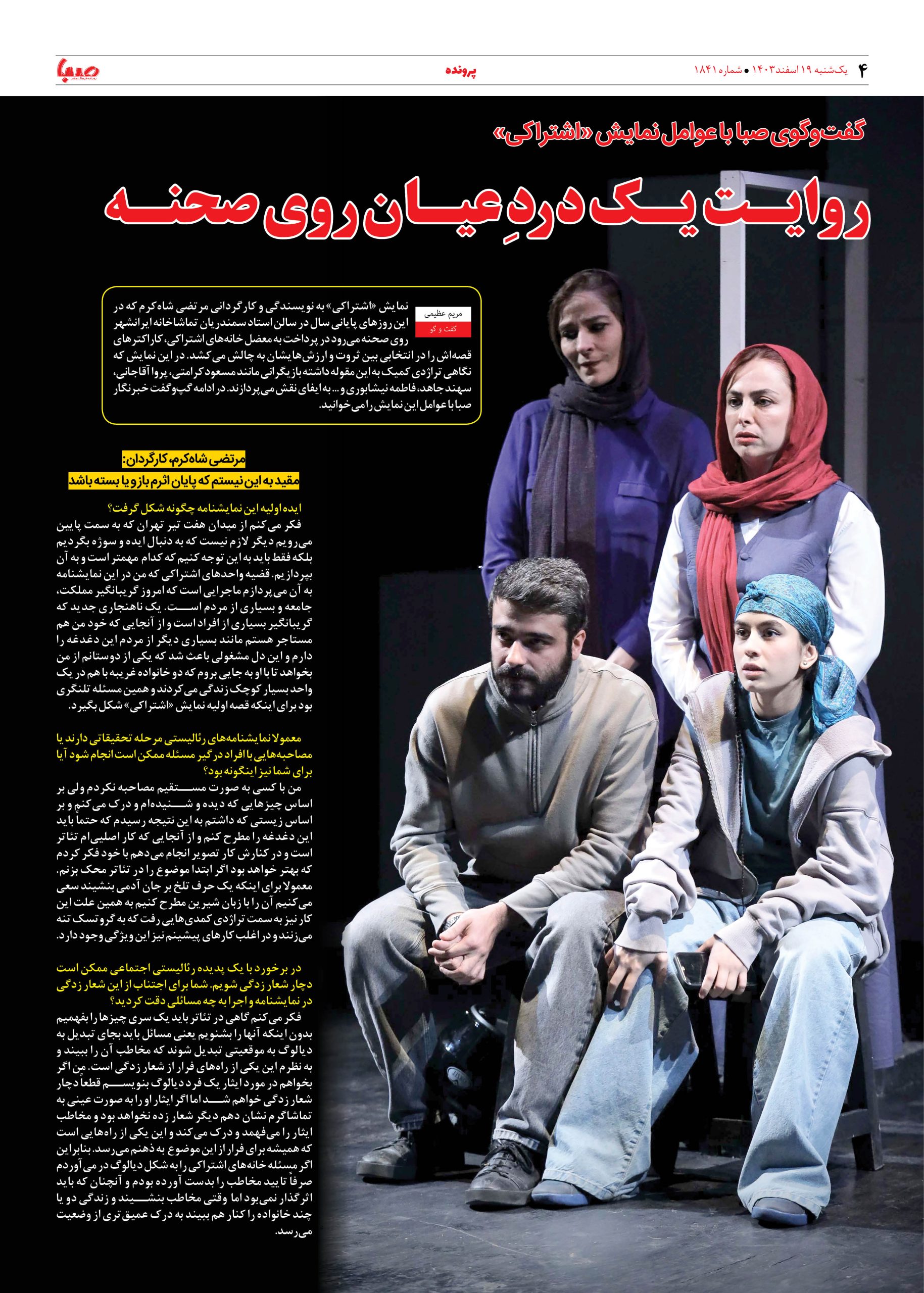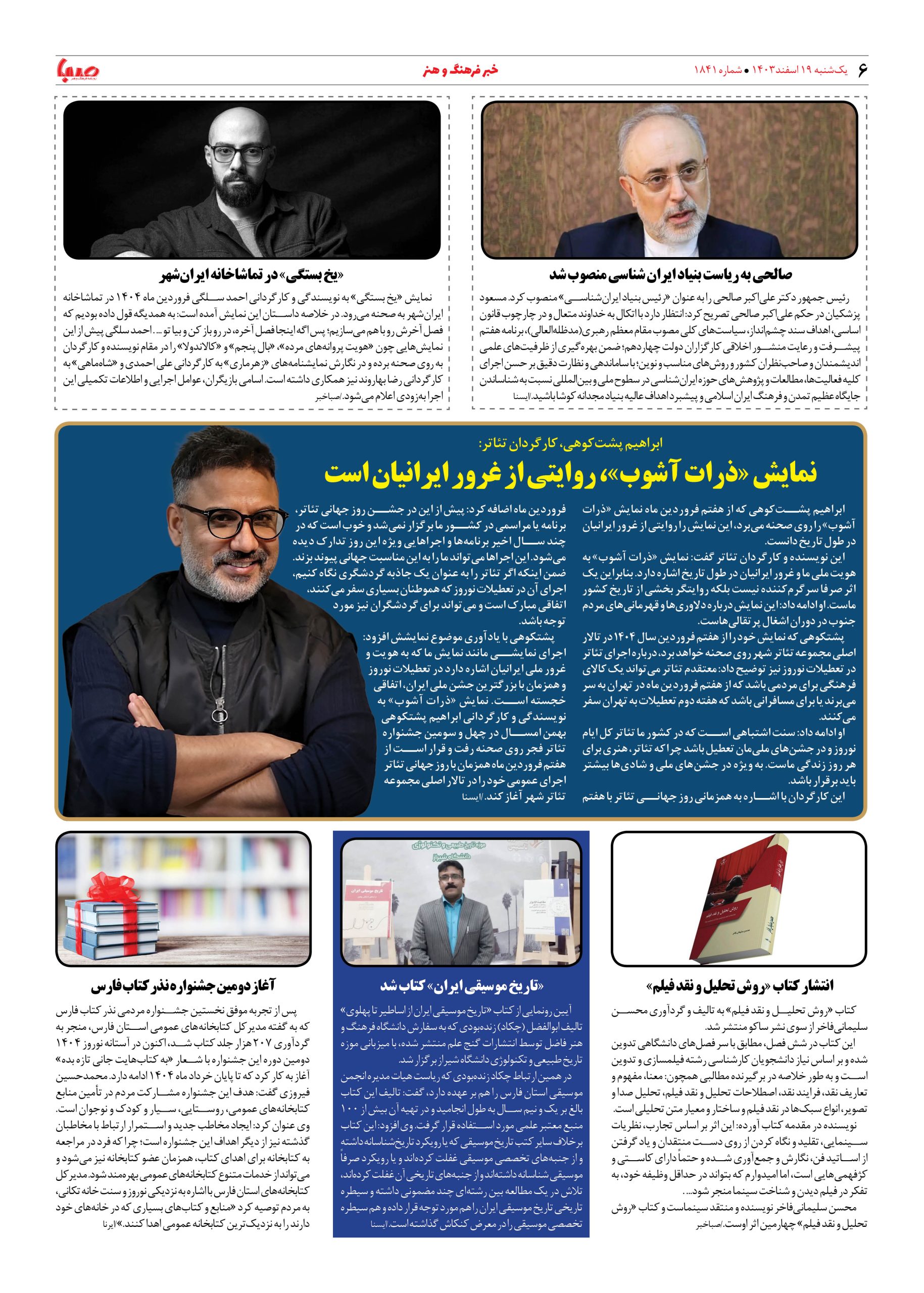 شماره ۱۸۴۱| روزنامه صبا یکشنبه ۱۹ اسفند ۱۴۰۳