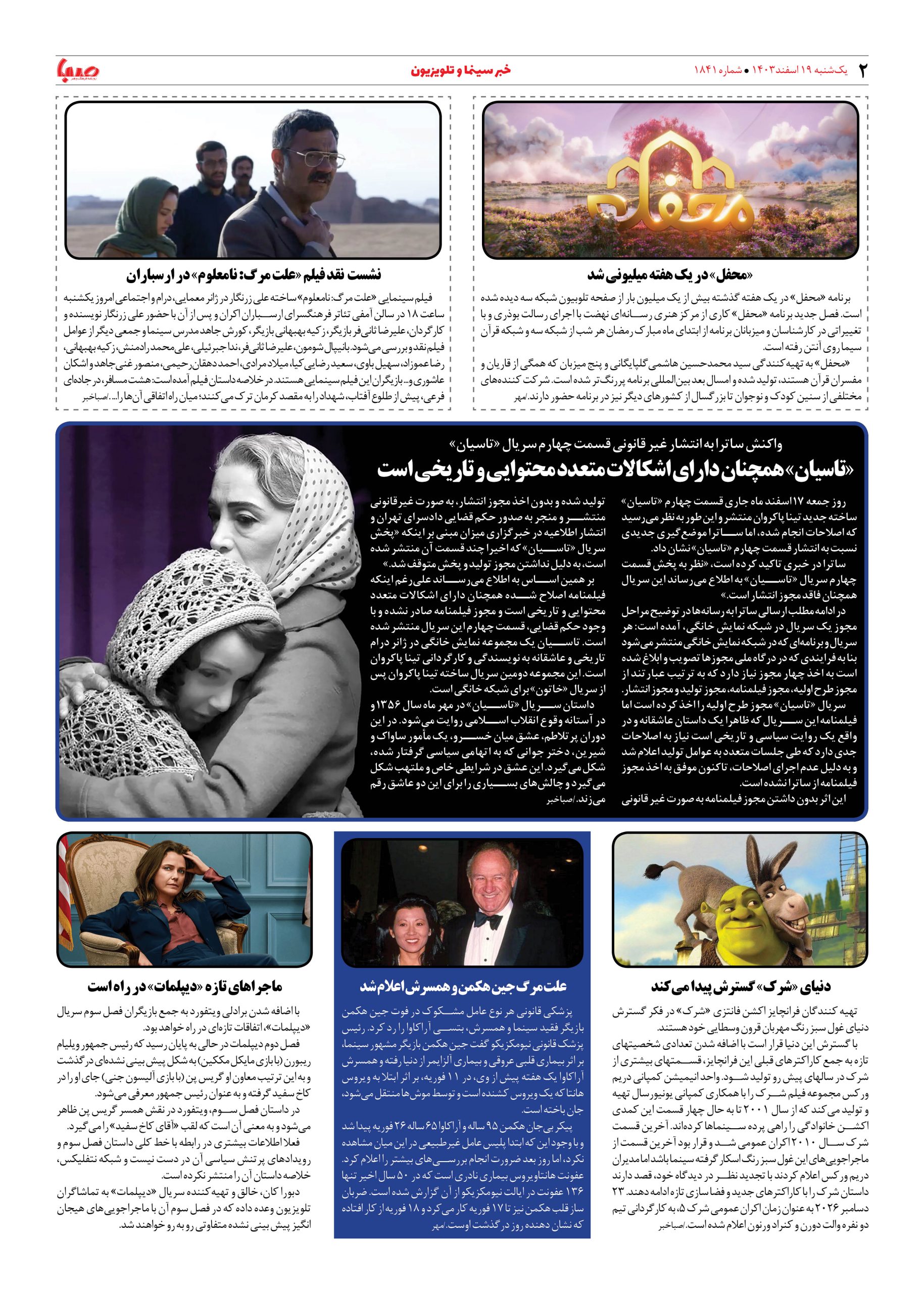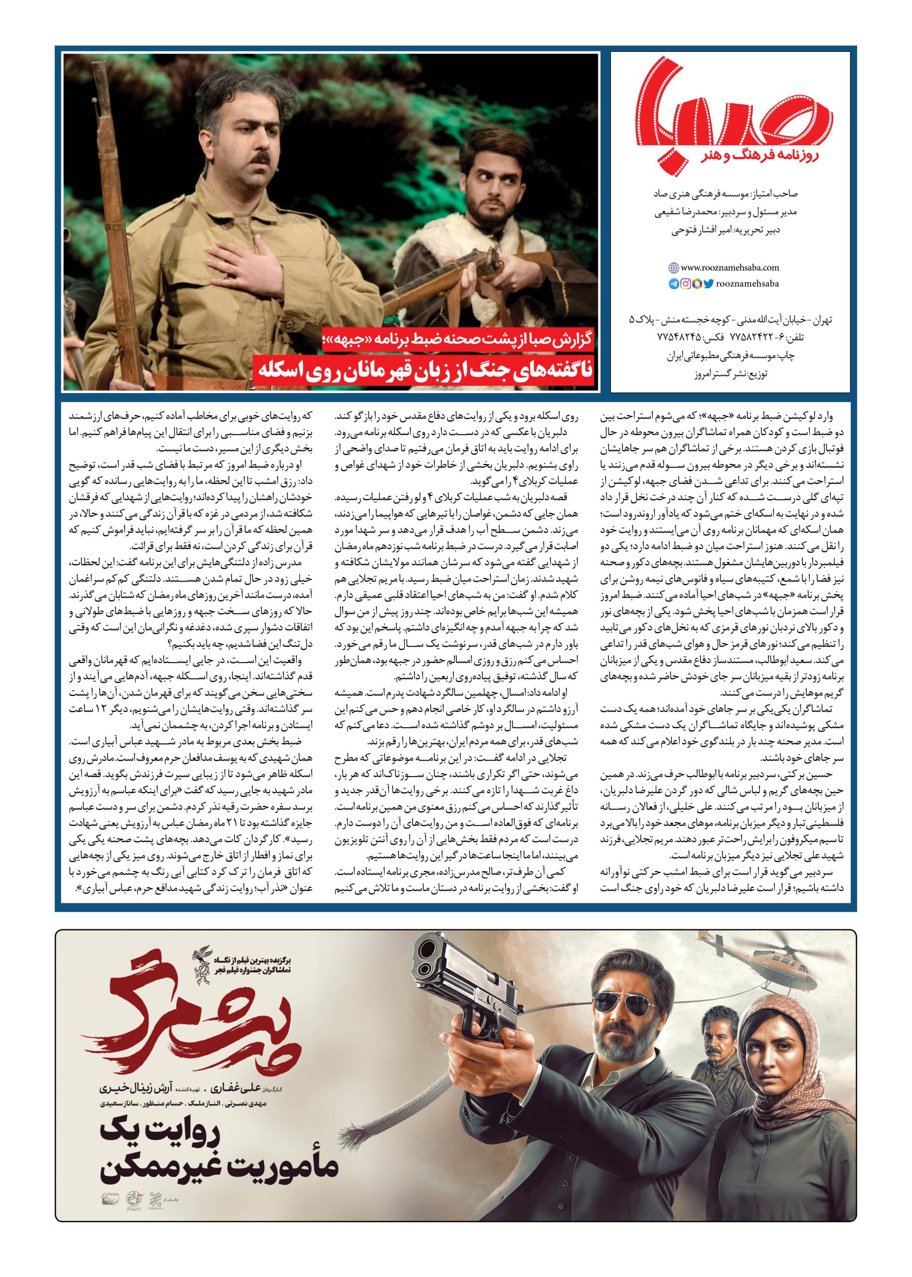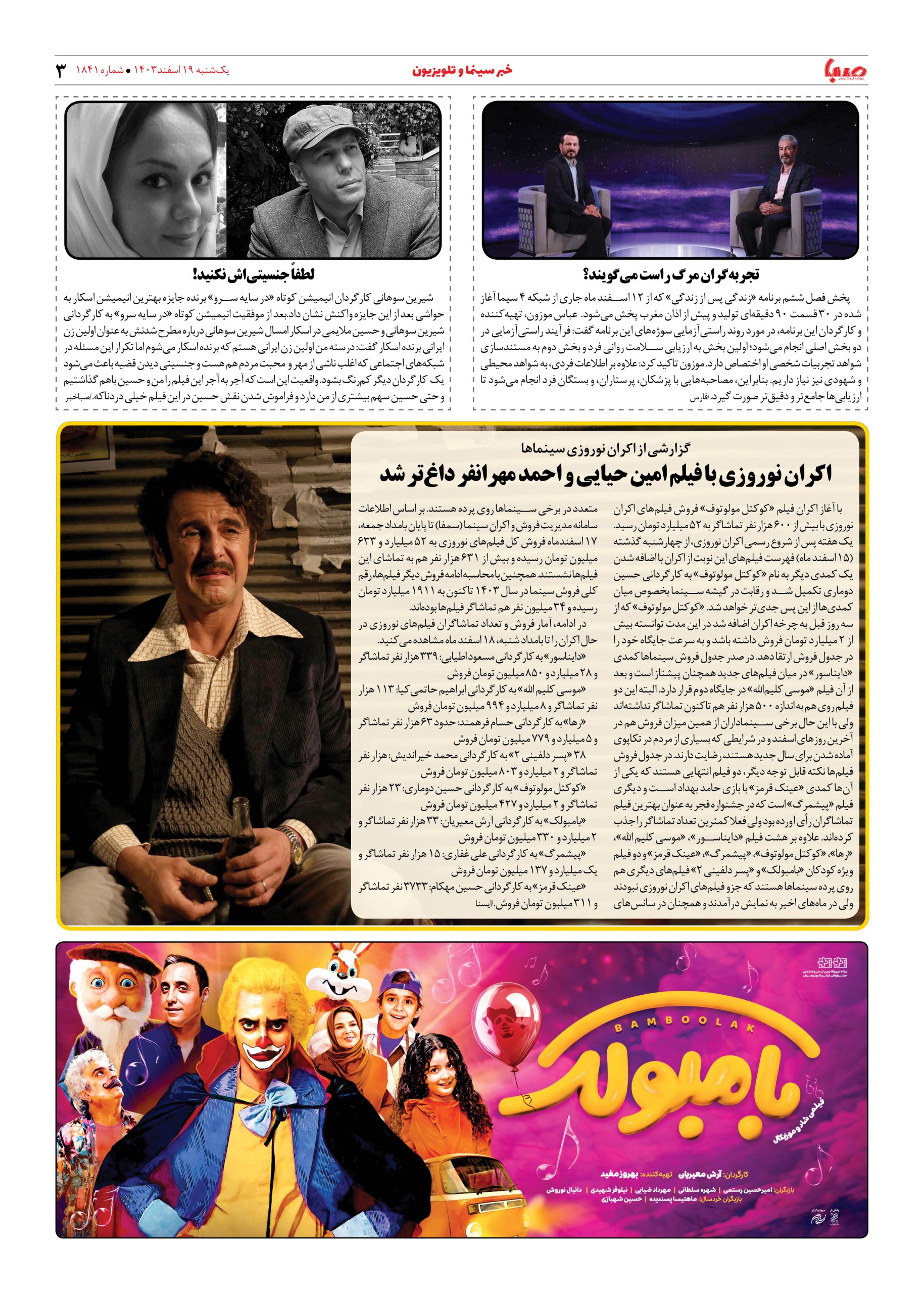 شماره ۱۸۴۱| روزنامه صبا یکشنبه ۱۹ اسفند ۱۴۰۳
