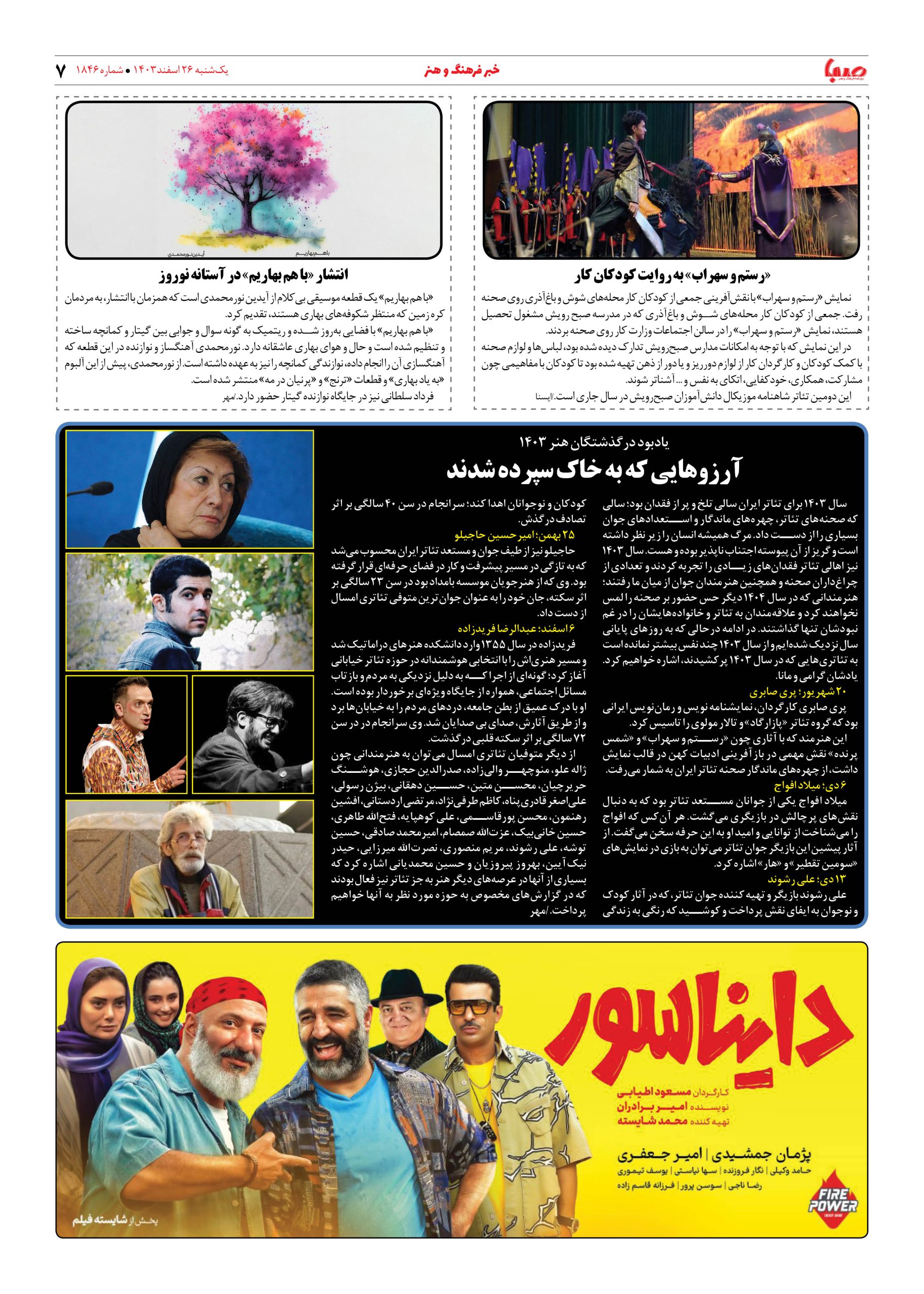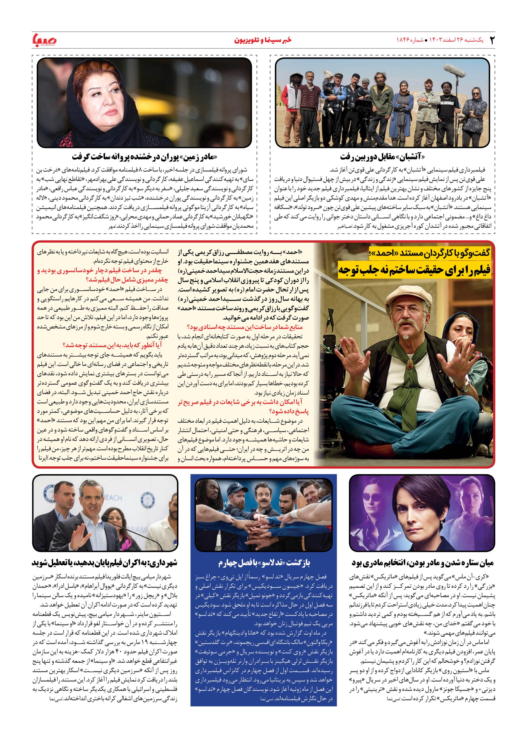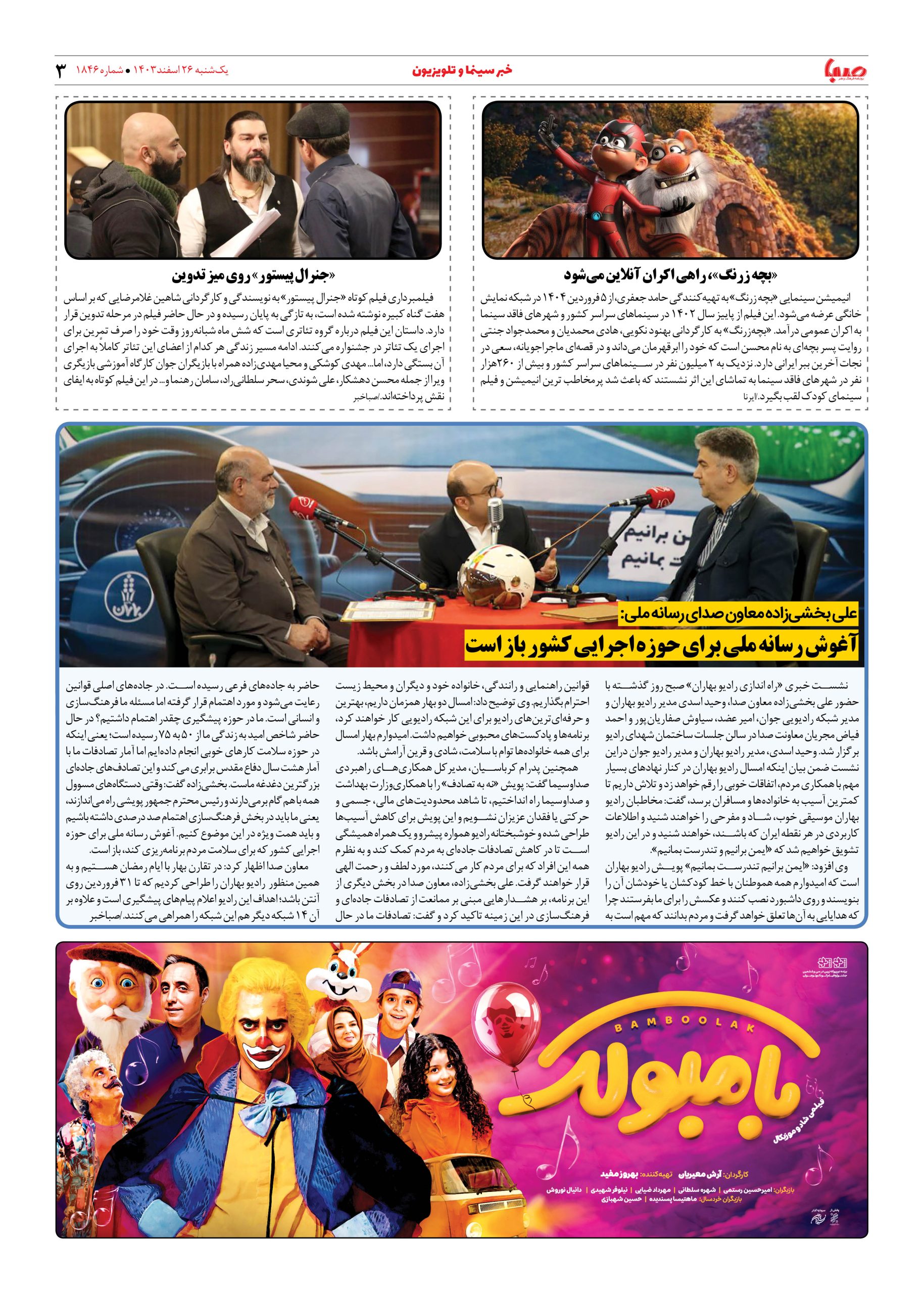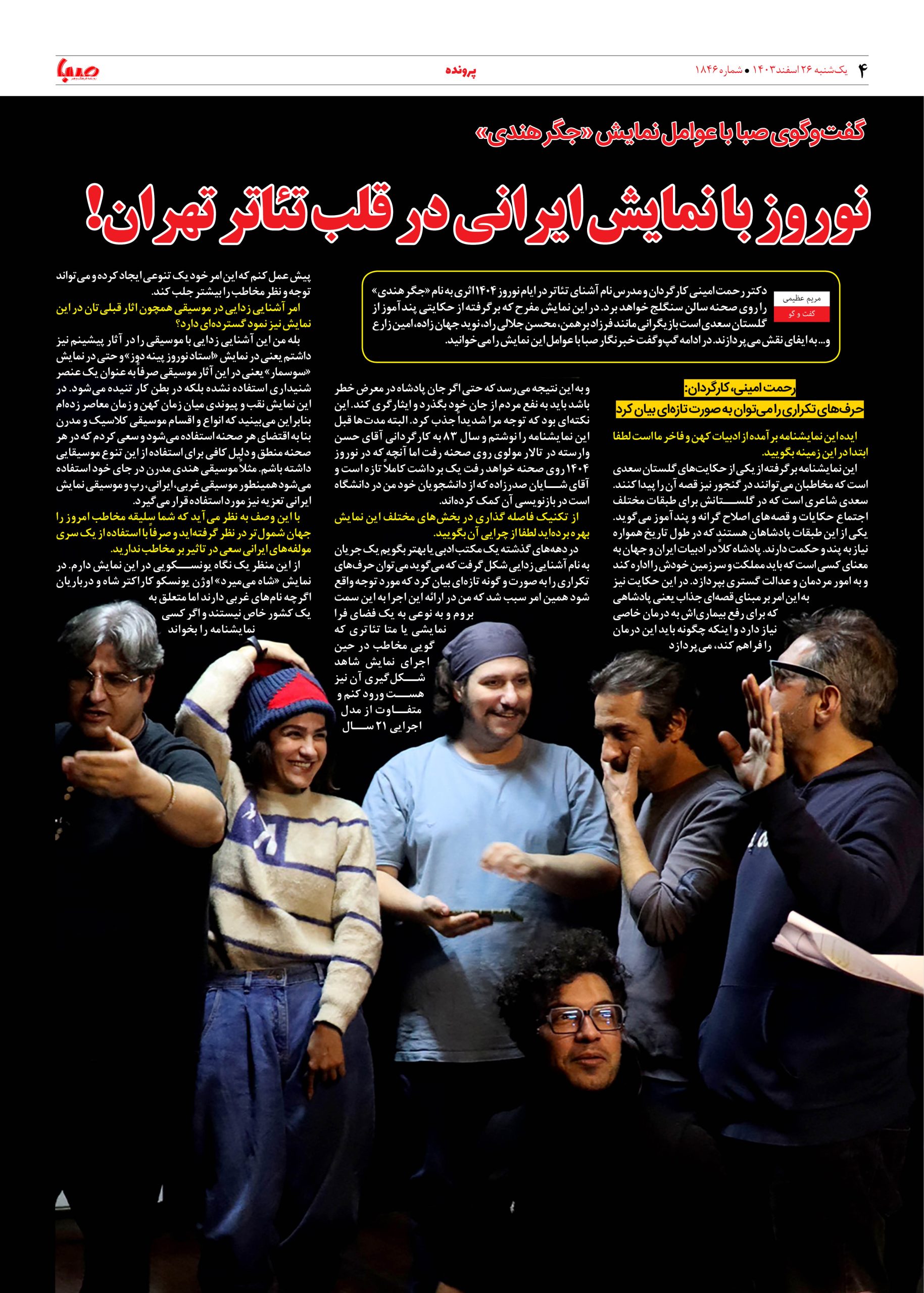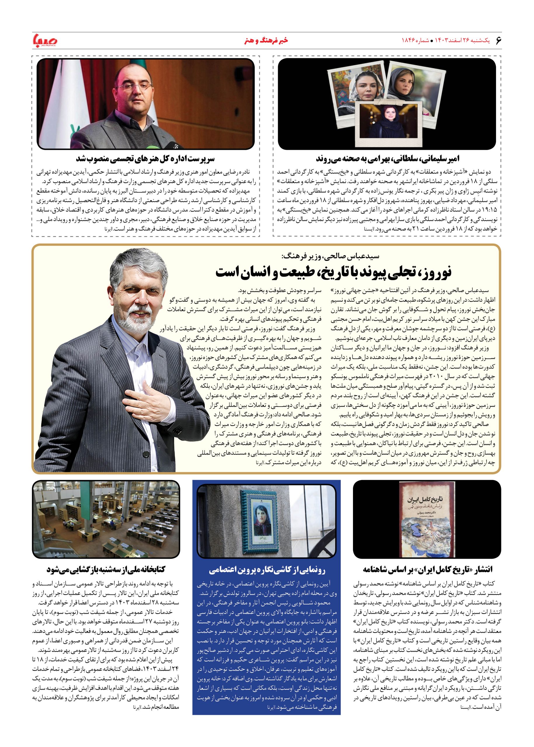 شماره ۱۸۴۶| روزنامه صبا یکشنبه ۲۶ اسفند ۱۴۰۳