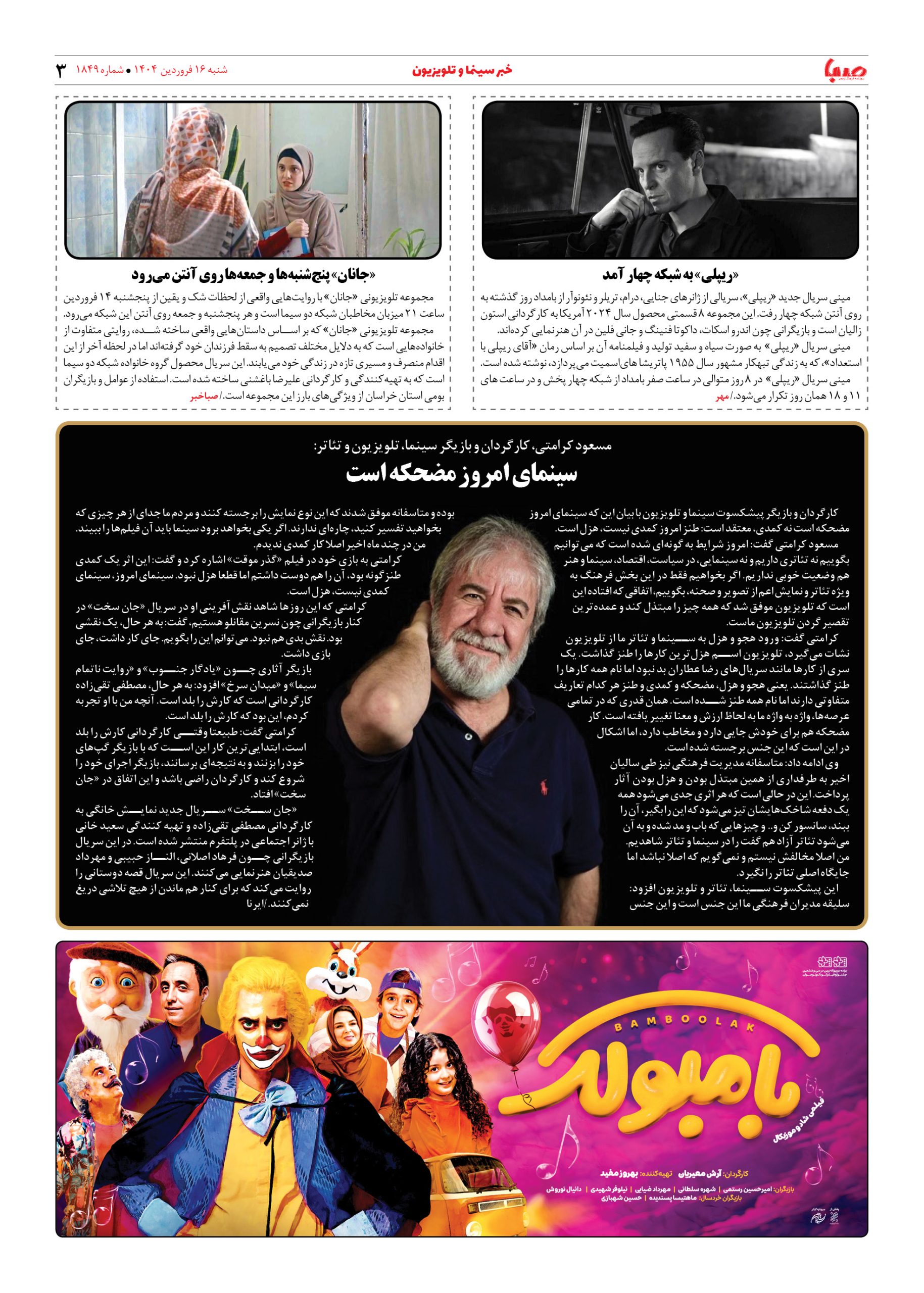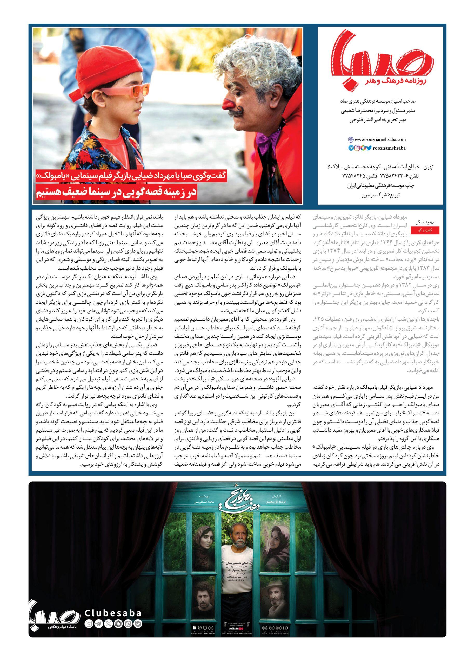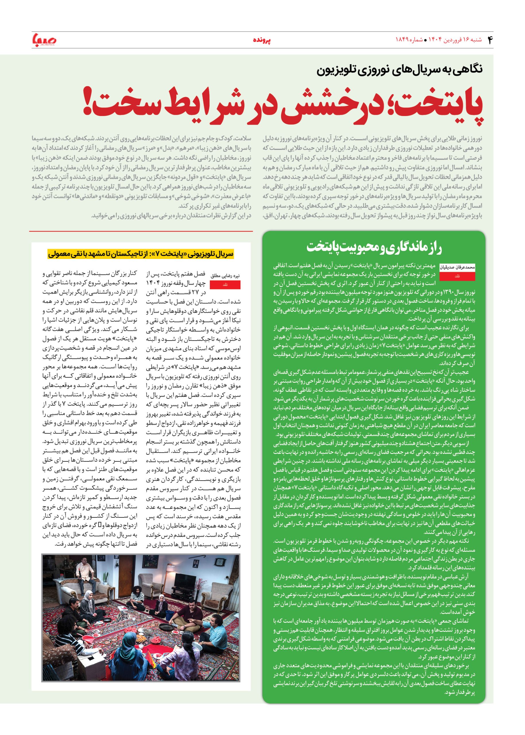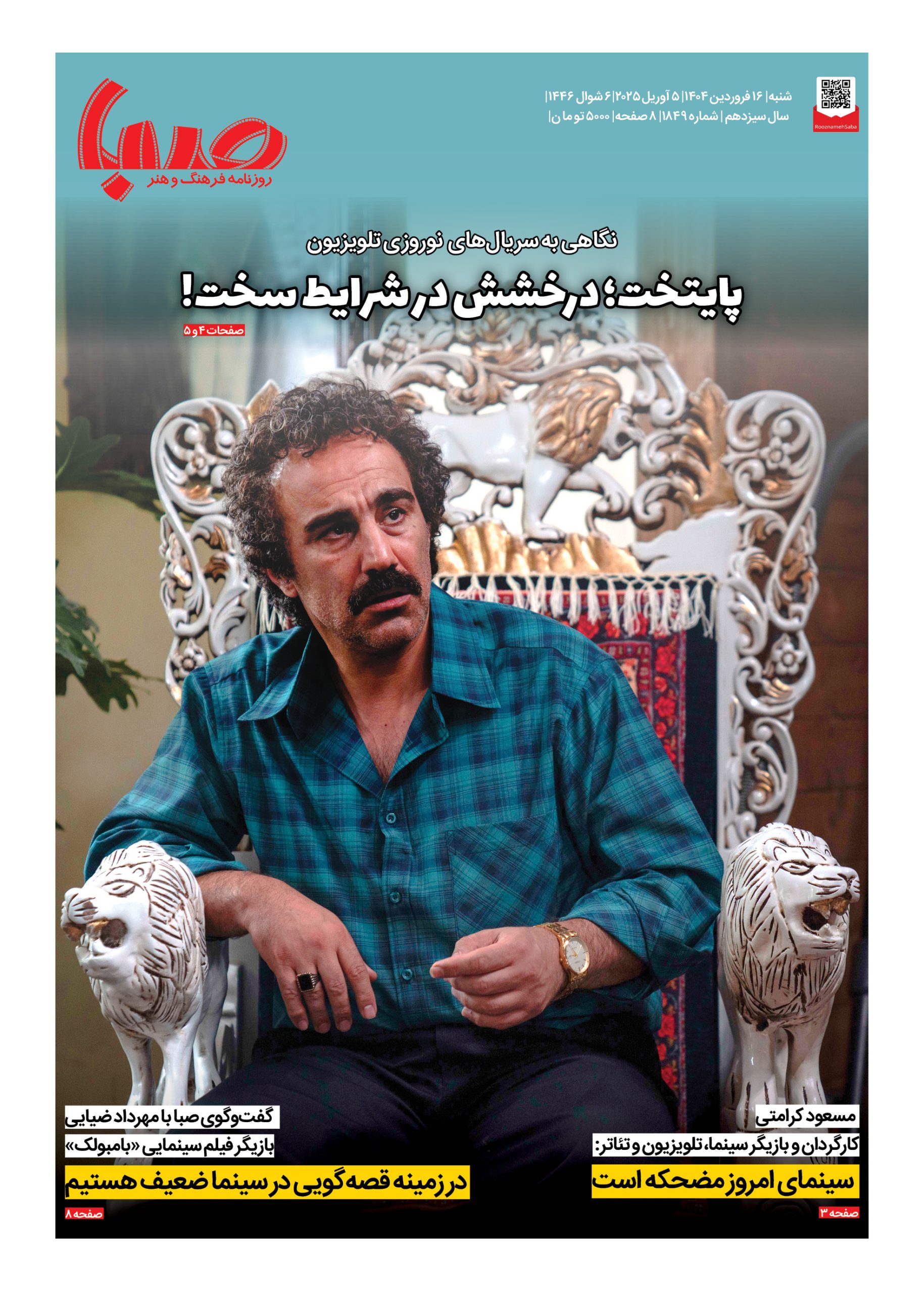 شماره ۱۸۴۹| روزنامه صبا شنبه ۱۶ فروردین ۱۴۰۴